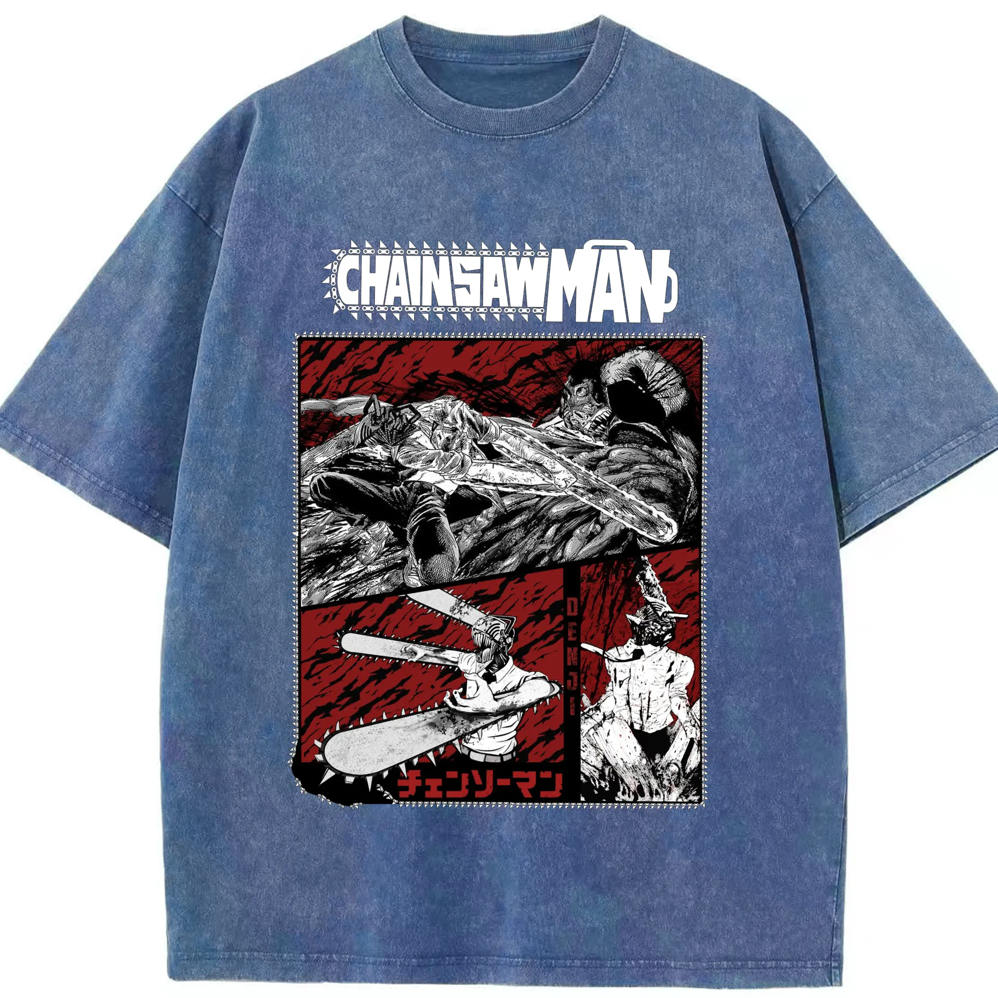 チェンソーマン chainsawman 電ノコ少年 デンジポチタ - 綿100% 半袖Tシャツ ・ フロントプリント ・ 快適 通気性 ・ 日常使い 散歩 スポーツ用
