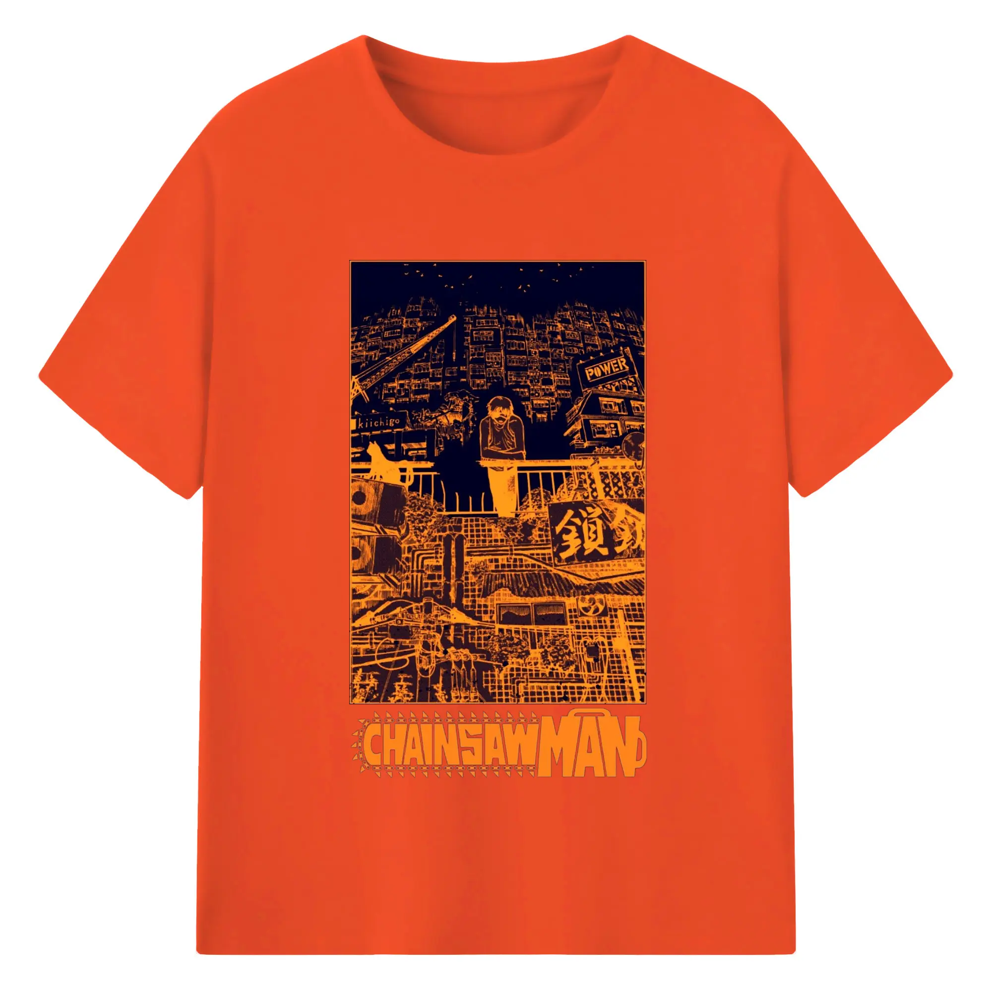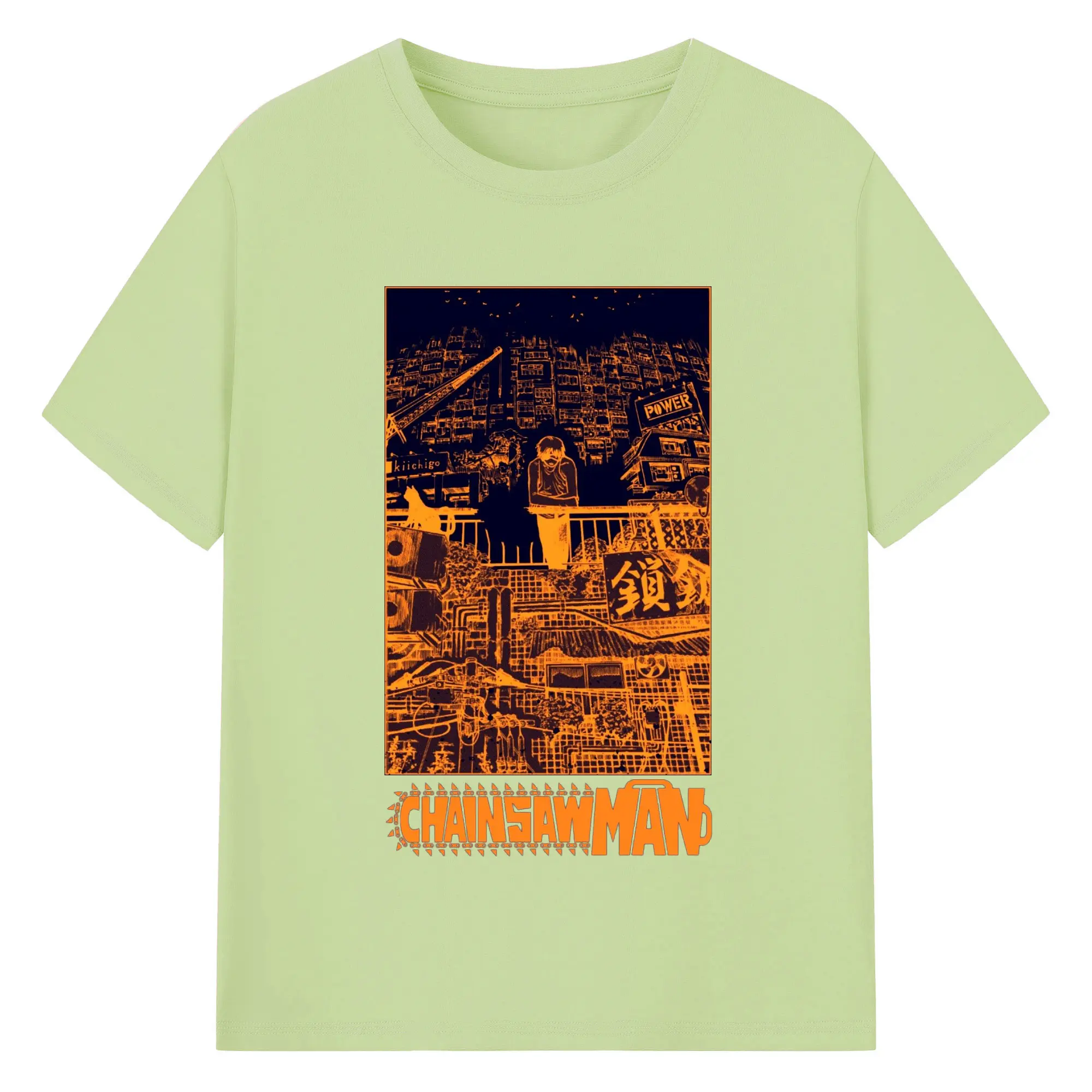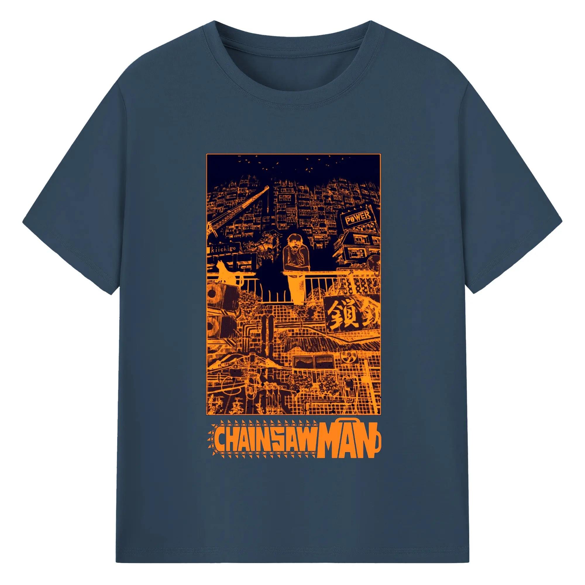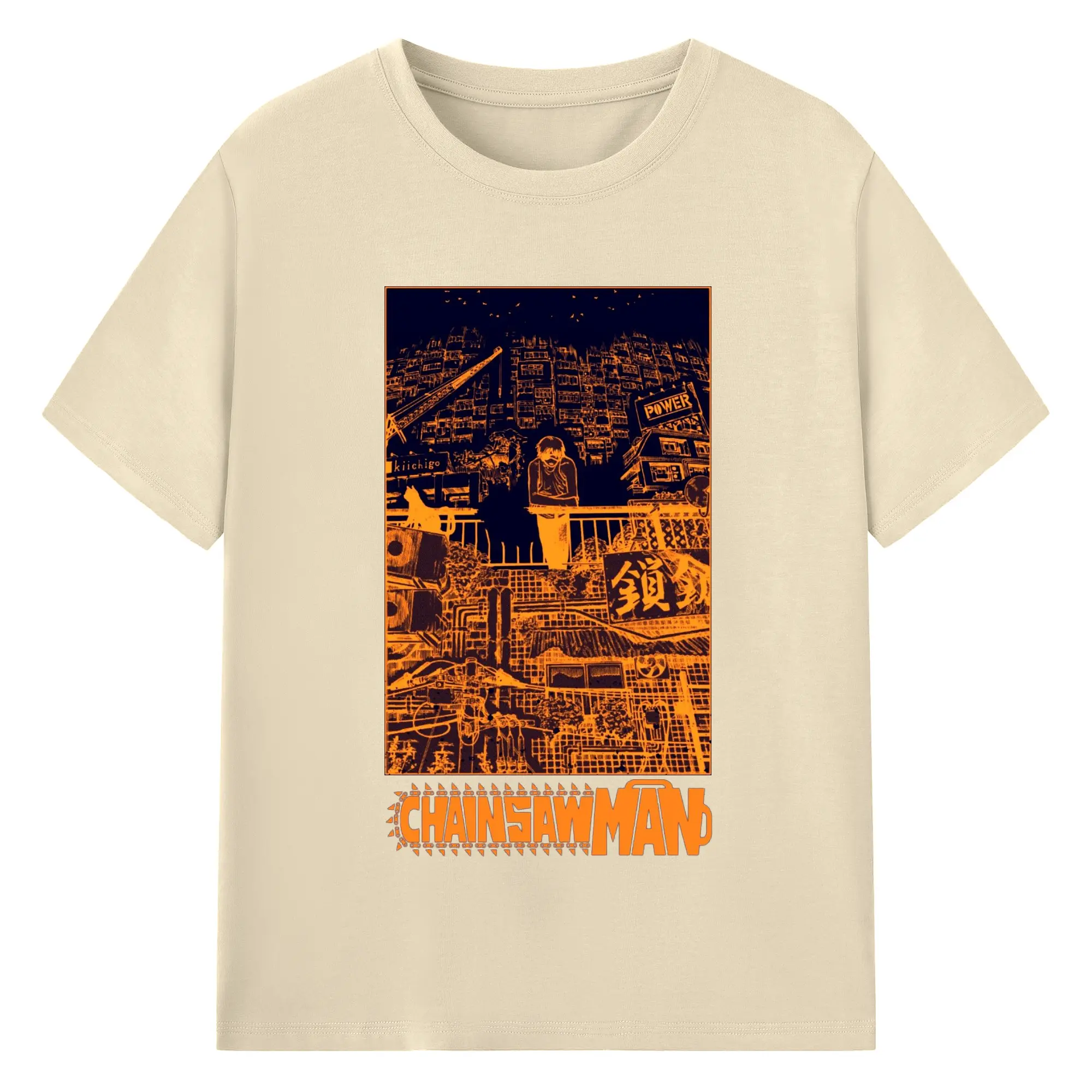 チェンソーマン KICKBACK_米津玄師 - 綿100% ヴィンテージ風 半袖Tシャツ ・ フロントプリント ・ 柔らか肌触り ・ 通気性 快適 ・ スポーツ カジュアル 外出用