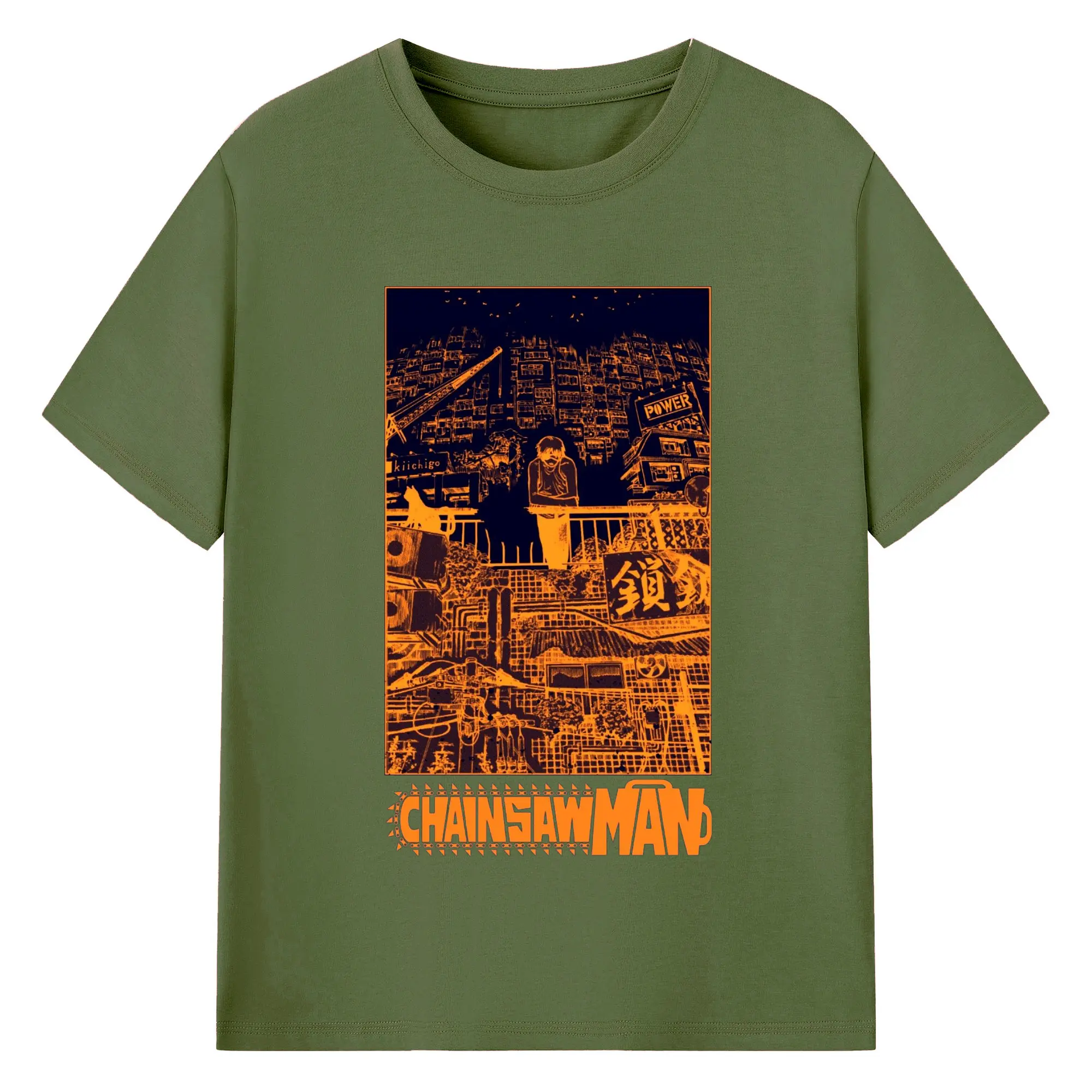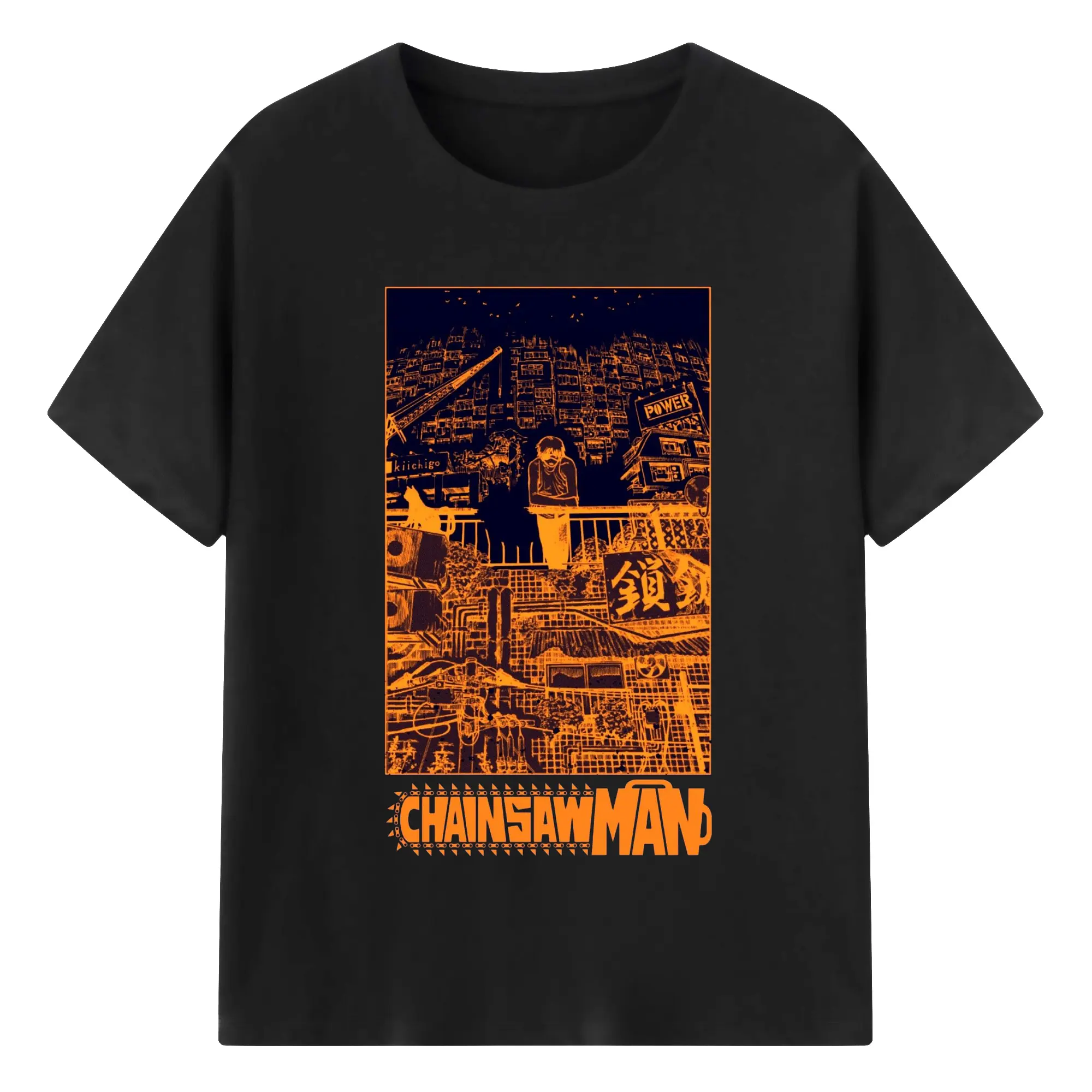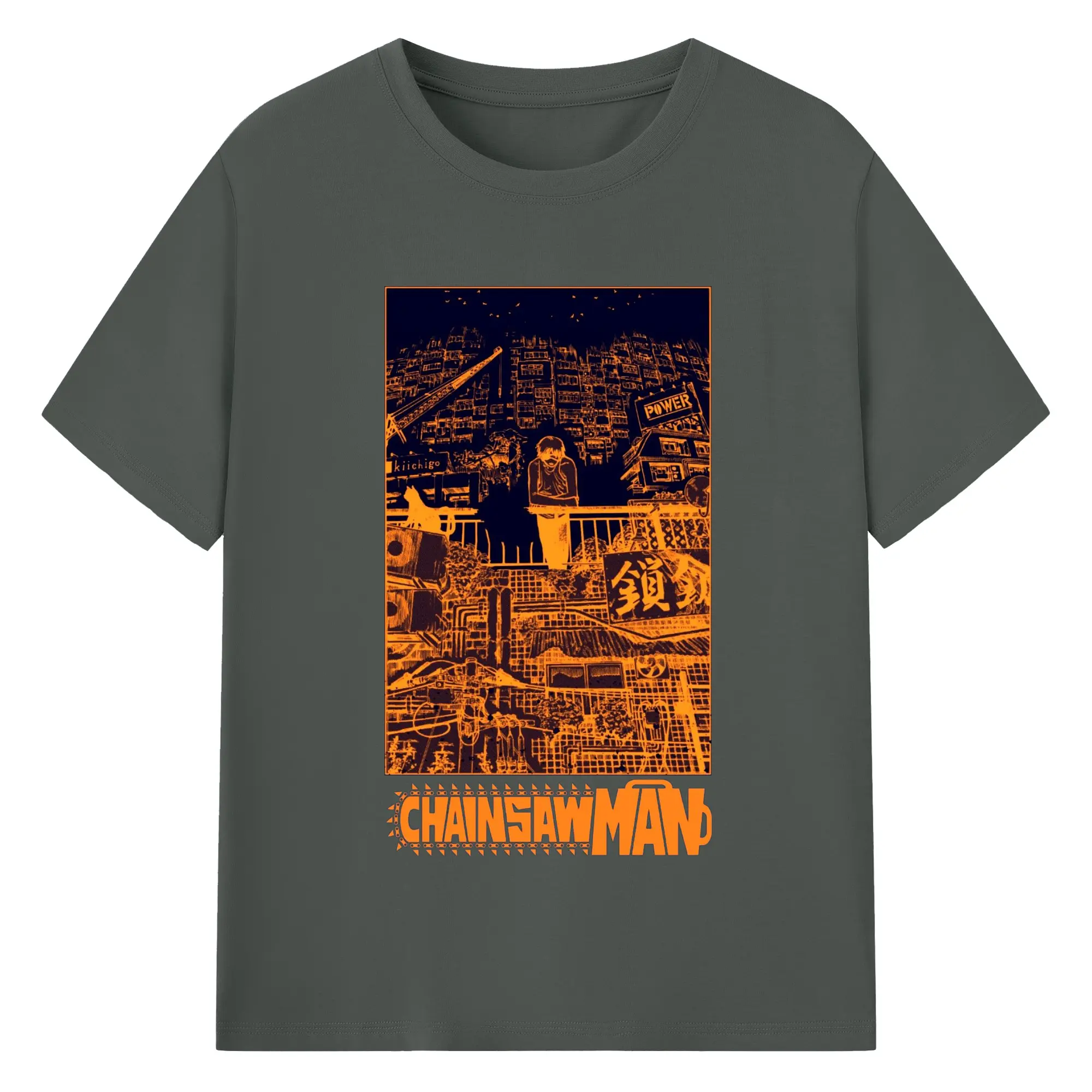 チェンソーマン KICKBACK_米津玄師 - 綿100% ヴィンテージ風 半袖Tシャツ ・ フロントプリント ・ 柔らか肌触り ・ 通気性 快適 ・ スポーツ カジュアル 外出用