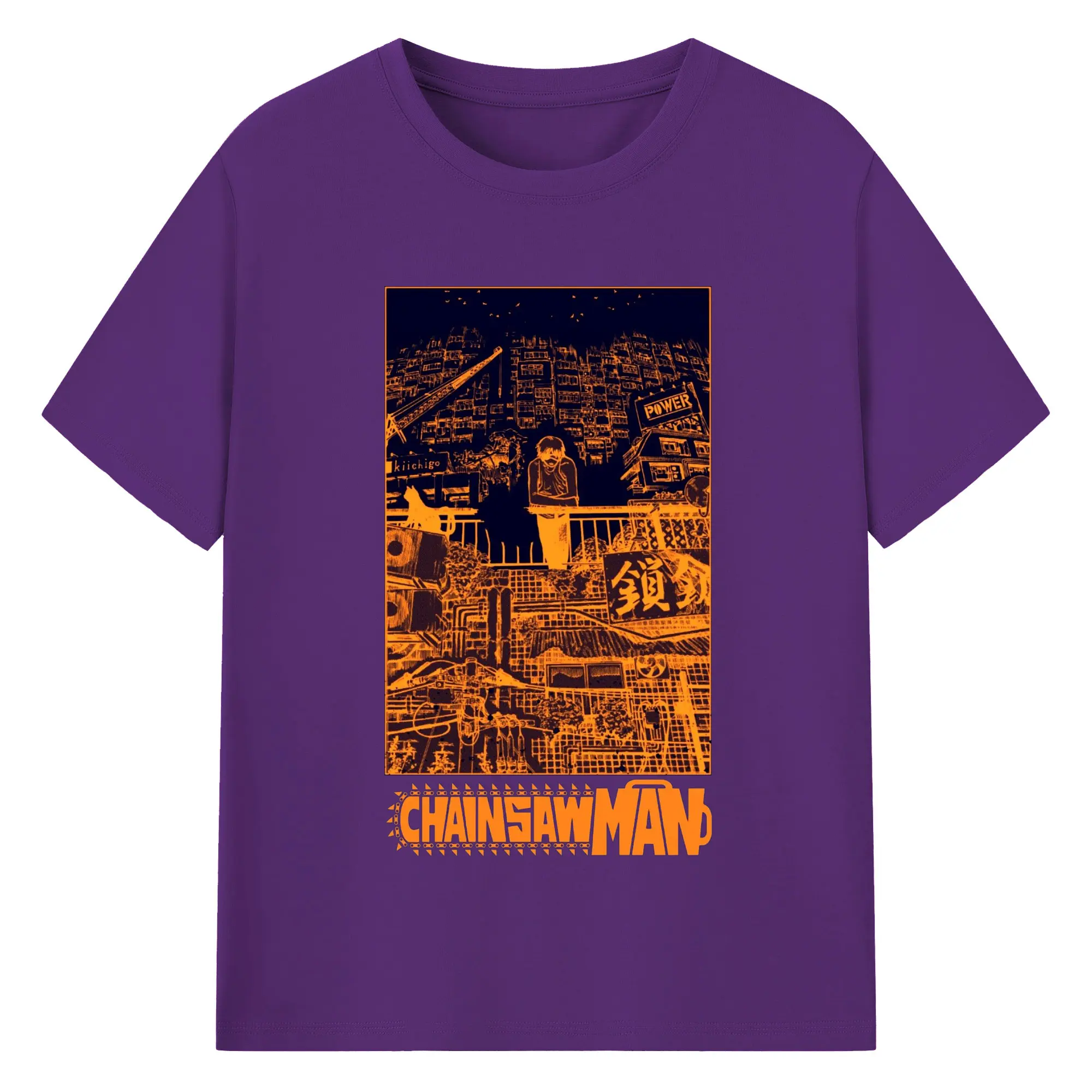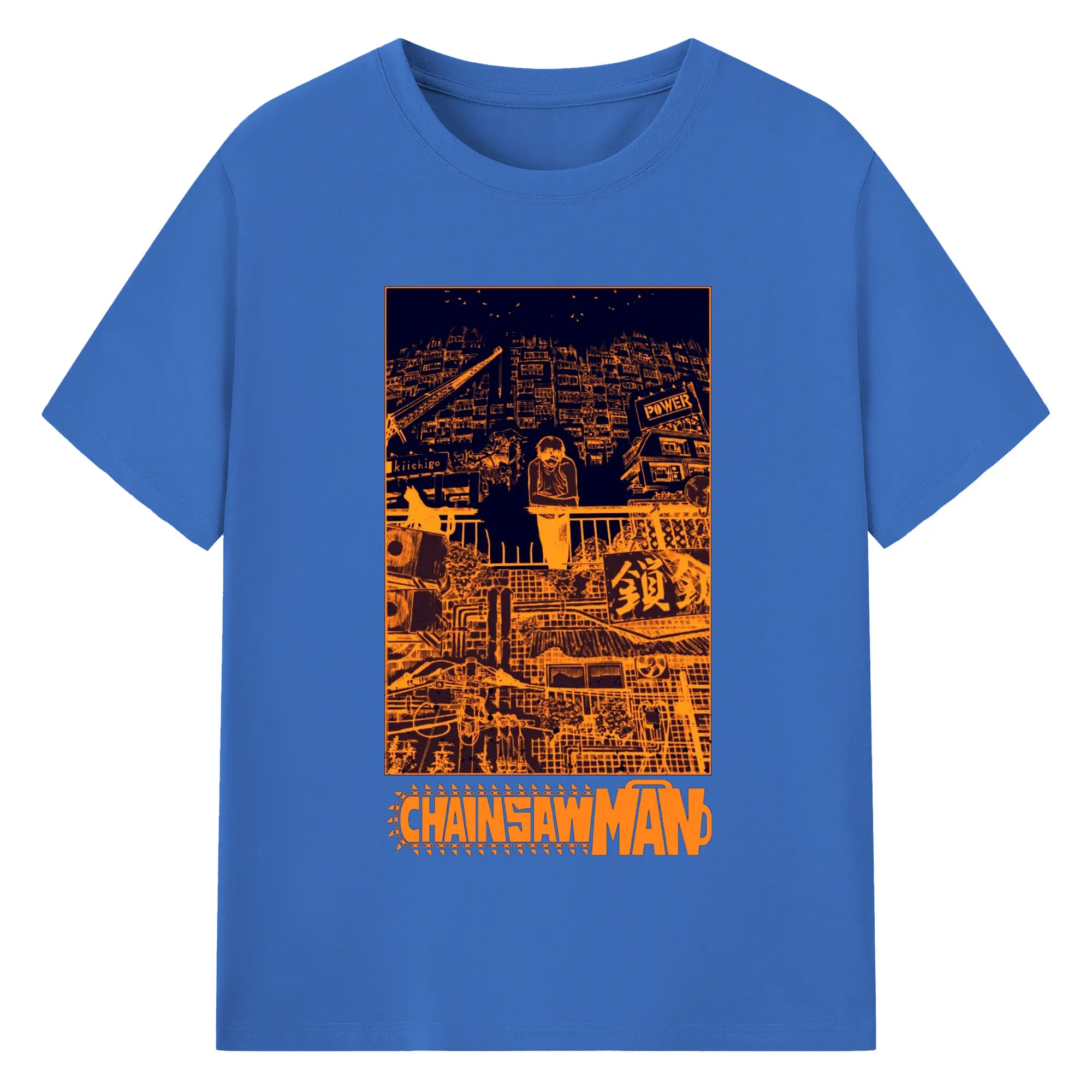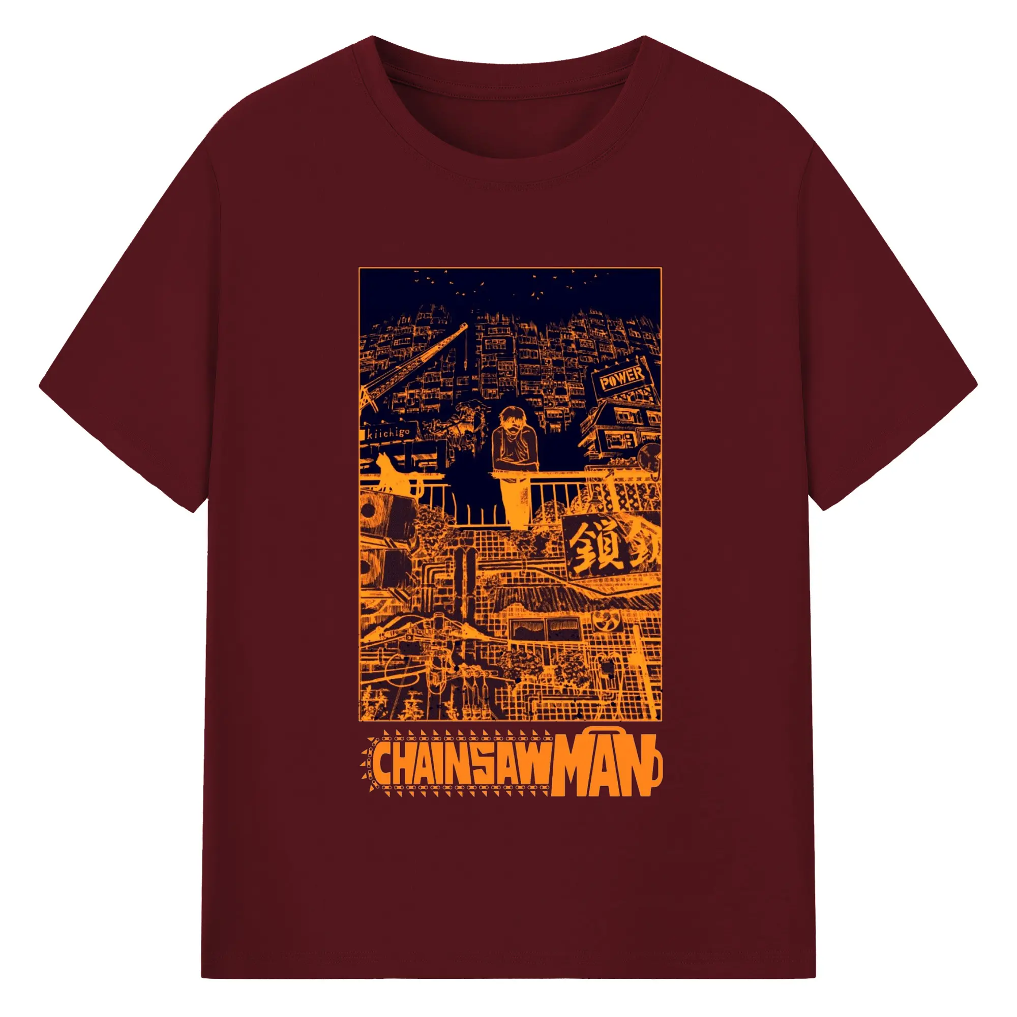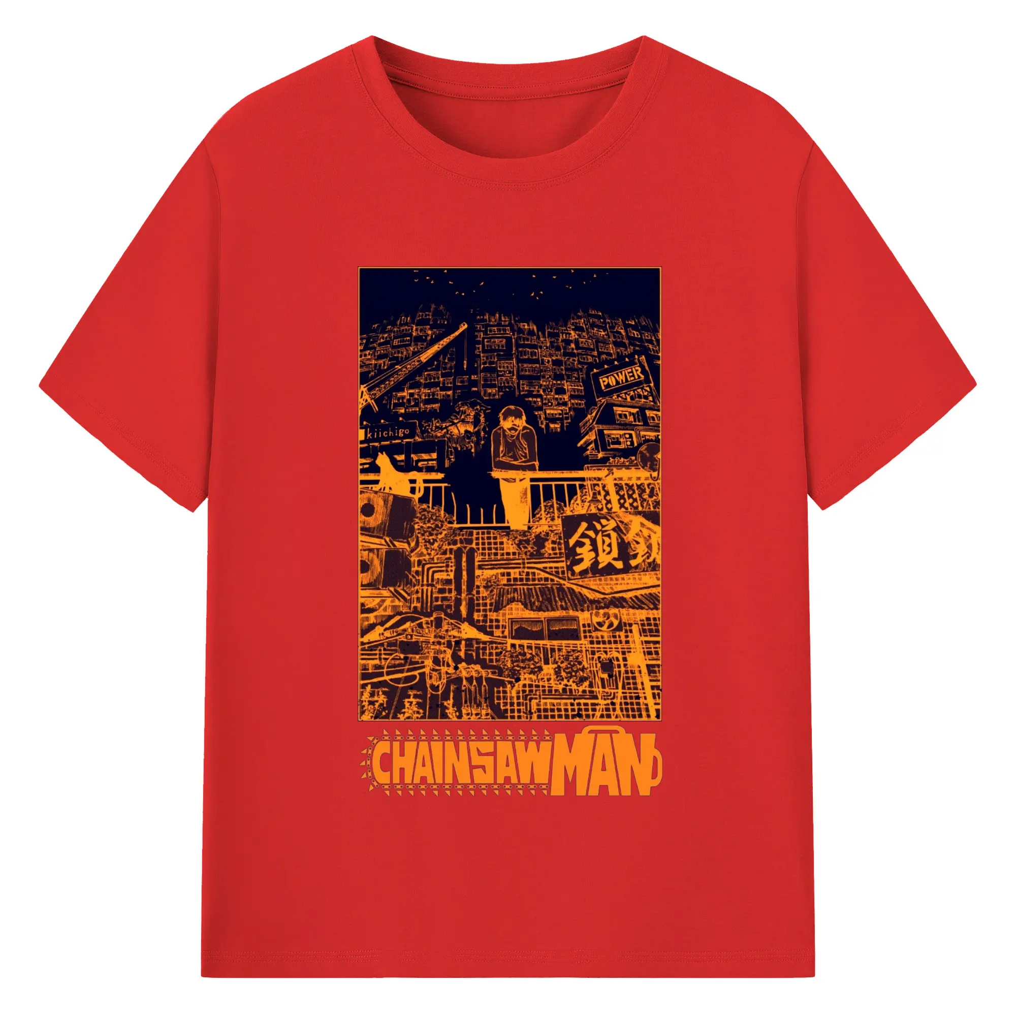 チェンソーマン KICKBACK_米津玄師 - 綿100% ヴィンテージ風 半袖Tシャツ ・ フロントプリント ・ 柔らか肌触り ・ 通気性 快適 ・ スポーツ カジュアル 外出用