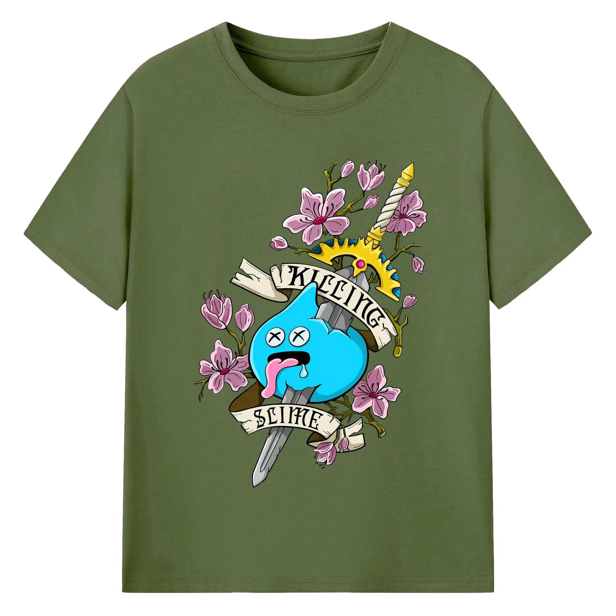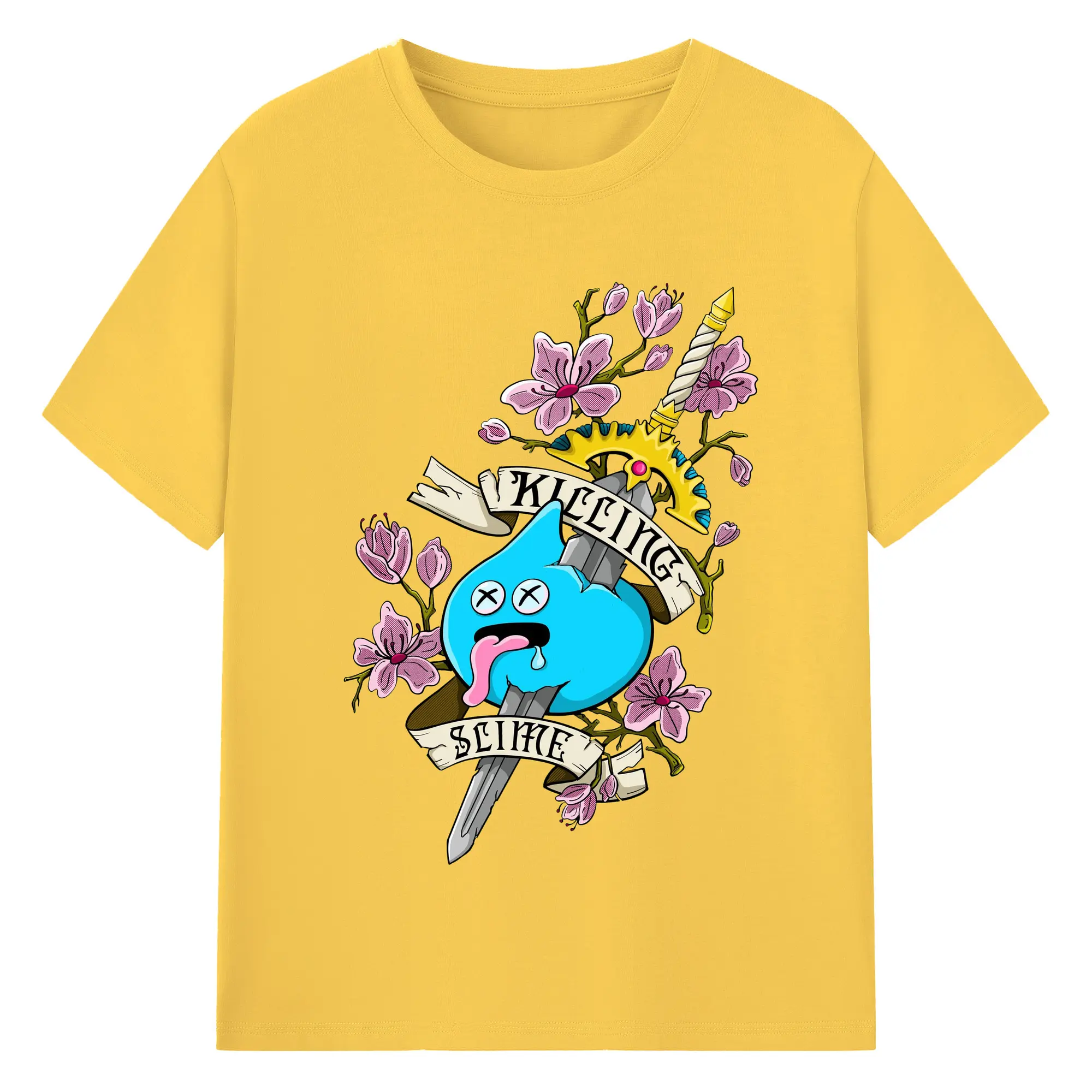 ドラゴンクエストスライム - 綿100% 半袖Tシャツ ・ フロントプリント ・ 快適 通気性 ・ 日常使い 散歩 スポーツ用