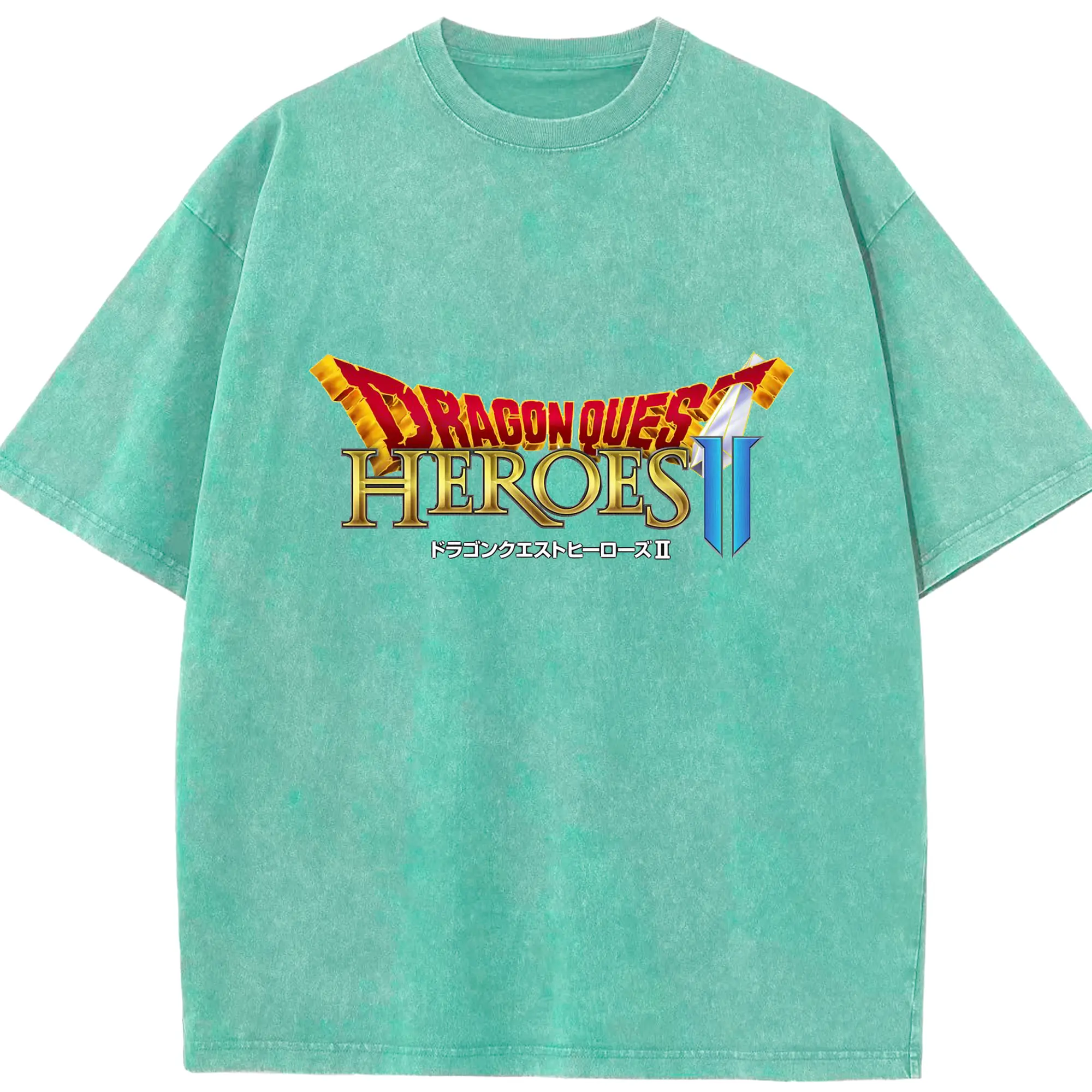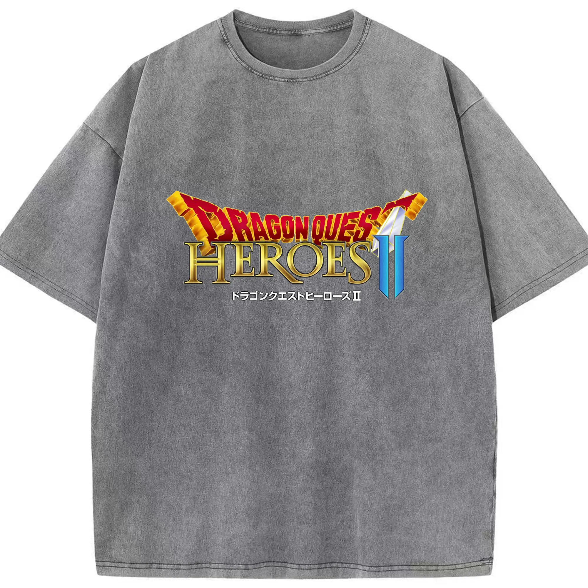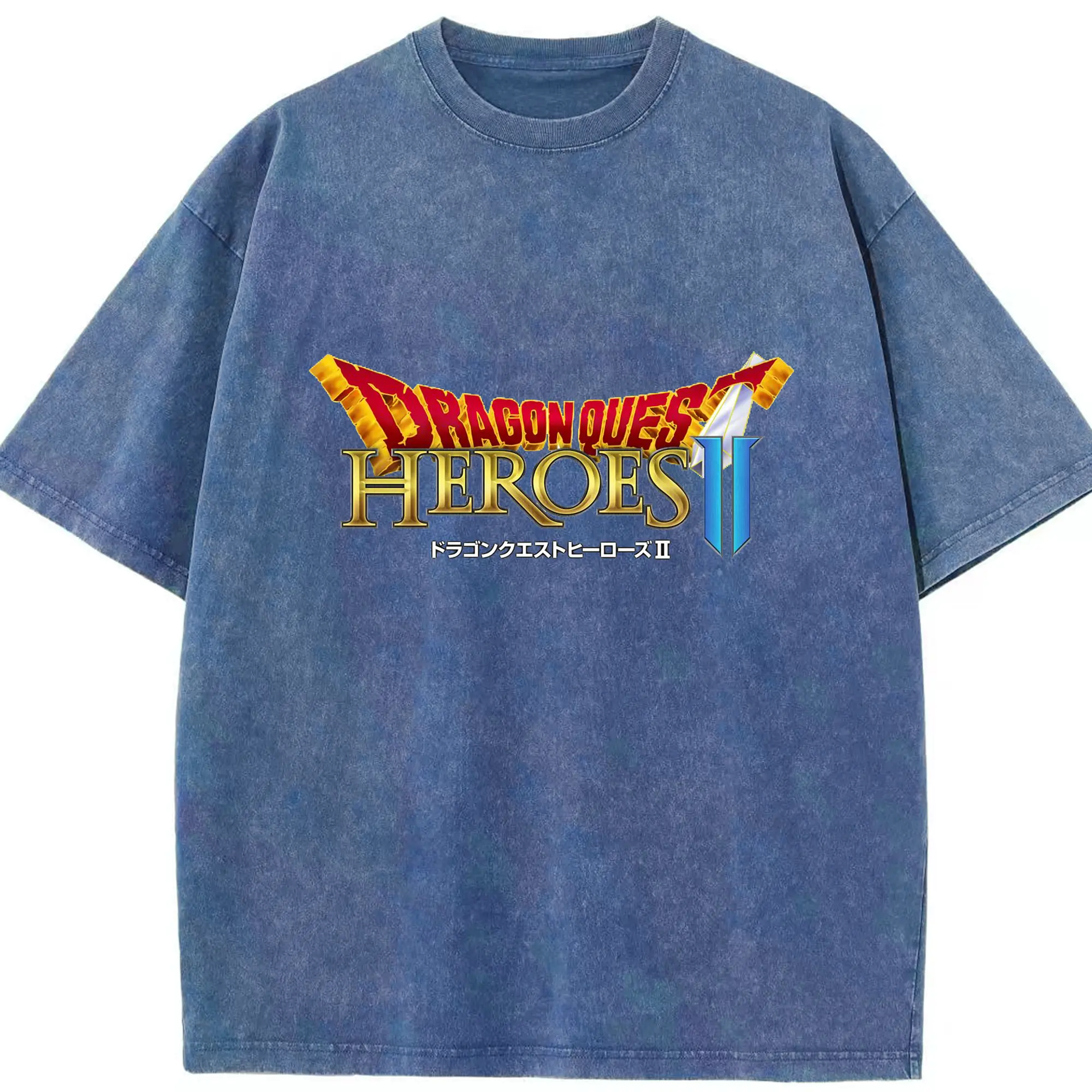 ドラゴンクエスト シンプルロゴ - 綿100% ヴィンテージ風 半袖Tシャツ ・ フロントプリント ・ 柔らか肌触り ・ 通気性 快適 ・ スポーツ カジュアル 外出用