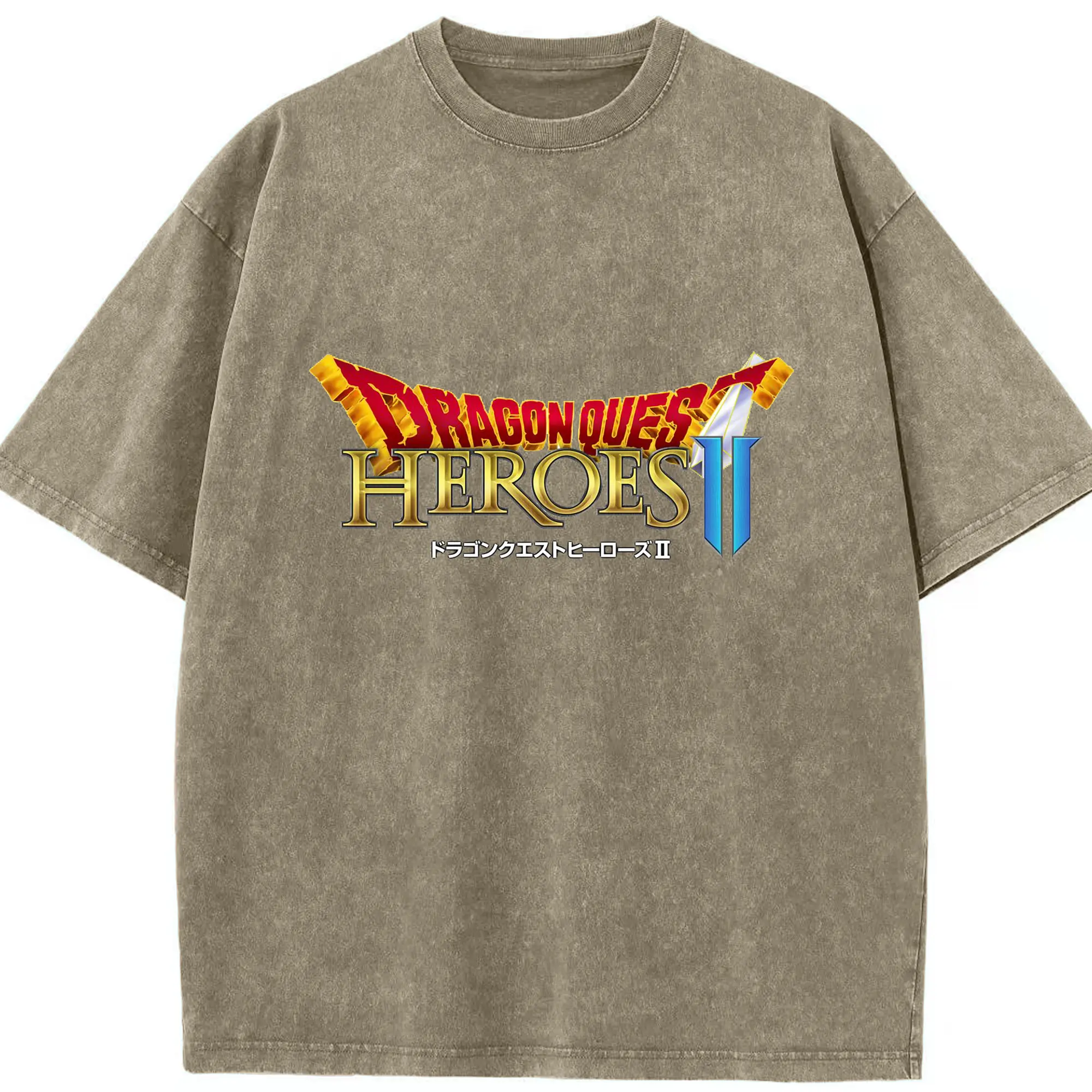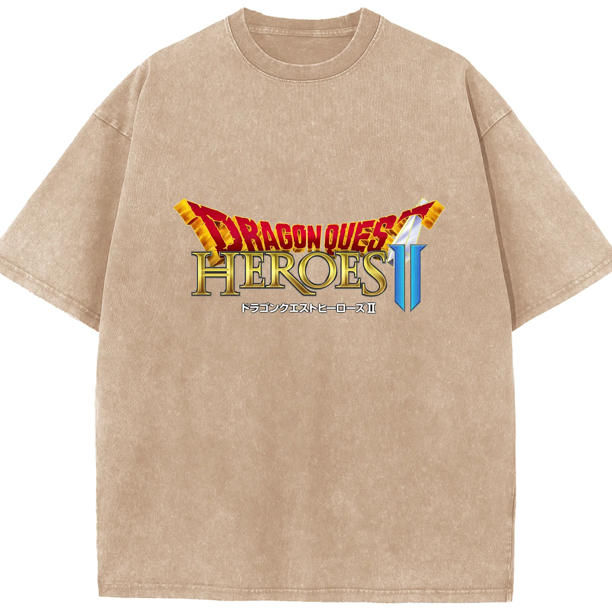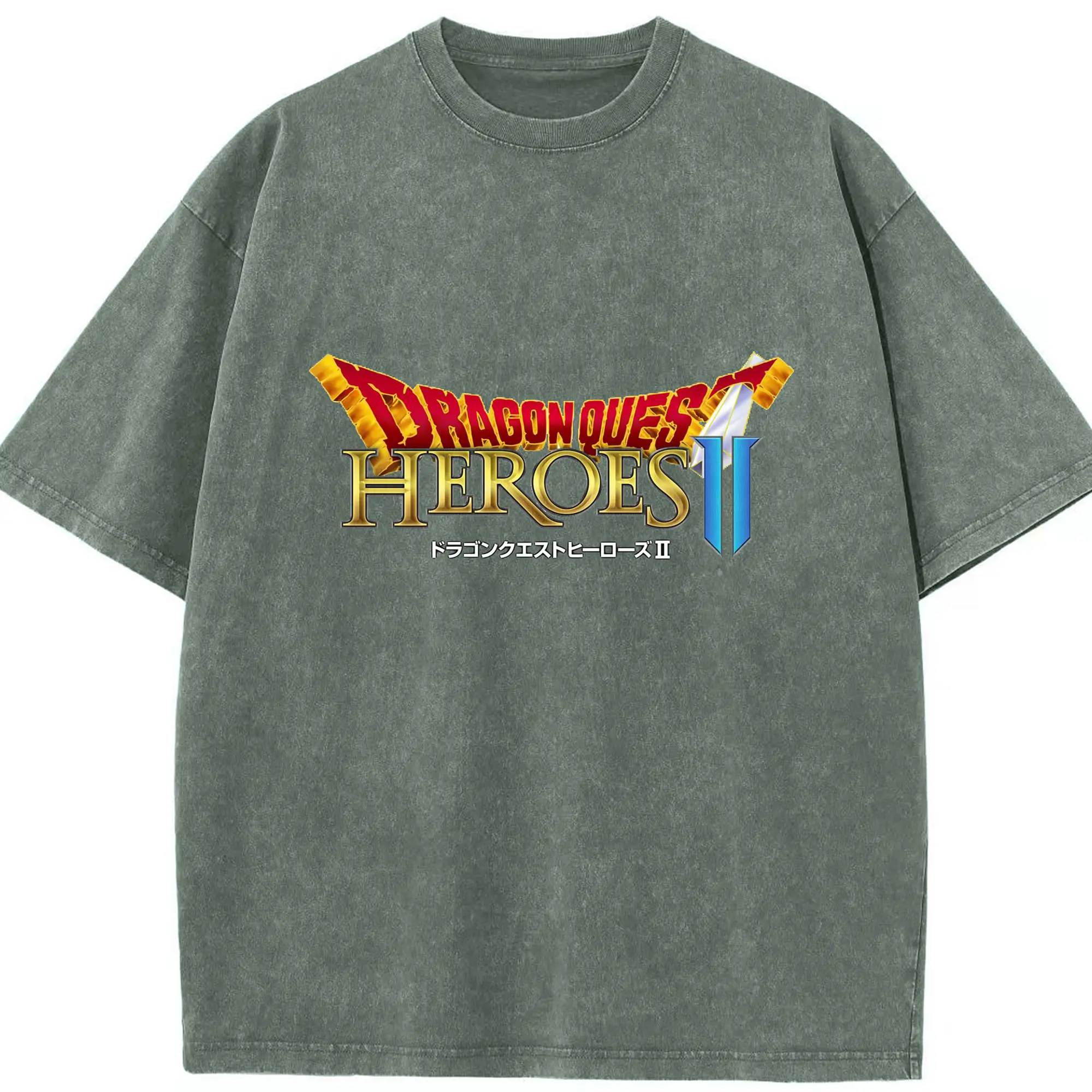ドラゴンクエスト シンプルロゴ - 綿100% ヴィンテージ風 半袖Tシャツ ・ フロントプリント ・ 柔らか肌触り ・ 通気性 快適 ・ スポーツ カジュアル 外出用