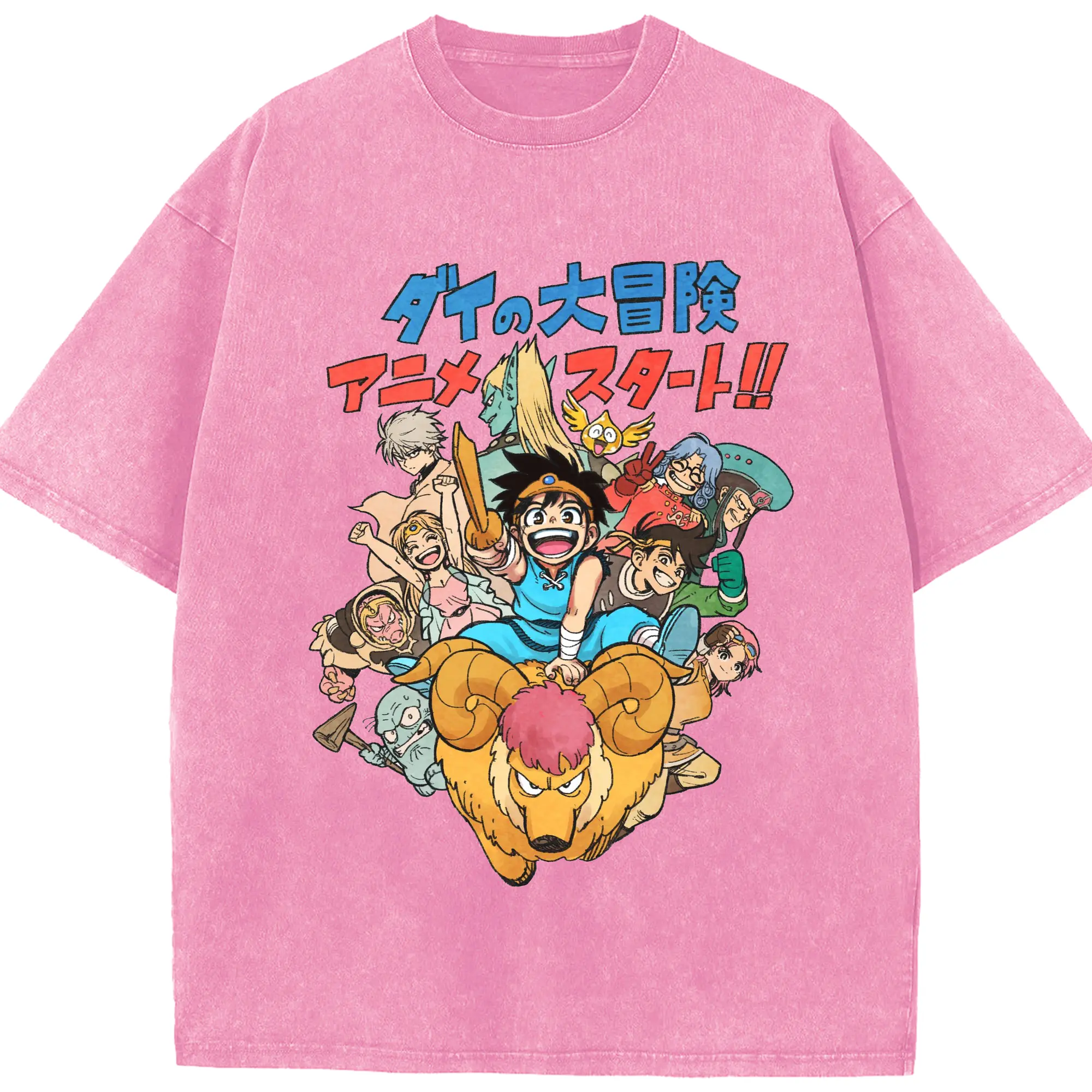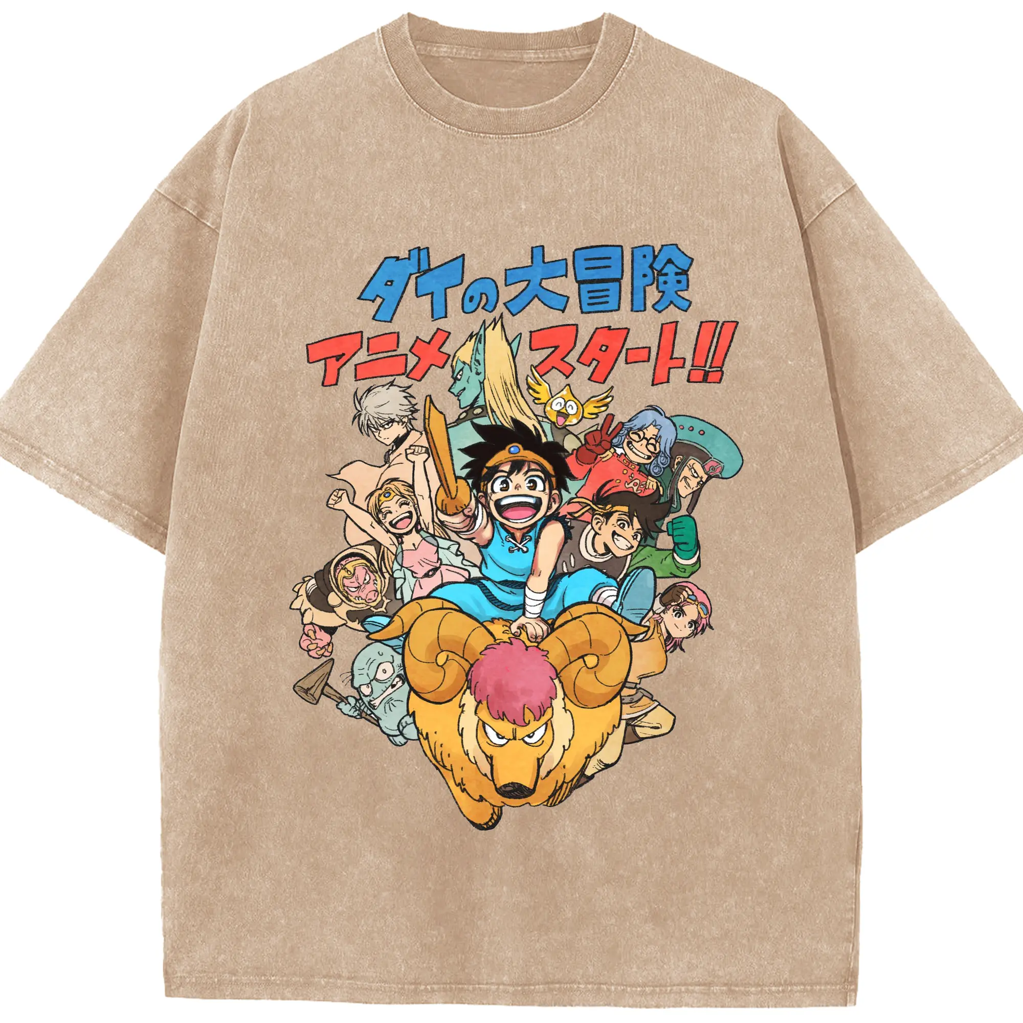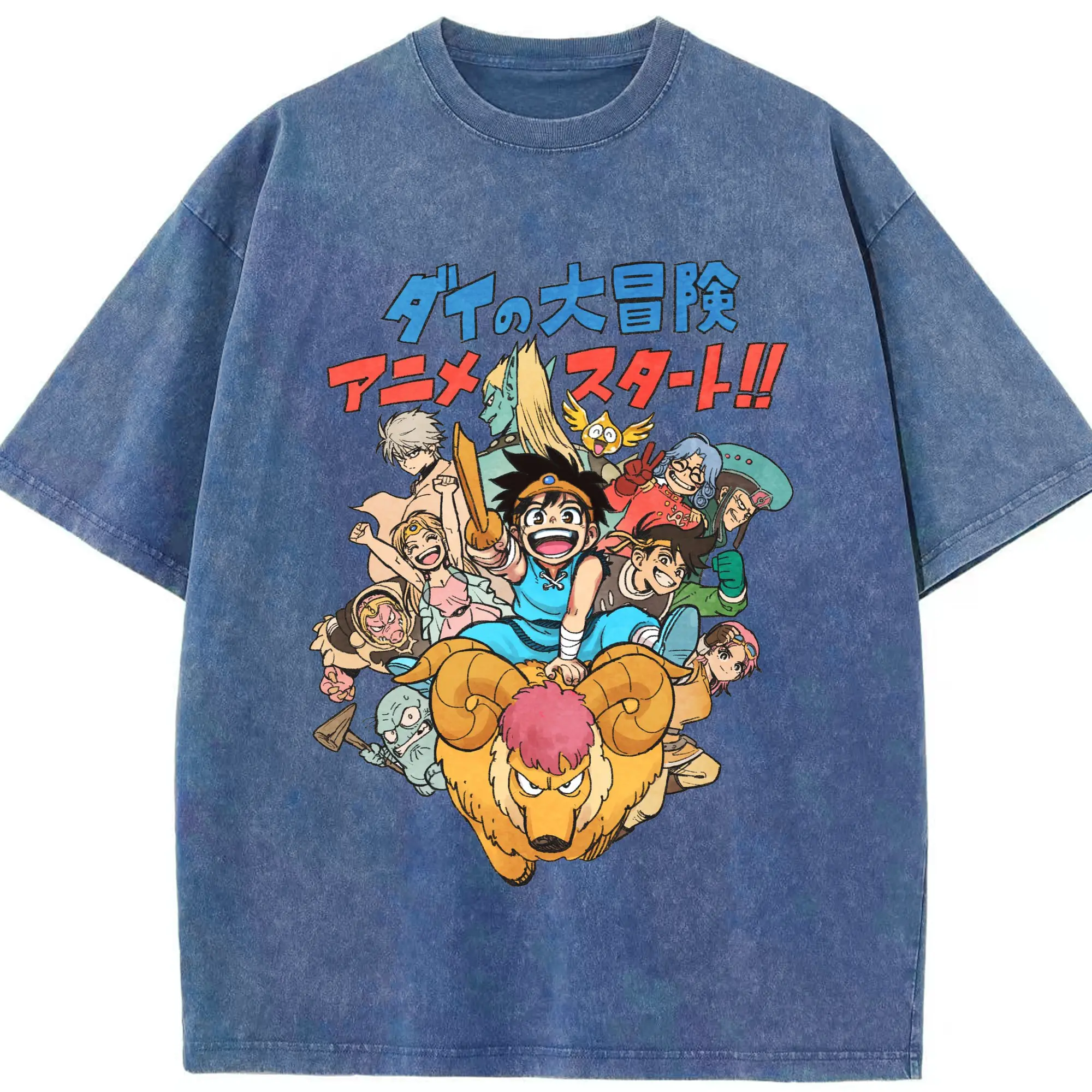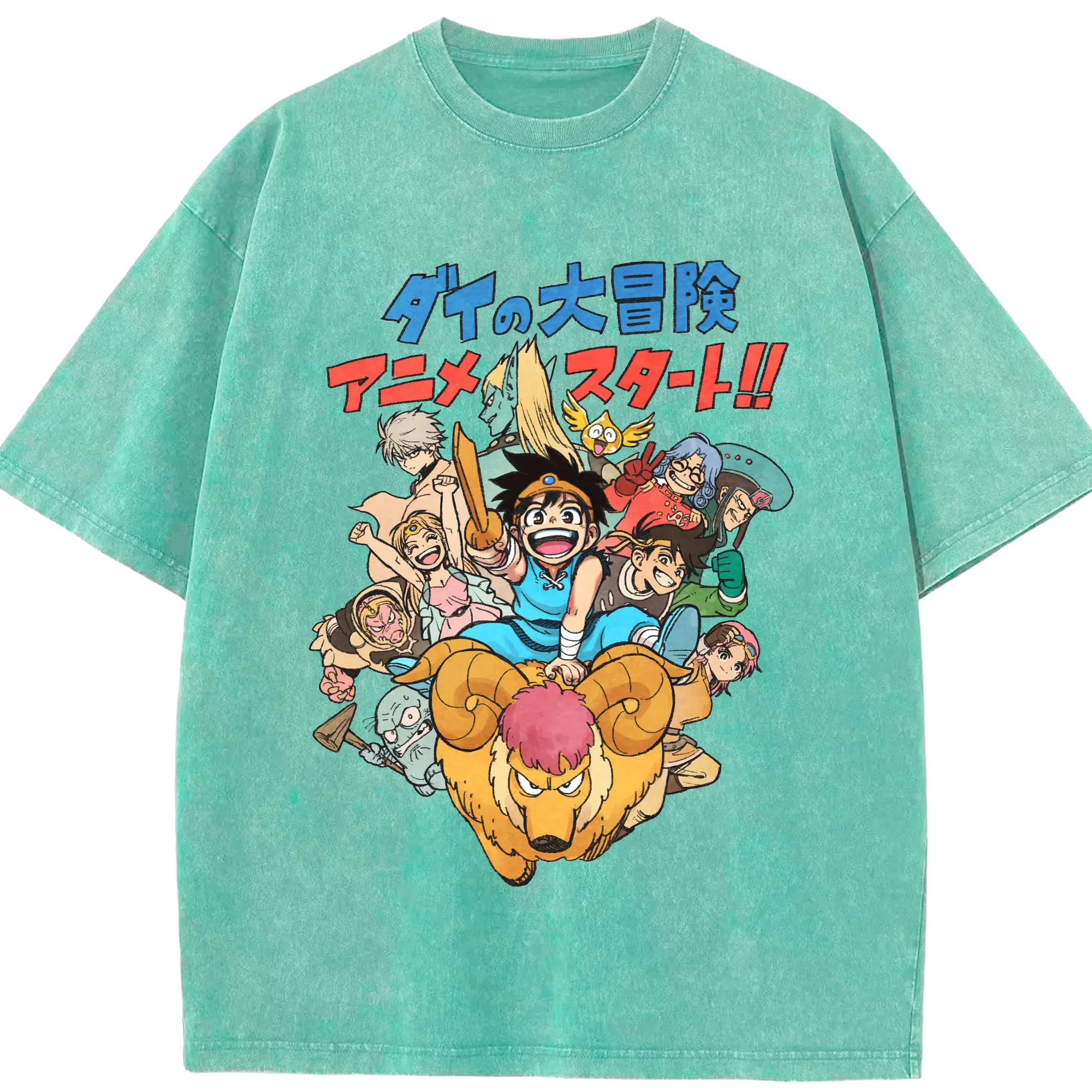 ドラゴンクエストダイの大冒険 アニメ スタート - 綿100% ヴィンテージ風 半袖Tシャツ ・ フロントプリント ・ 柔らか肌触り ・ 通気性 快適 ・ スポーツ カジュアル 外出用