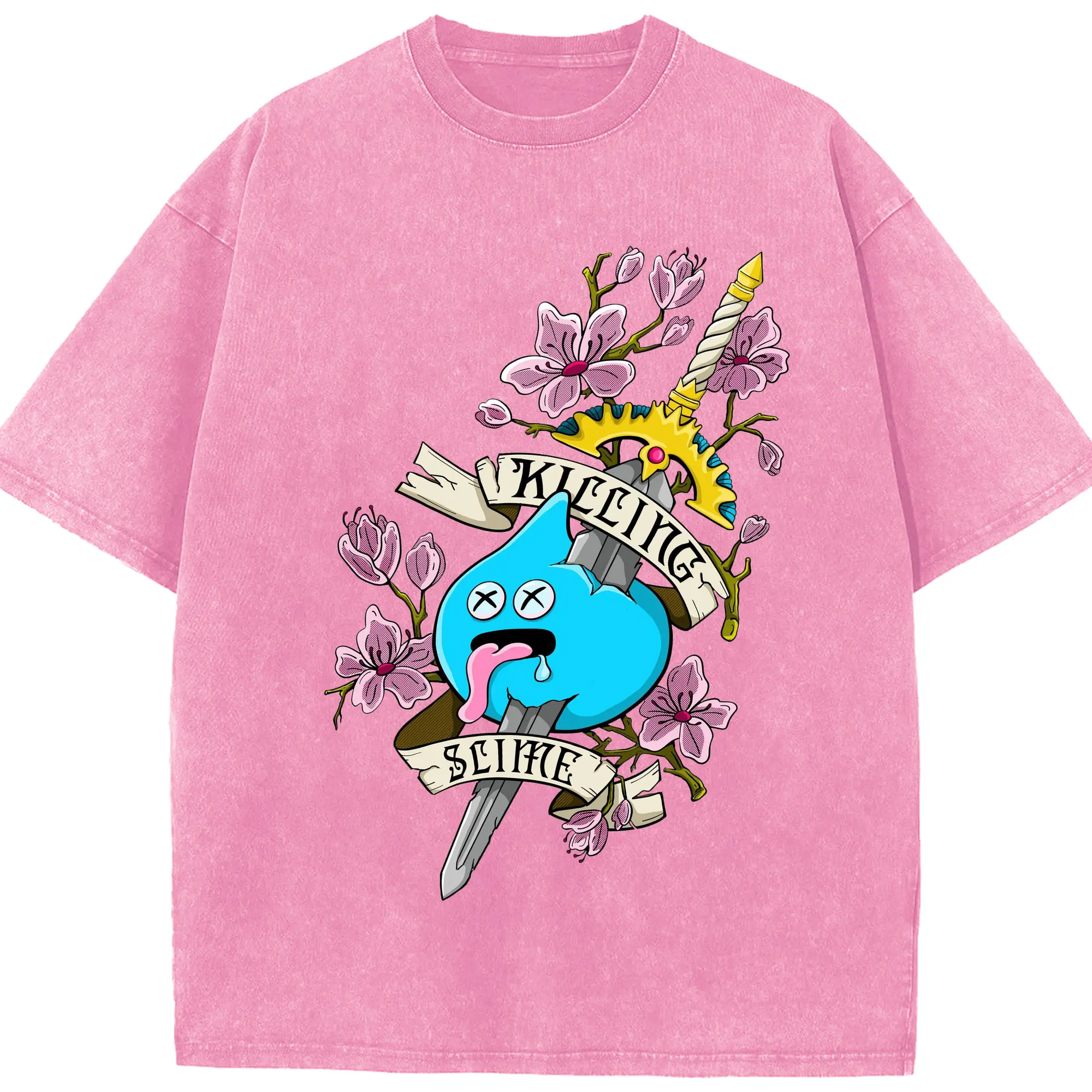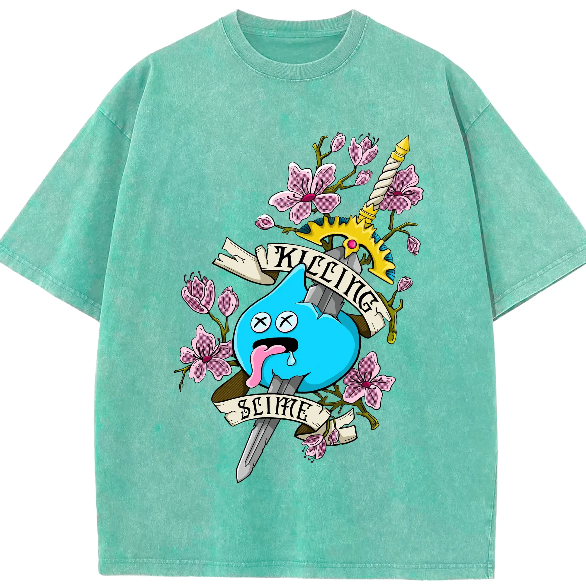 ドラゴンクエストスライム - 綿100% ヴィンテージ風 半袖Tシャツ ・ フロントプリント ・ 柔らか肌触り ・ 通気性 快適 ・ スポーツ カジュアル 外出用