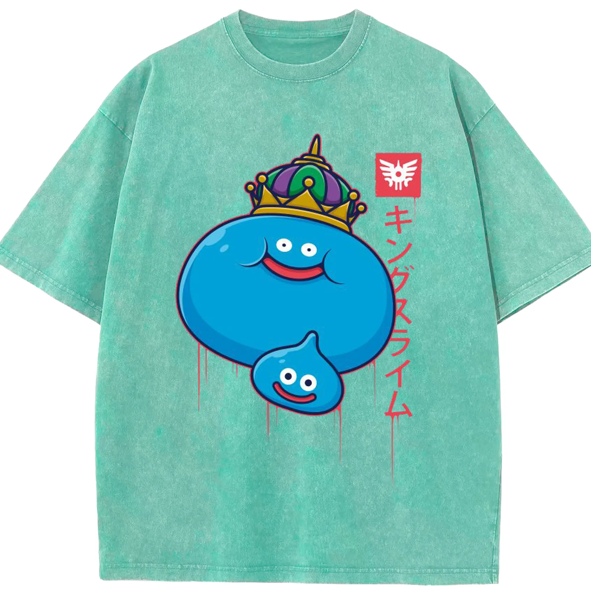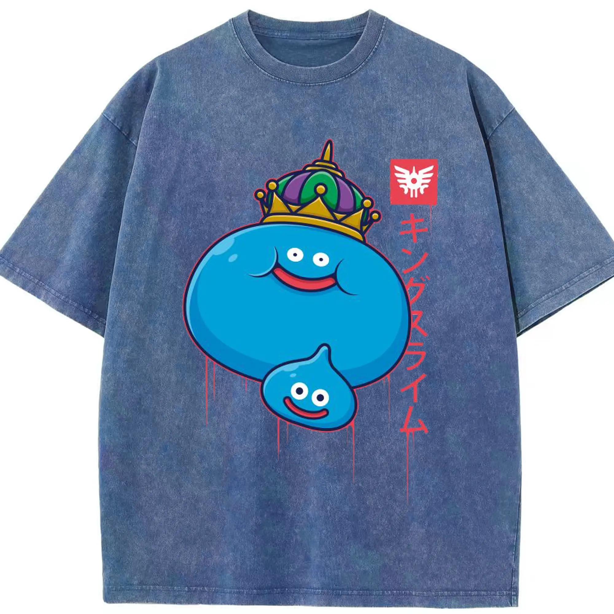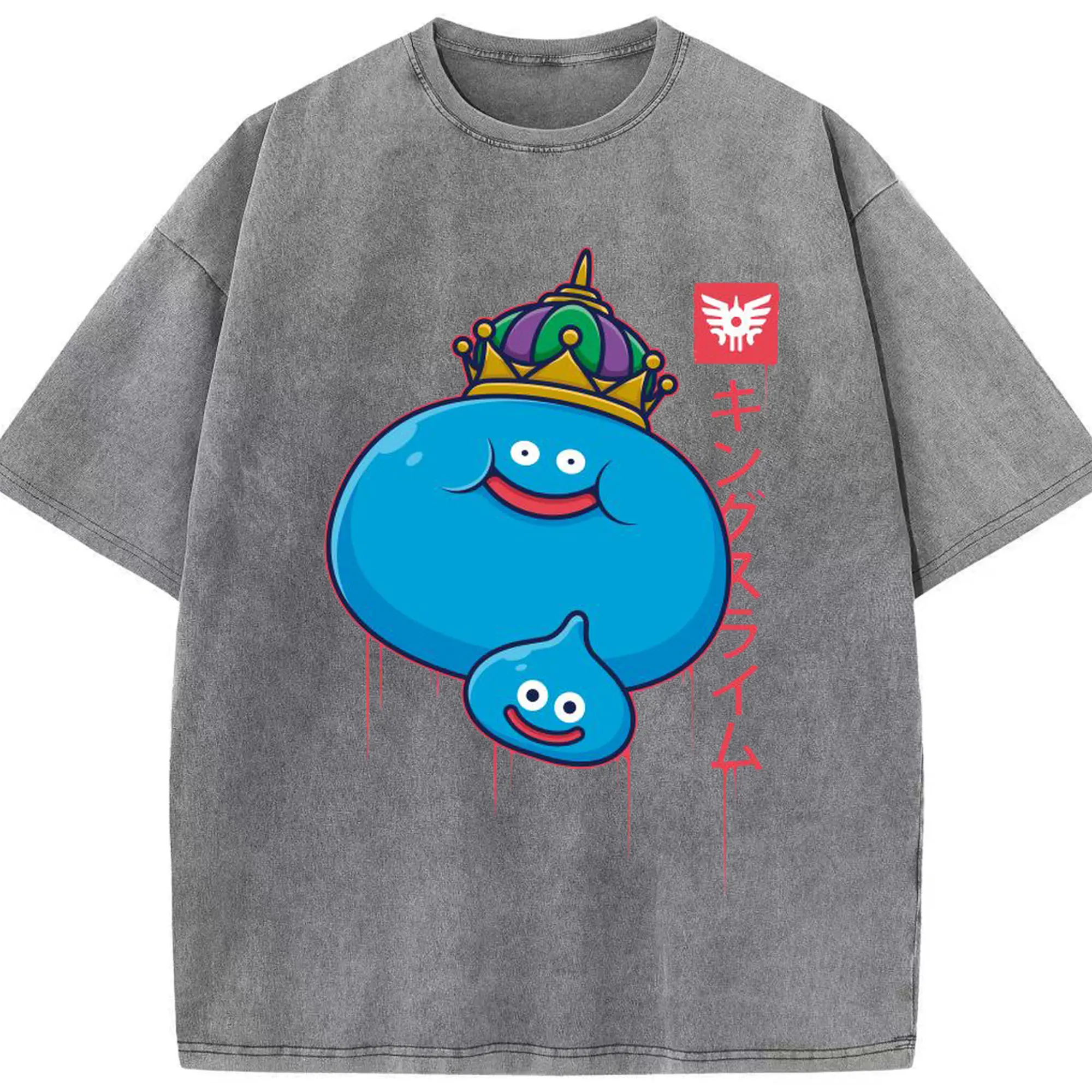 ドラゴンクエスト スライム - 綿100% ヴィンテージ風 半袖Tシャツ ・ フロントプリント ・ 柔らか肌触り ・ 通気性 快適 ・ スポーツ カジュアル 外出用