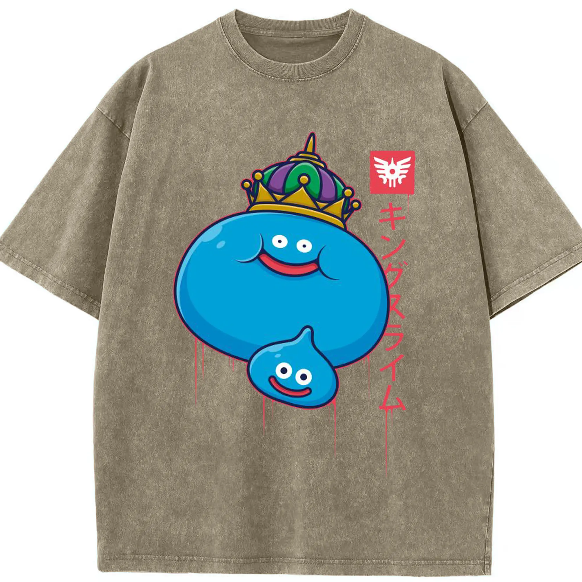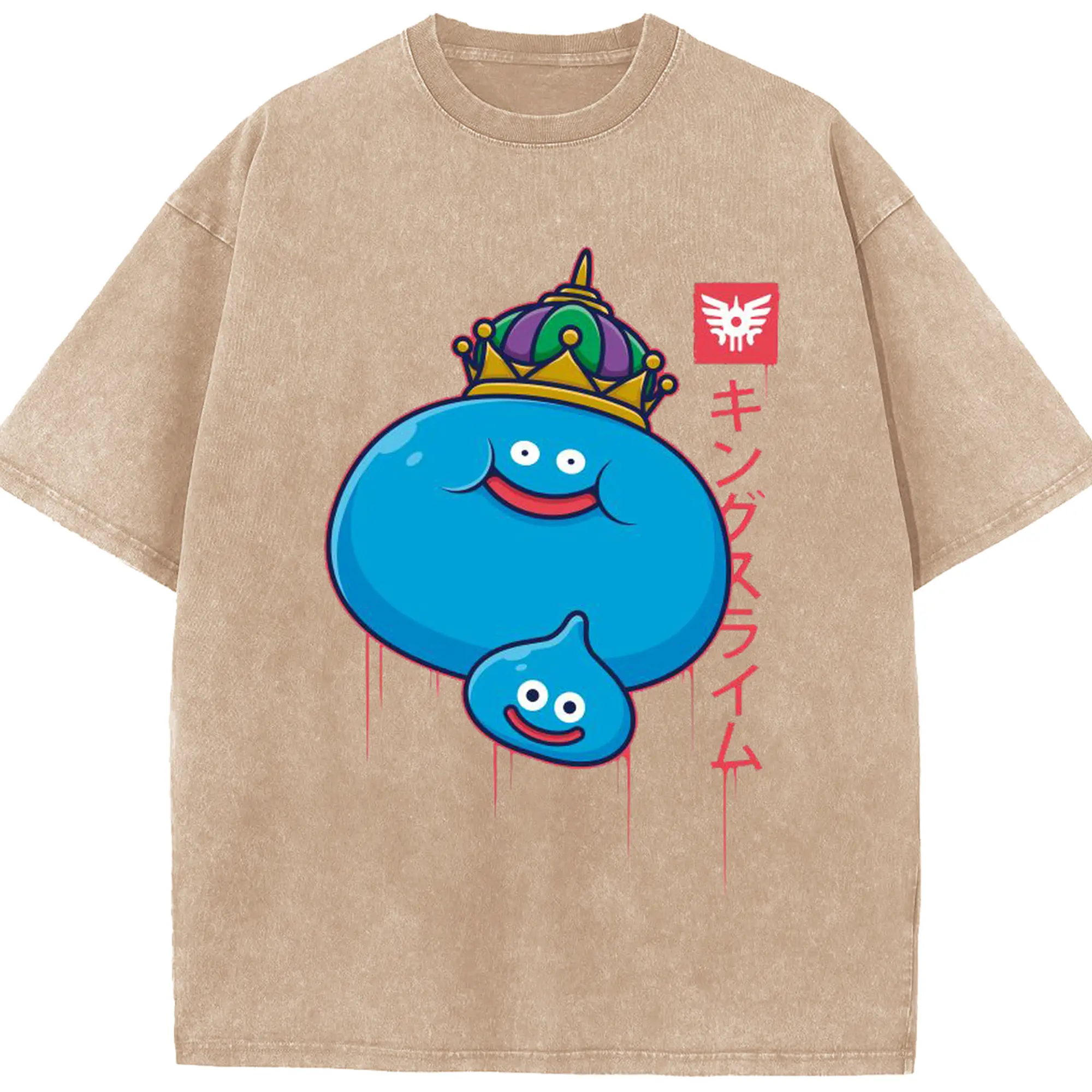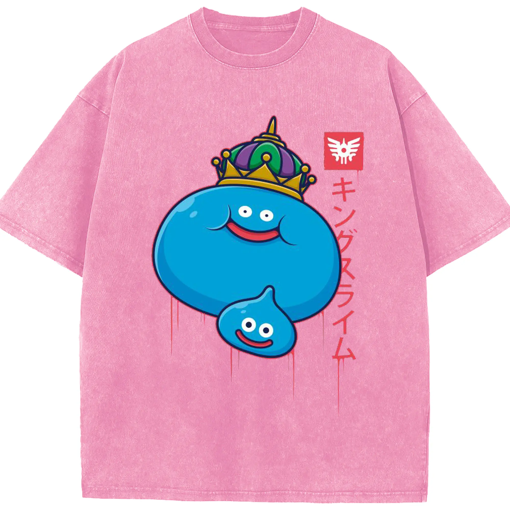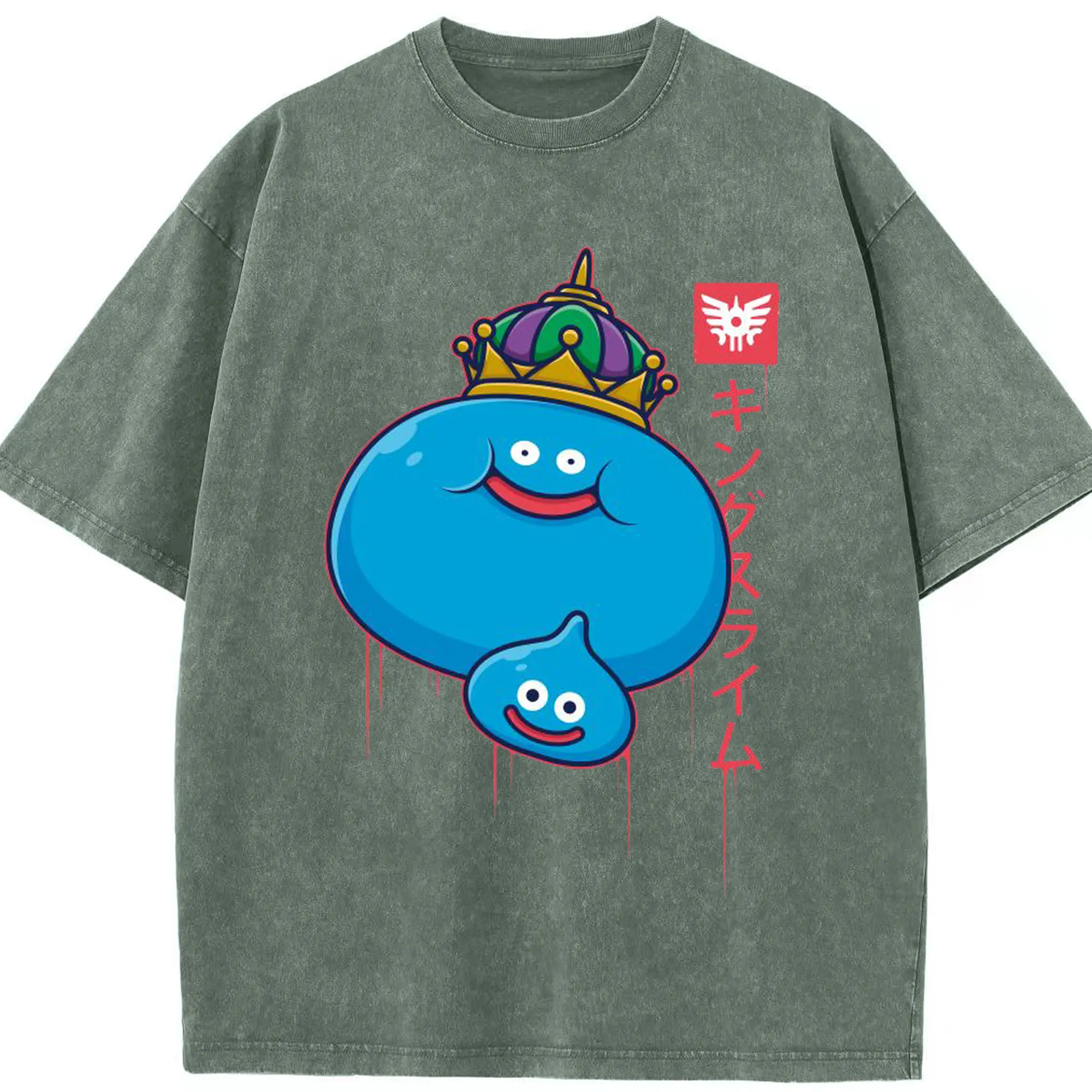 ドラゴンクエスト スライム - 綿100% ヴィンテージ風 半袖Tシャツ ・ フロントプリント ・ 柔らか肌触り ・ 通気性 快適 ・ スポーツ カジュアル 外出用