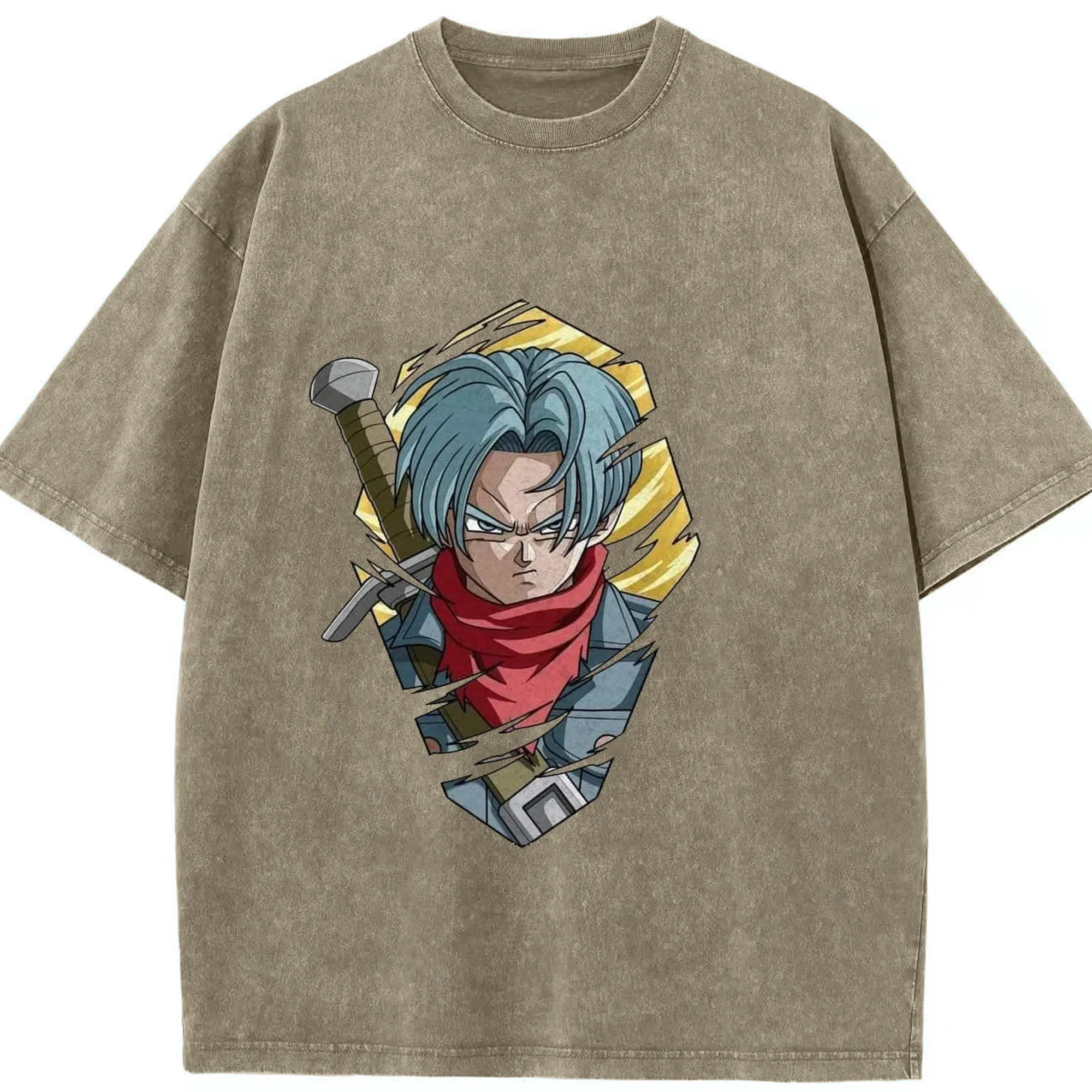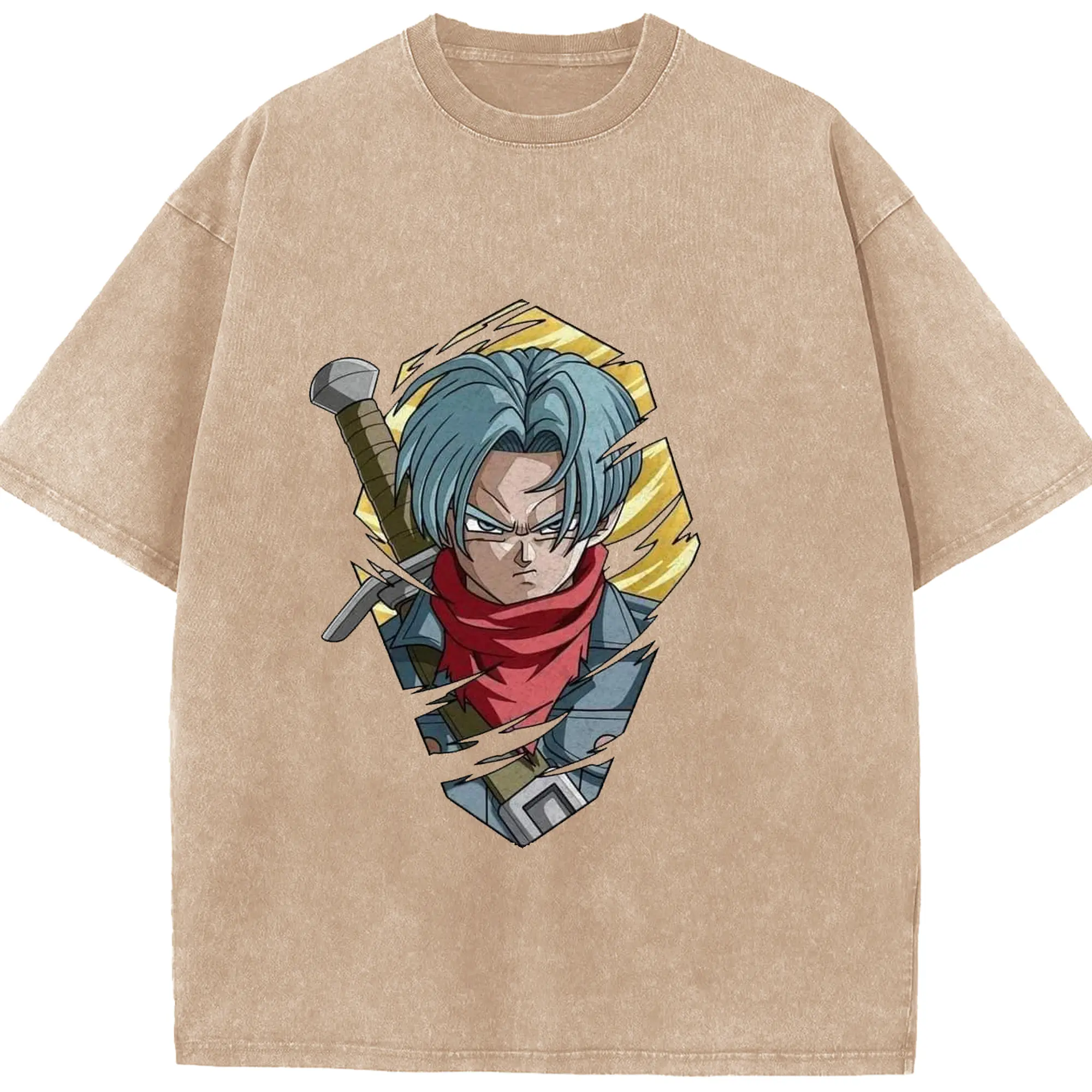 ドラゴンボール トランクス - 綿100% ヴィンテージ風 半袖Tシャツ ・ フロントプリント ・ 柔らか肌触り ・ 通気性 快適 ・ スポーツ カジュアル 外出用