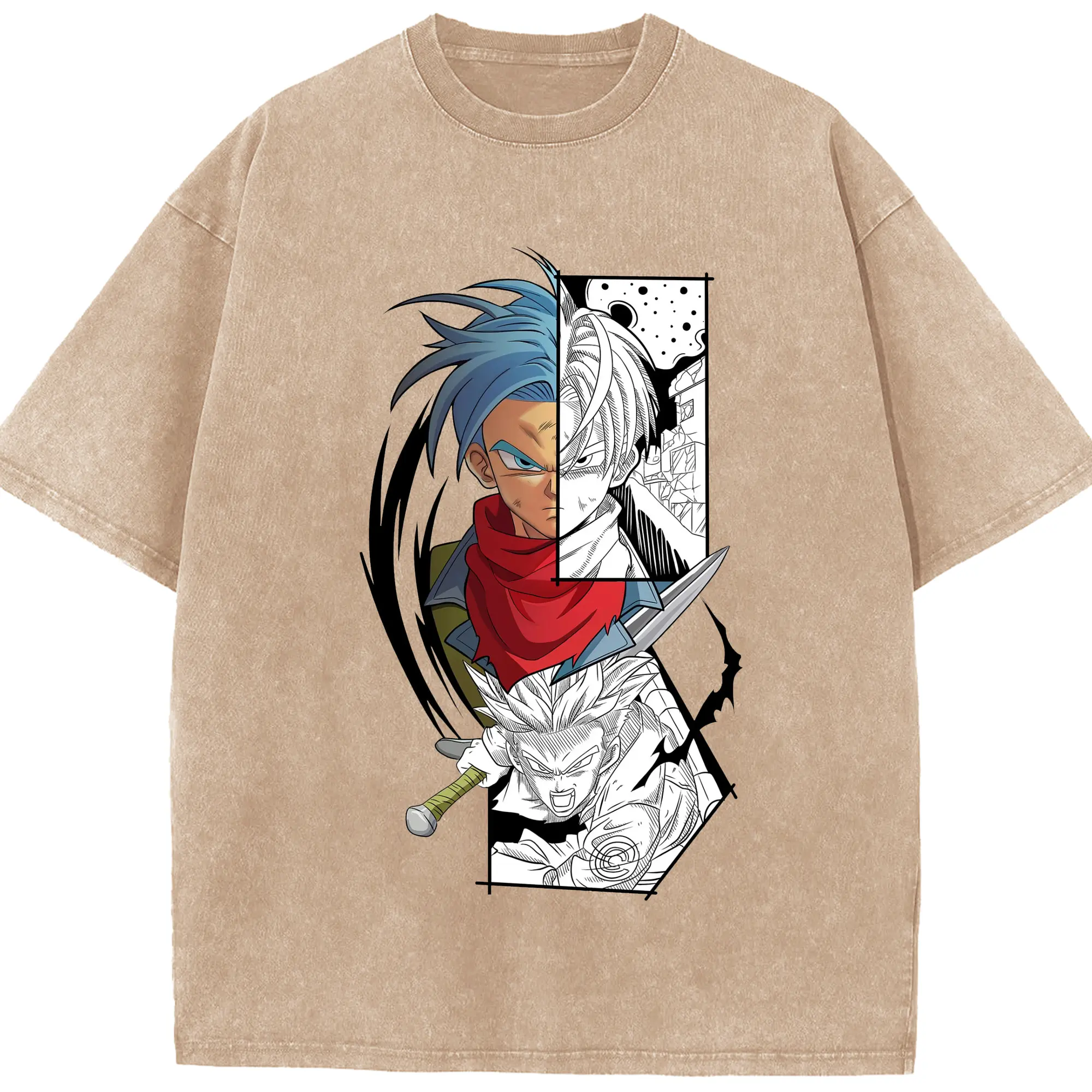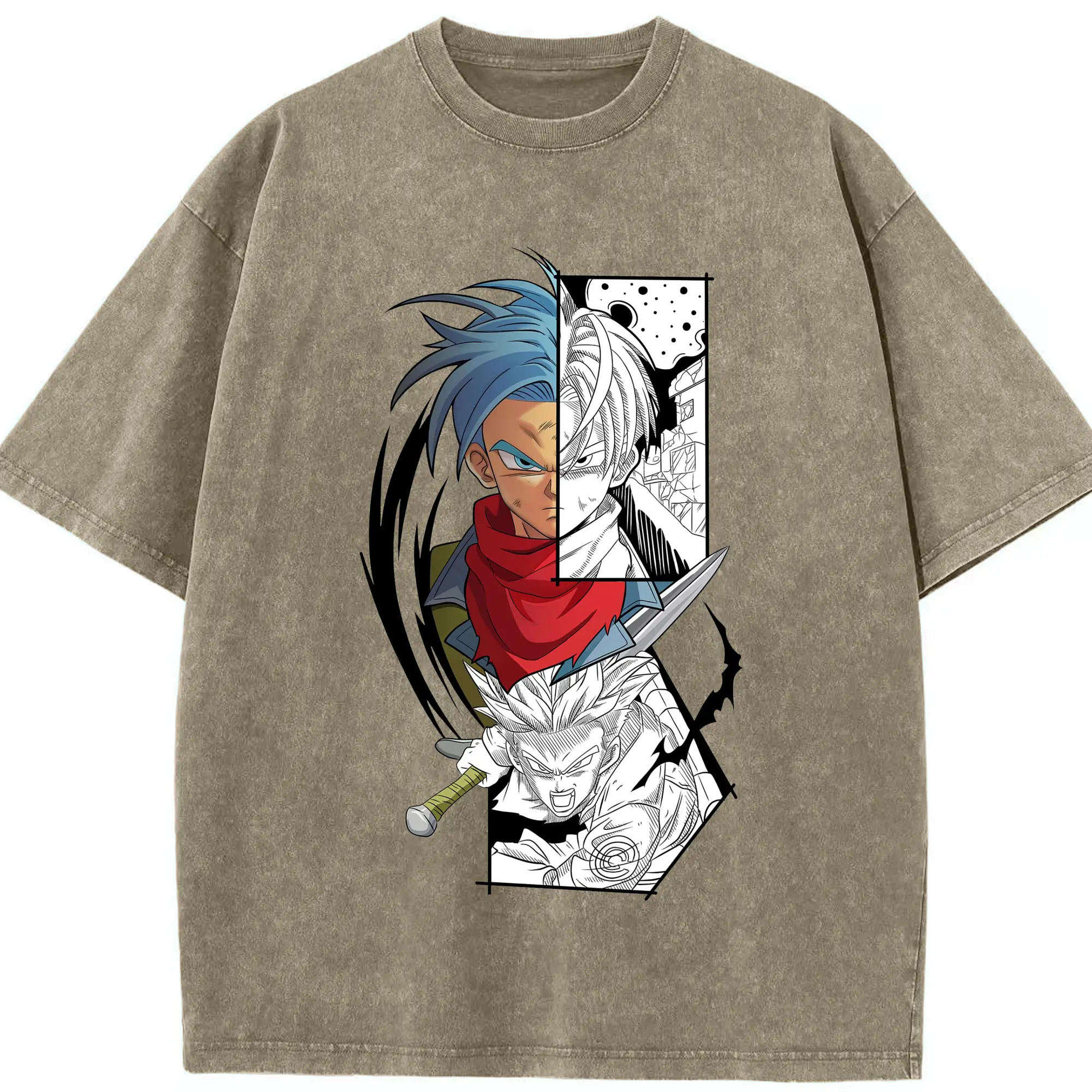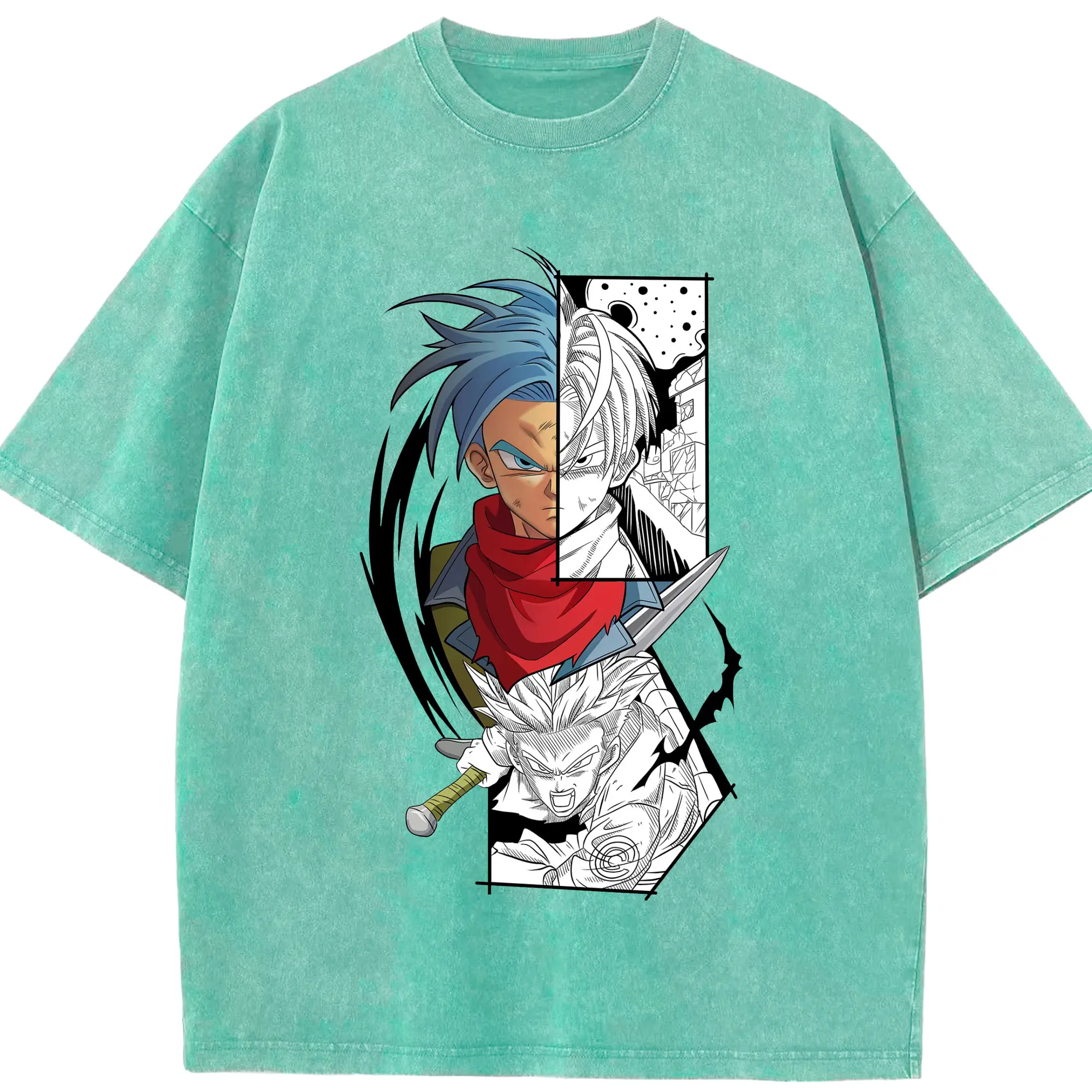 ドラゴンボール トランクス - 綿100% ヴィンテージ風 半袖Tシャツ ・ フロントプリント ・ 柔らか肌触り ・ 通気性 快適 ・ スポーツ カジュアル 外出用