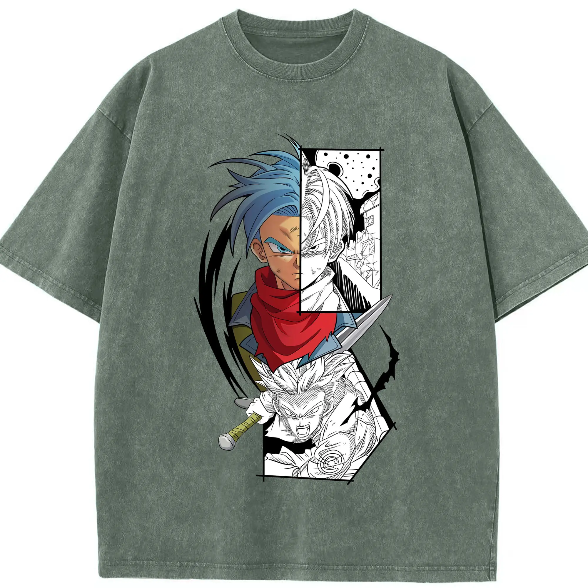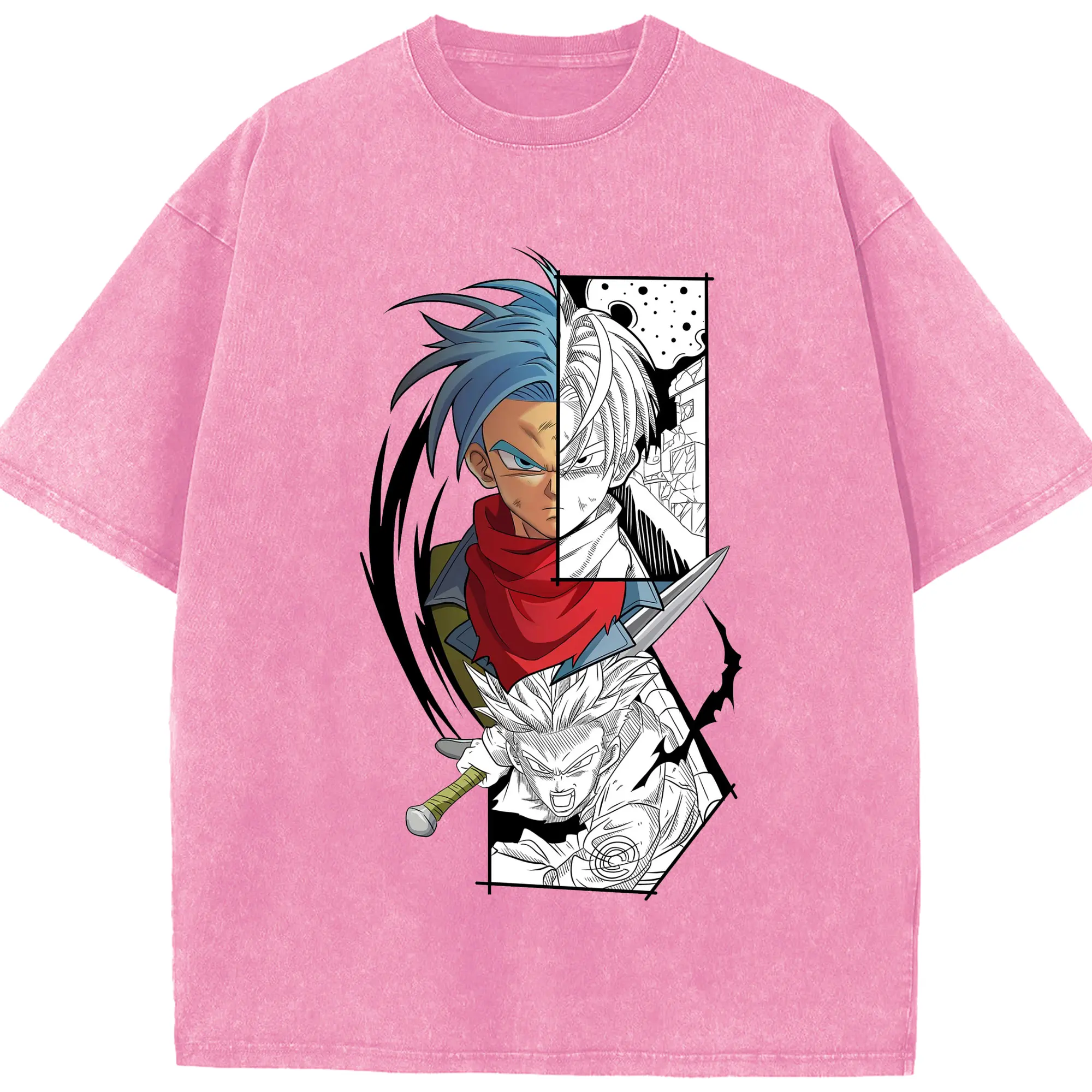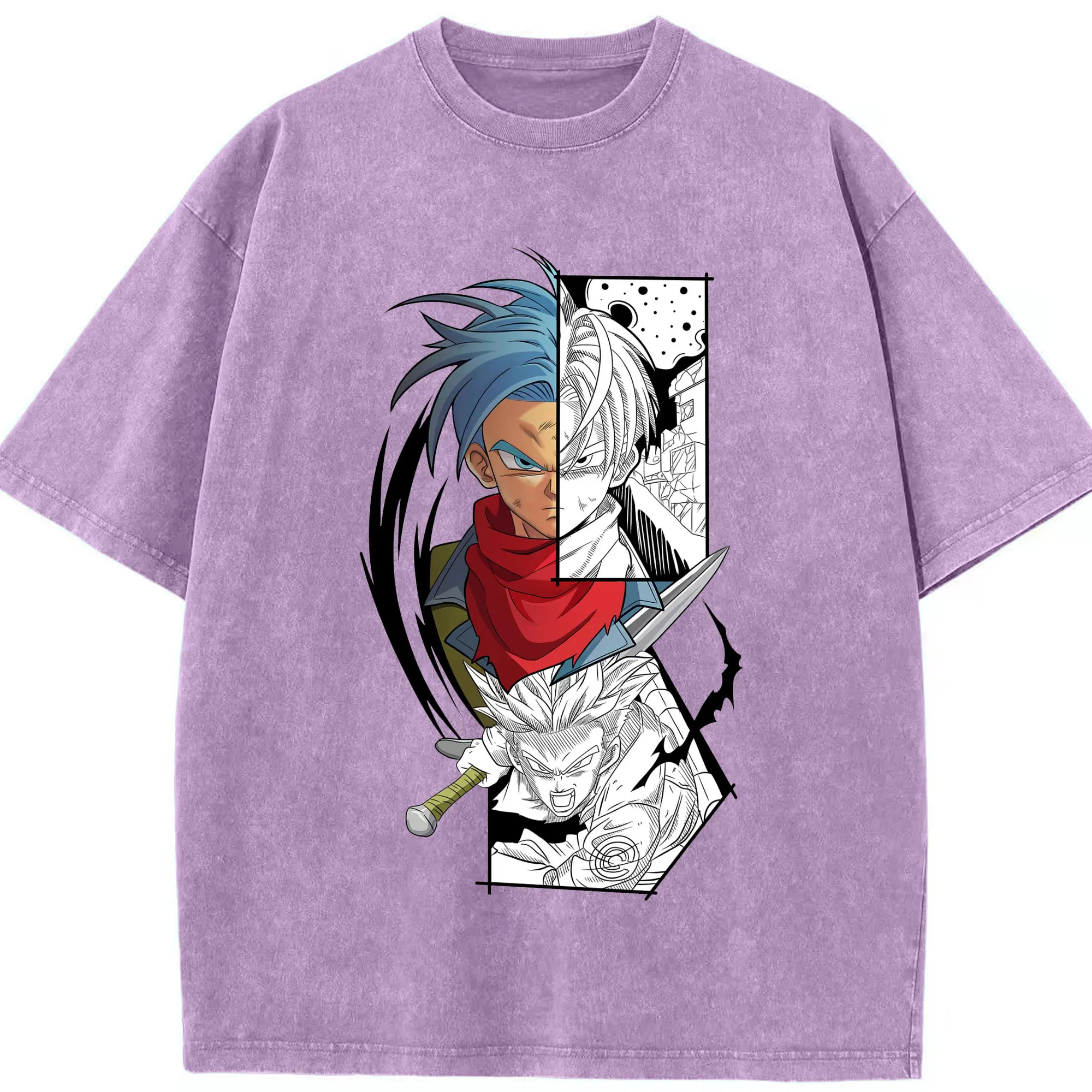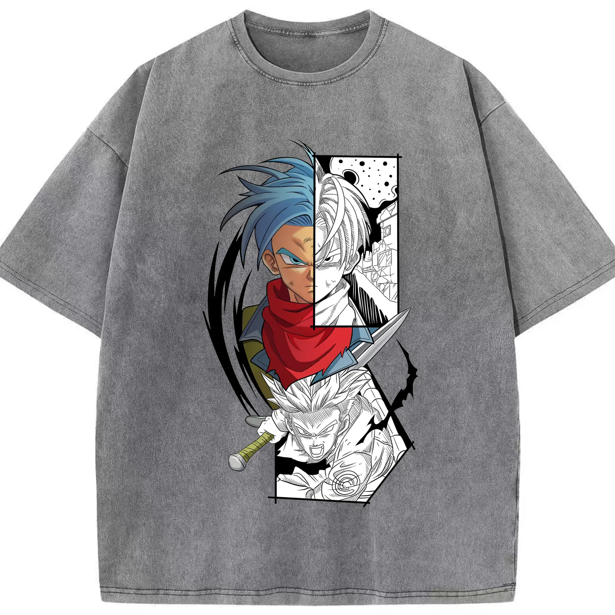 ドラゴンボール トランクス - 綿100% ヴィンテージ風 半袖Tシャツ ・ フロントプリント ・ 柔らか肌触り ・ 通気性 快適 ・ スポーツ カジュアル 外出用
