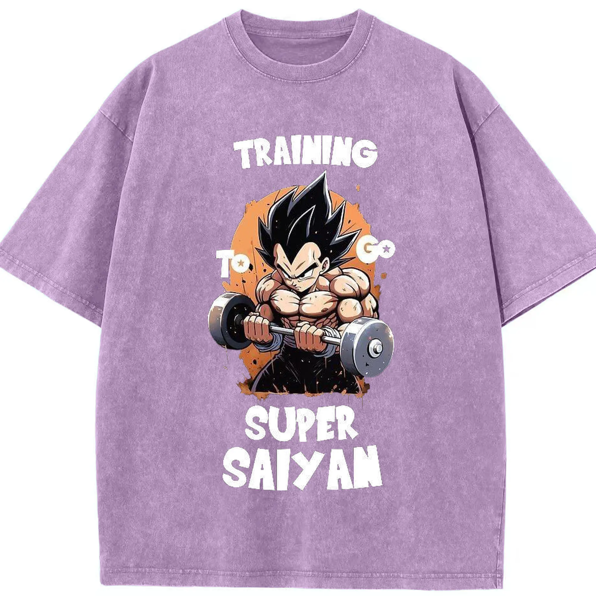 ドラゴンボール ベジータGYM トレーニング特別限定 - 綿100% ヴィンテージ風 半袖Tシャツ ・ フロントプリント ・ 柔らか肌触り ・ 通気性 快適 ・ スポーツ カジュアル 外出用