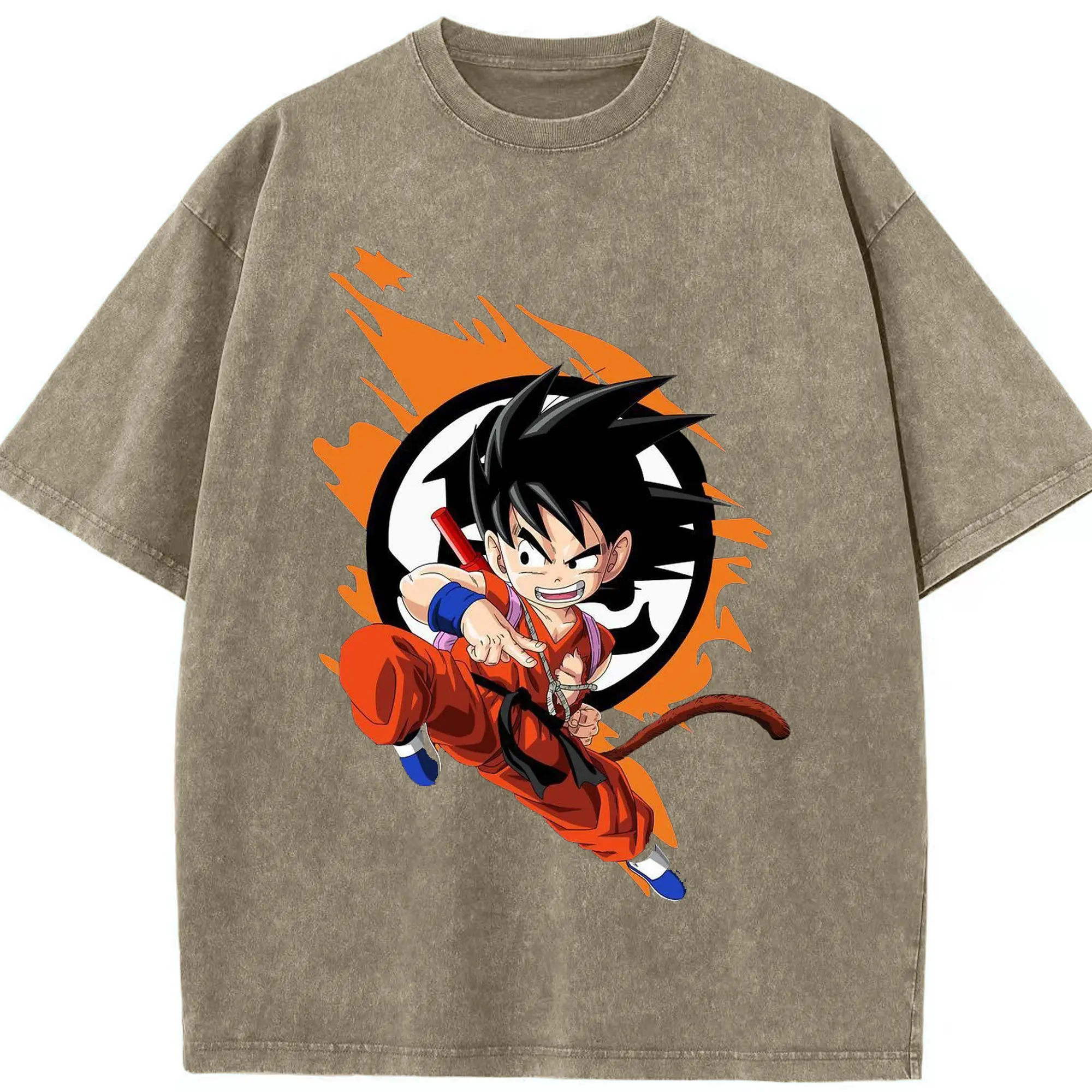ドラゴンボール 孫悟空 - 綿100% ヴィンテージ風 半袖Tシャツ ・ フロントプリント ・ 柔らか肌触り ・ 通気性 快適 ・ スポーツ カジュアル 外出用