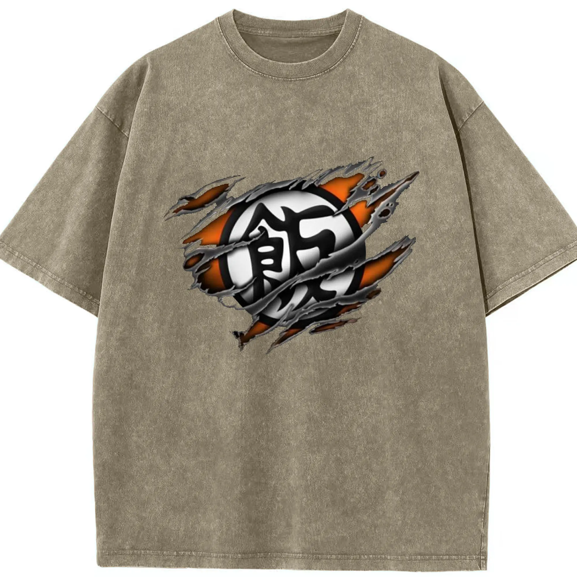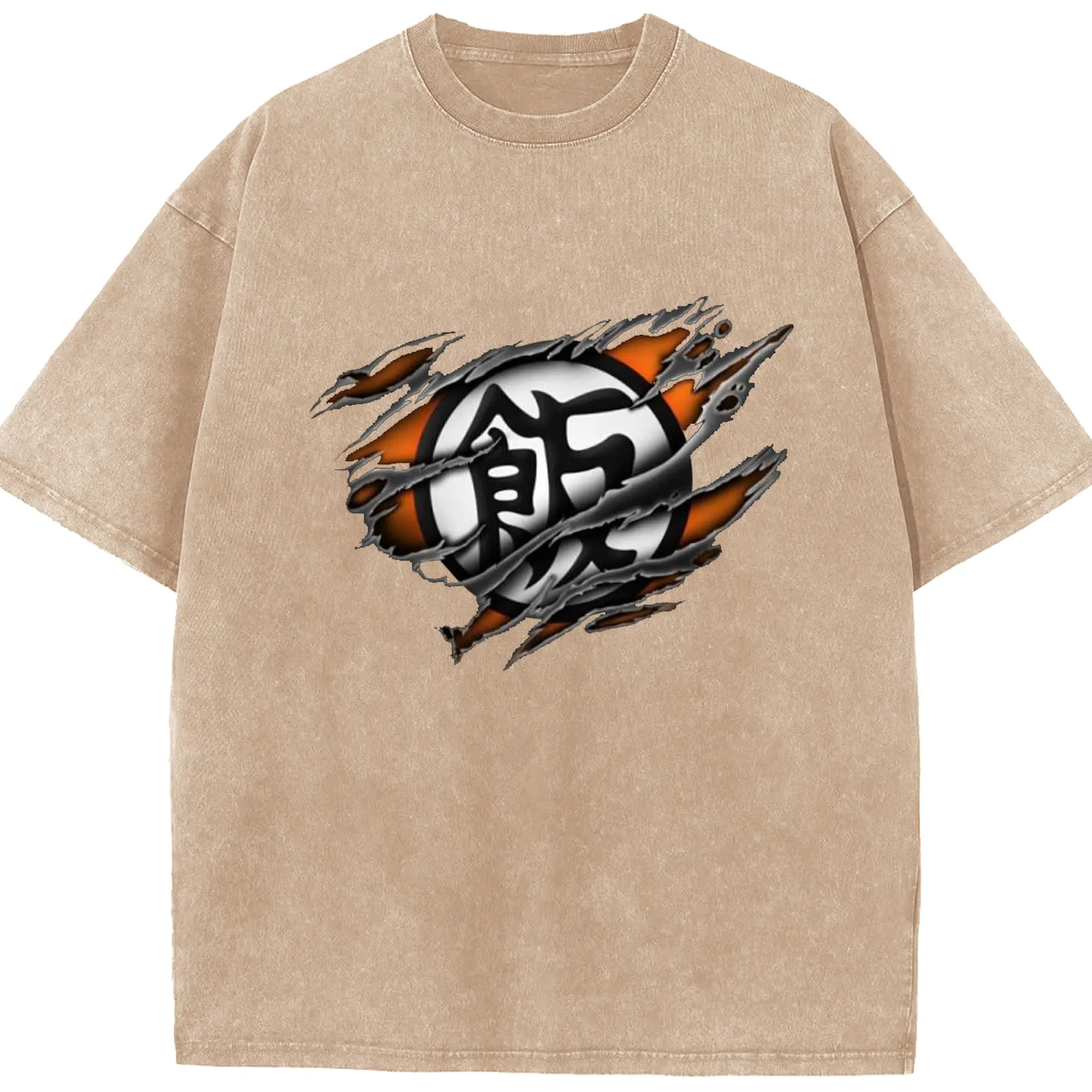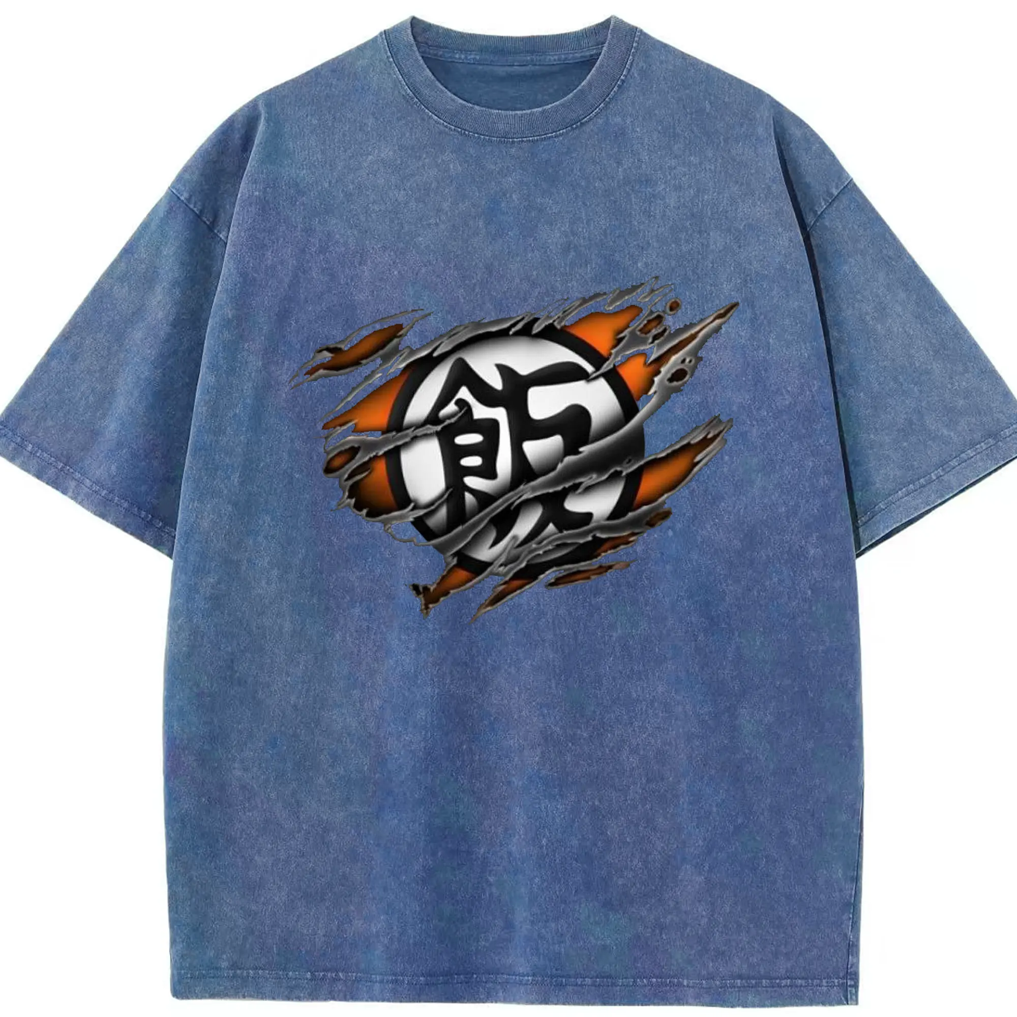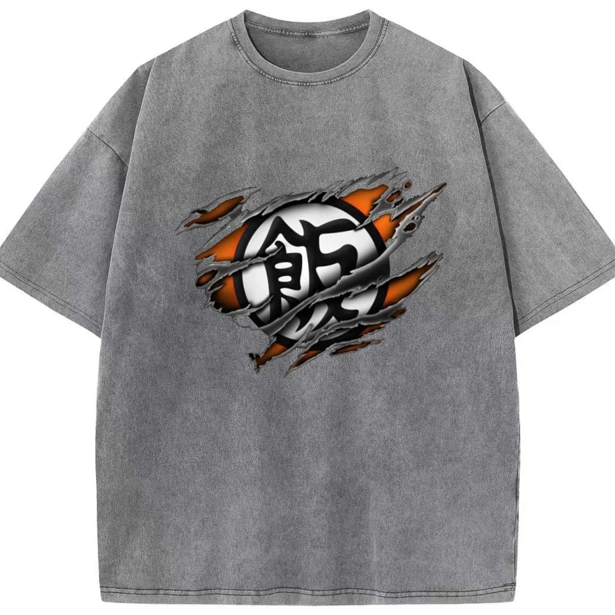 ドラゴンボール 孫悟飯 シンプルロゴ - 綿100% ヴィンテージ風 半袖Tシャツ ・ フロントプリント ・ 柔らか肌触り ・ 通気性 快適 ・ スポーツ カジュアル 外出用