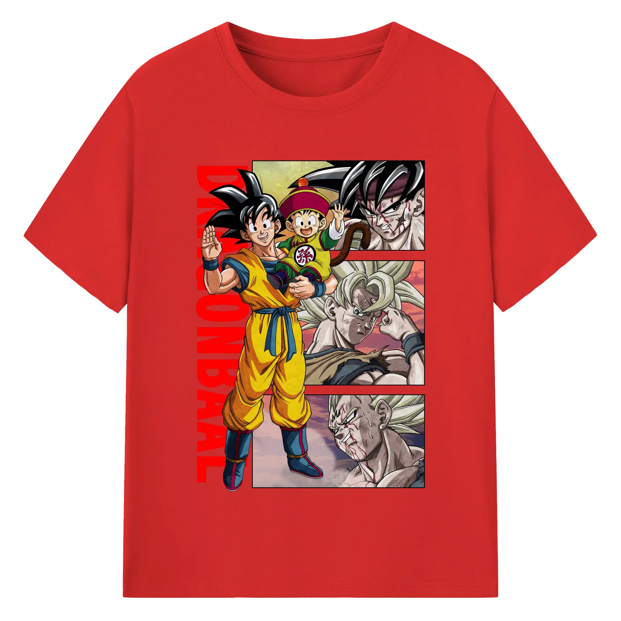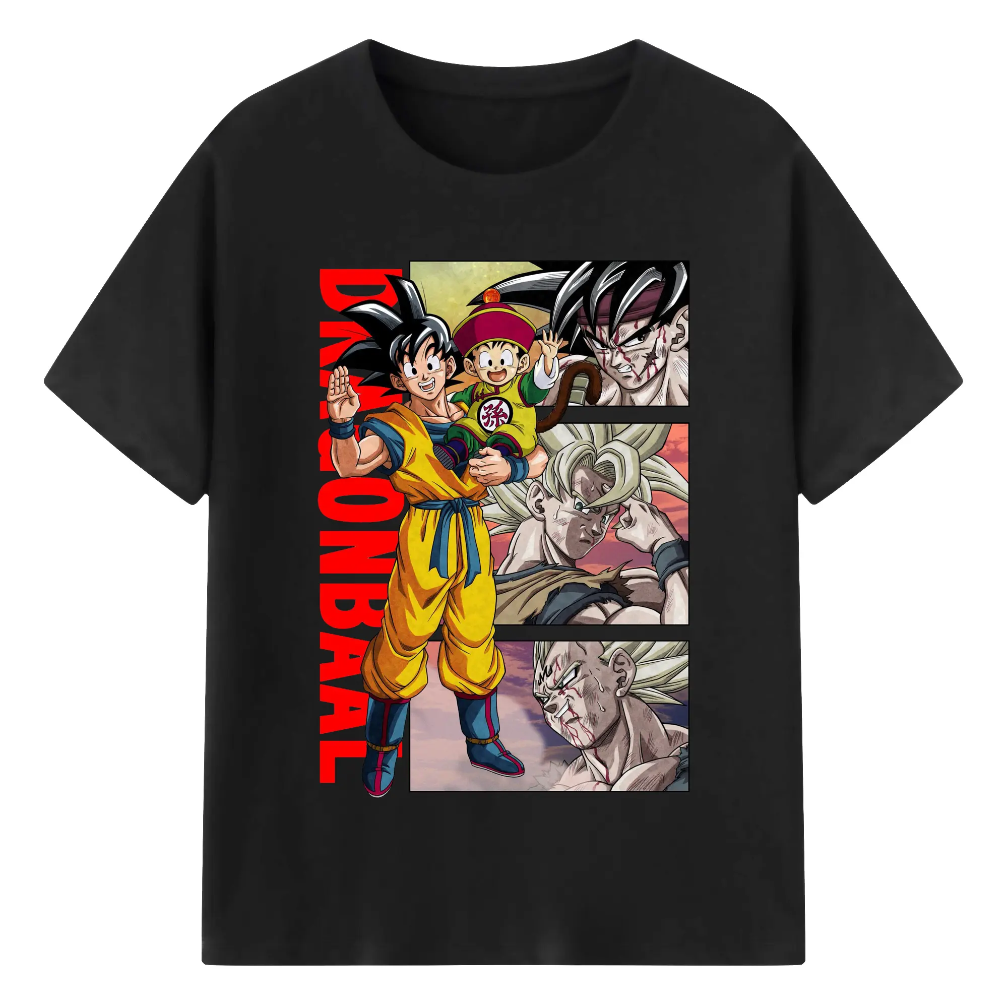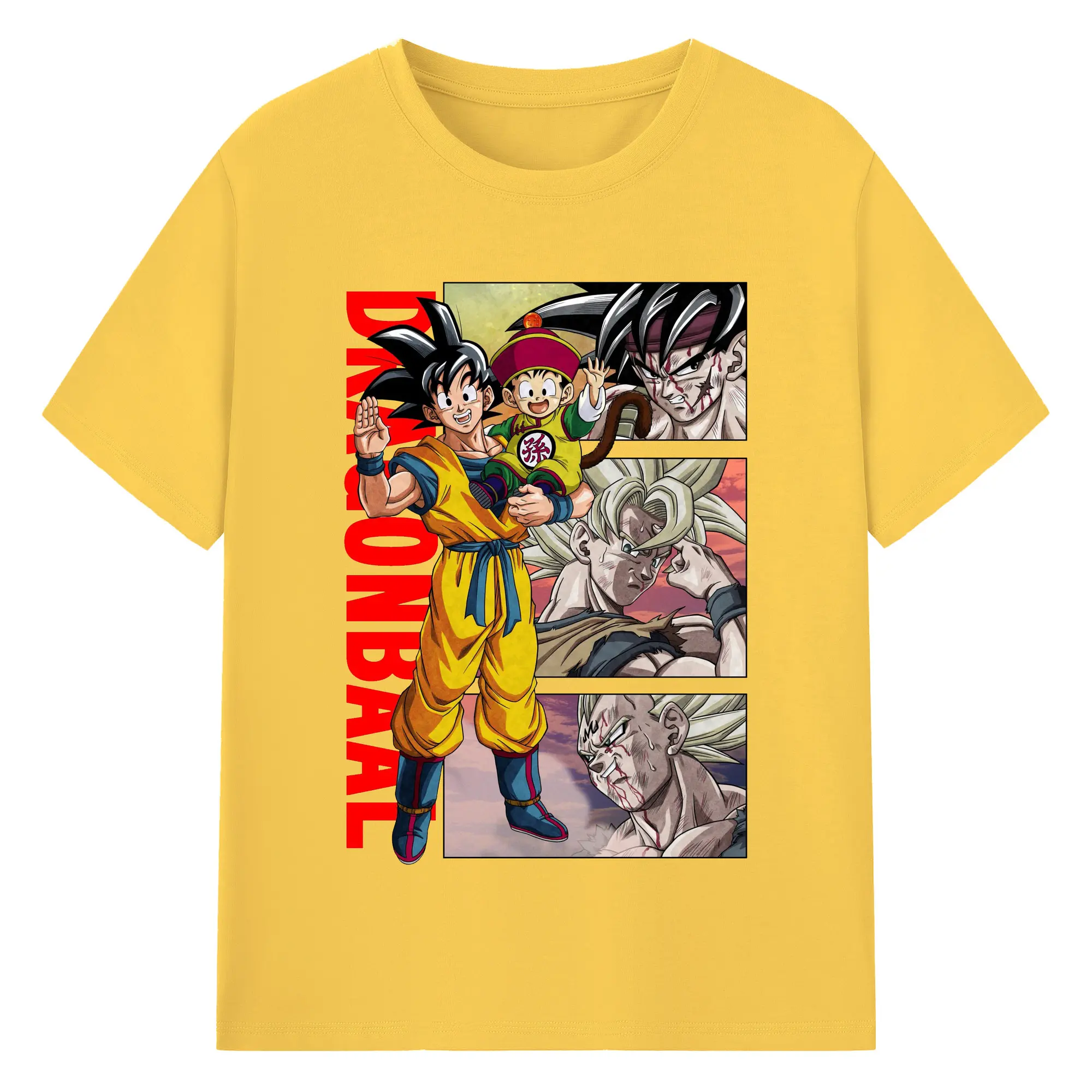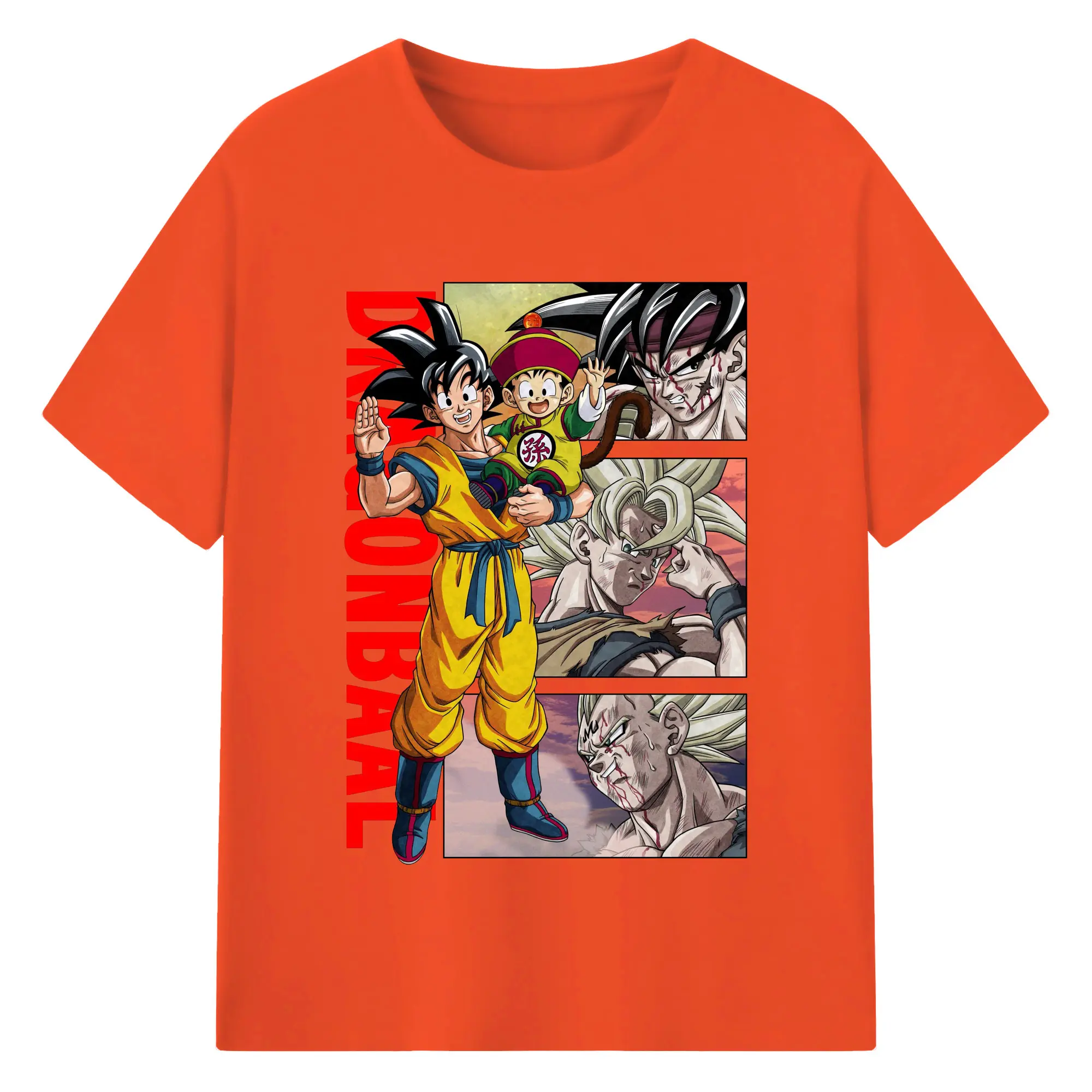 ドラゴンボール 超サイヤ人 孫悟空 - 綿100% 半袖Tシャツ ・ フロントプリント ・ 快適 通気性 ・ 日常使い 散歩 スポーツ用