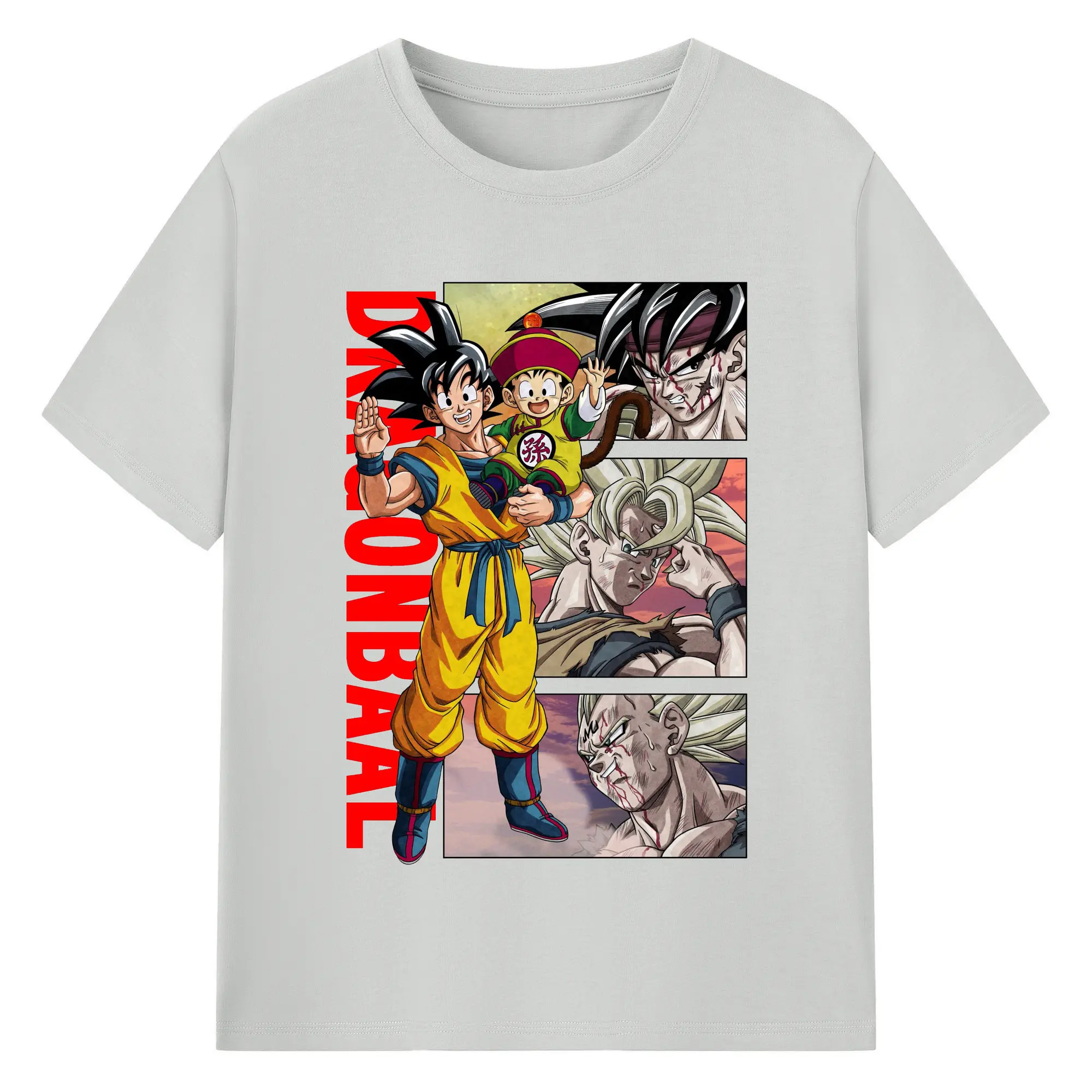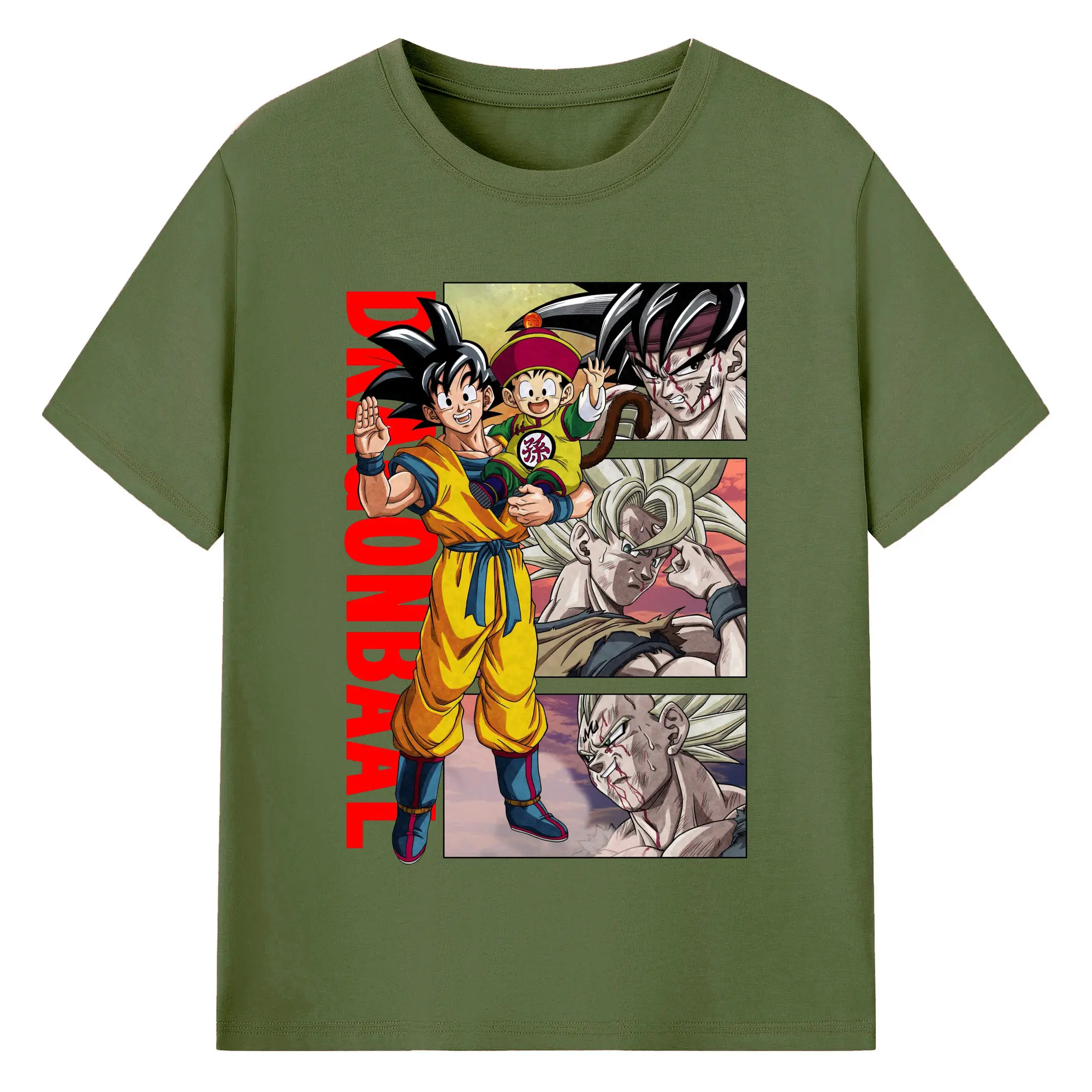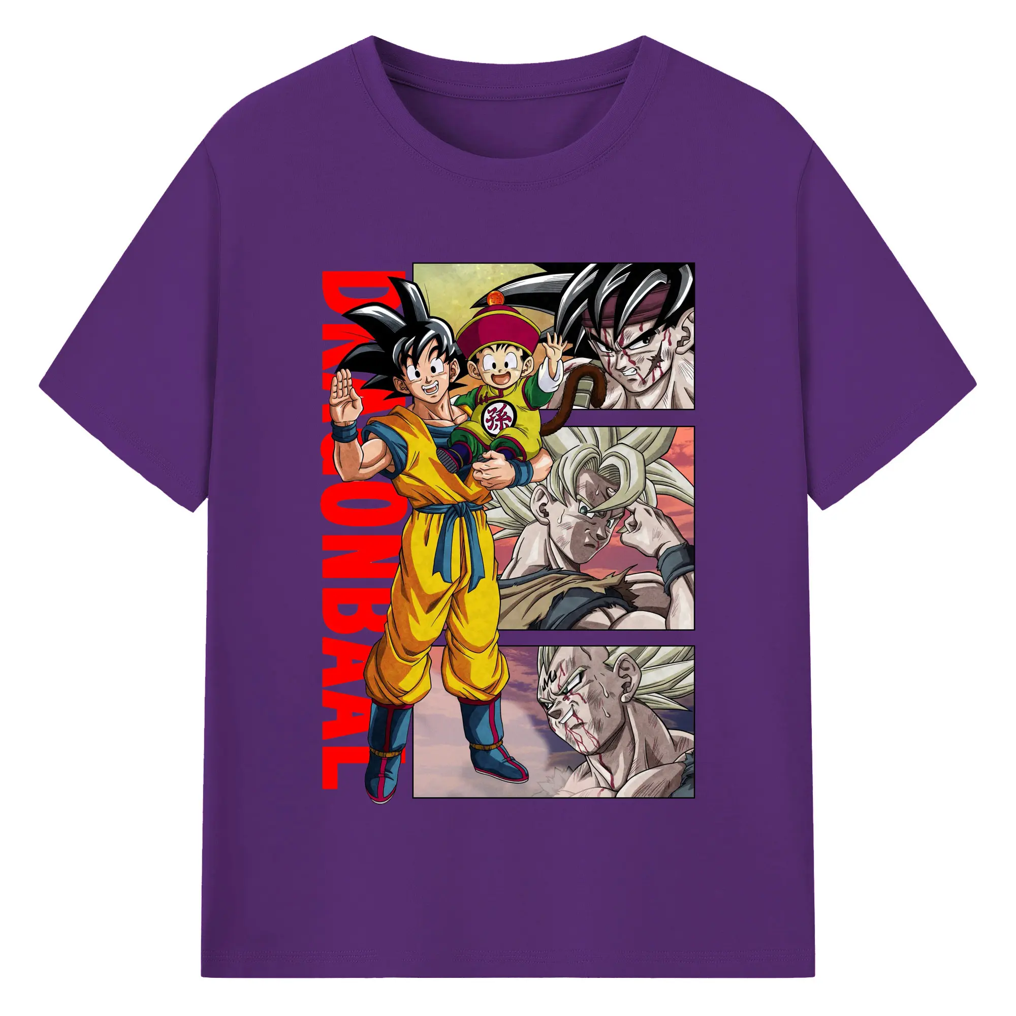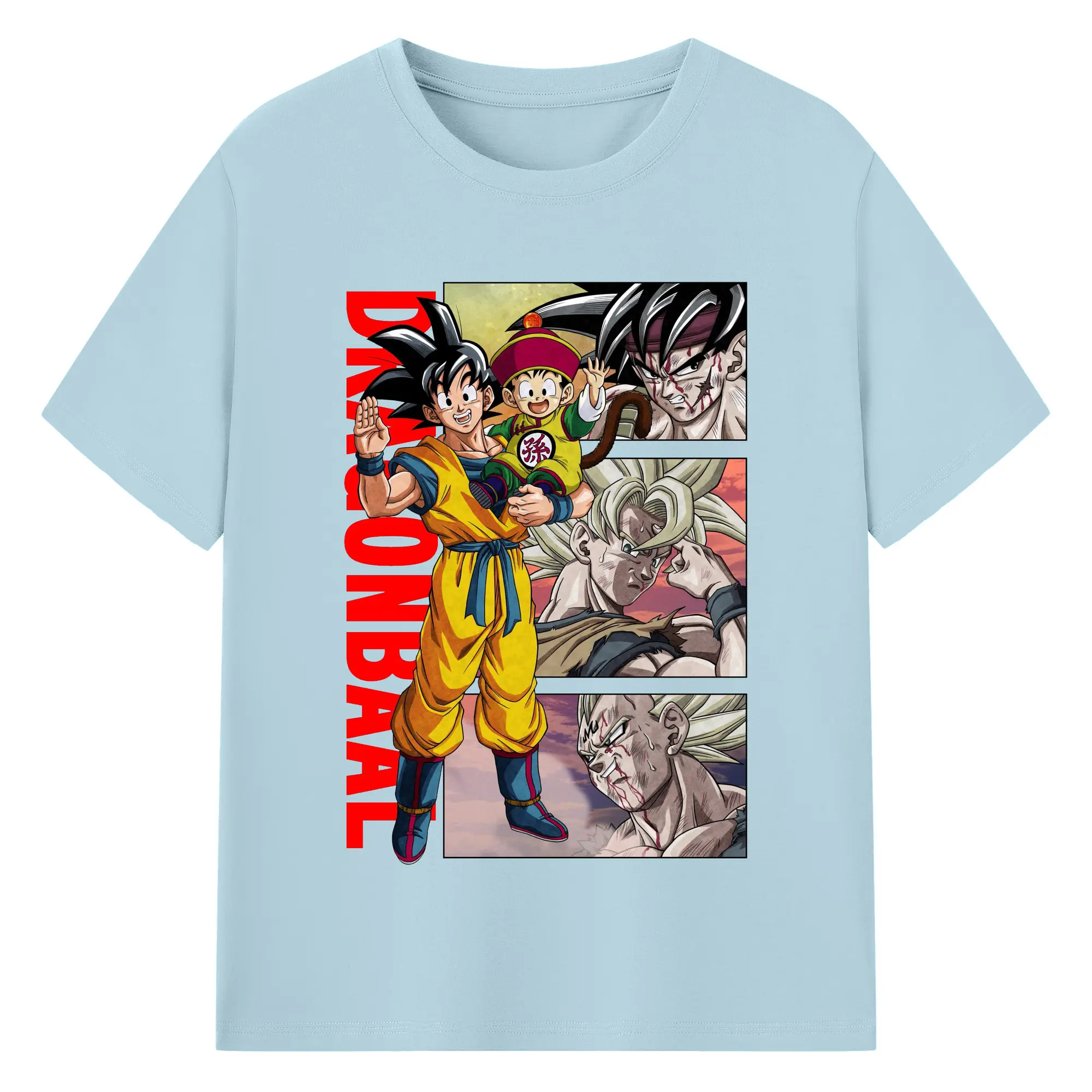 ドラゴンボール 超サイヤ人 孫悟空 - 綿100% 半袖Tシャツ ・ フロントプリント ・ 快適 通気性 ・ 日常使い 散歩 スポーツ用