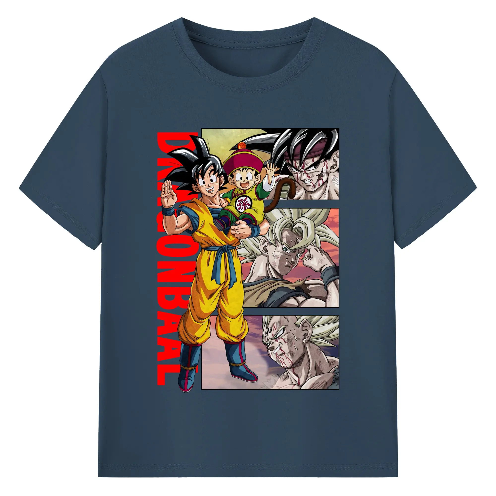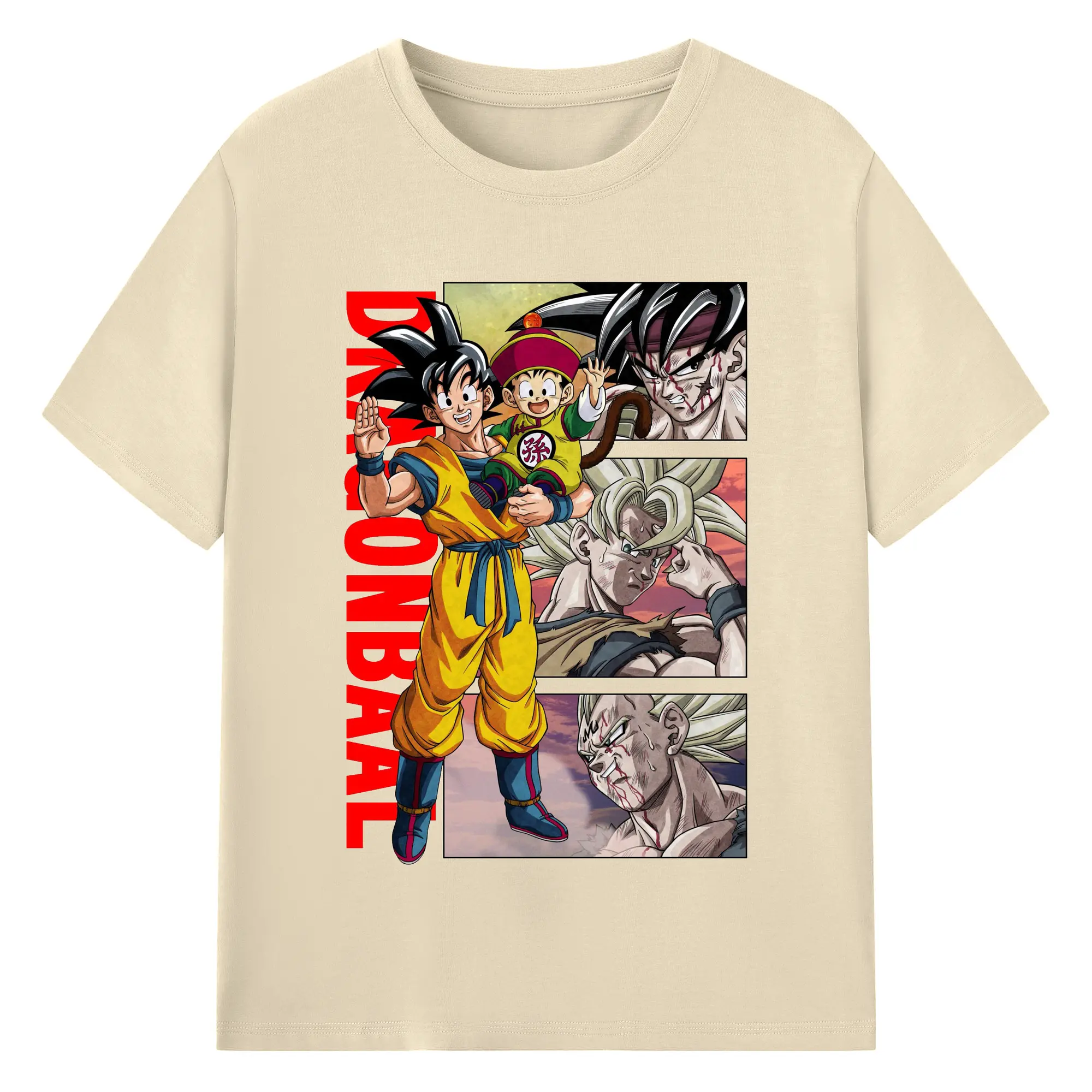 ドラゴンボール 超サイヤ人 孫悟空 - 綿100% ヴィンテージ風 半袖Tシャツ ・ フロントプリント ・ 柔らか肌触り ・ 通気性 快適 ・ スポーツ カジュアル 外出用