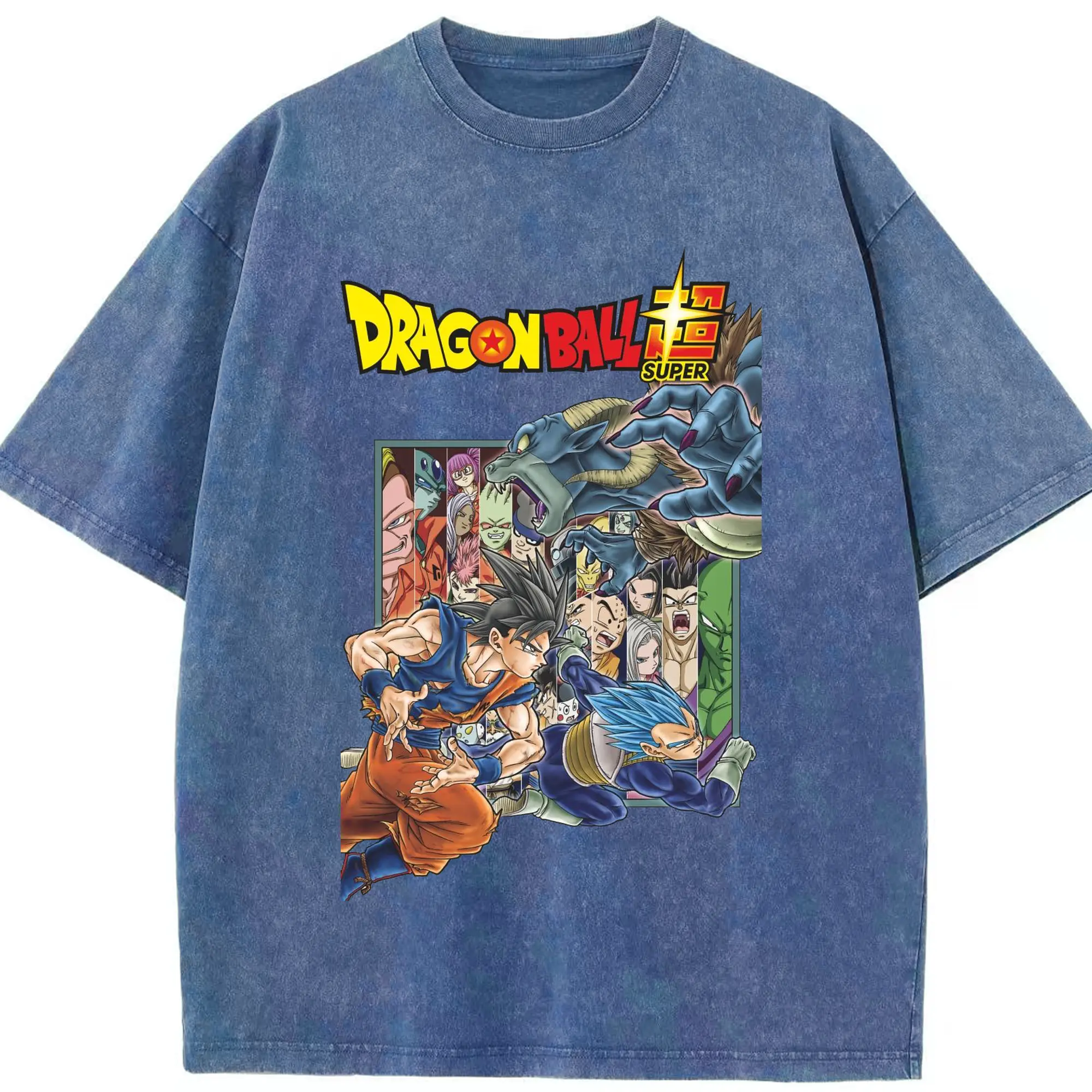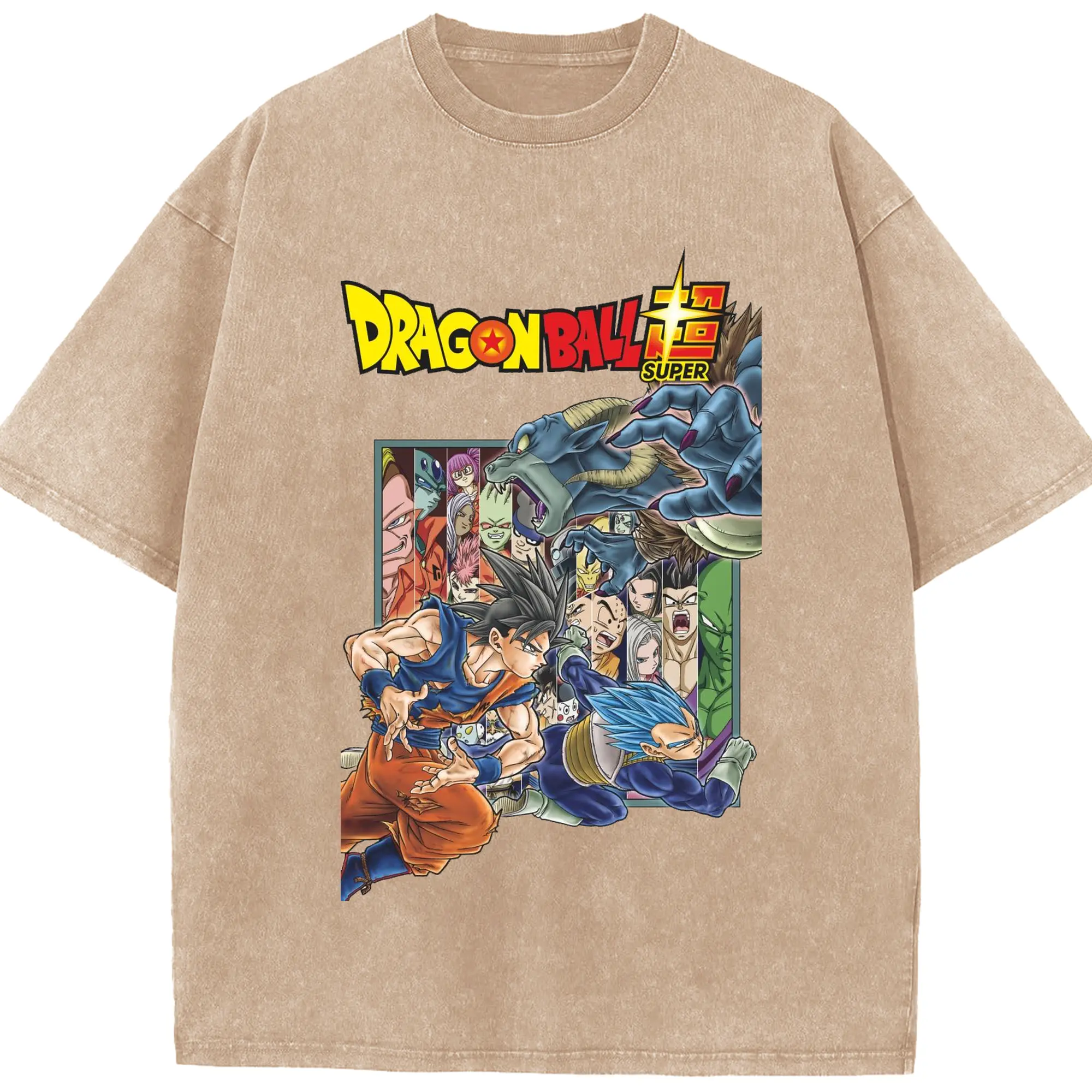 ドラゴンボール 超サイヤ人 - 綿100% ヴィンテージ風 半袖Tシャツ ・ フロントプリント ・ 柔らか肌触り ・ 通気性 快適 ・ スポーツ カジュアル 外出用