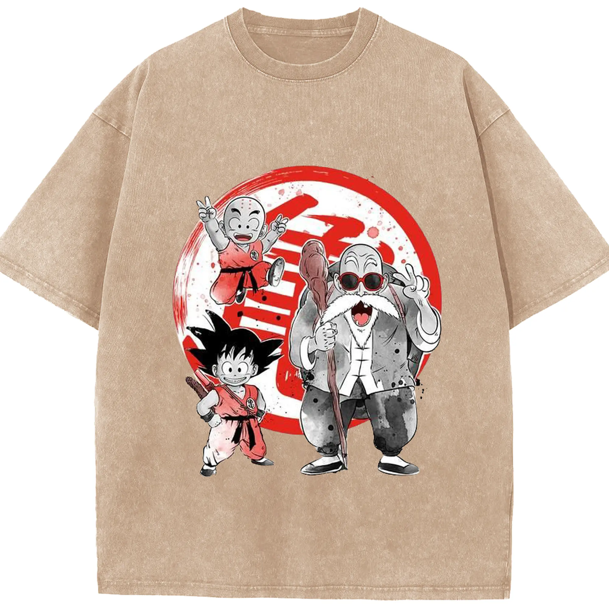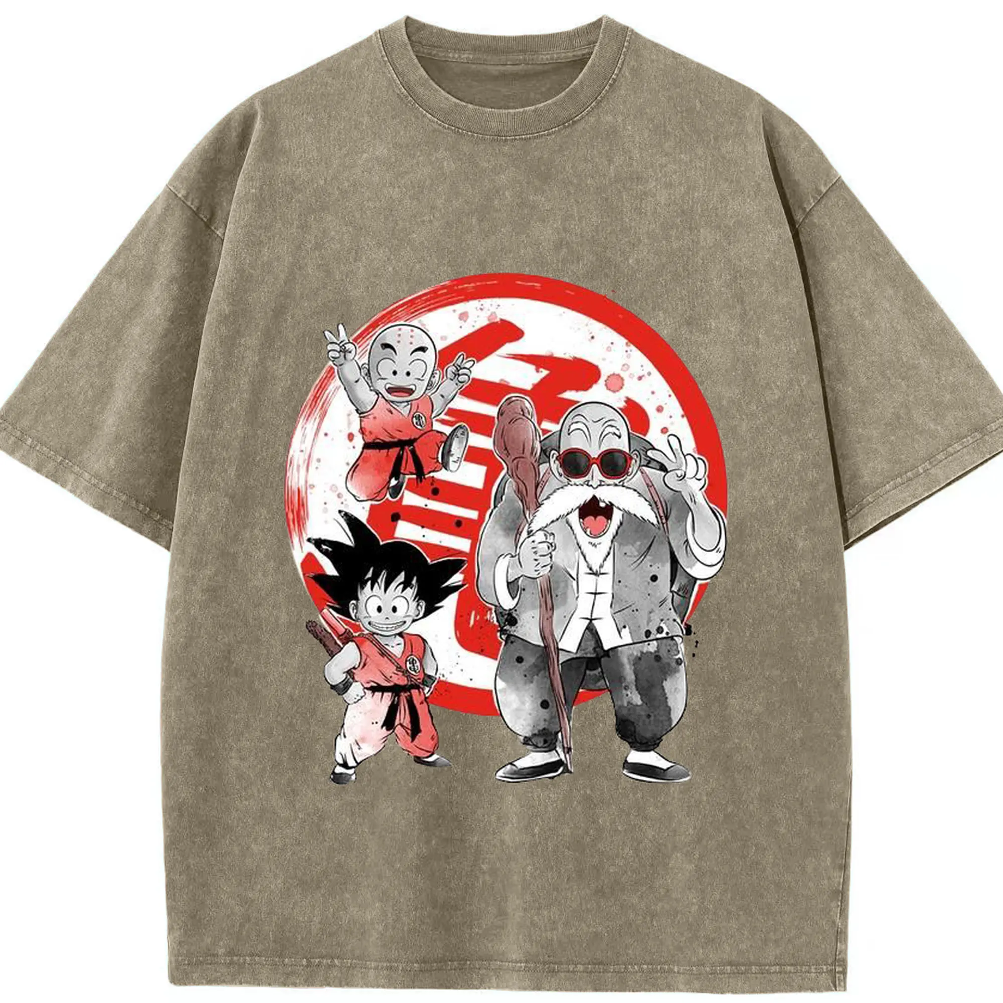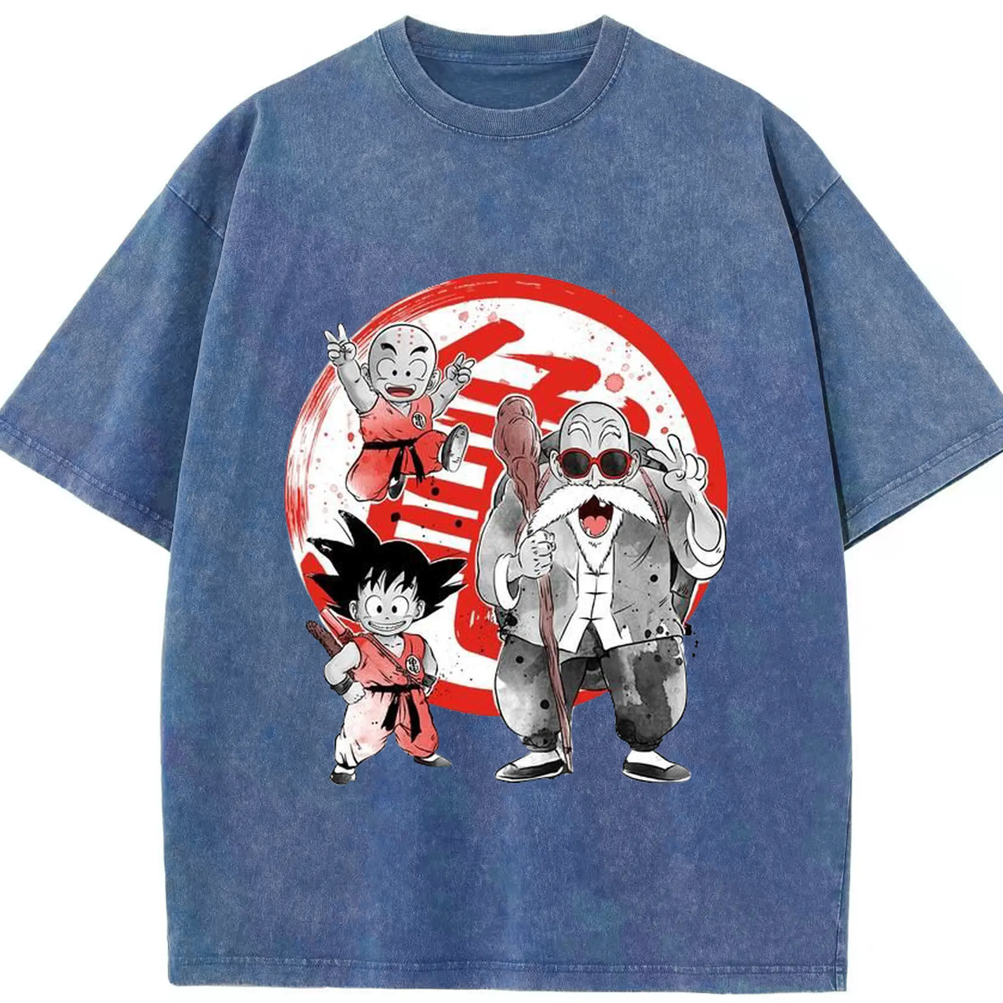 ドラゴンボール DRAGON BALL 孫悟空 クリリン 亀仙人 - 綿100% ヴィンテージ風 半袖Tシャツ ・ フロントプリント ・ 柔らか肌触り ・ 通気性 快適 ・ スポーツ カジュアル 外出用