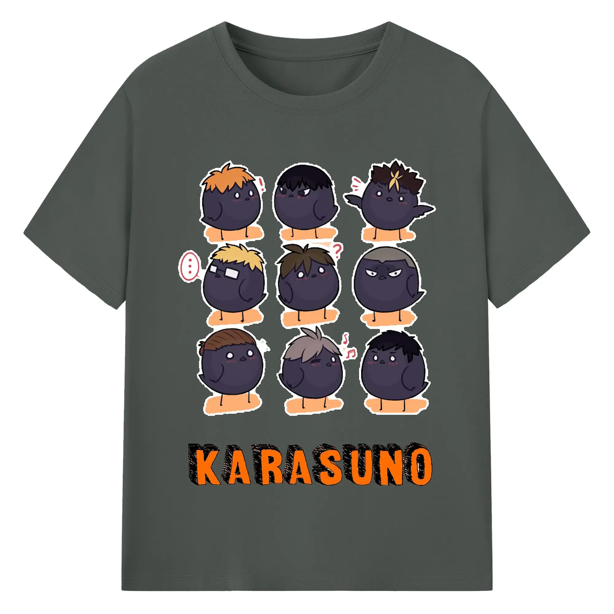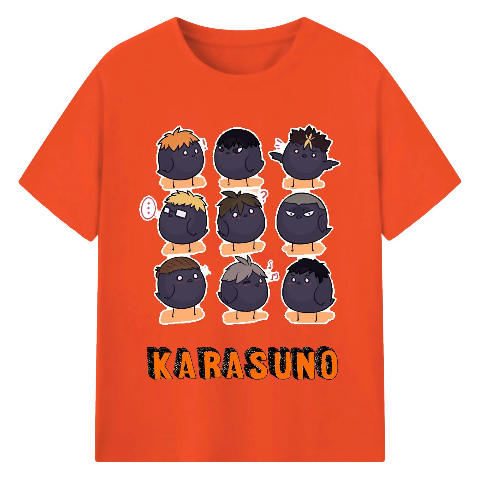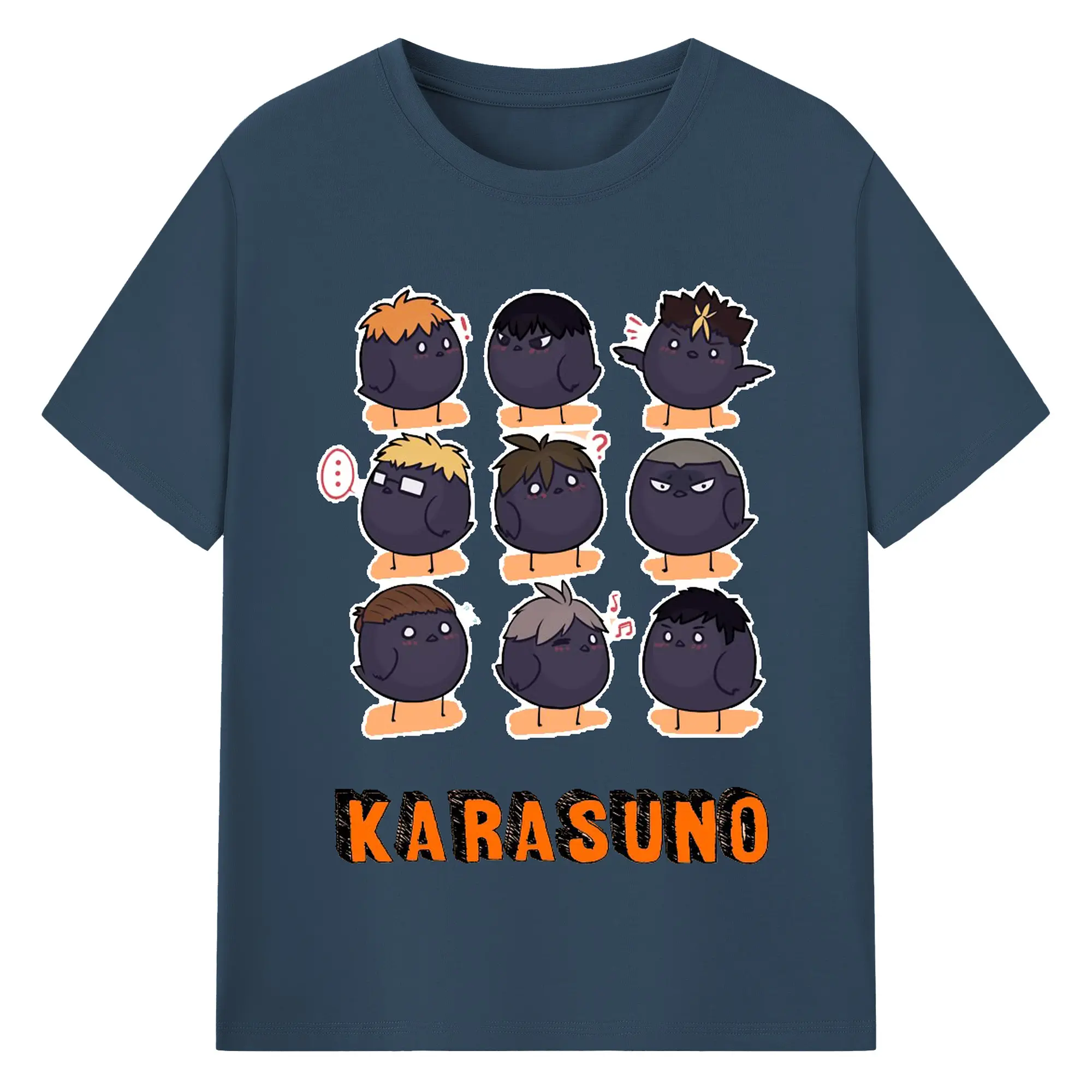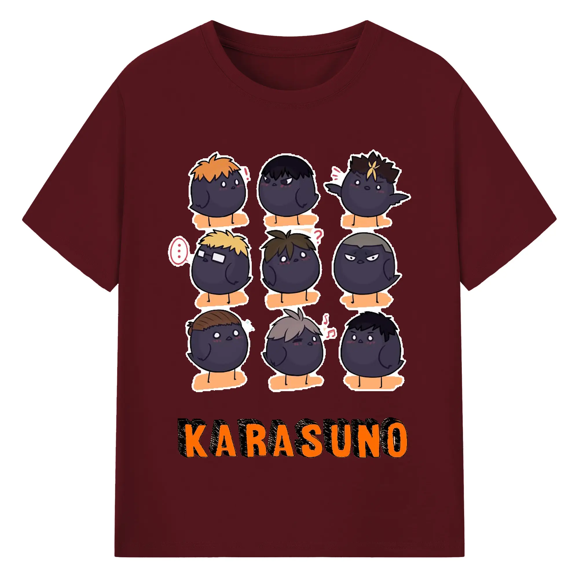 ハイキュー!!デフォルメ 烏野高校 全メンバー - 綿100% ヴィンテージ風 半袖Tシャツ ・ フロントプリント ・ 柔らか肌触り ・ 通気性 快適 ・ スポーツ カジュアル 外出用