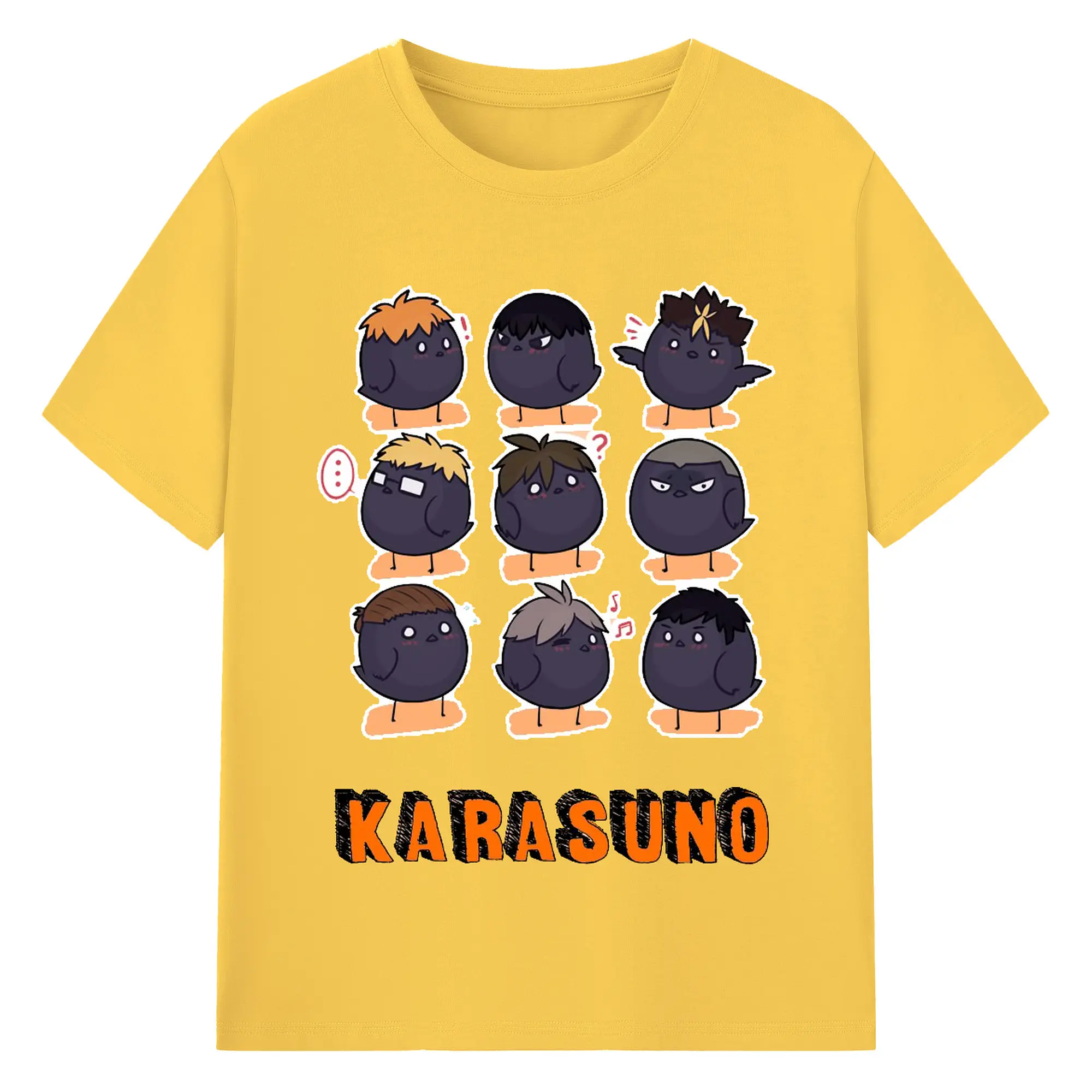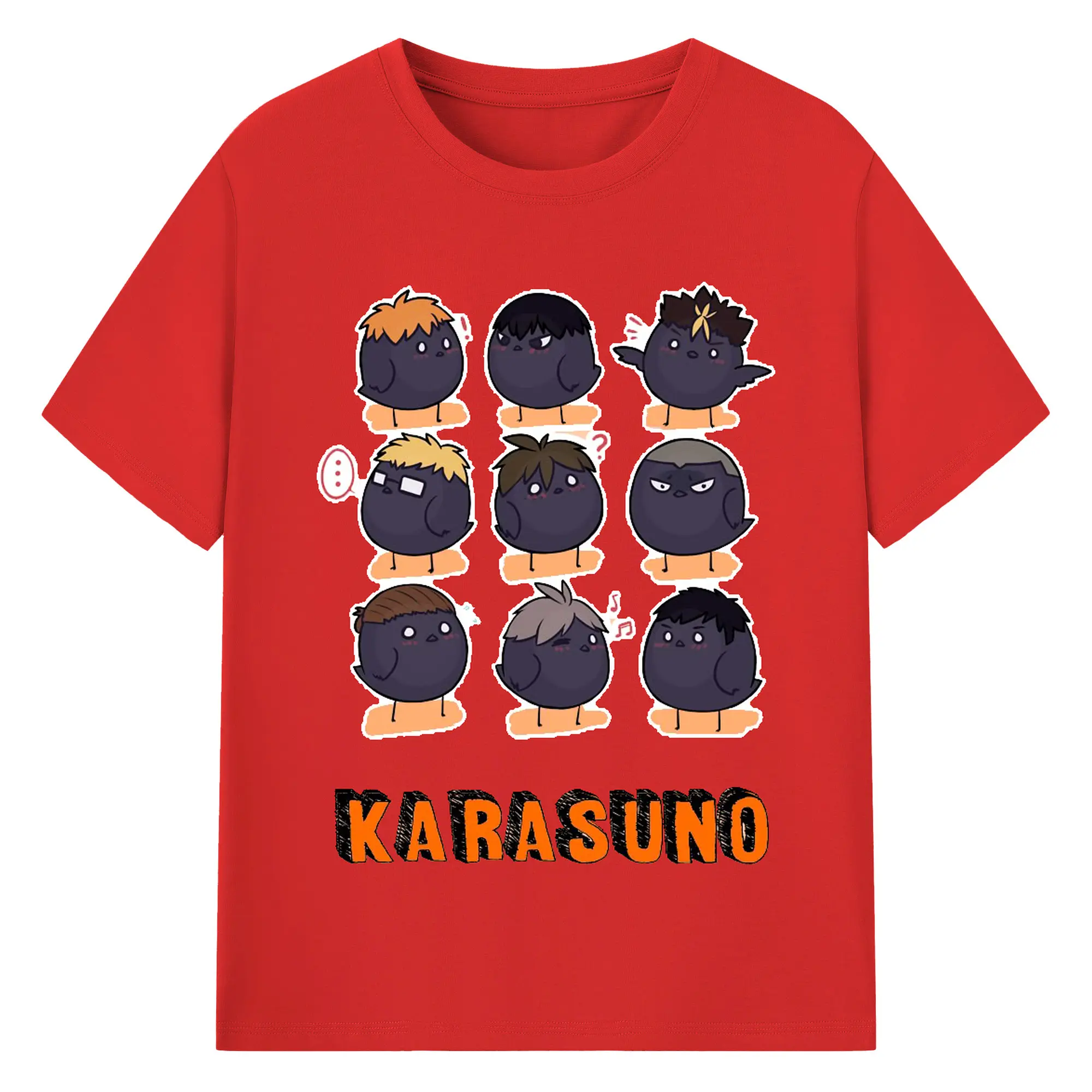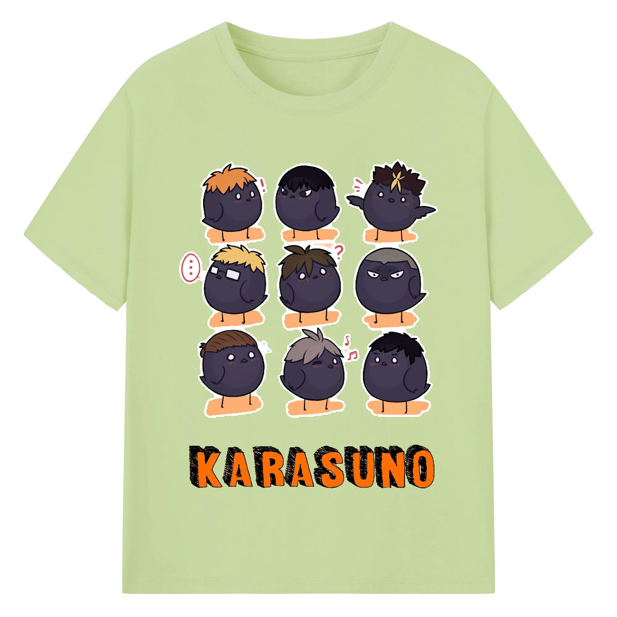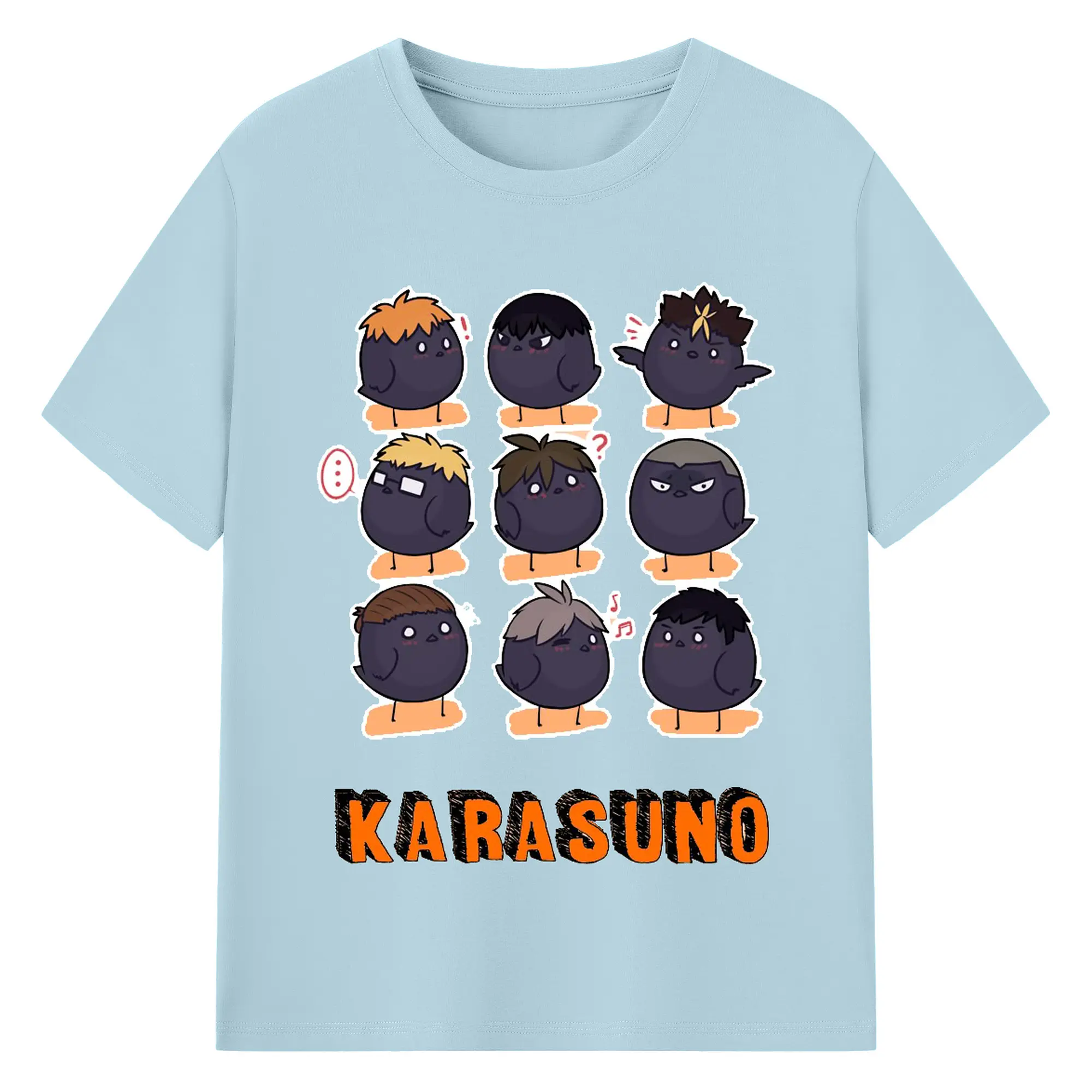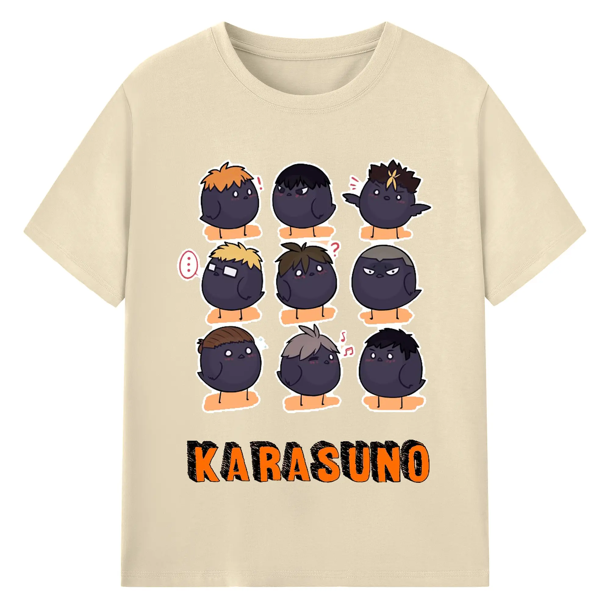 ハイキュー!!デフォルメ 烏野高校 全メンバー - 綿100% ヴィンテージ風 半袖Tシャツ ・ フロントプリント ・ 柔らか肌触り ・ 通気性 快適 ・ スポーツ カジュアル 外出用