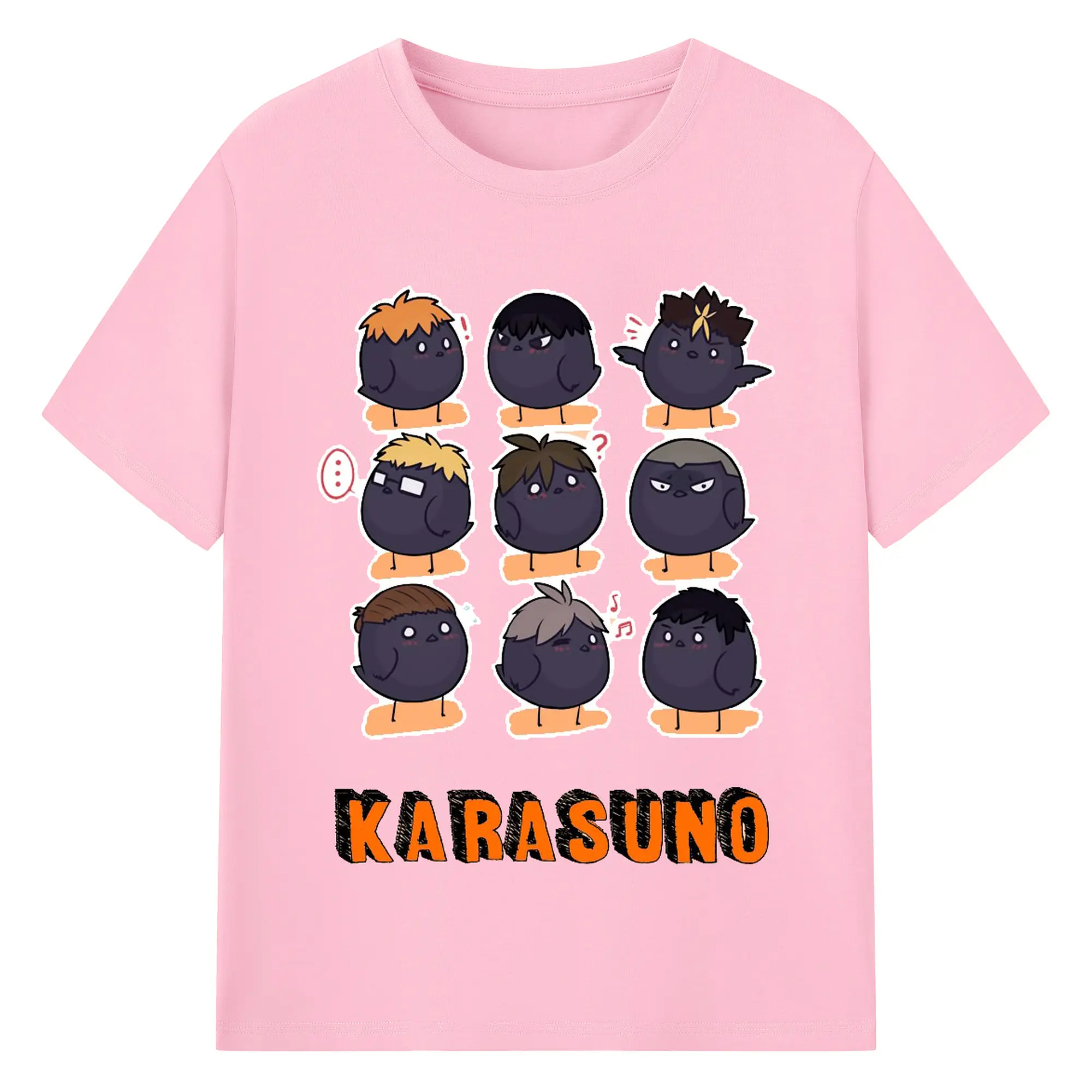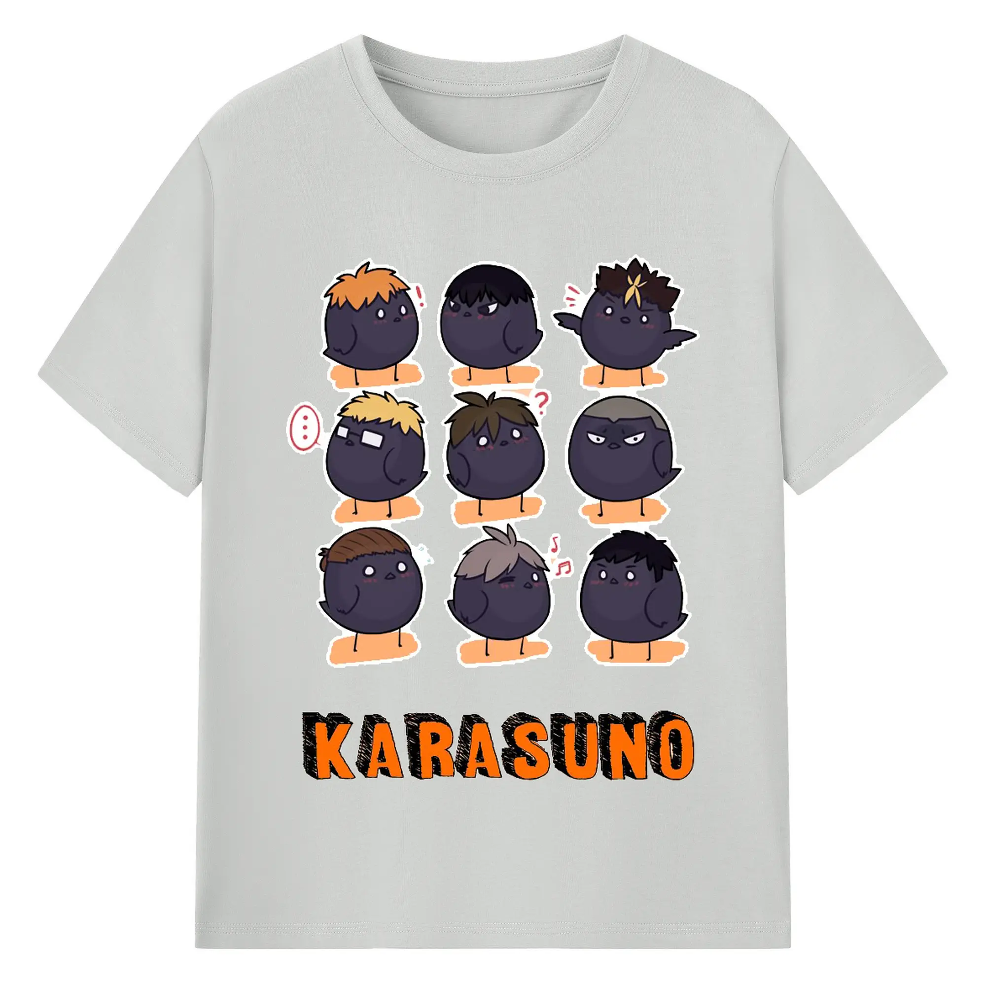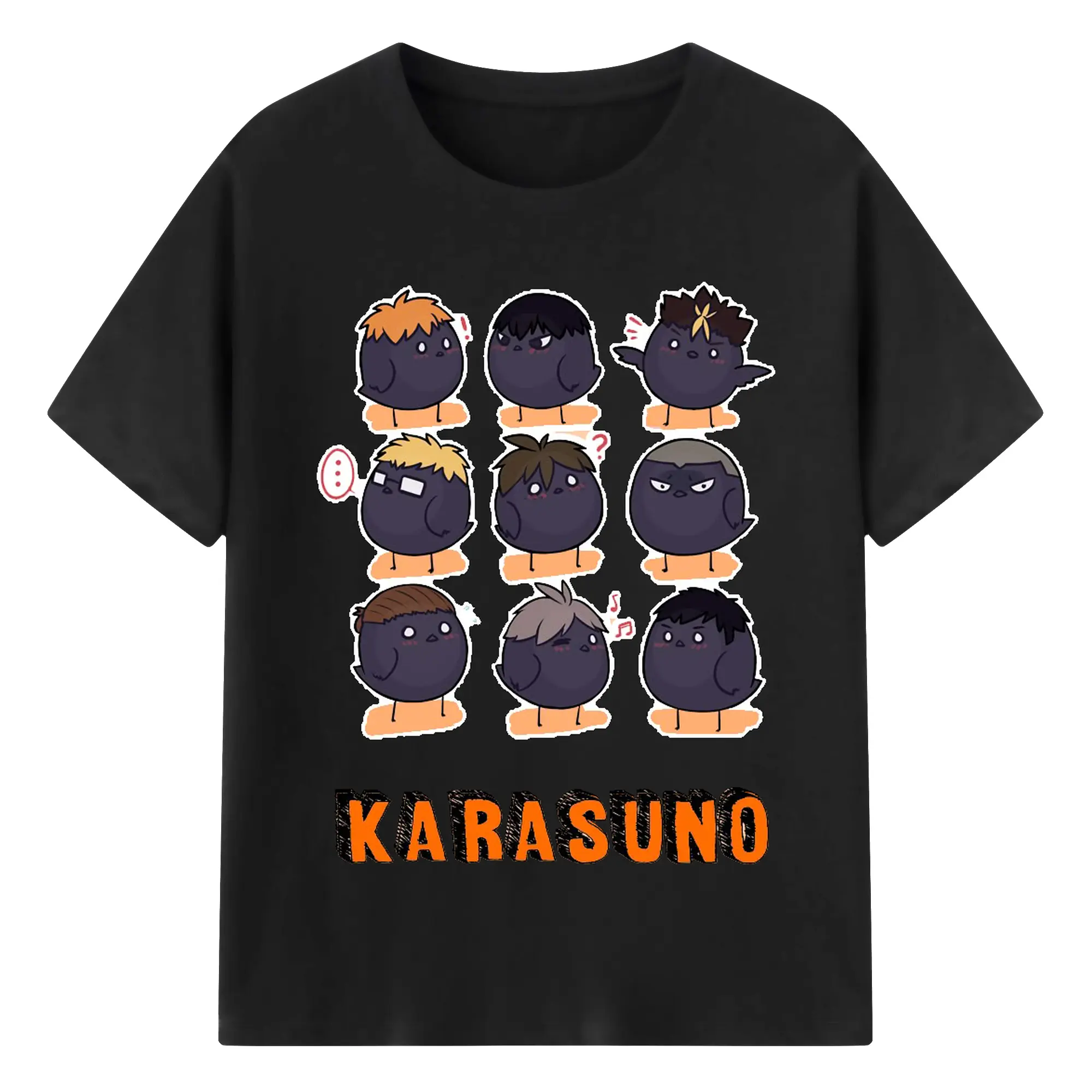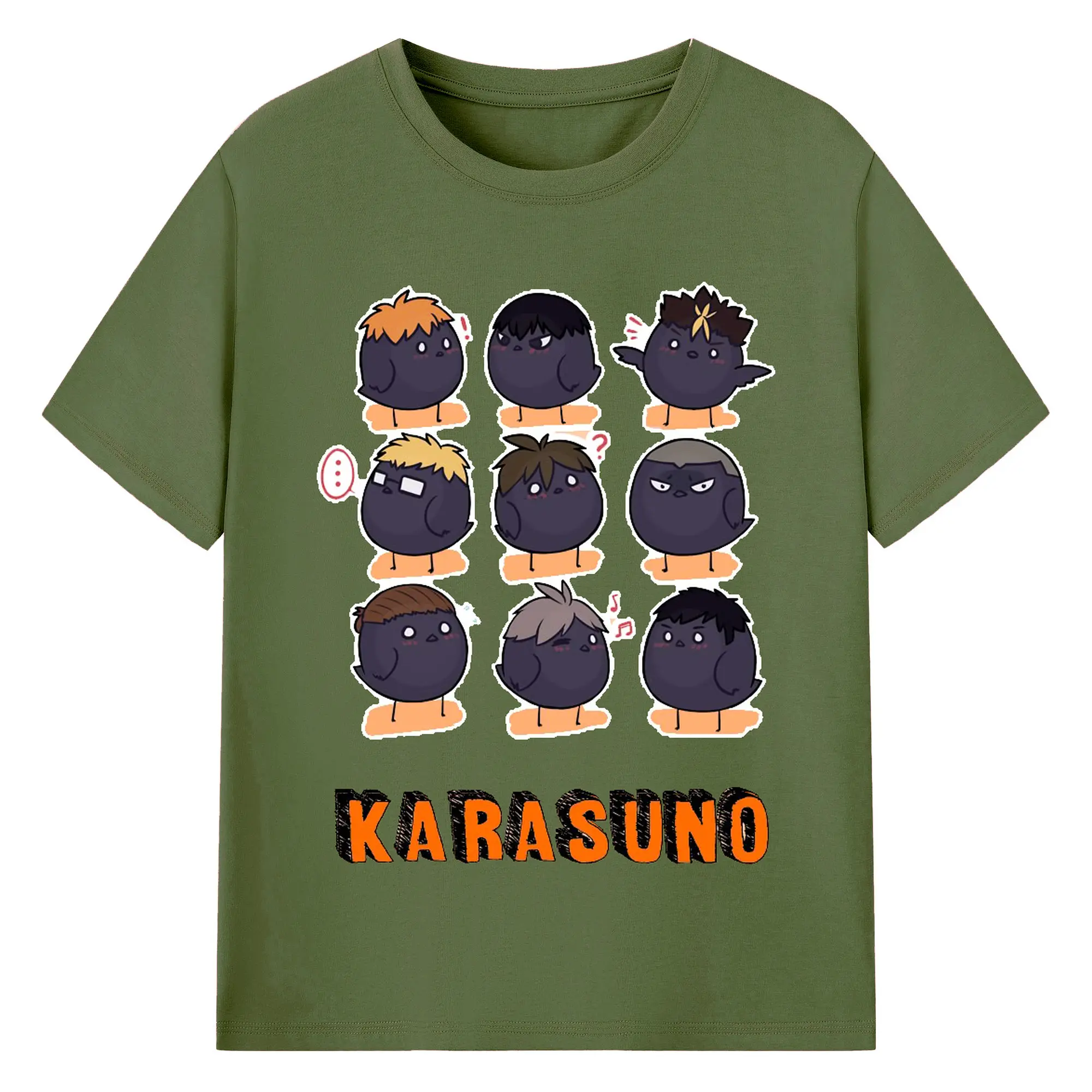 ハイキュー!!デフォルメ 烏野高校 全メンバー - 綿100% ヴィンテージ風 半袖Tシャツ ・ フロントプリント ・ 柔らか肌触り ・ 通気性 快適 ・ スポーツ カジュアル 外出用