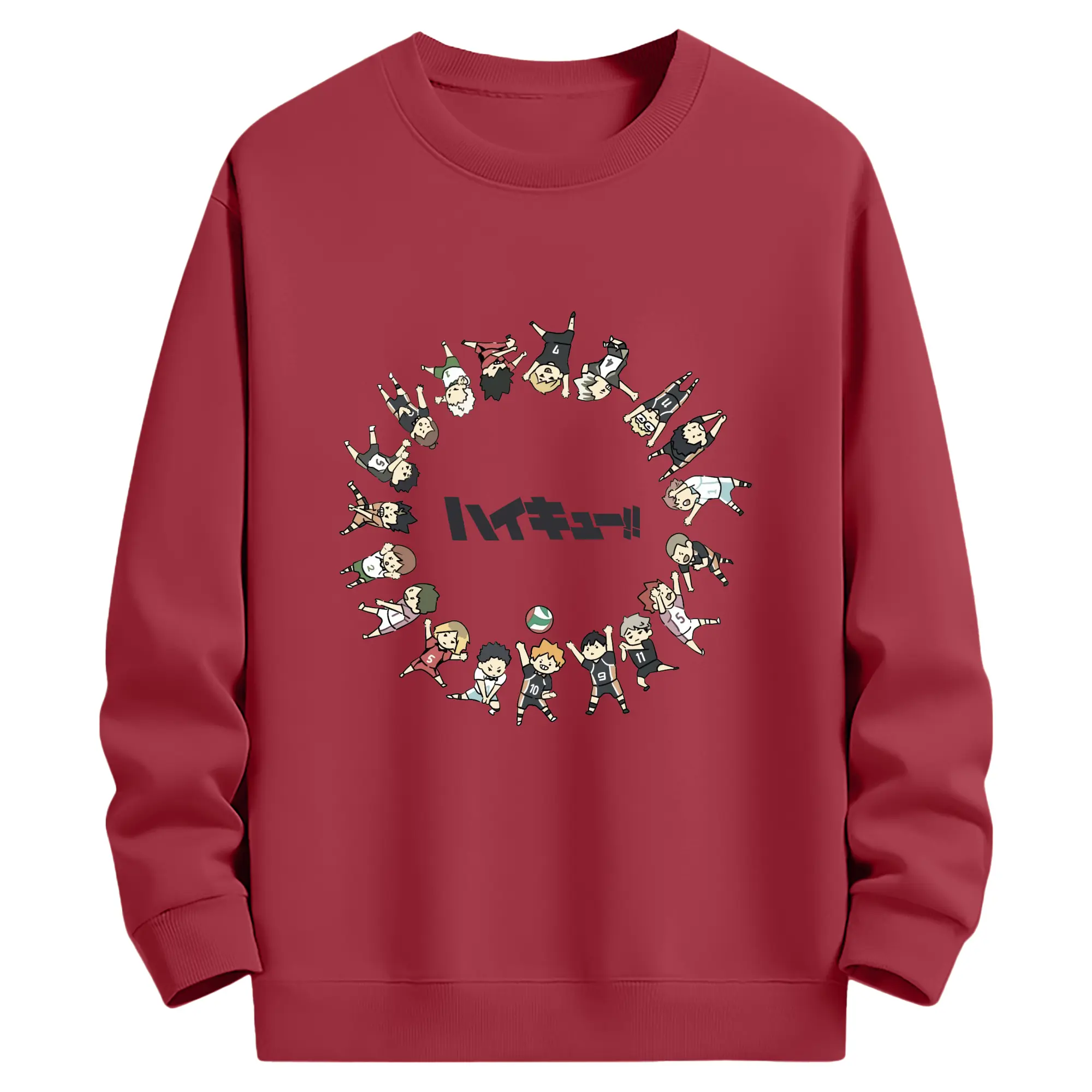 ハイキュー!!デフォルメキャラ全メンバー - 綿100% 半袖Tシャツ ・ フロントプリント ・ 快適 通気性 ・ 日常使い 散歩 スポーツ用