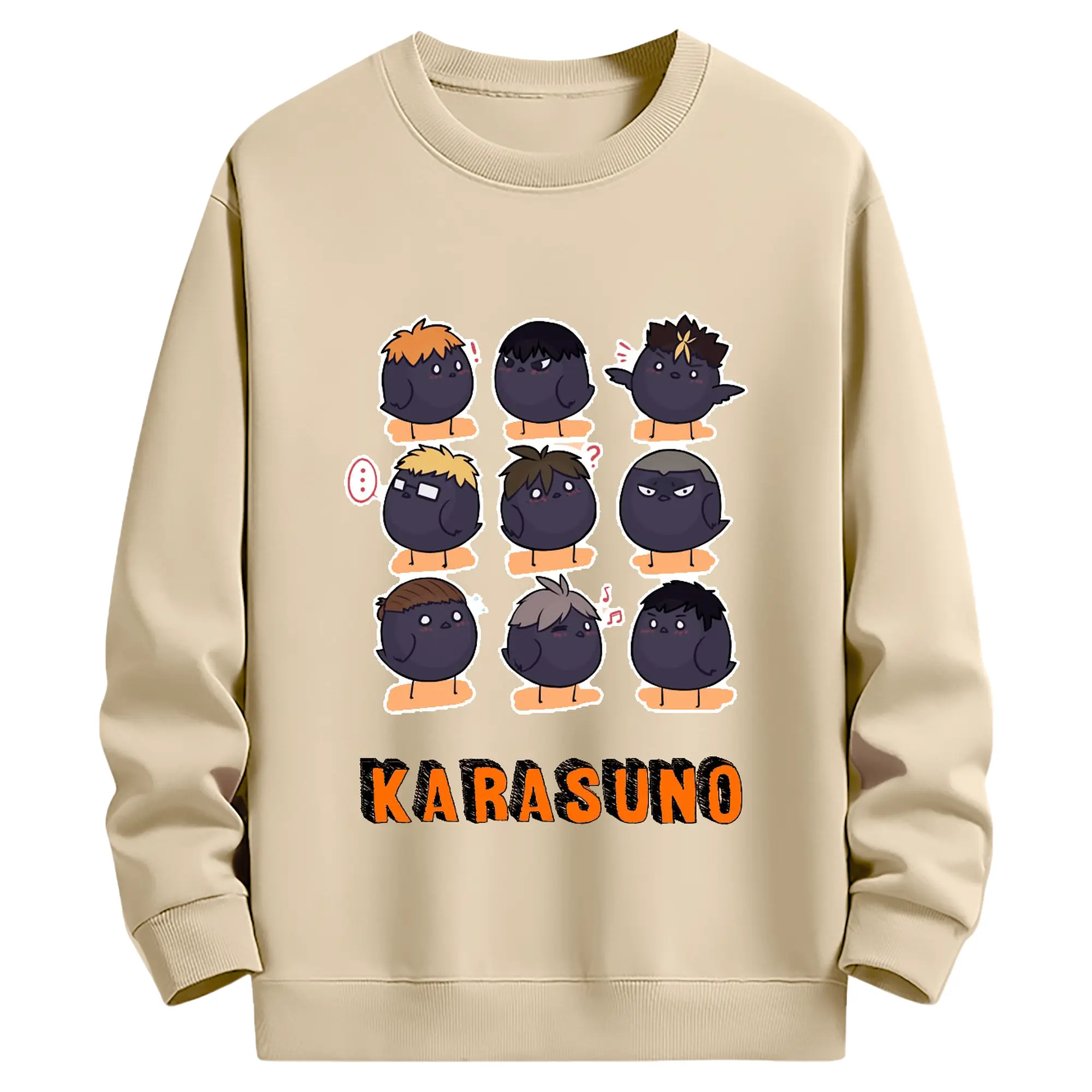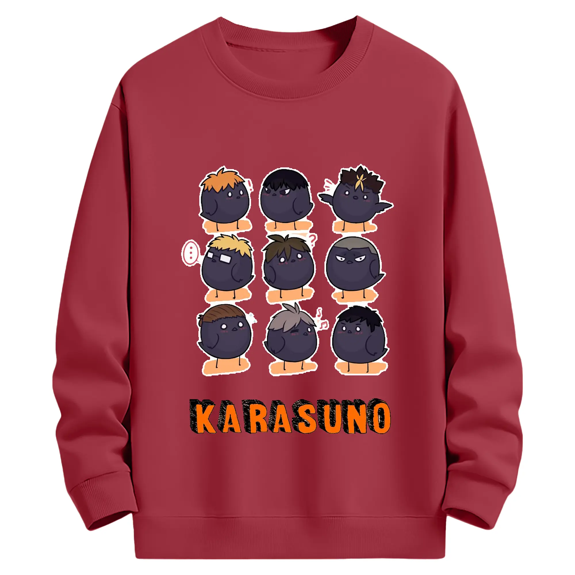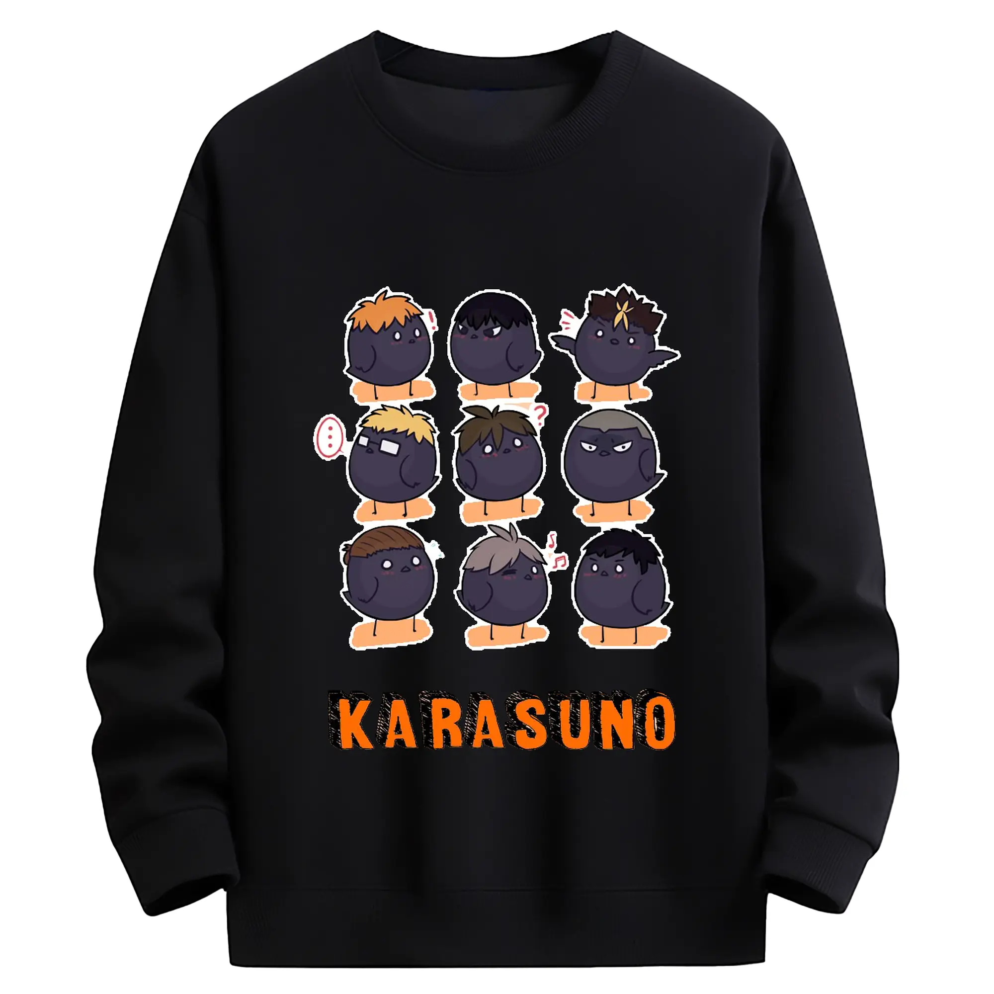 ハイキュー!!デフォルメ 烏野高校 全メンバー - 綿100% 半袖Tシャツ ・ フロントプリント ・ 快適 通気性 ・ 日常使い 散歩 スポーツ用