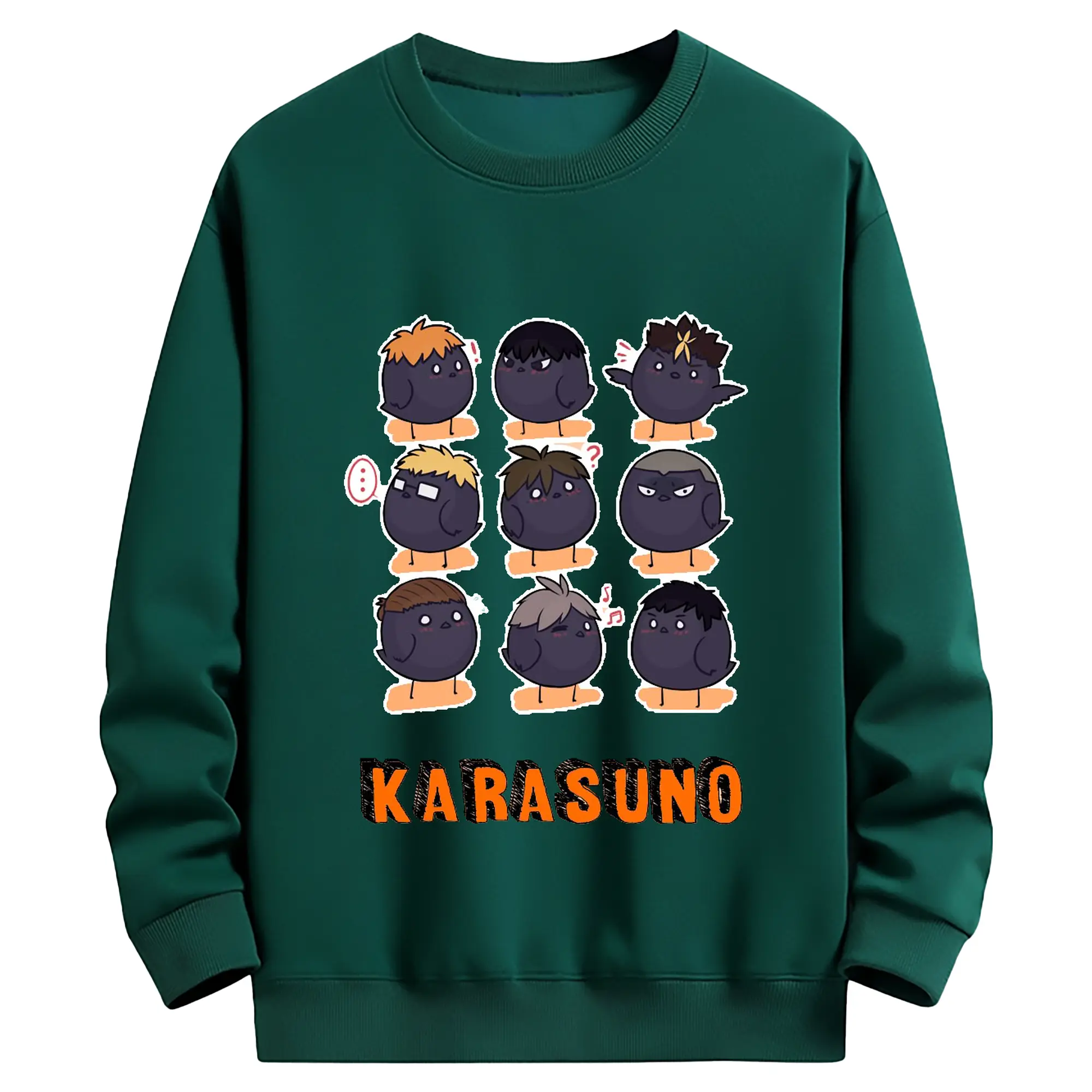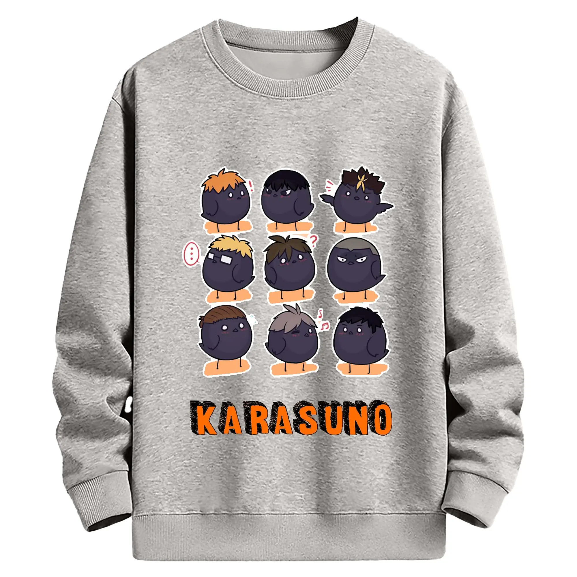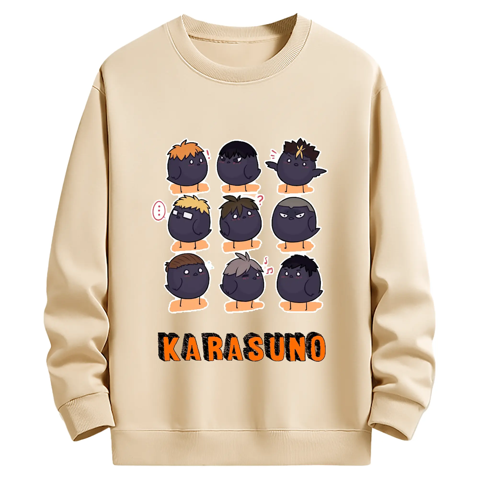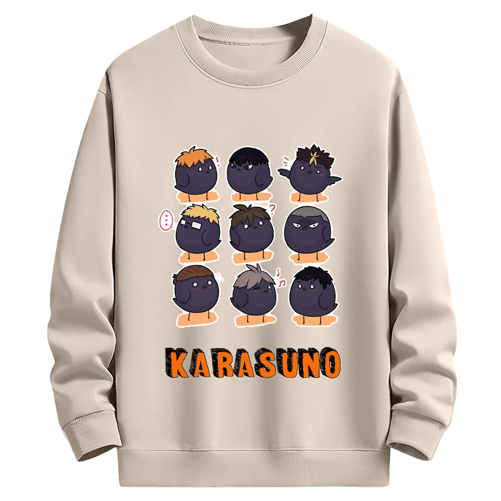 ハイキュー!!デフォルメ 烏野高校 全メンバー - 綿100% 半袖Tシャツ ・ フロントプリント ・ 快適 通気性 ・ 日常使い 散歩 スポーツ用