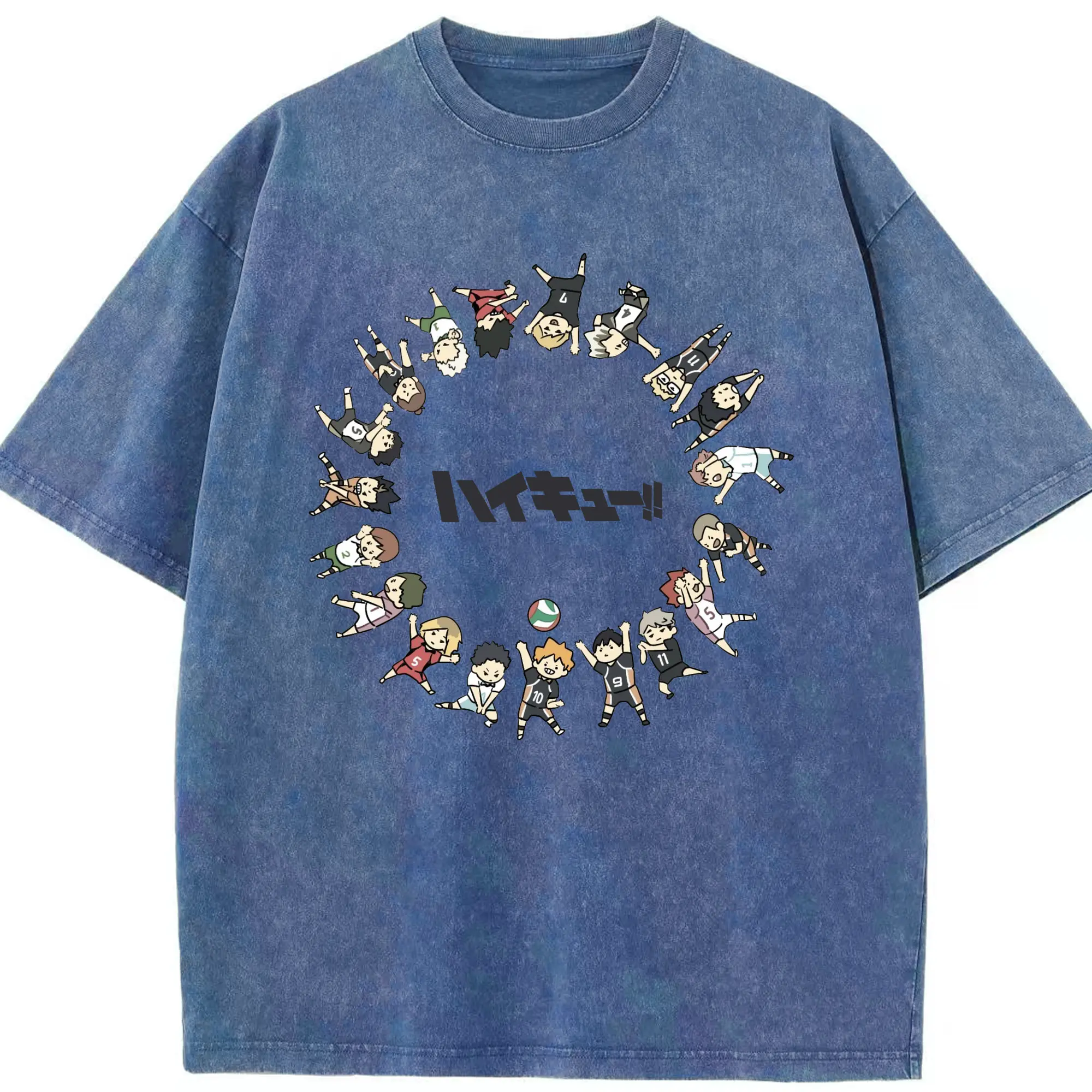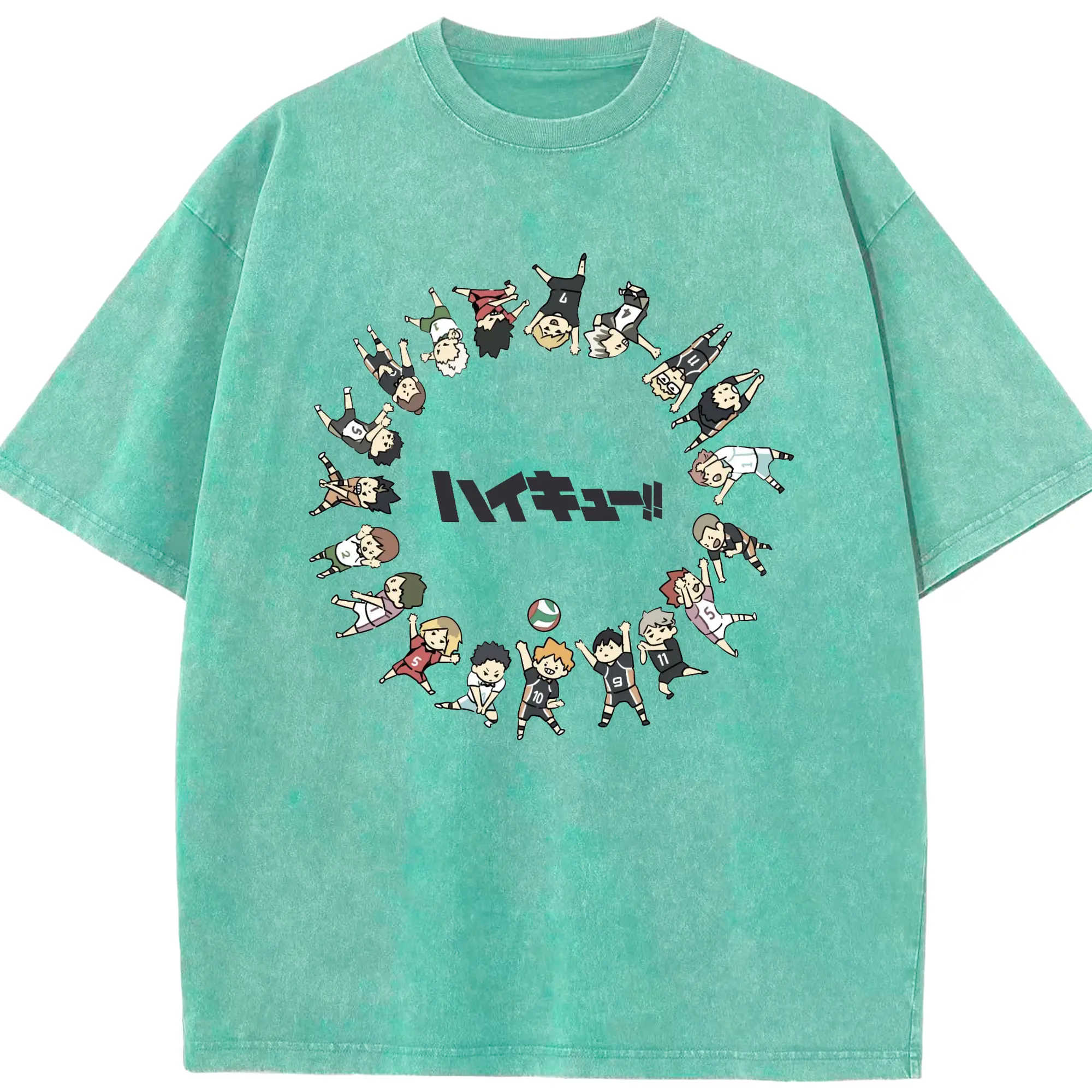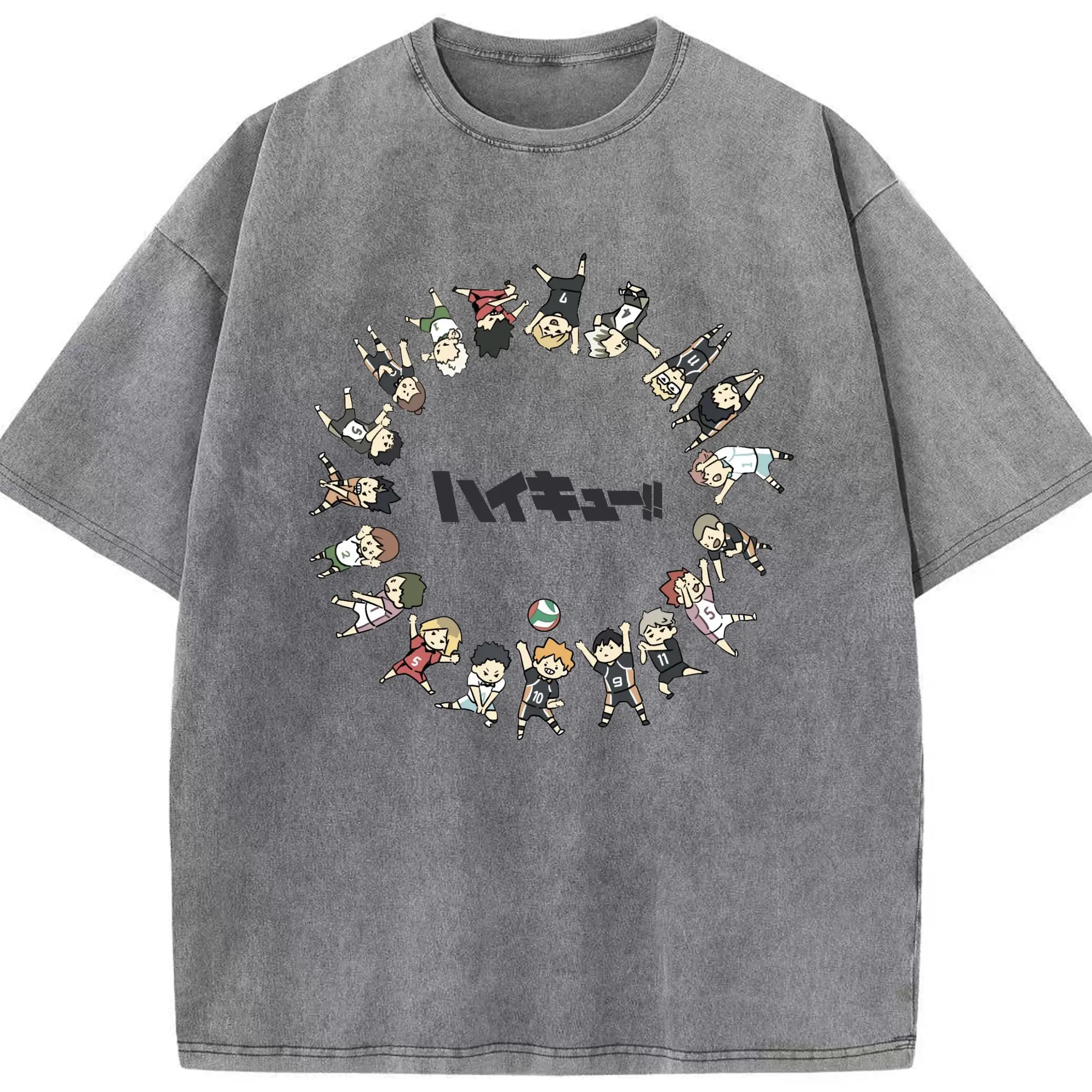 ハイキュー!!デフォルメキャラ全メンバー - 綿100% 半袖Tシャツ ・ フロントプリント ・ 快適 通気性 ・ 日常使い 散歩 スポーツ用