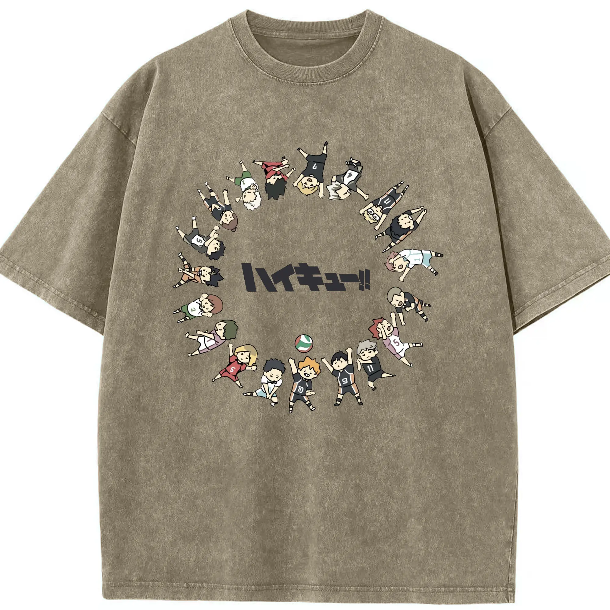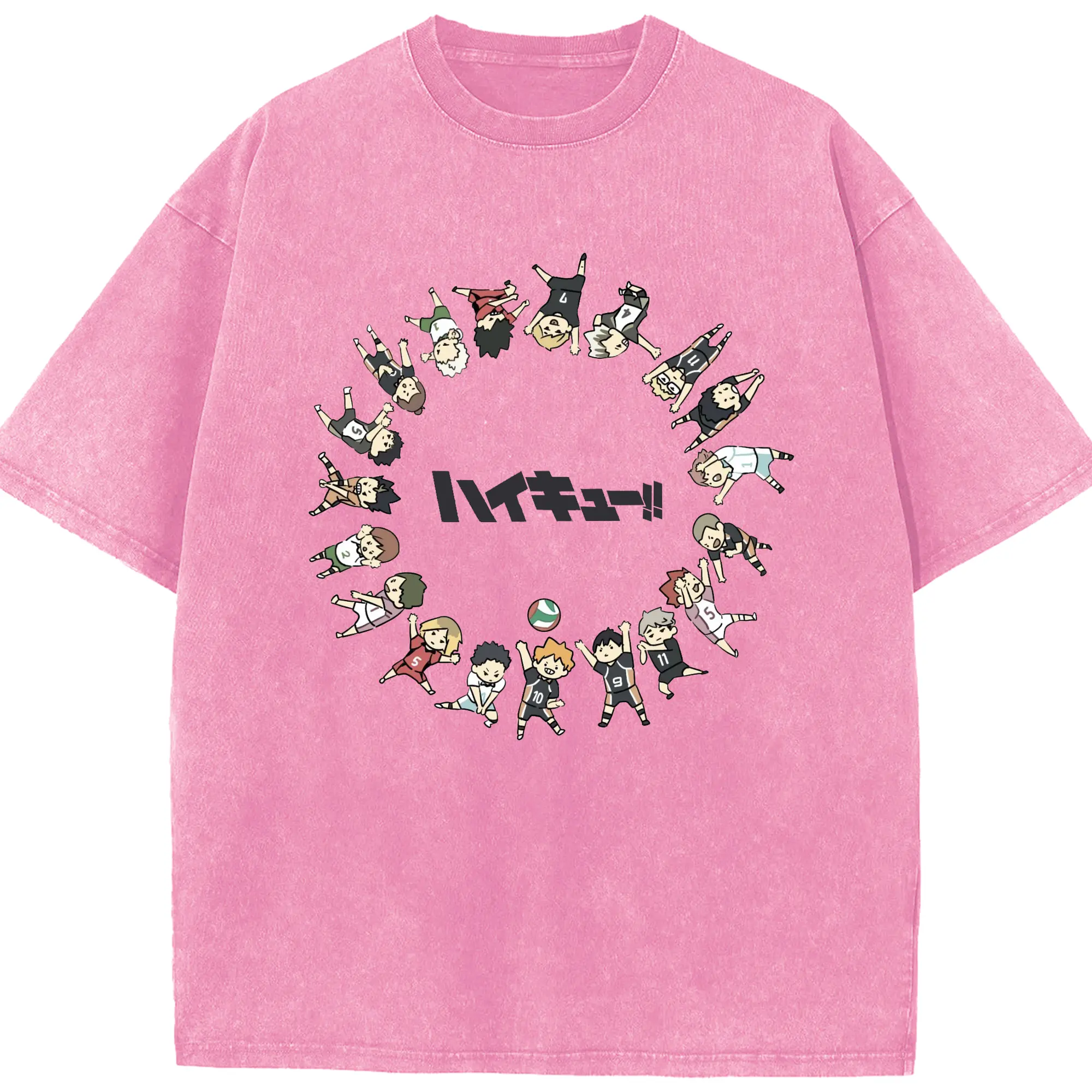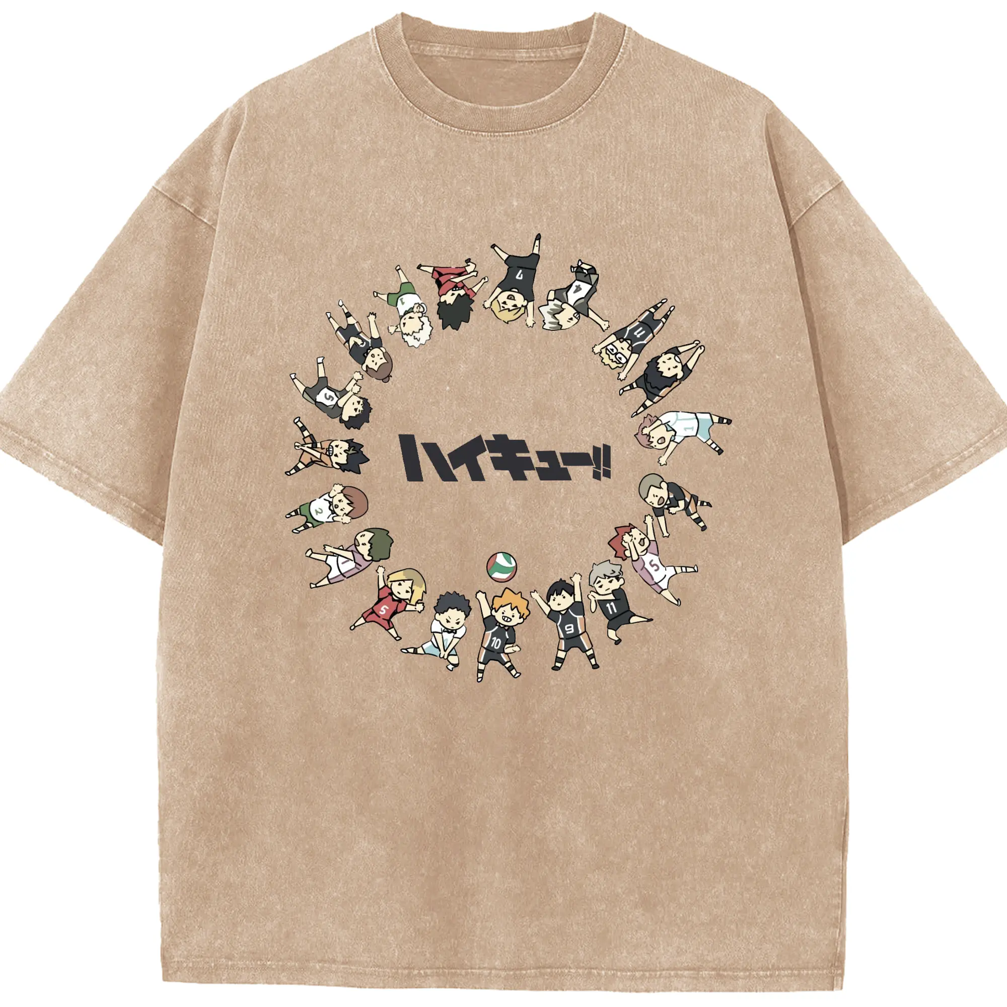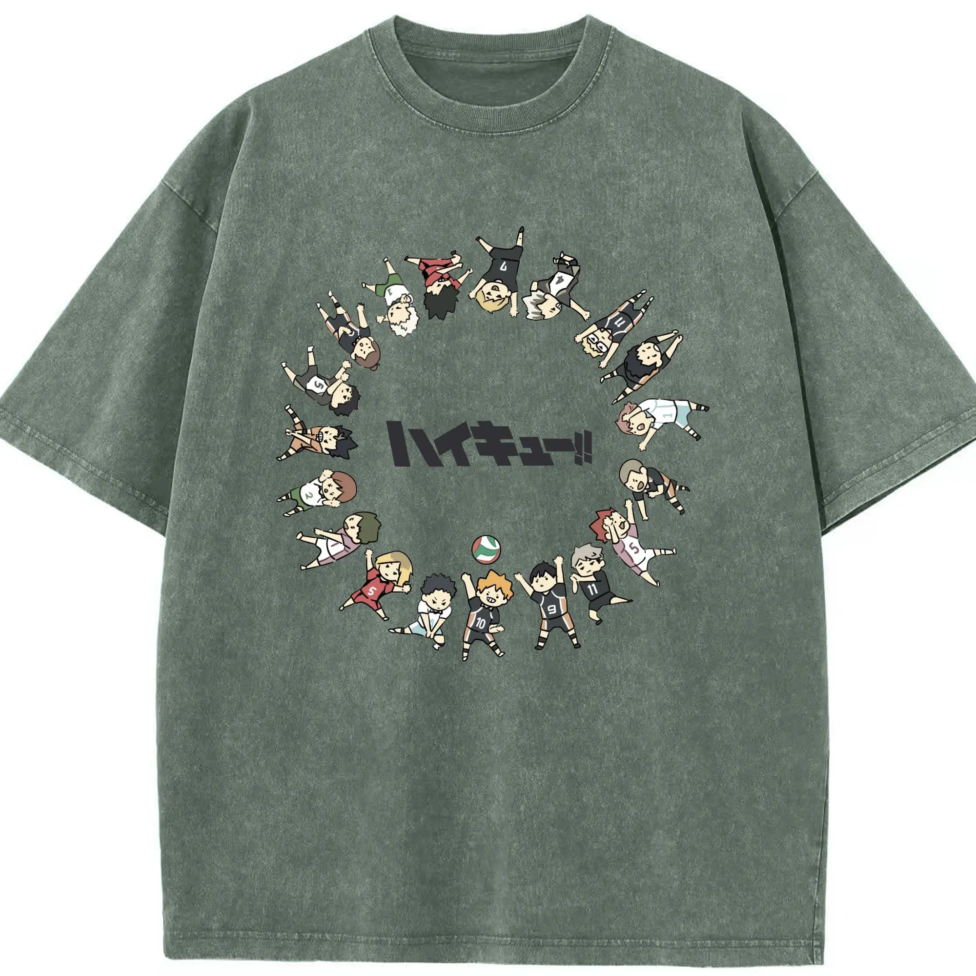 ハイキュー!!デフォルメキャラ全メンバー - 綿100% 半袖Tシャツ ・ フロントプリント ・ 快適 通気性 ・ 日常使い 散歩 スポーツ用