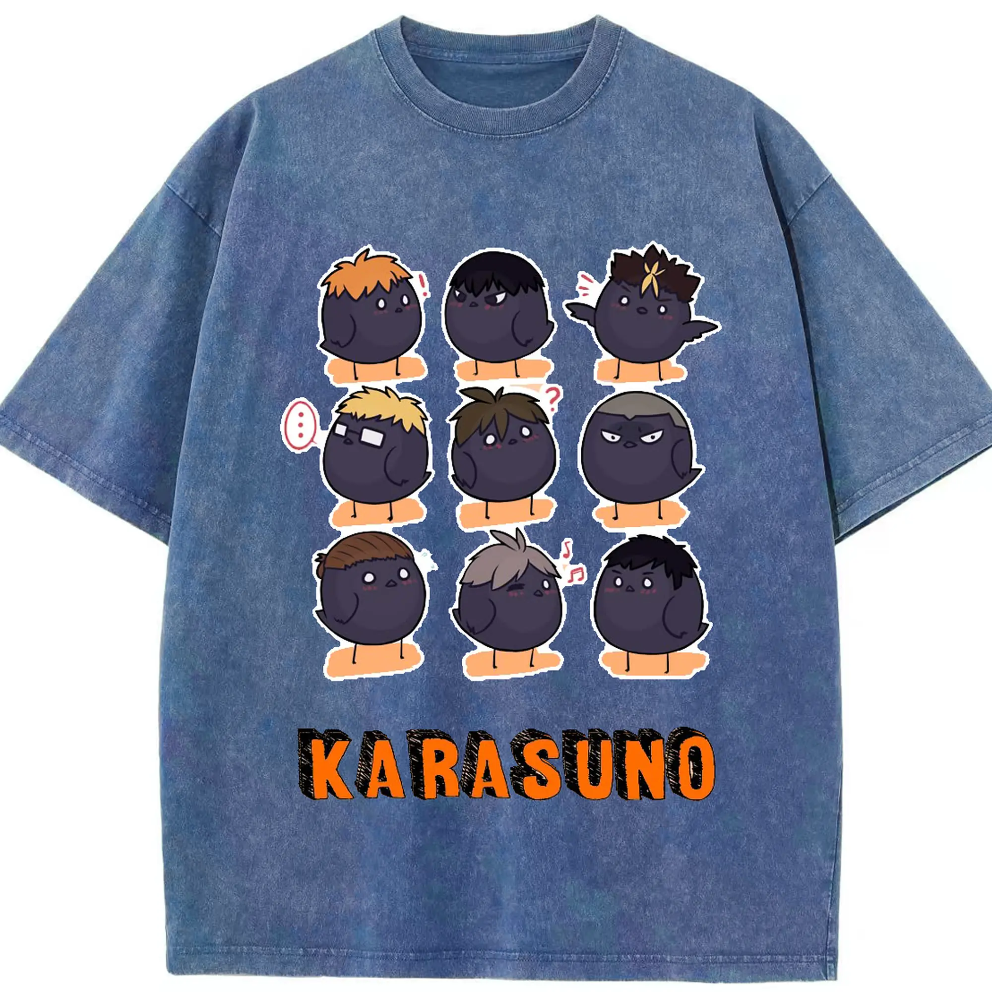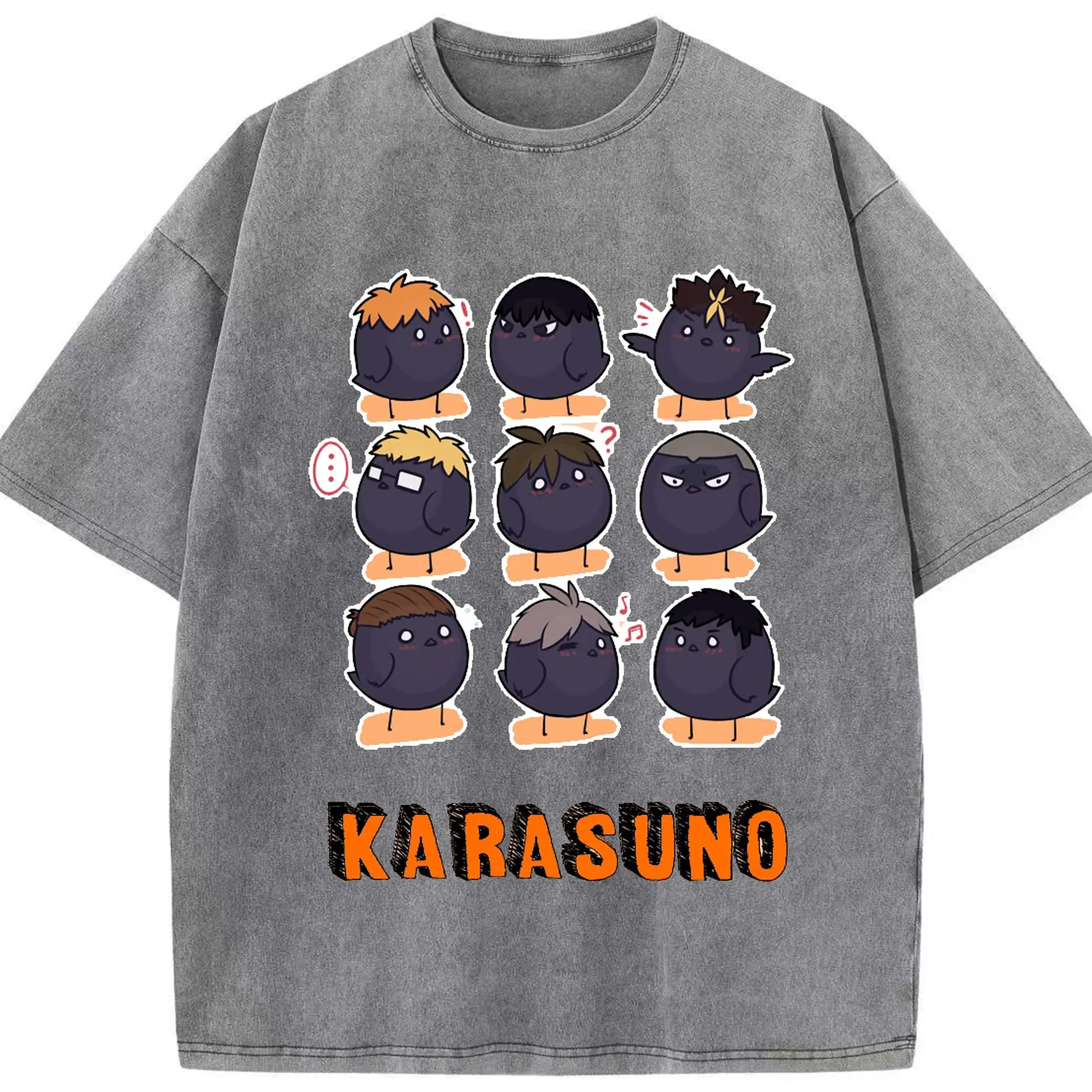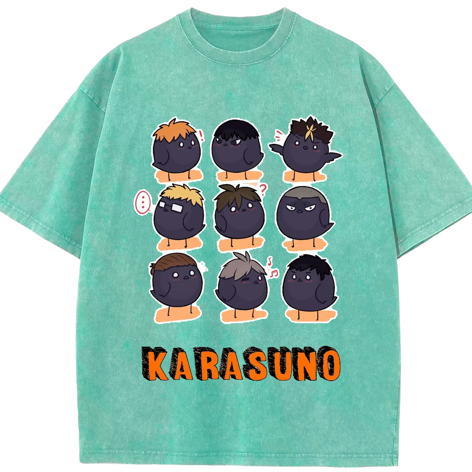ハイキュー!!デフォルメ 烏野高校 全メンバー - 綿100% 半袖Tシャツ ・ フロントプリント ・ 快適 通気性 ・ 日常使い 散歩 スポーツ用
