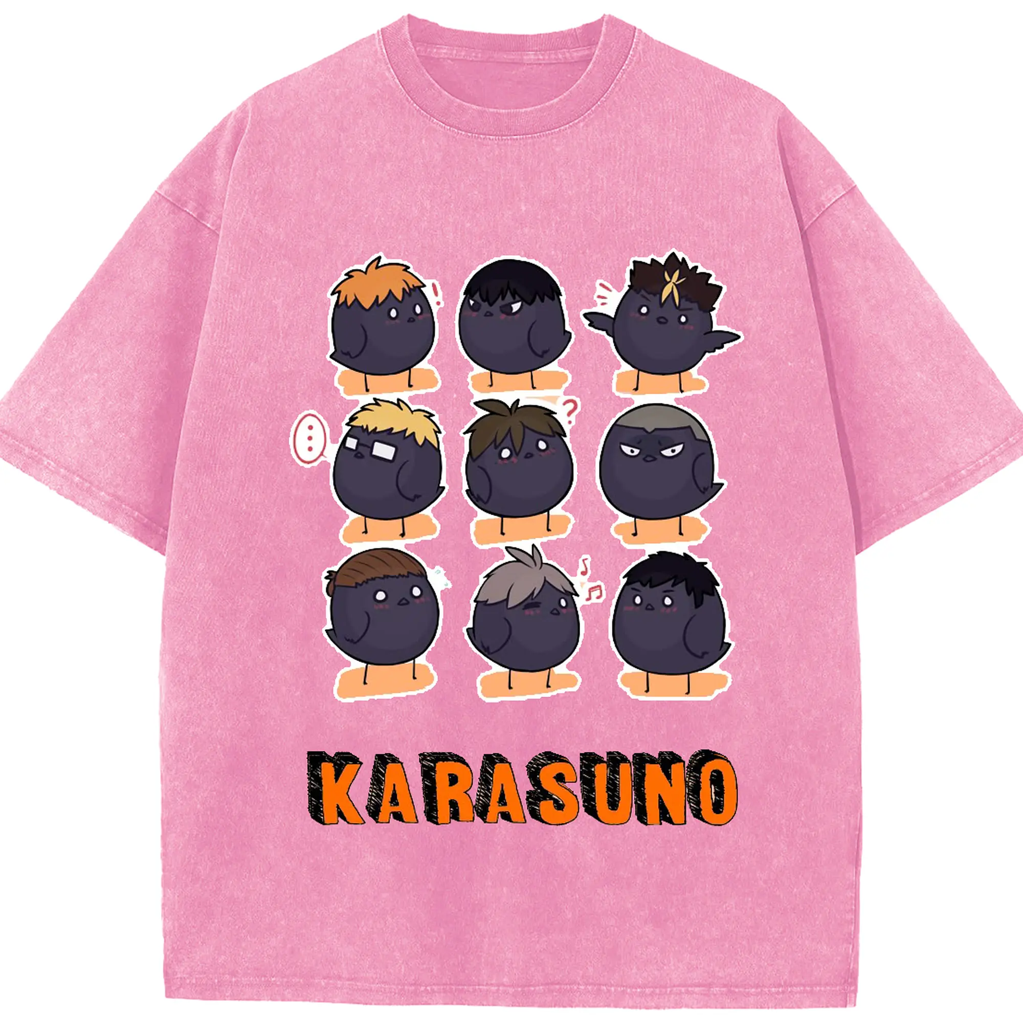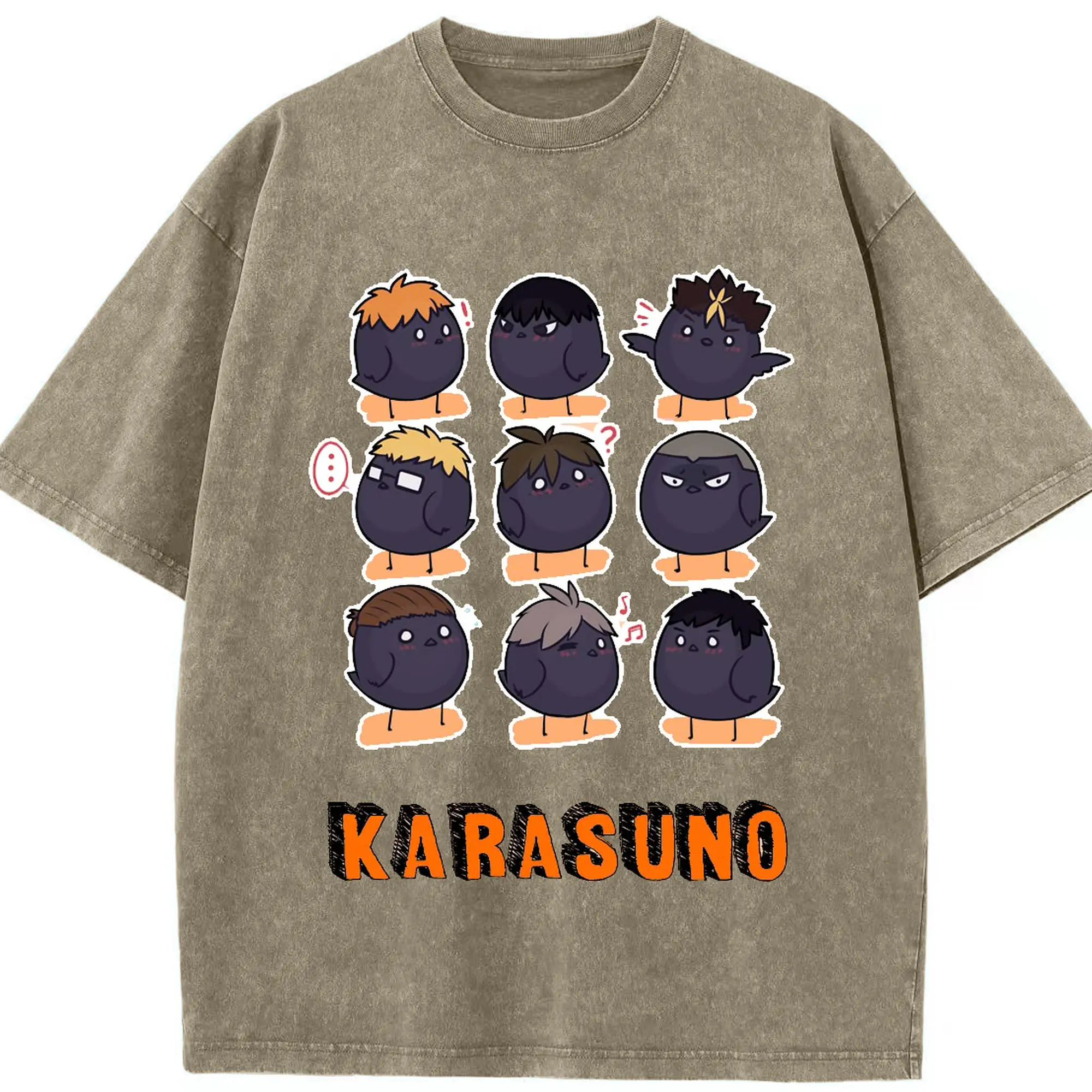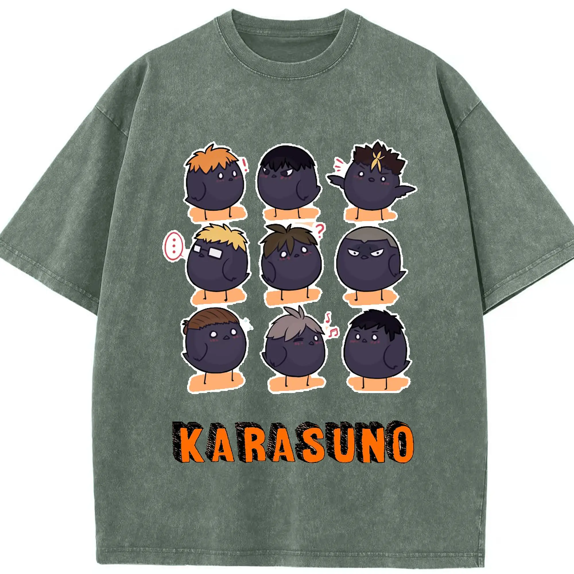 ハイキュー!!デフォルメ 烏野高校 全メンバー - 綿100% 半袖Tシャツ ・ フロントプリント ・ 快適 通気性 ・ 日常使い 散歩 スポーツ用