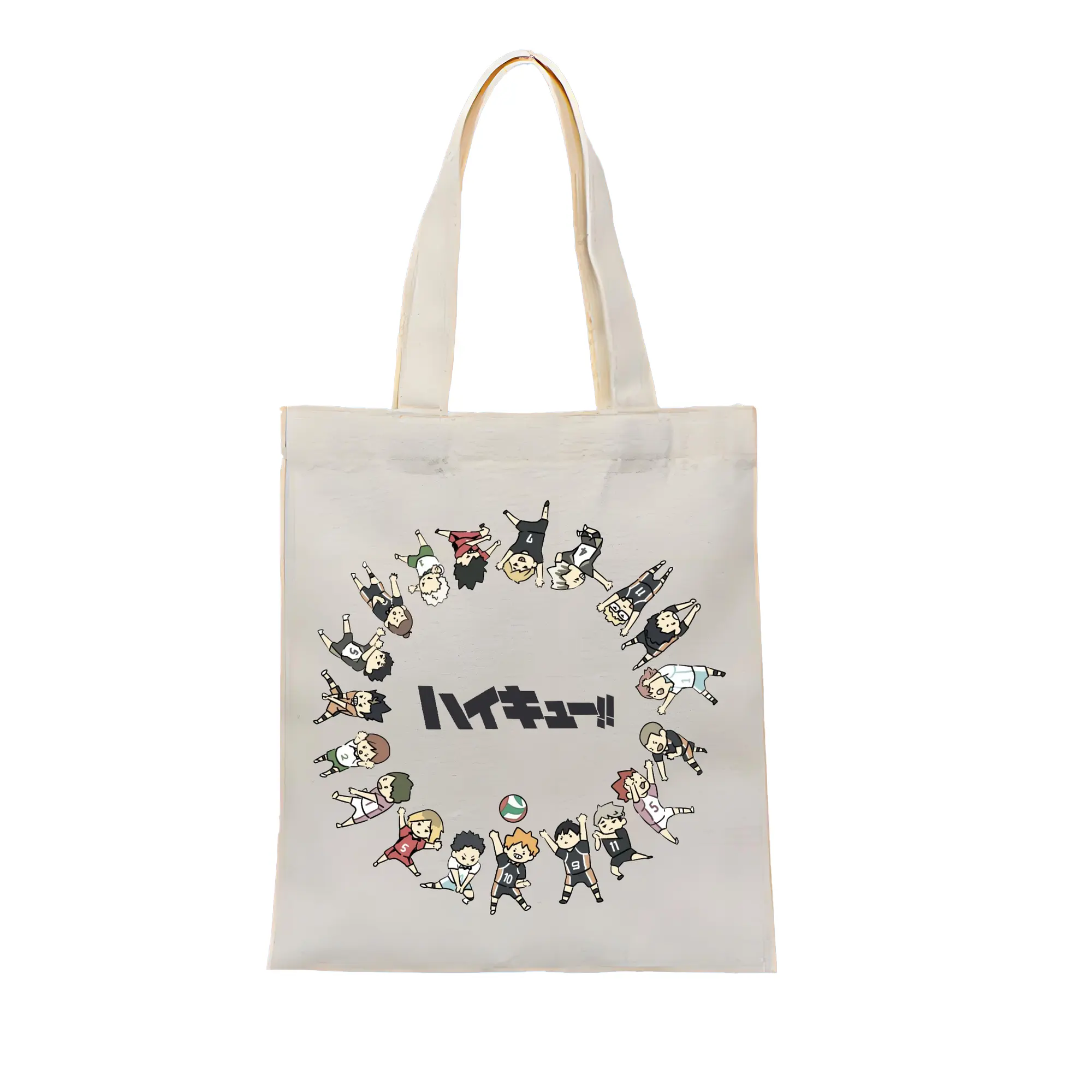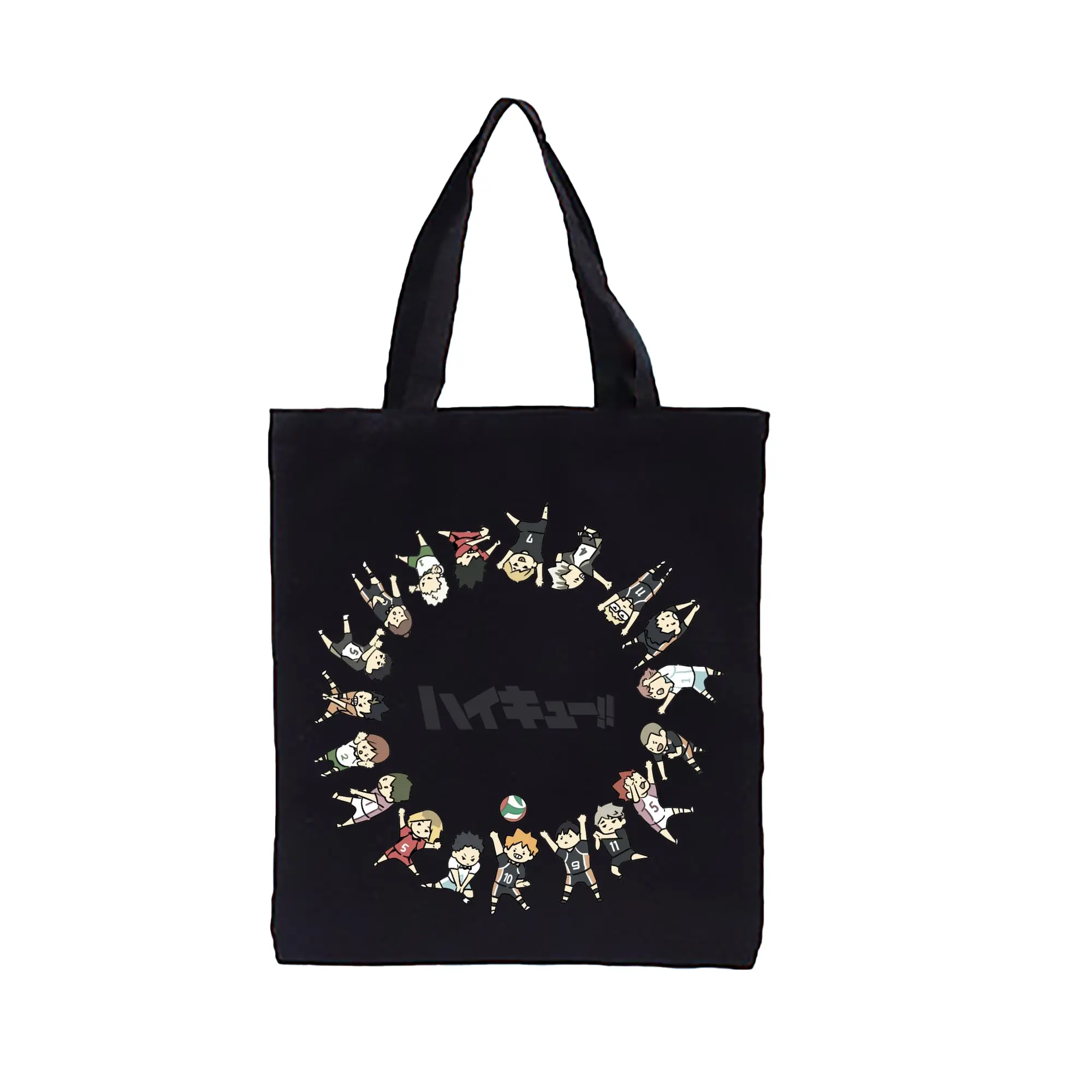 ハイキュー!!デフォルメキャラ全メンバー - 縦型キャンバス手提げバッグ(トートバッグ) ・ キャンバス素材 ・ ショッピング用 ・ 軽量 丈夫 お手入れ簡単