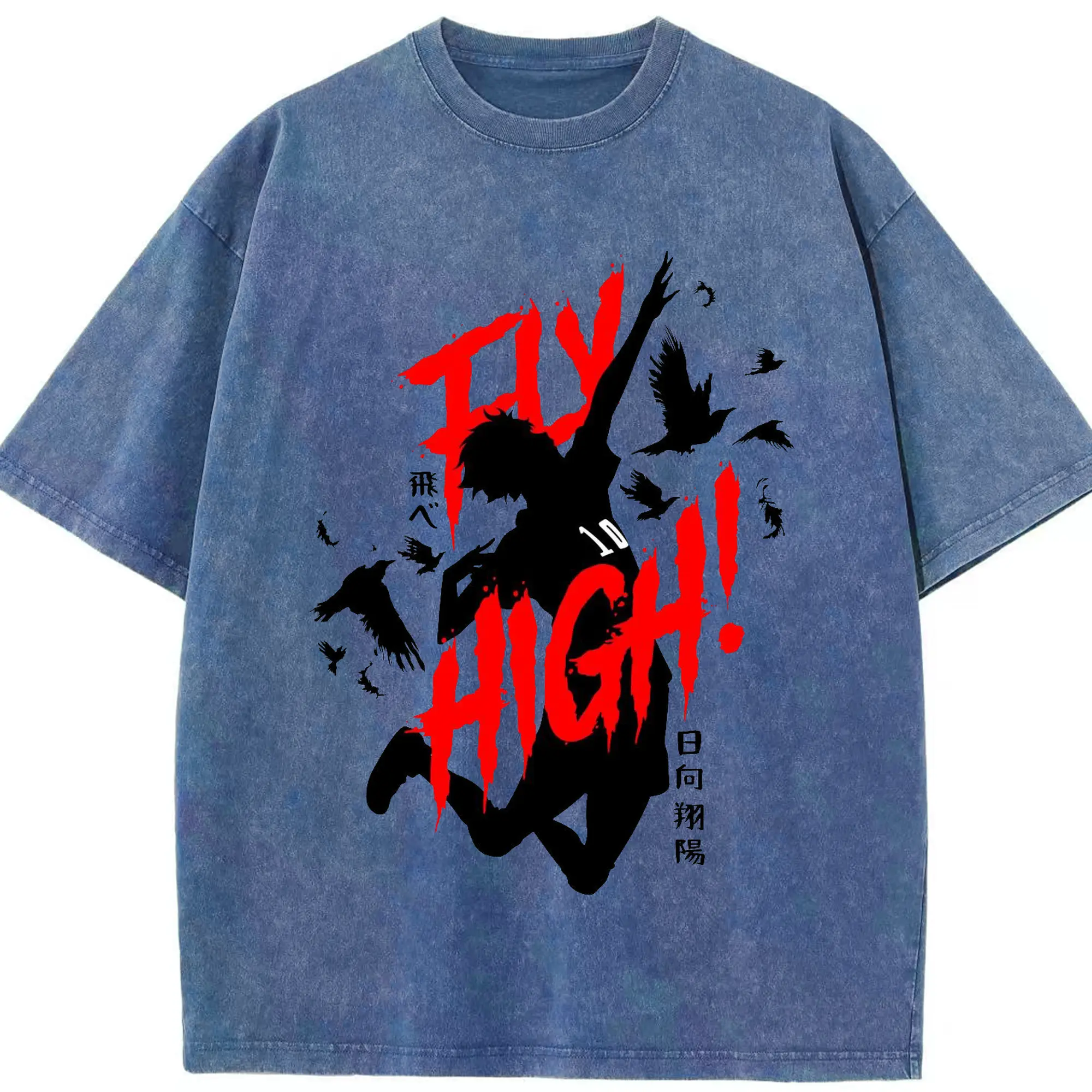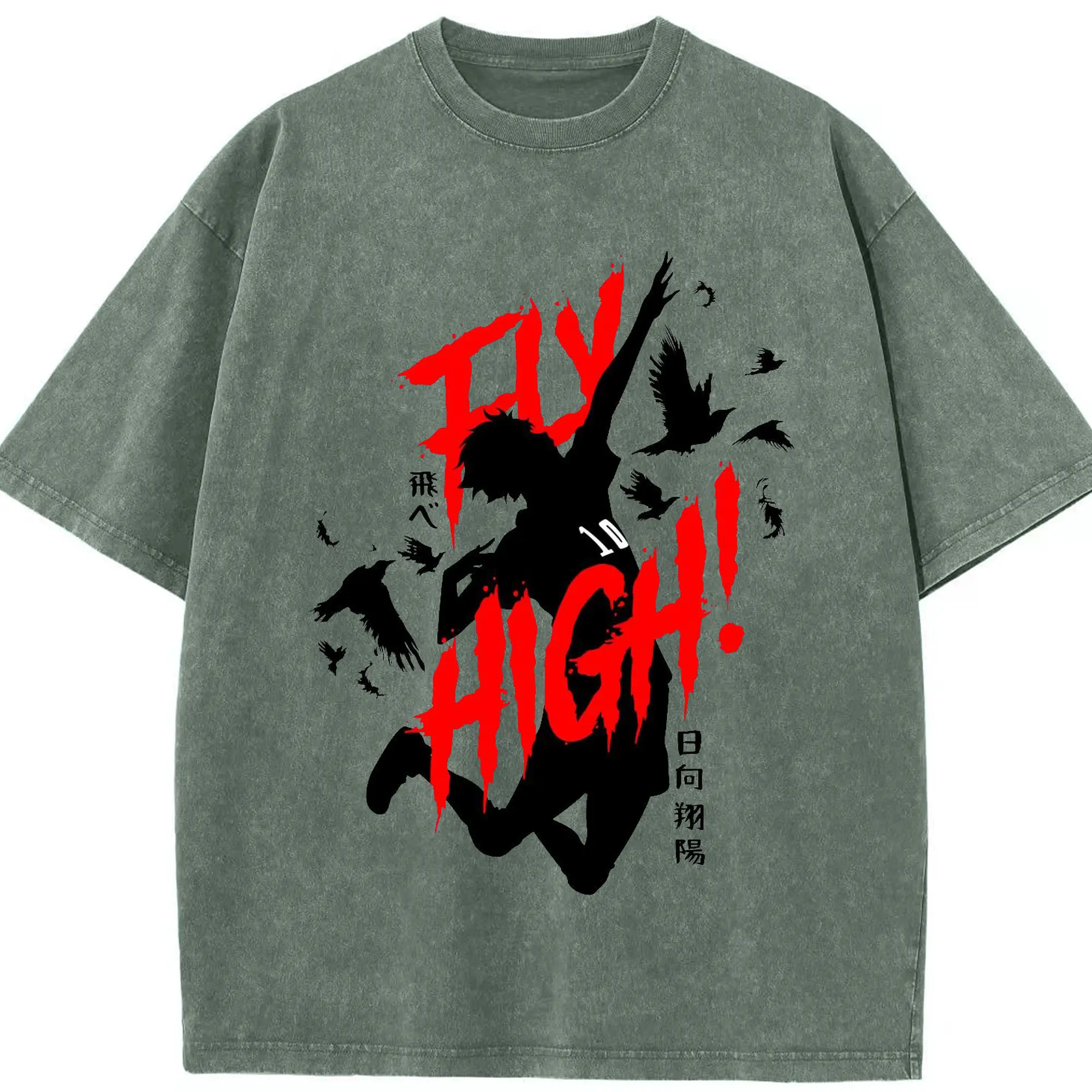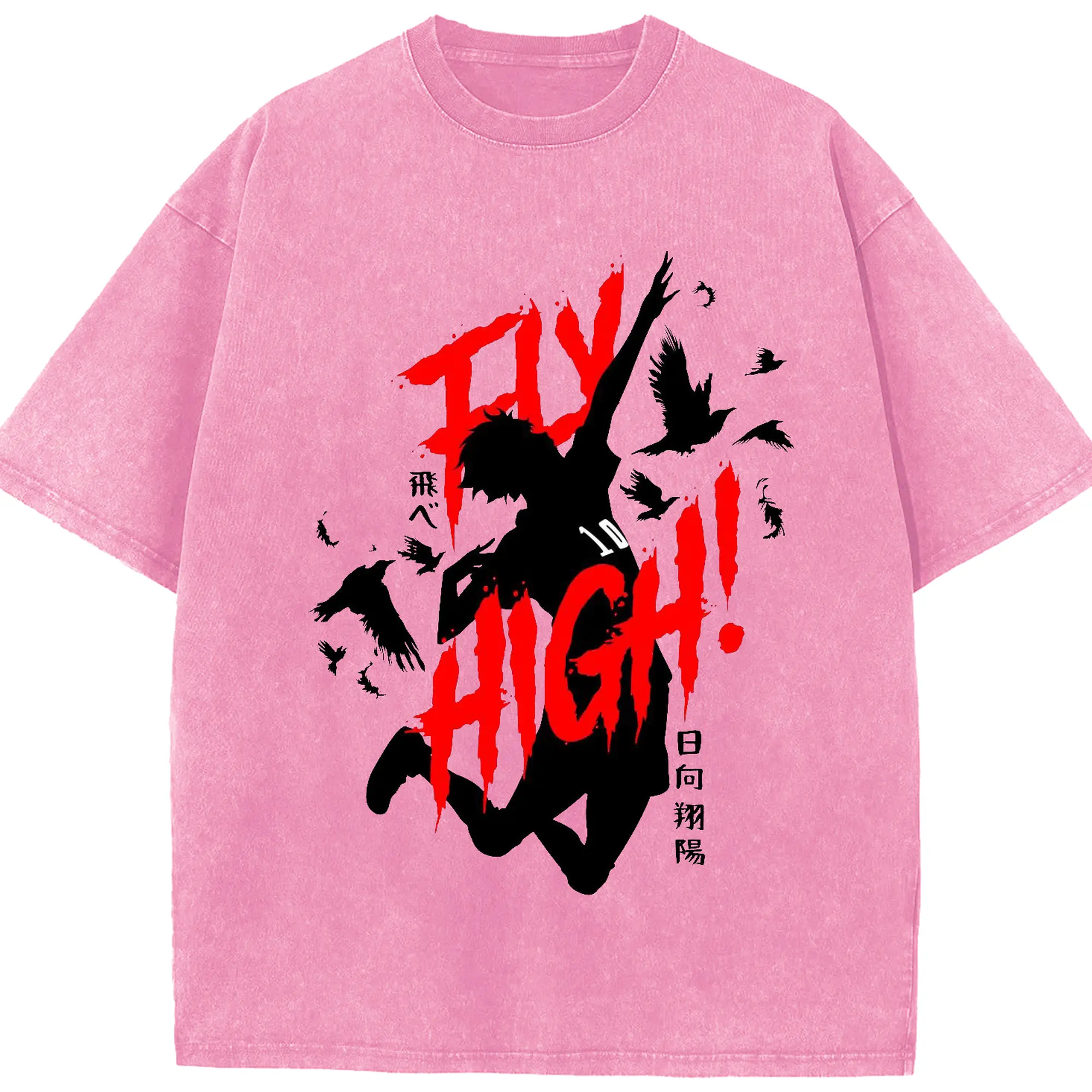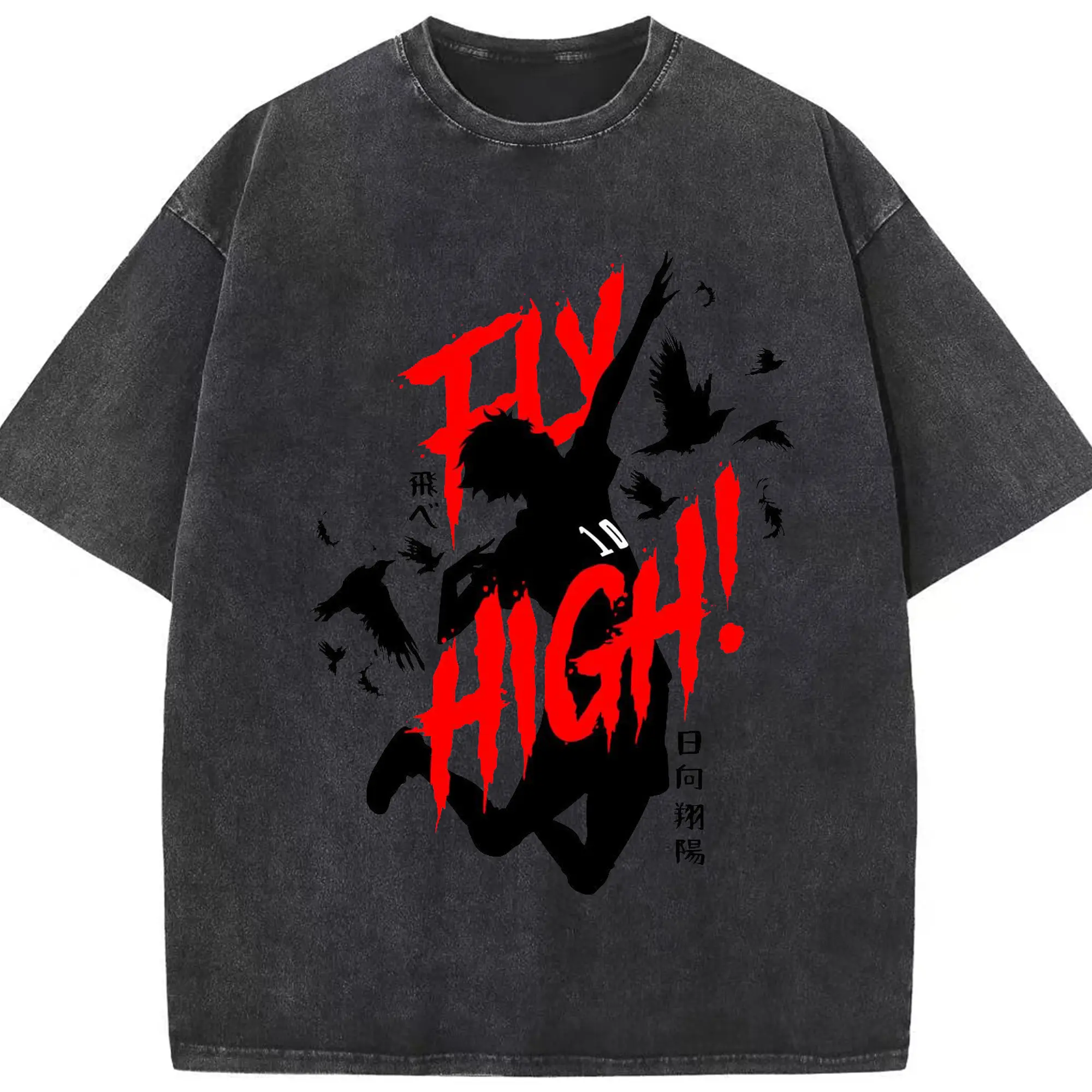 ハイキュー!!日向翔陽 飛べ!FLY HIGH - 綿100% 半袖Tシャツ ・ フロントプリント ・ 快適 通気性 ・ 日常使い 散歩 スポーツ用
