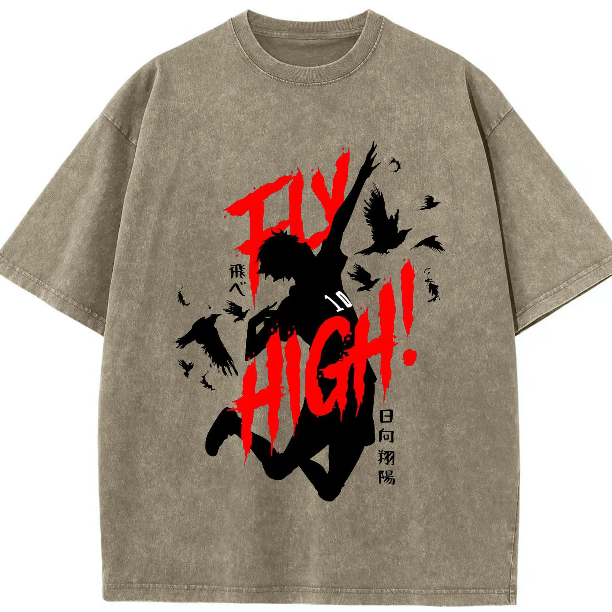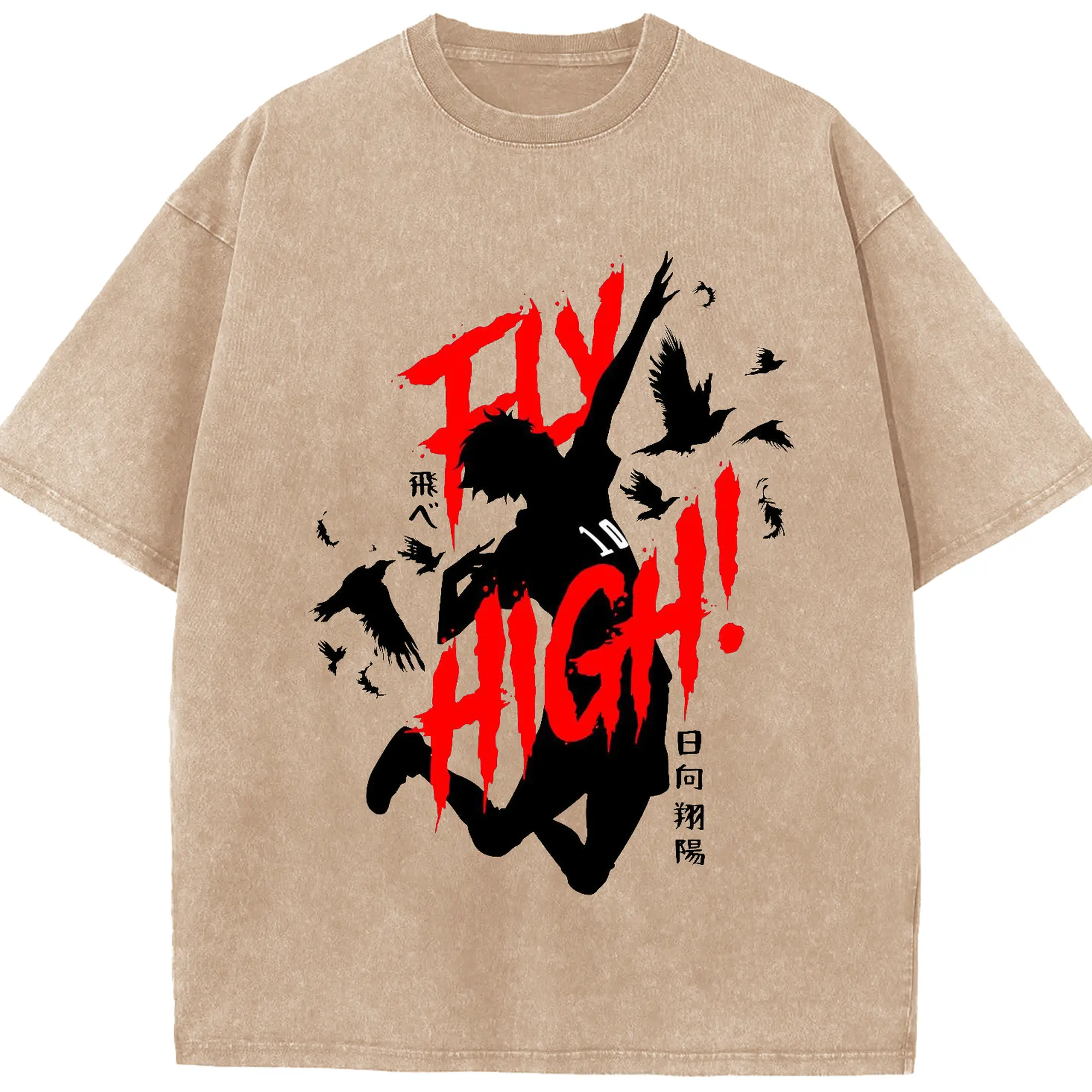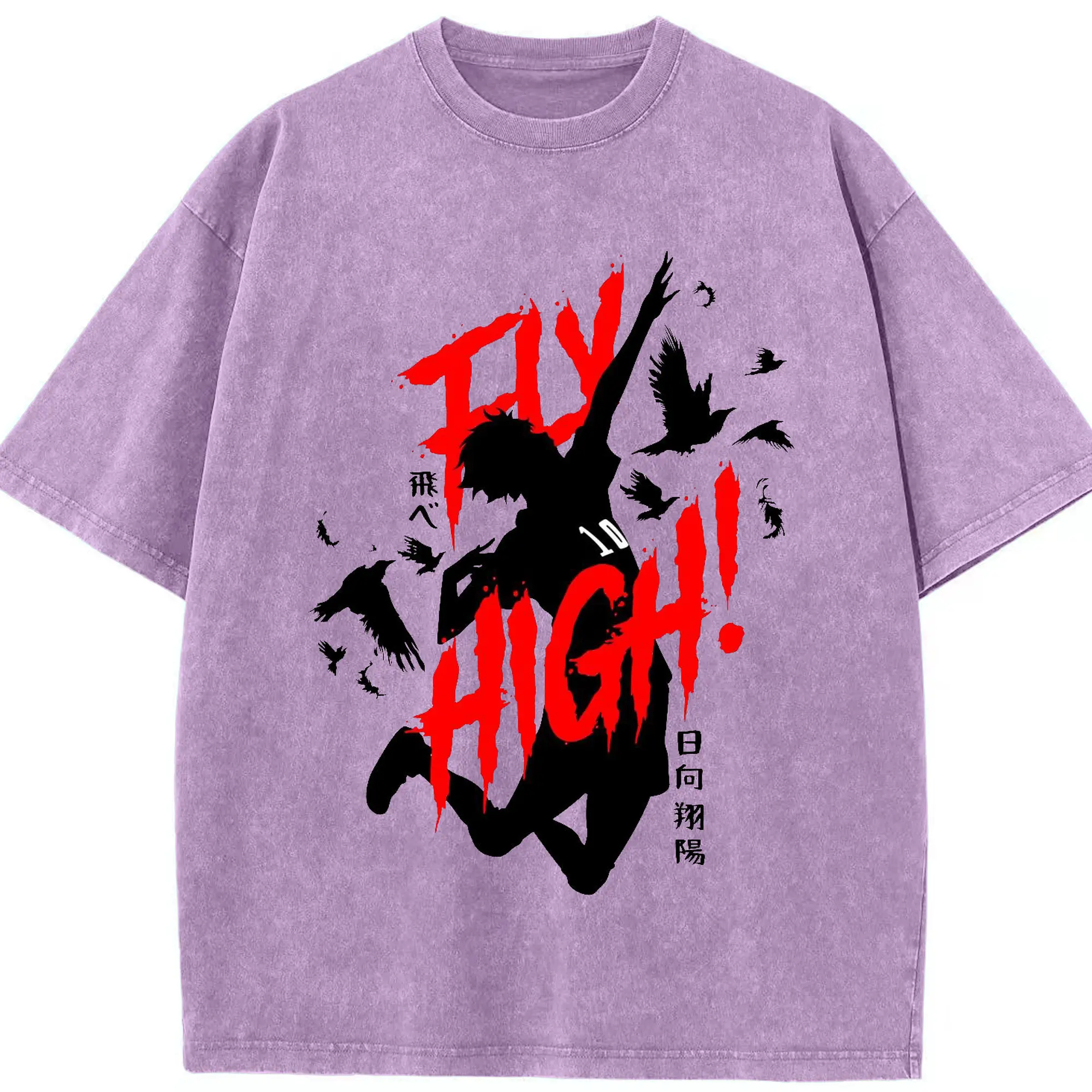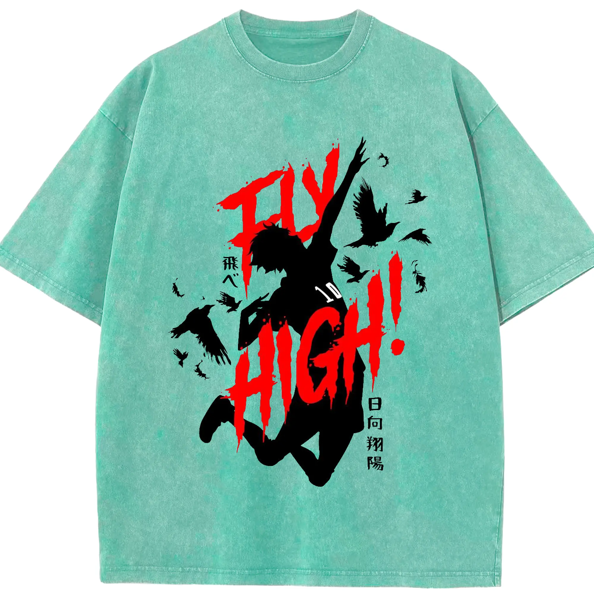 ハイキュー!!日向翔陽 飛べ!FLY HIGH - 綿100% 半袖Tシャツ ・ フロントプリント ・ 快適 通気性 ・ 日常使い 散歩 スポーツ用