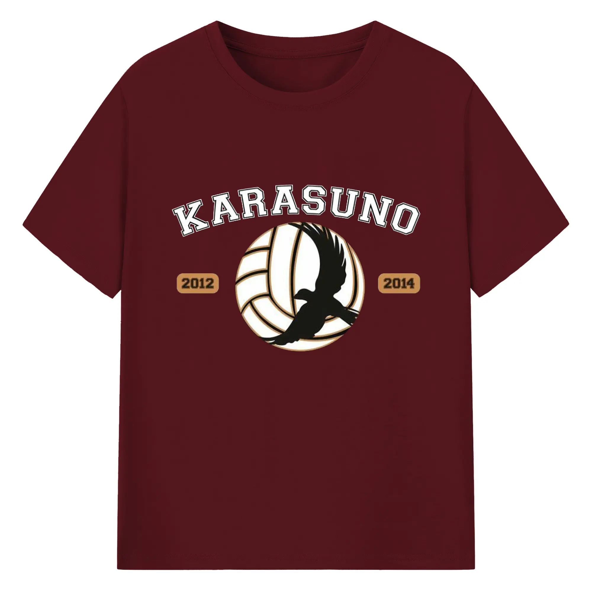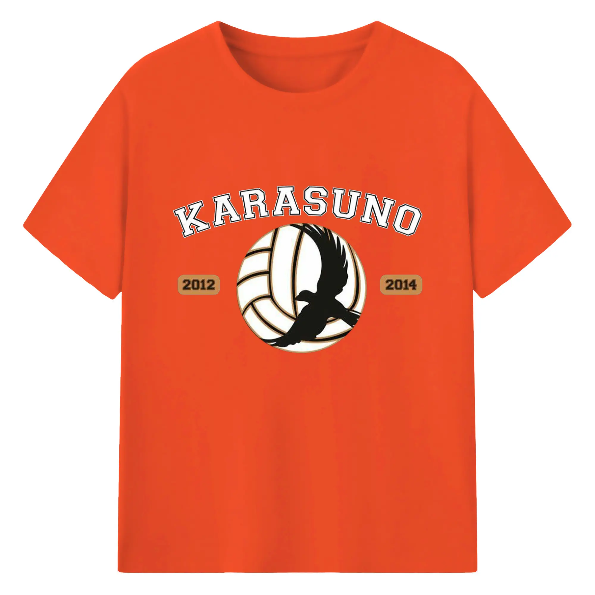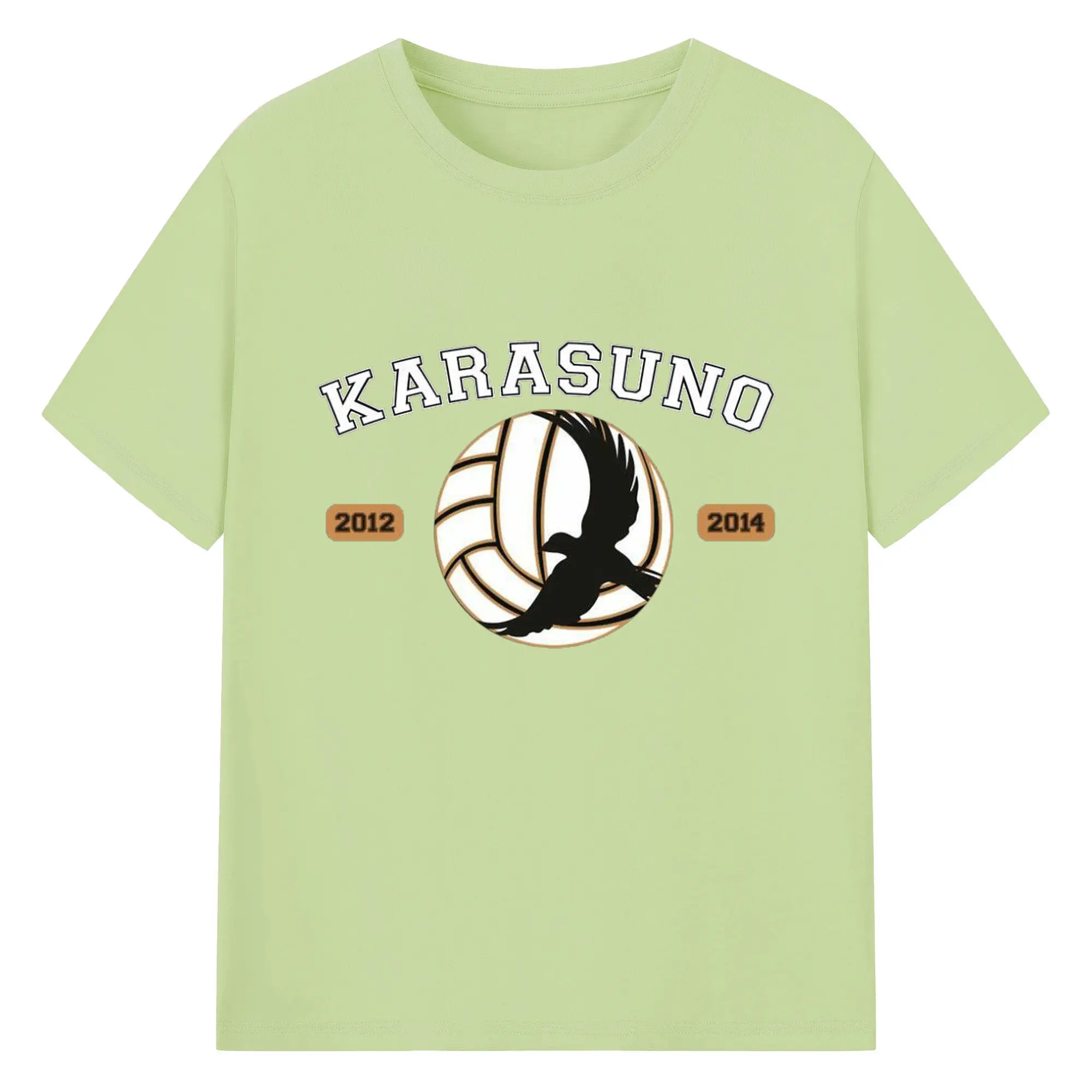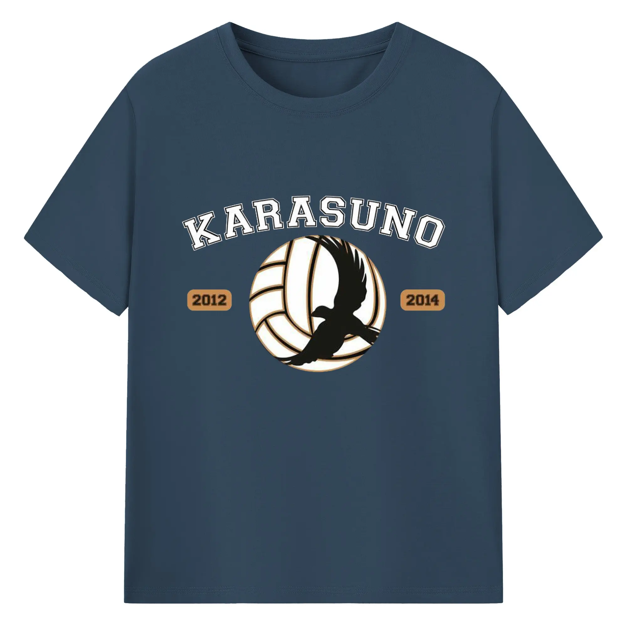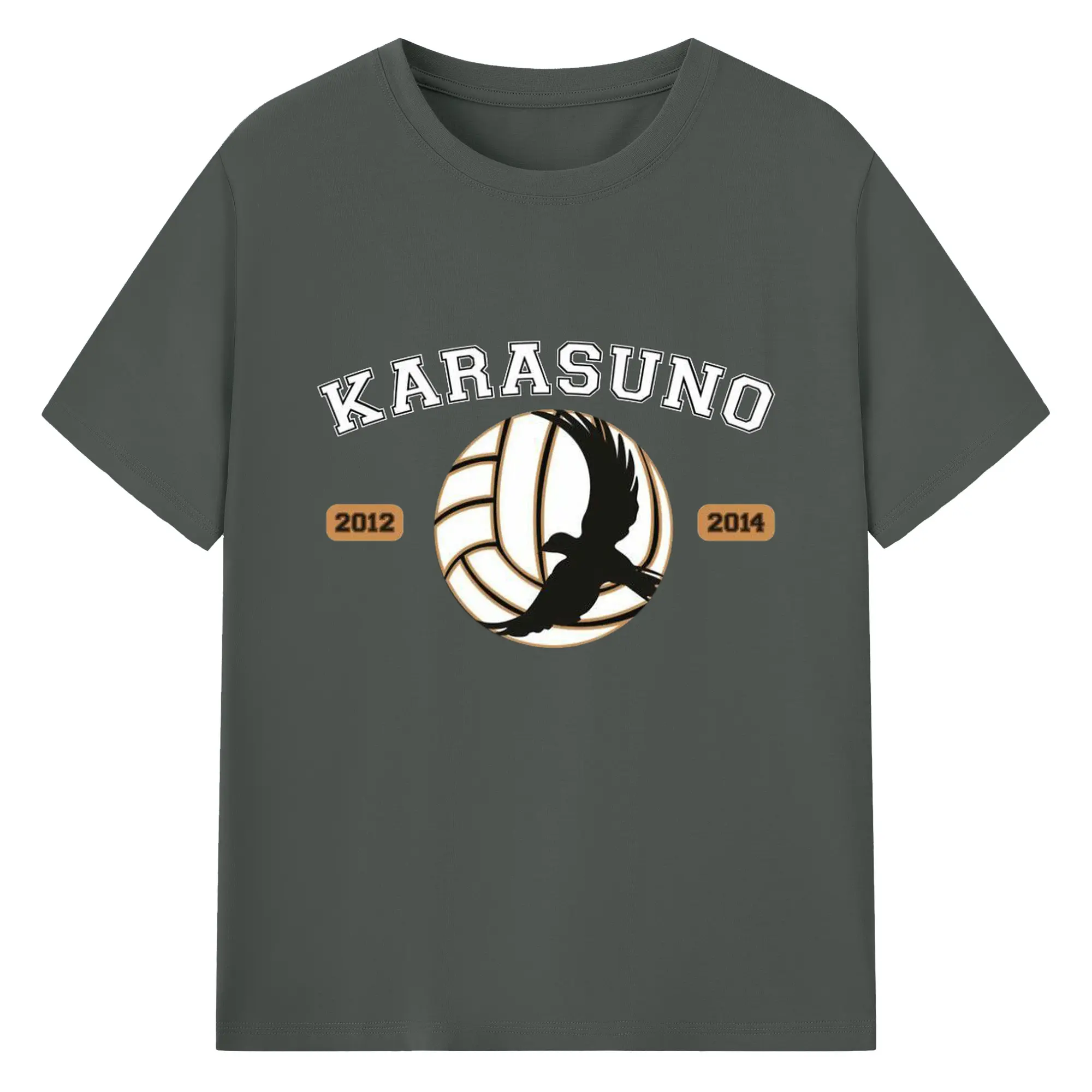 ハイキュー!!烏野高校シンプルロゴ - 綿100% ヴィンテージ風 半袖Tシャツ ・ フロントプリント ・ 柔らか肌触り ・ 通気性 快適 ・ スポーツ カジュアル 外出用