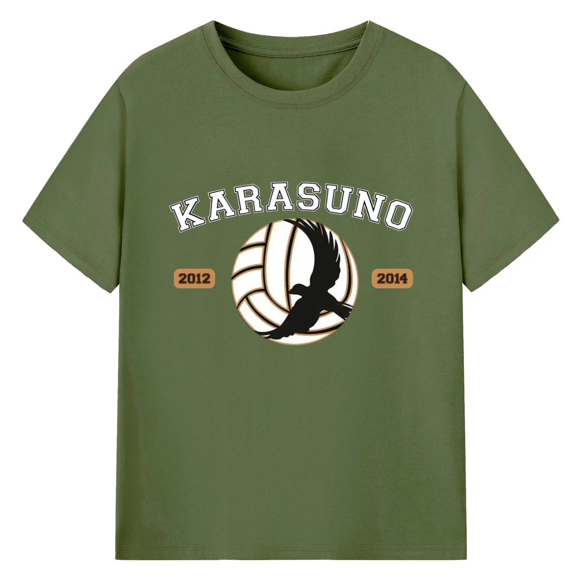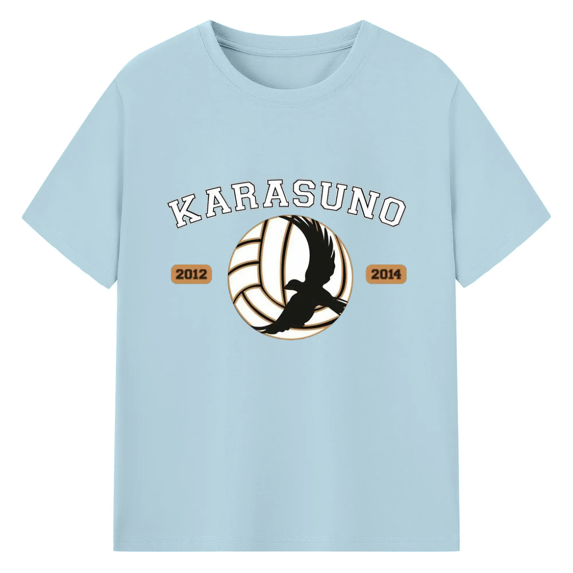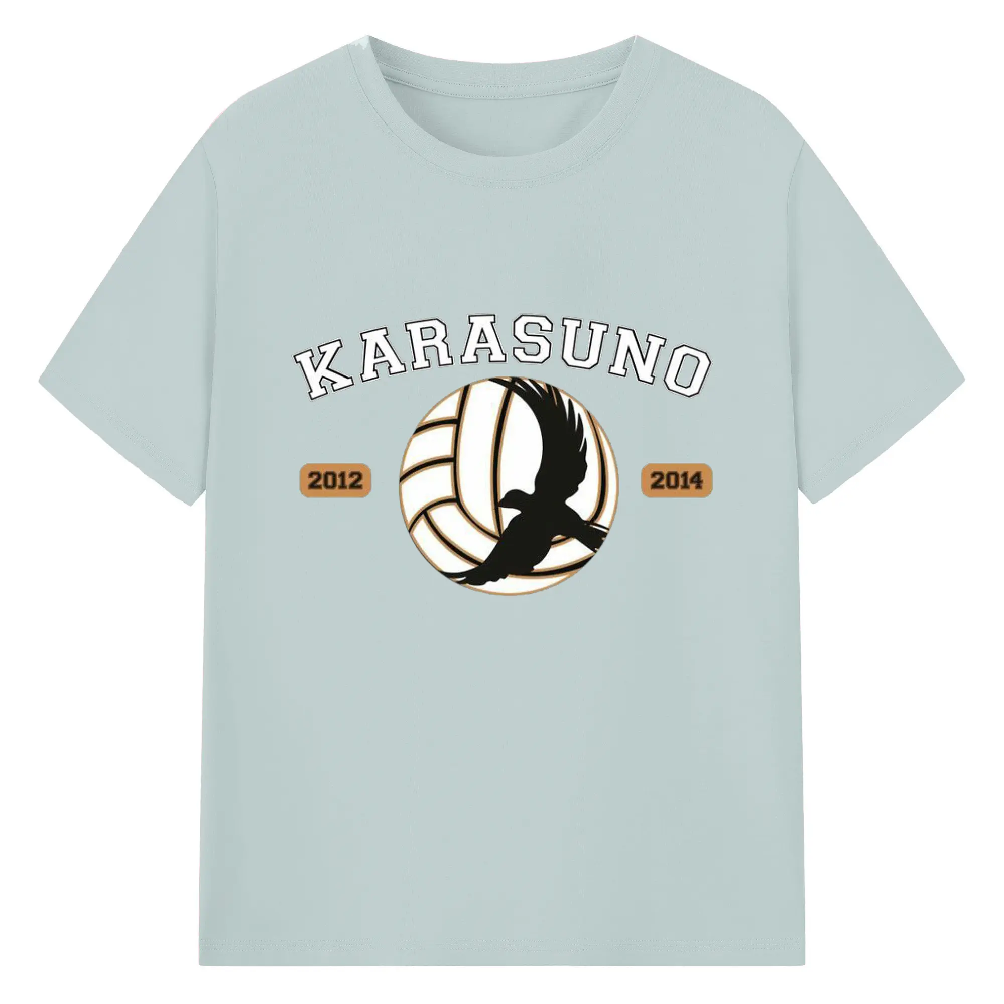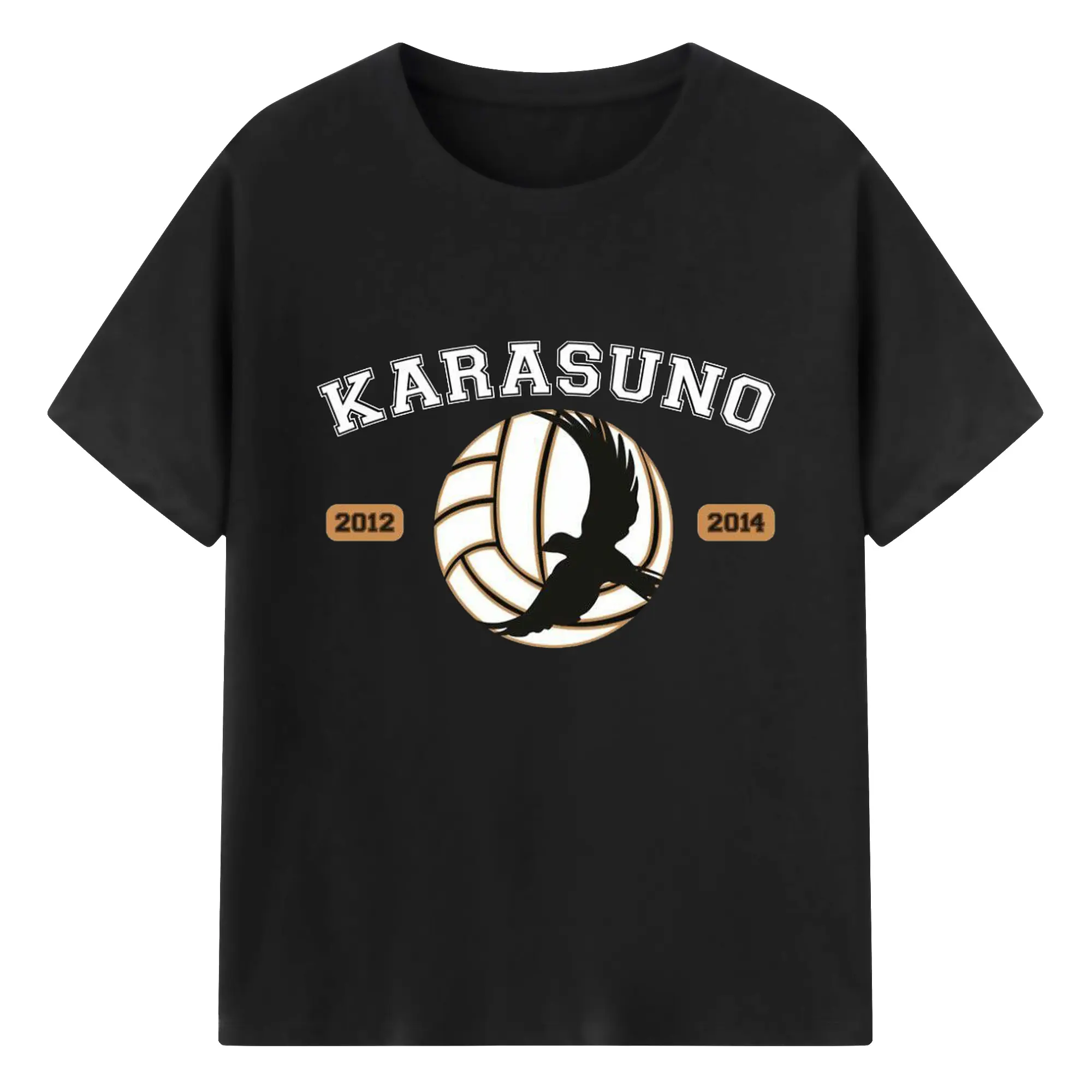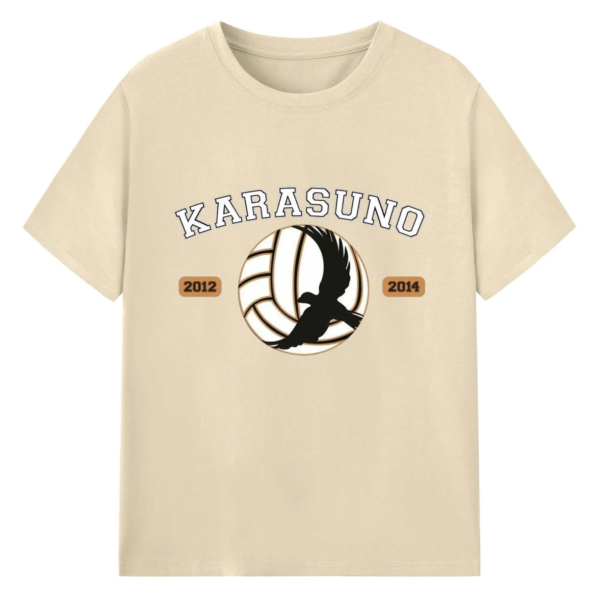 ハイキュー!!烏野高校シンプルロゴ - 綿100% ヴィンテージ風 半袖Tシャツ ・ フロントプリント ・ 柔らか肌触り ・ 通気性 快適 ・ スポーツ カジュアル 外出用