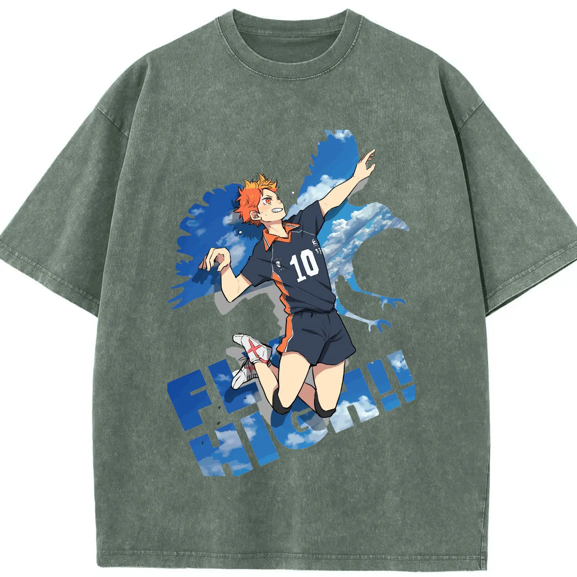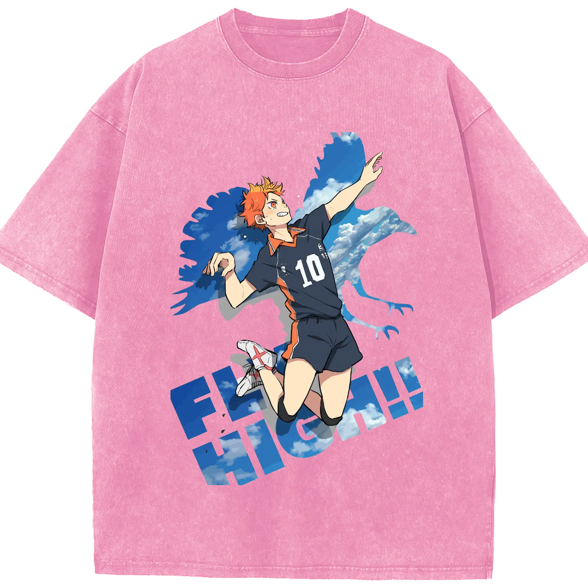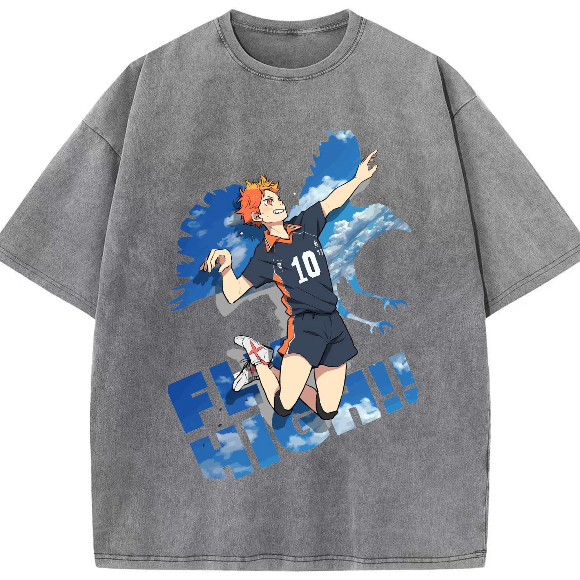 ハイキュー!!飛べ!FLY HIGH - 綿100% 半袖Tシャツ ・ フロントプリント ・ 快適 通気性 ・ 日常使い 散歩 スポーツ用