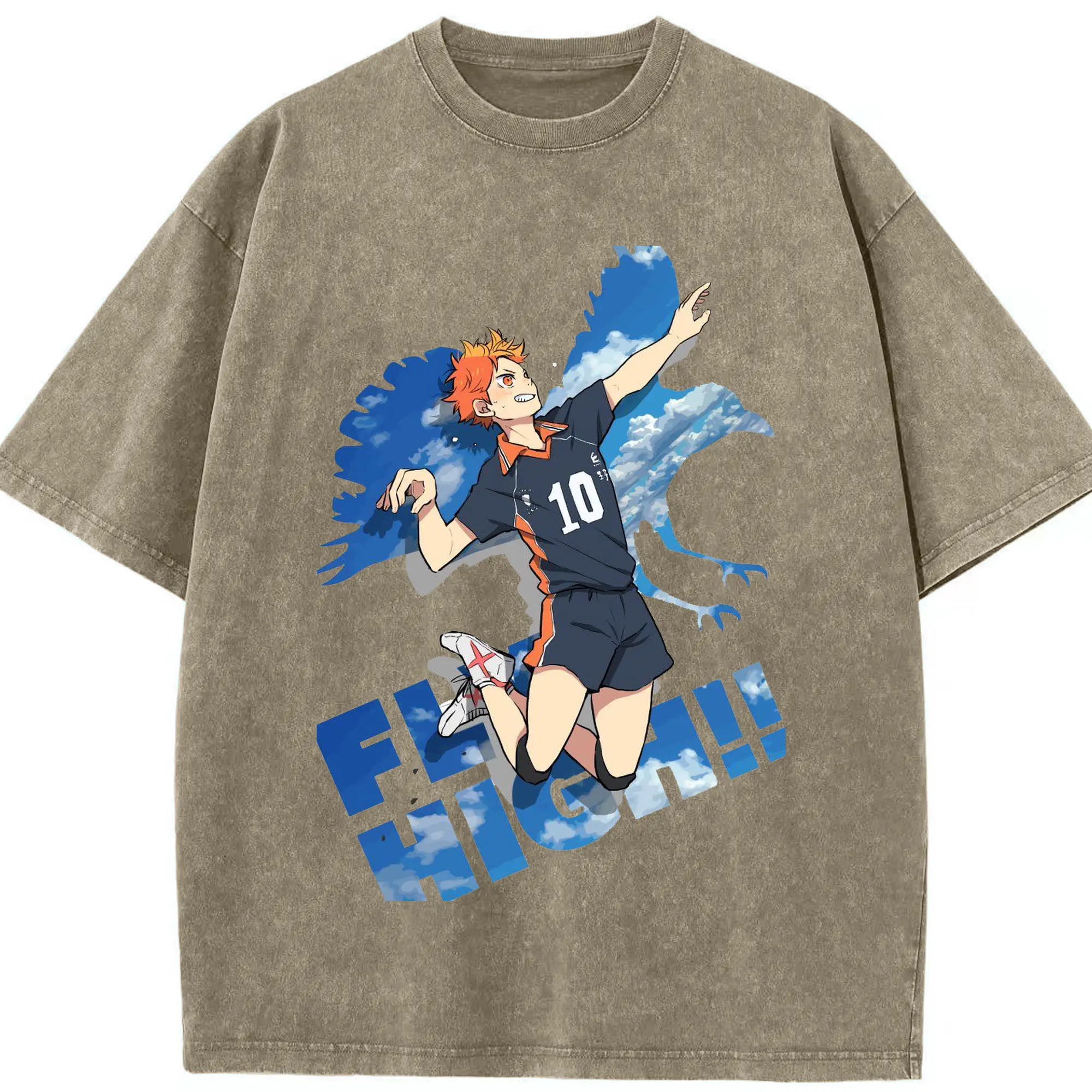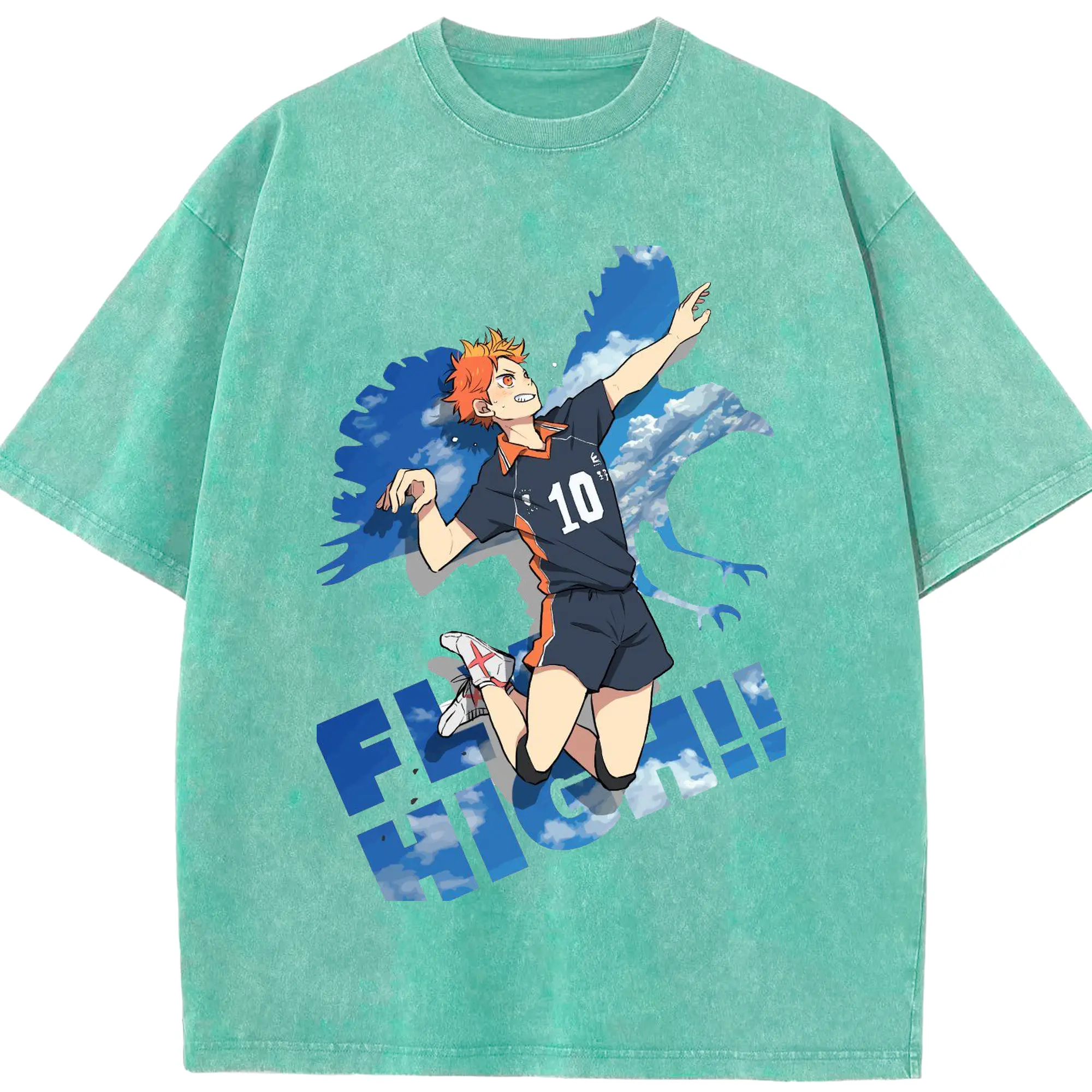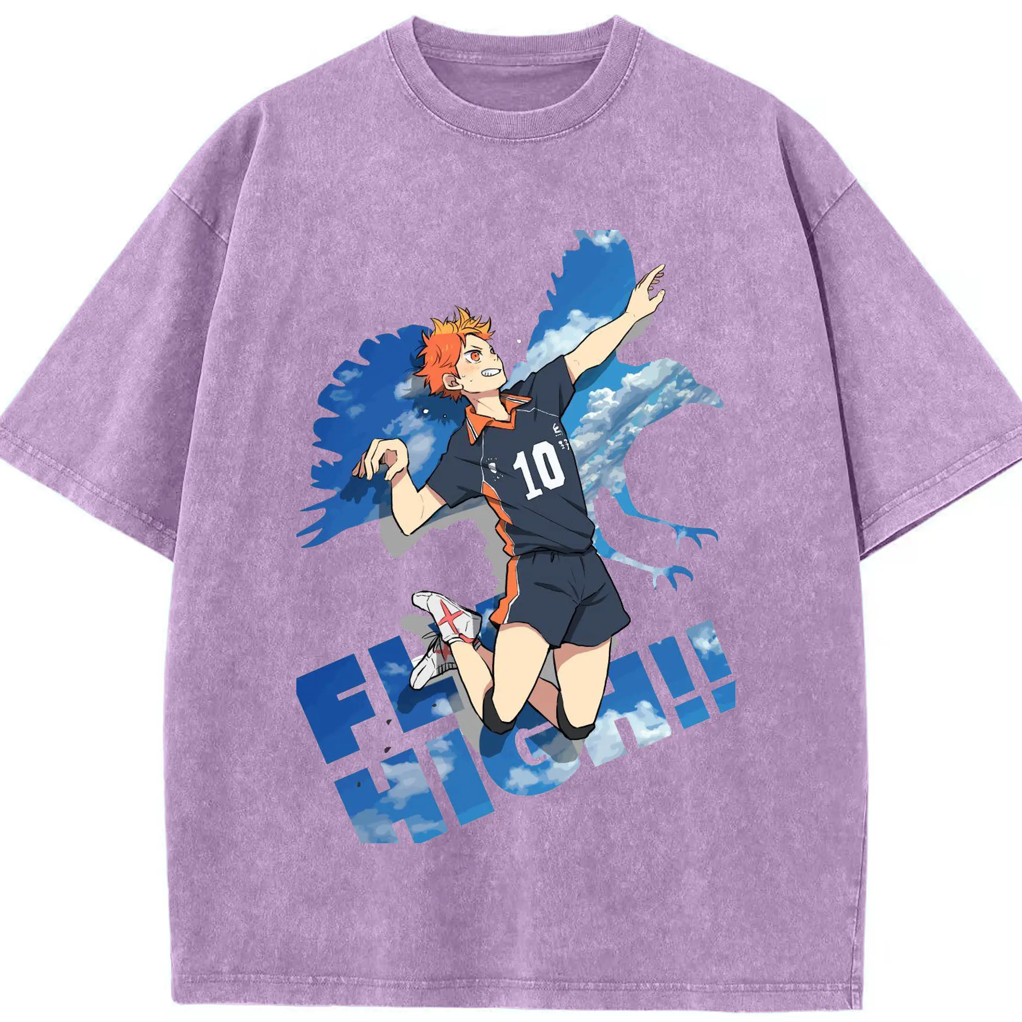 ハイキュー!!飛べ!FLY HIGH - 綿100% 半袖Tシャツ ・ フロントプリント ・ 快適 通気性 ・ 日常使い 散歩 スポーツ用