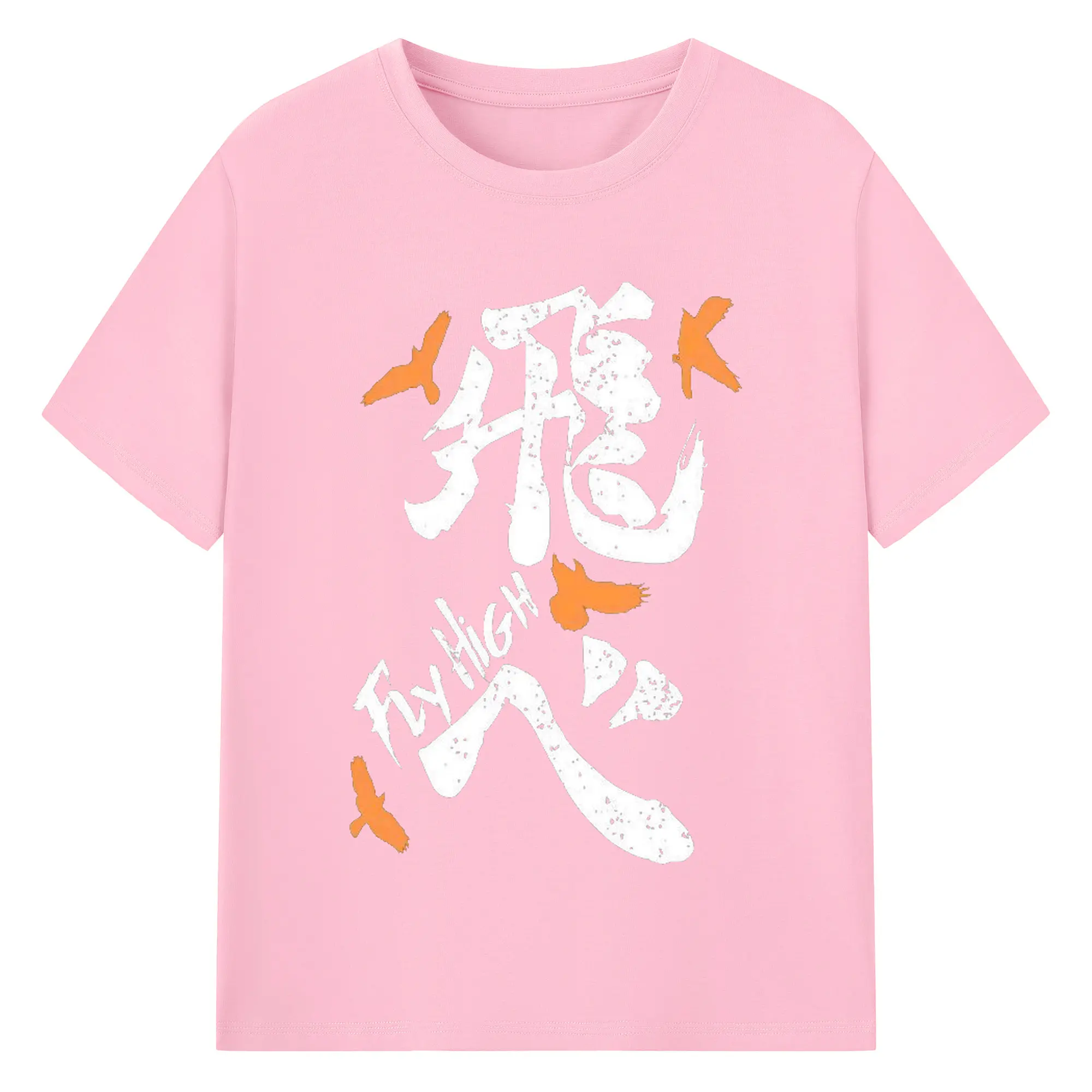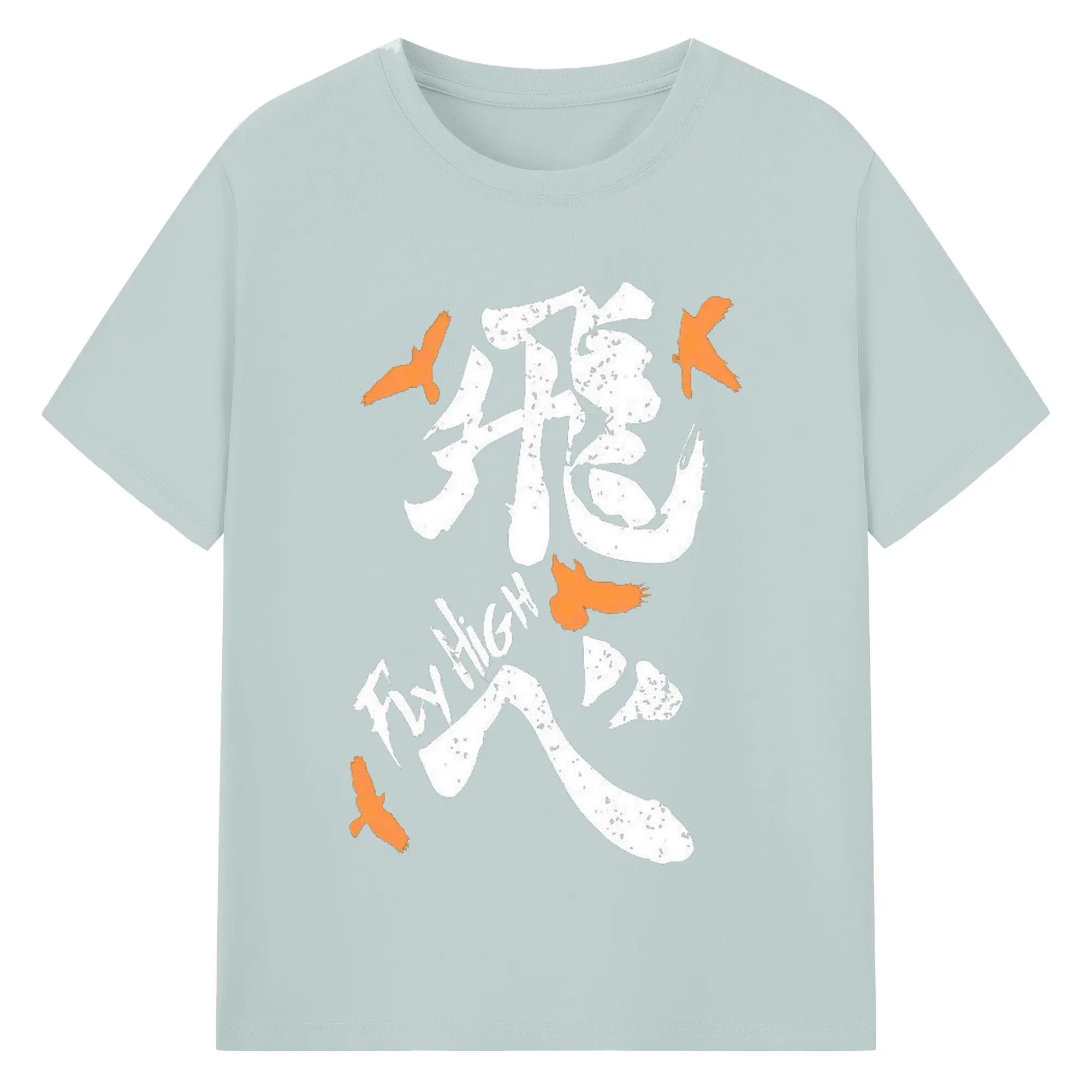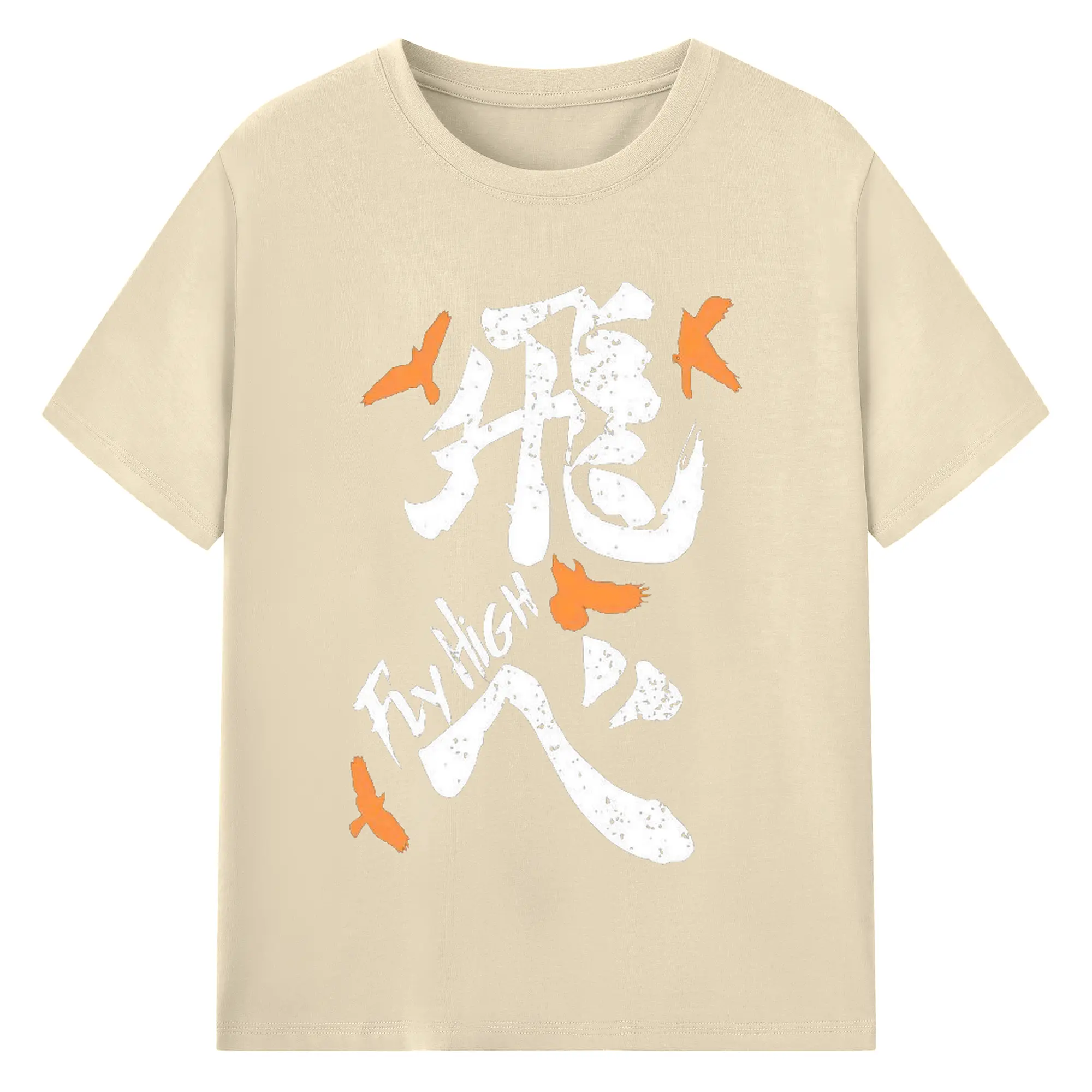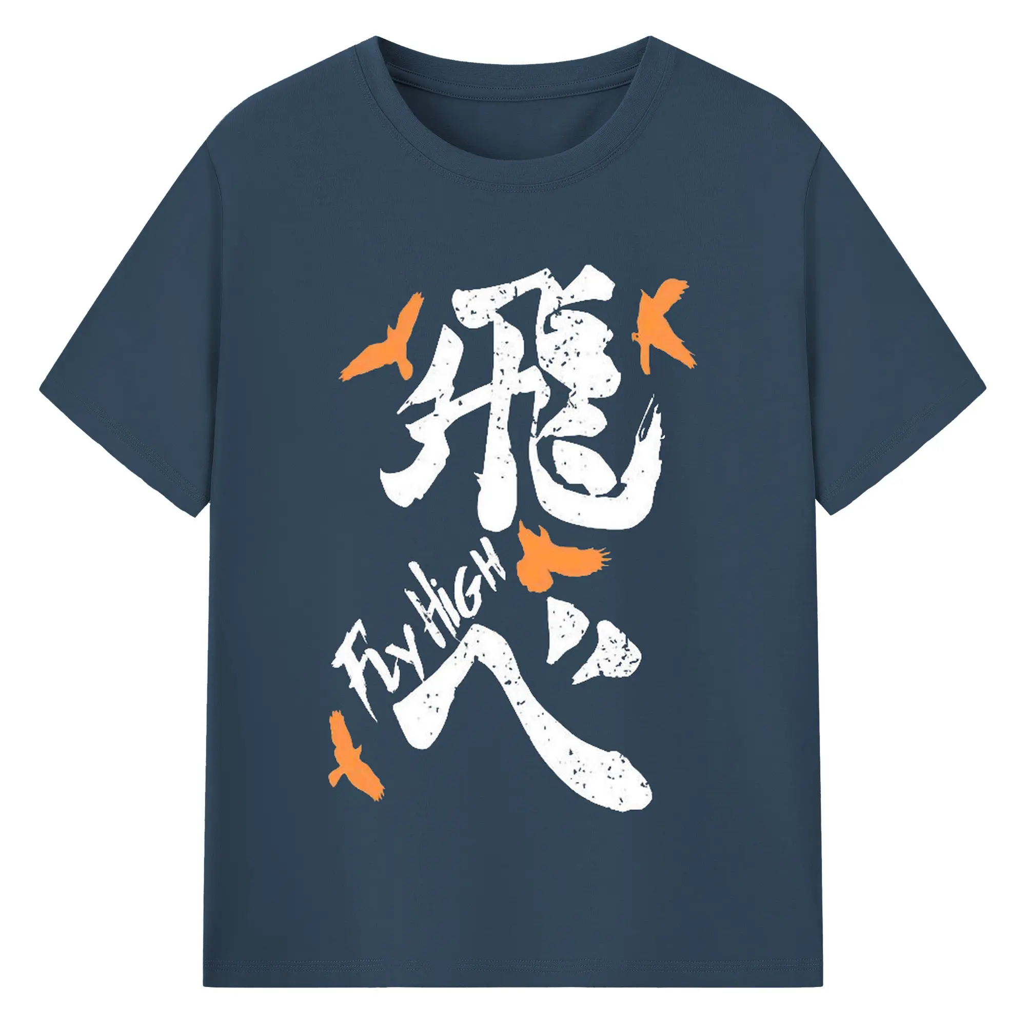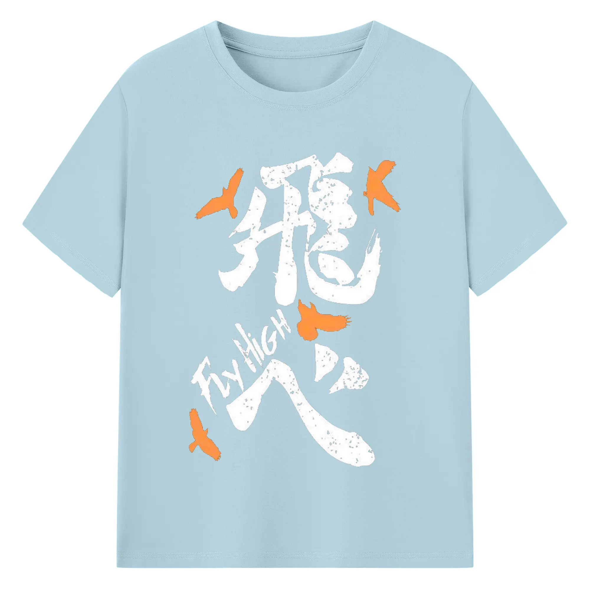 ハイキュー!! 飛べ!シンプルロゴ - 綿100% ヴィンテージ風 半袖Tシャツ ・ フロントプリント ・ 柔らか肌触り ・ 通気性 快適 ・ スポーツ カジュアル 外出用