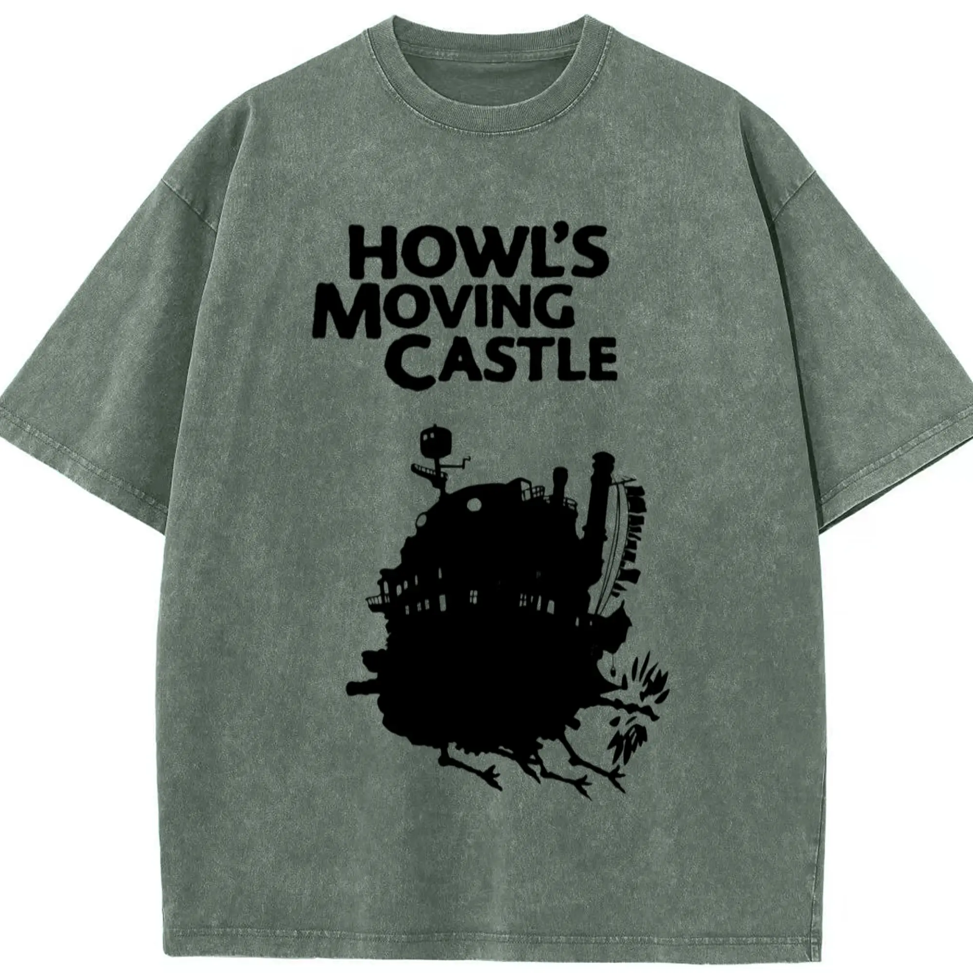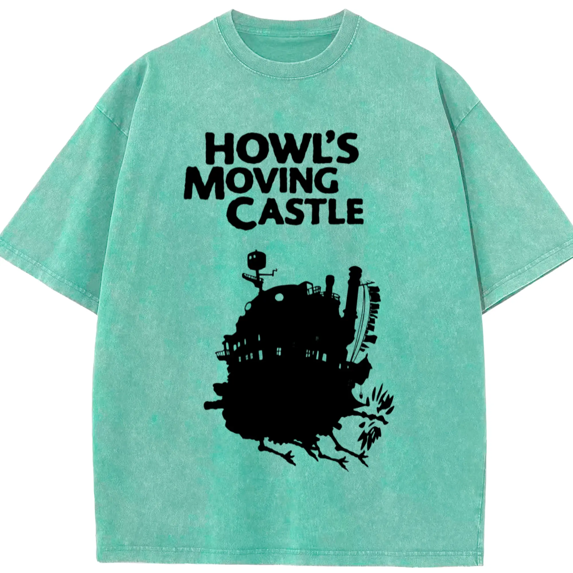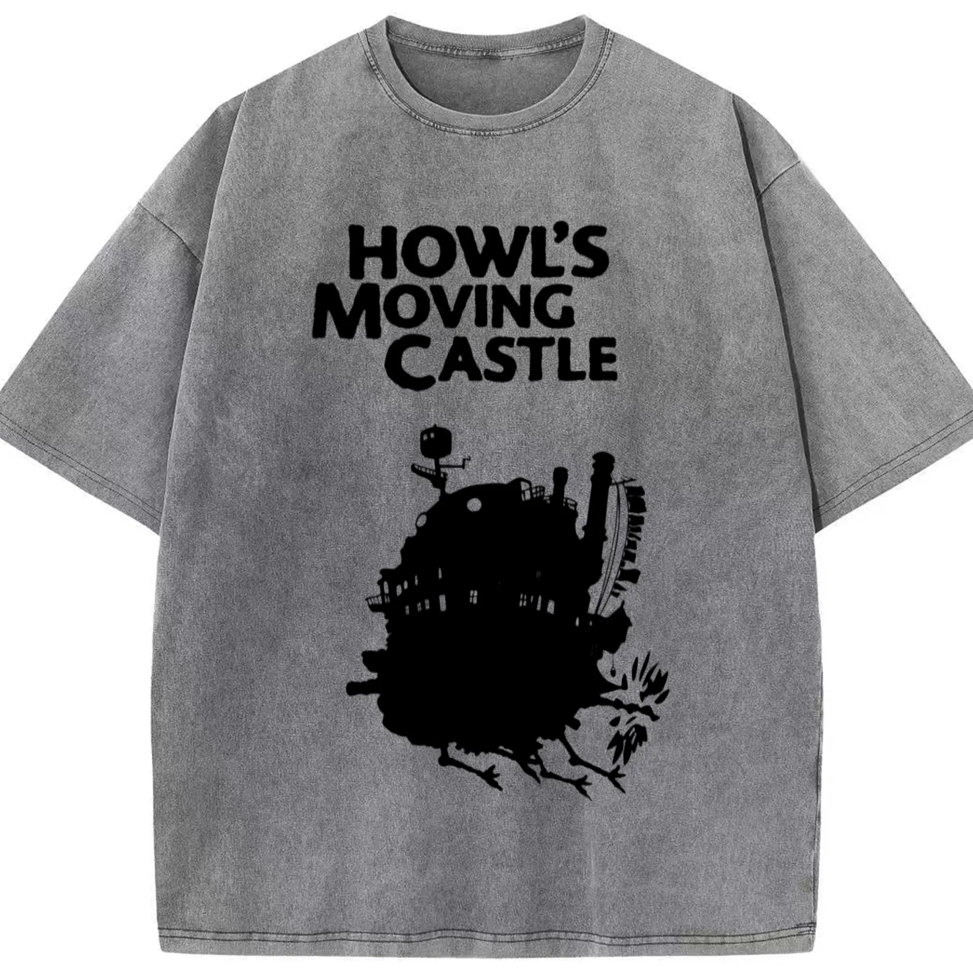 ハウルの動く城ハウル城 - 綿100% 半袖Tシャツ ・ フロントプリント ・ 快適 通気性 ・ 日常使い 散歩 スポーツ用