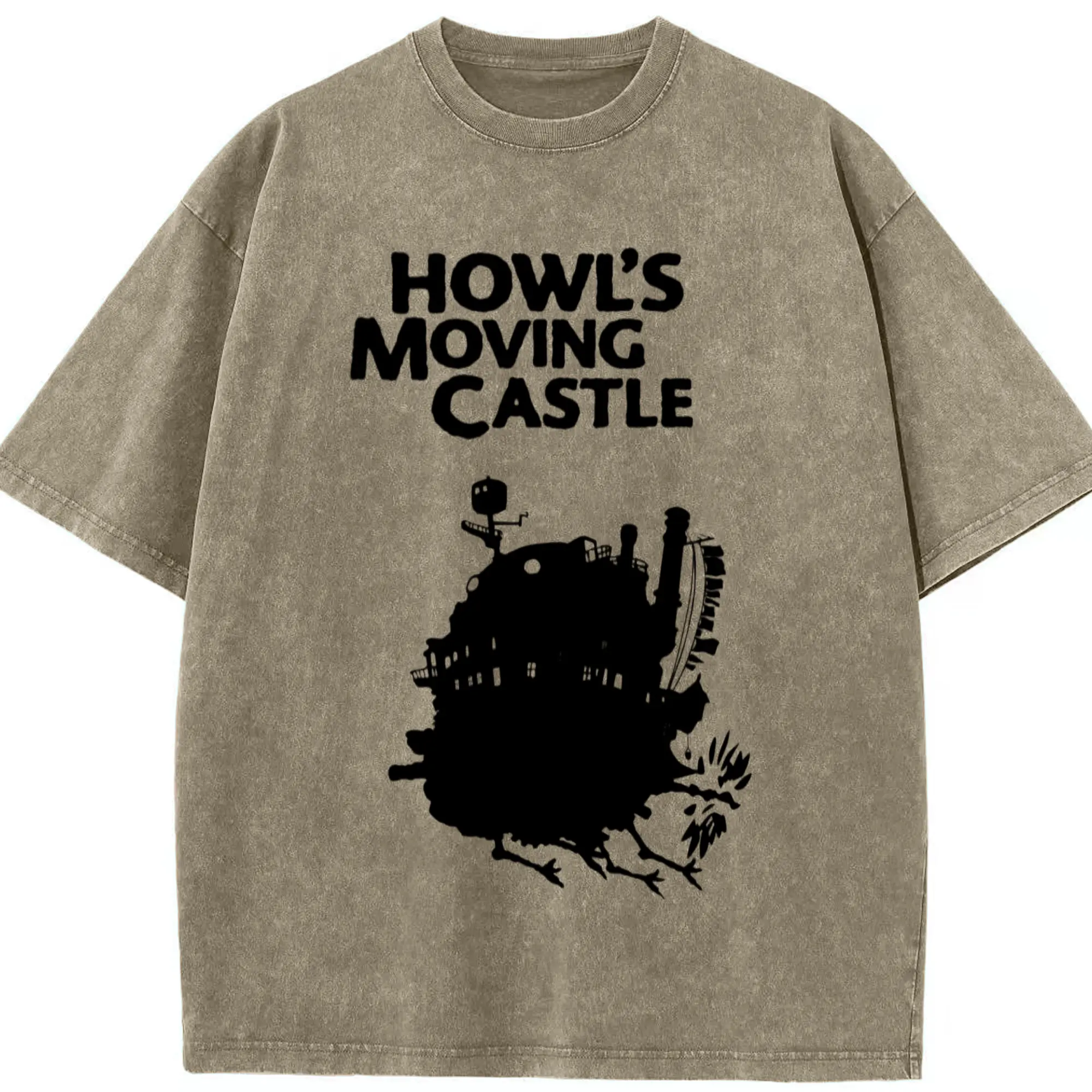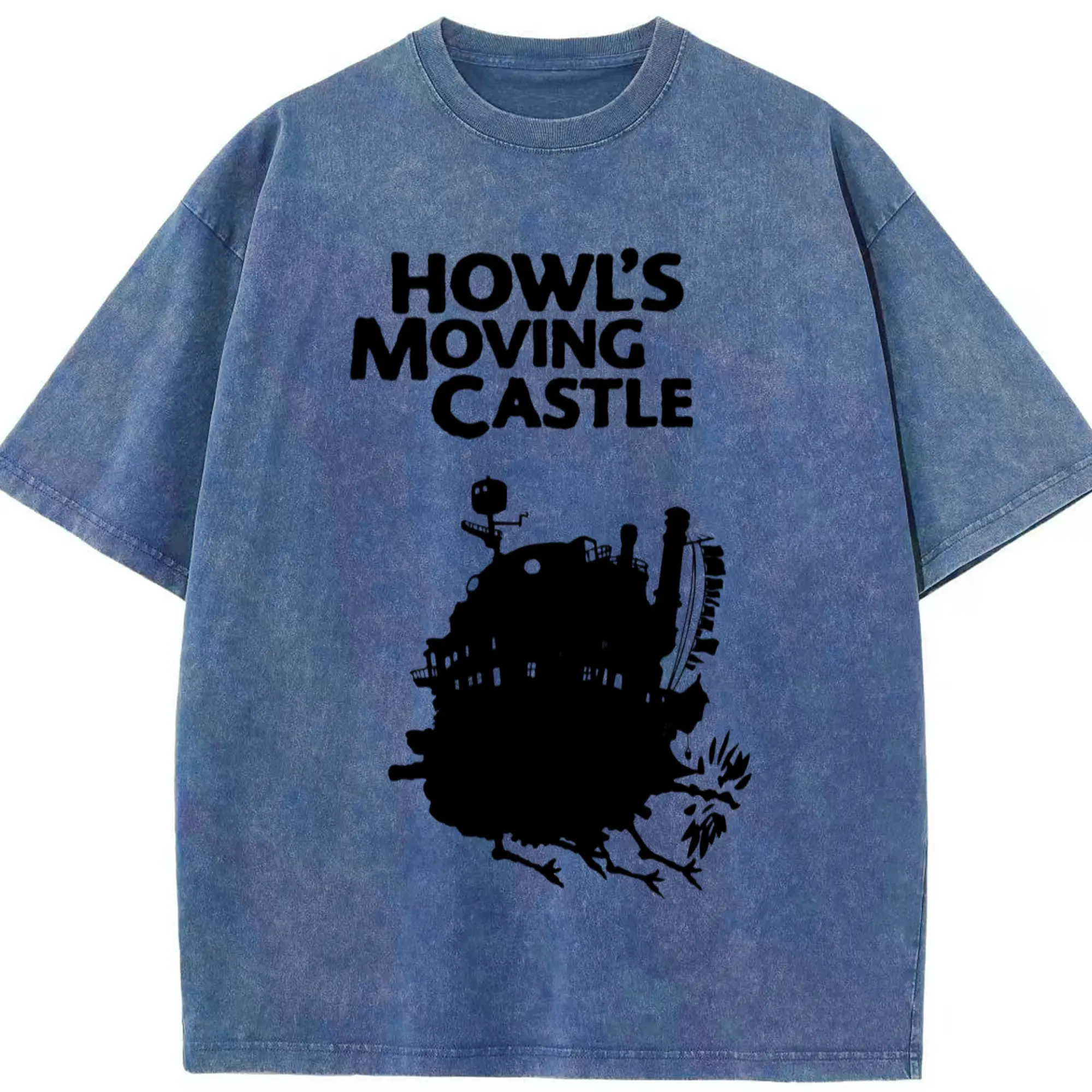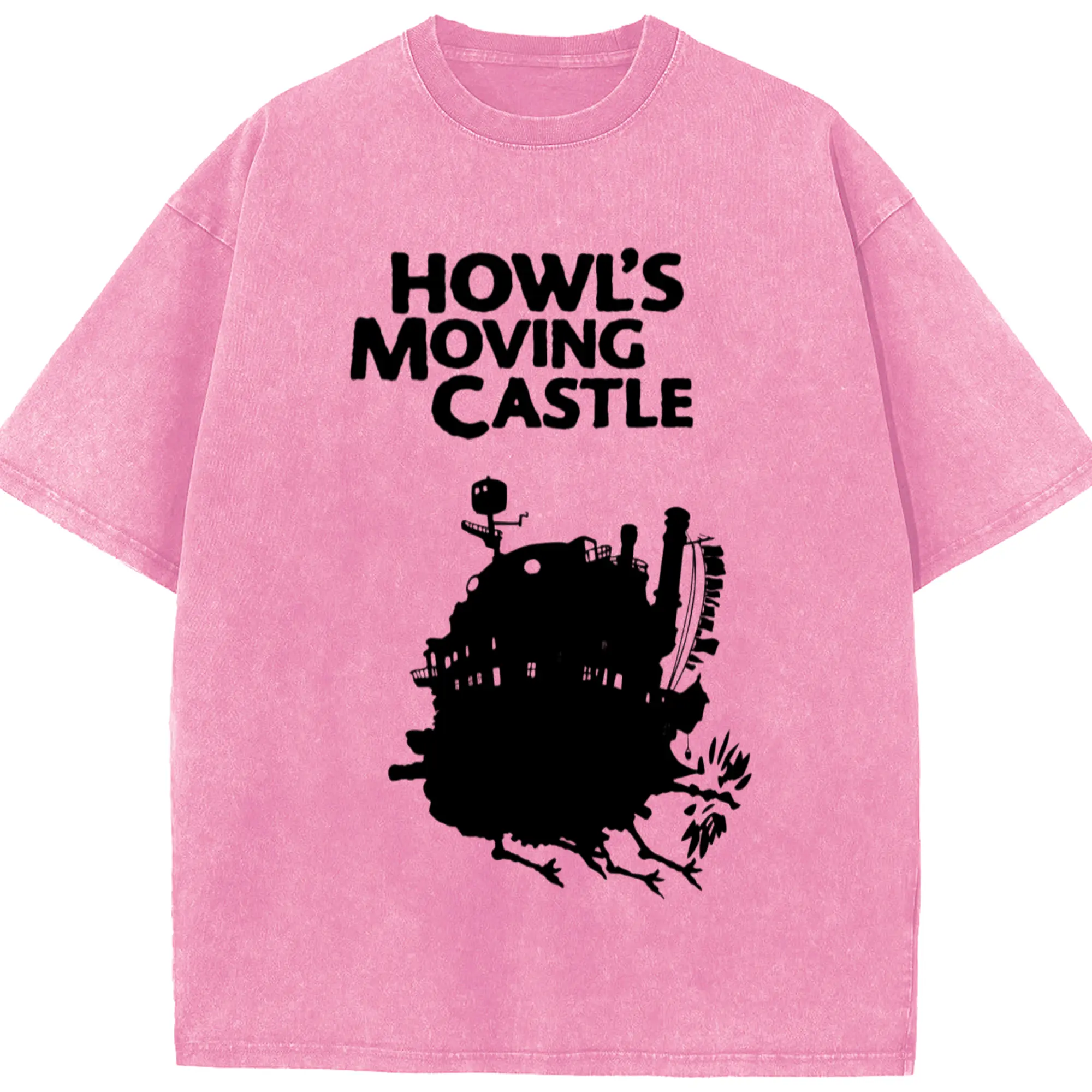 ハウルの動く城ハウル城 - 綿100% 半袖Tシャツ ・ フロントプリント ・ 快適 通気性 ・ 日常使い 散歩 スポーツ用