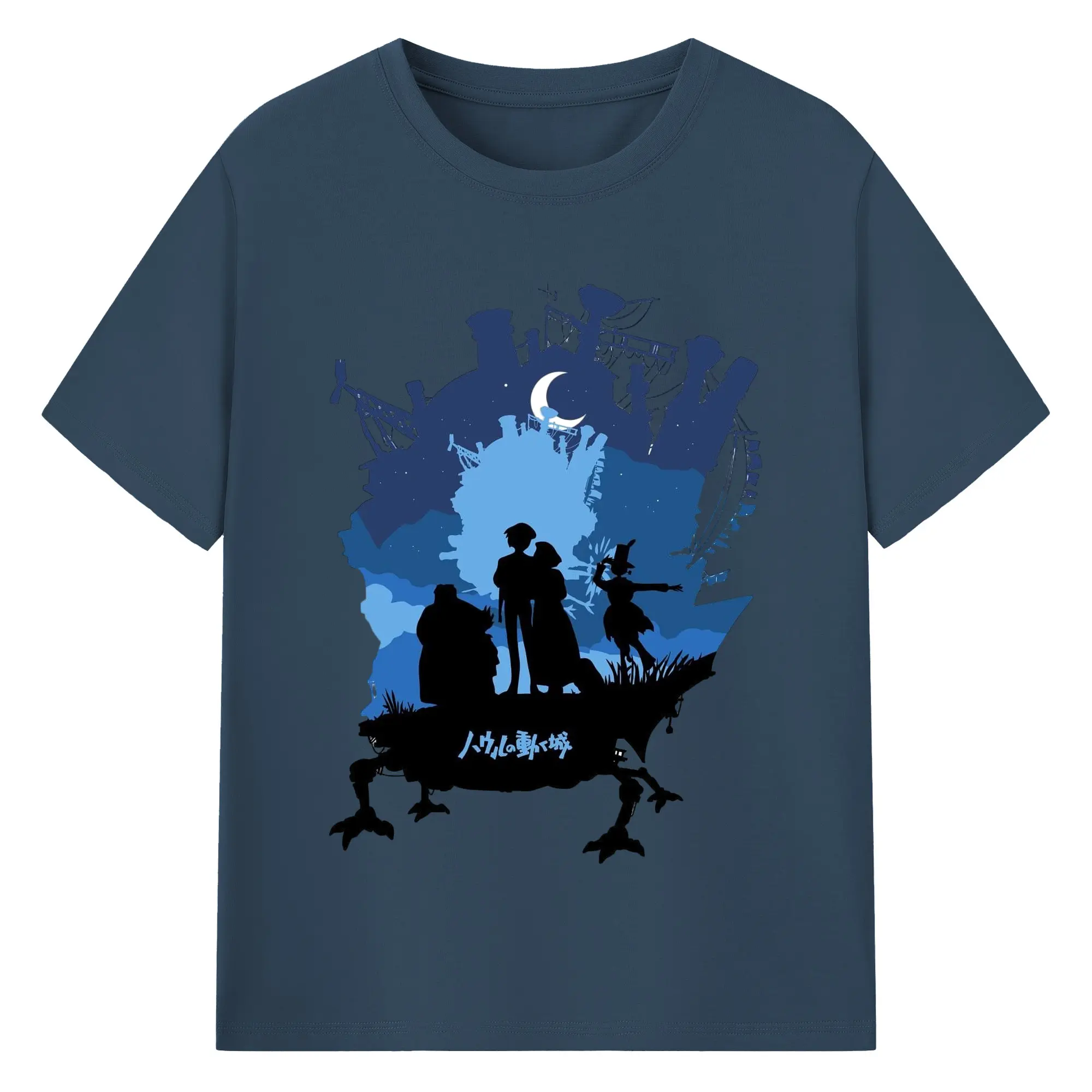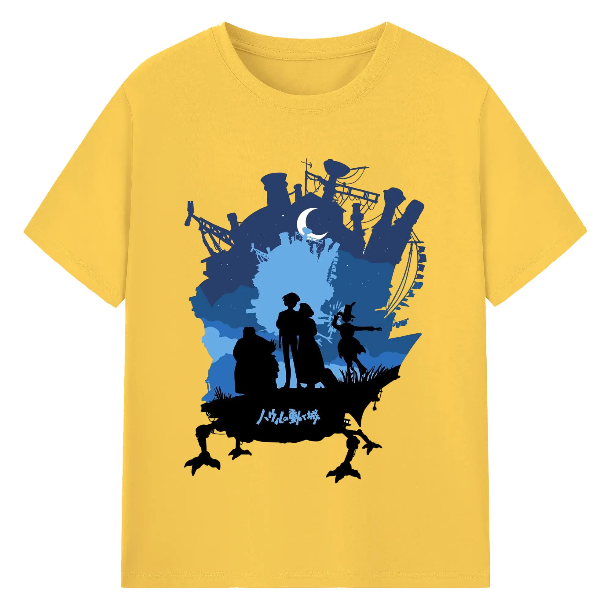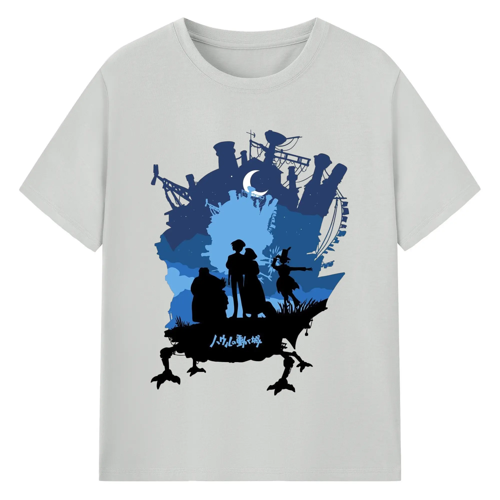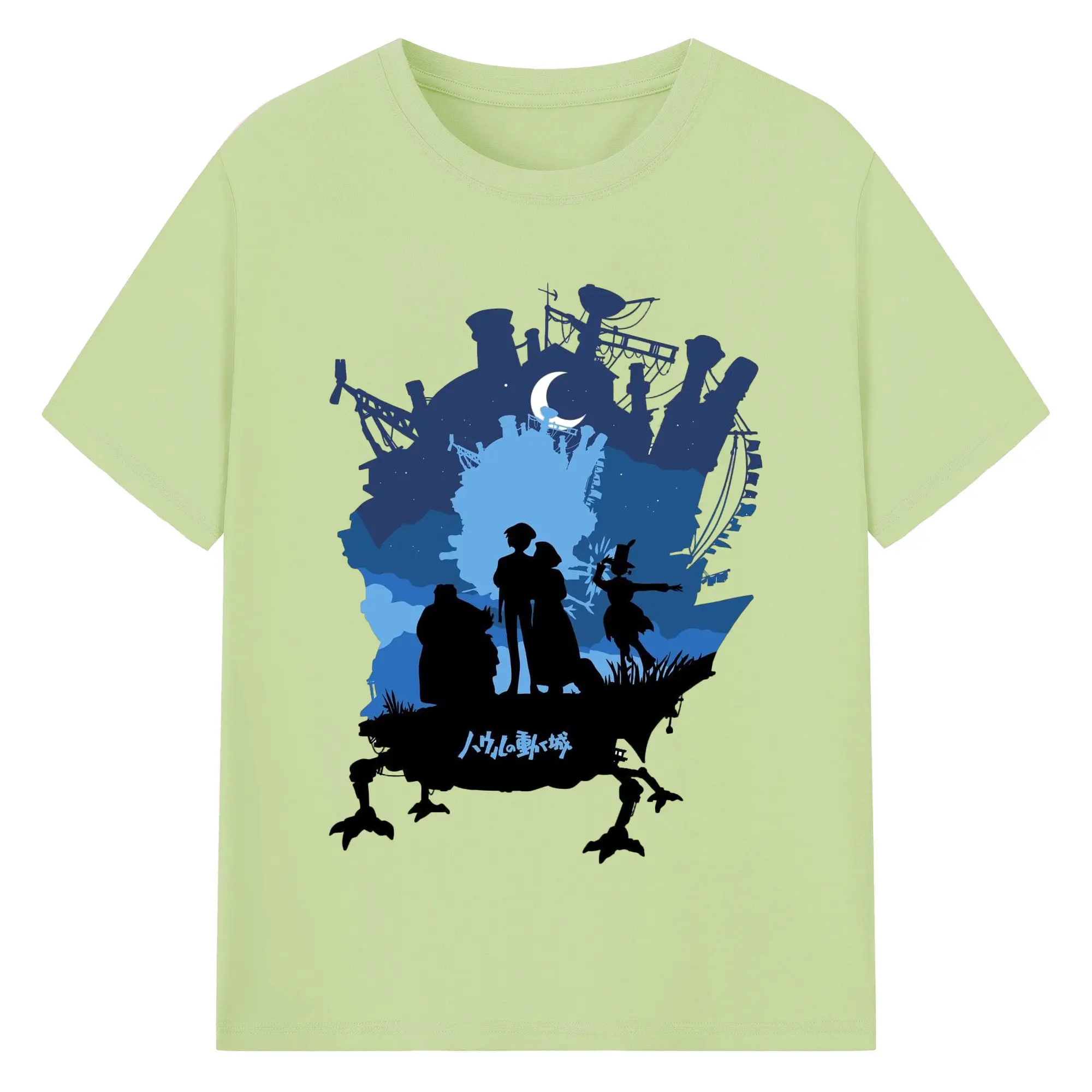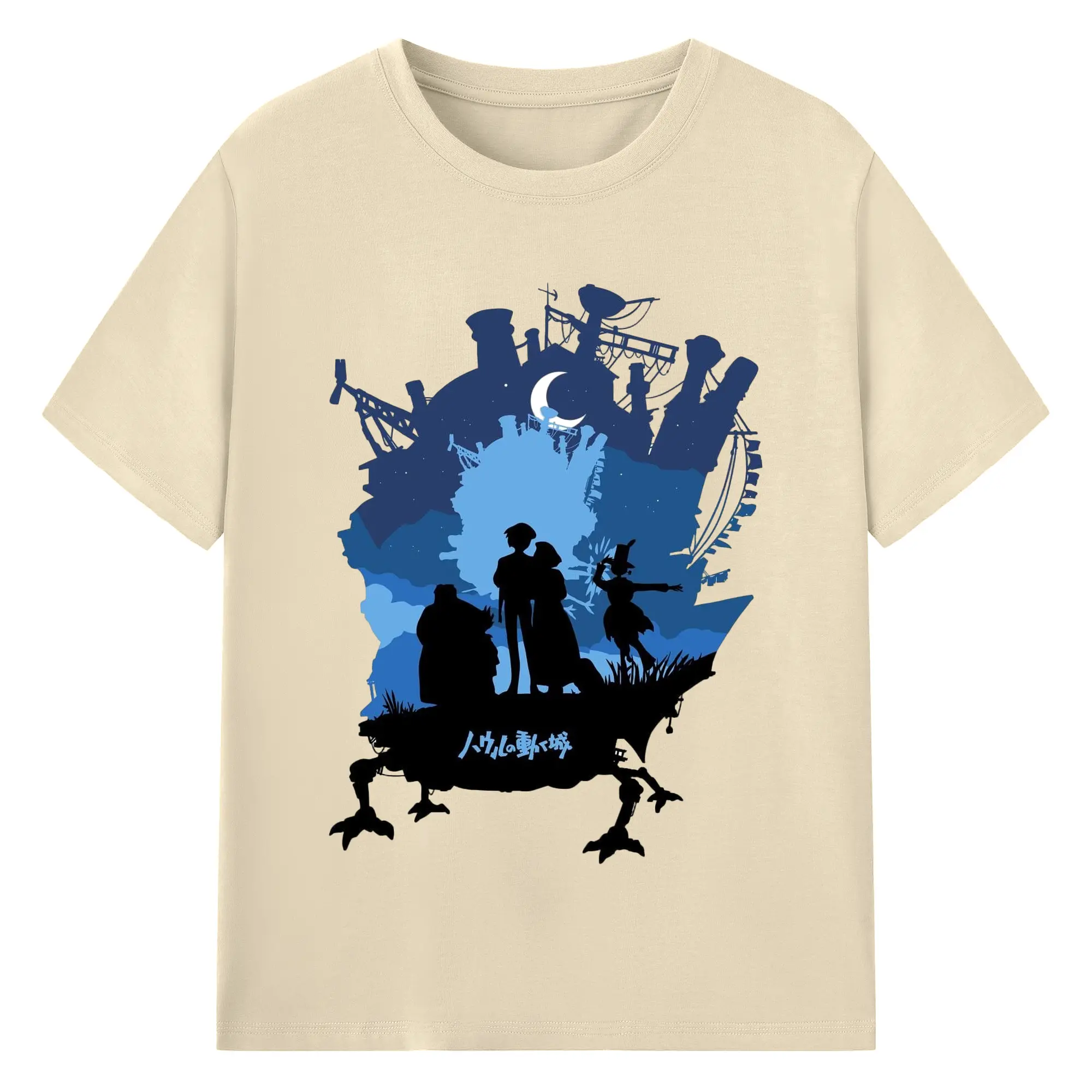 ハウルの動く城 ハウルとソフィー - 綿100% ヴィンテージ風 半袖Tシャツ ・ フロントプリント ・ 柔らか肌触り ・ 通気性 快適 ・ スポーツ カジュアル 外出用