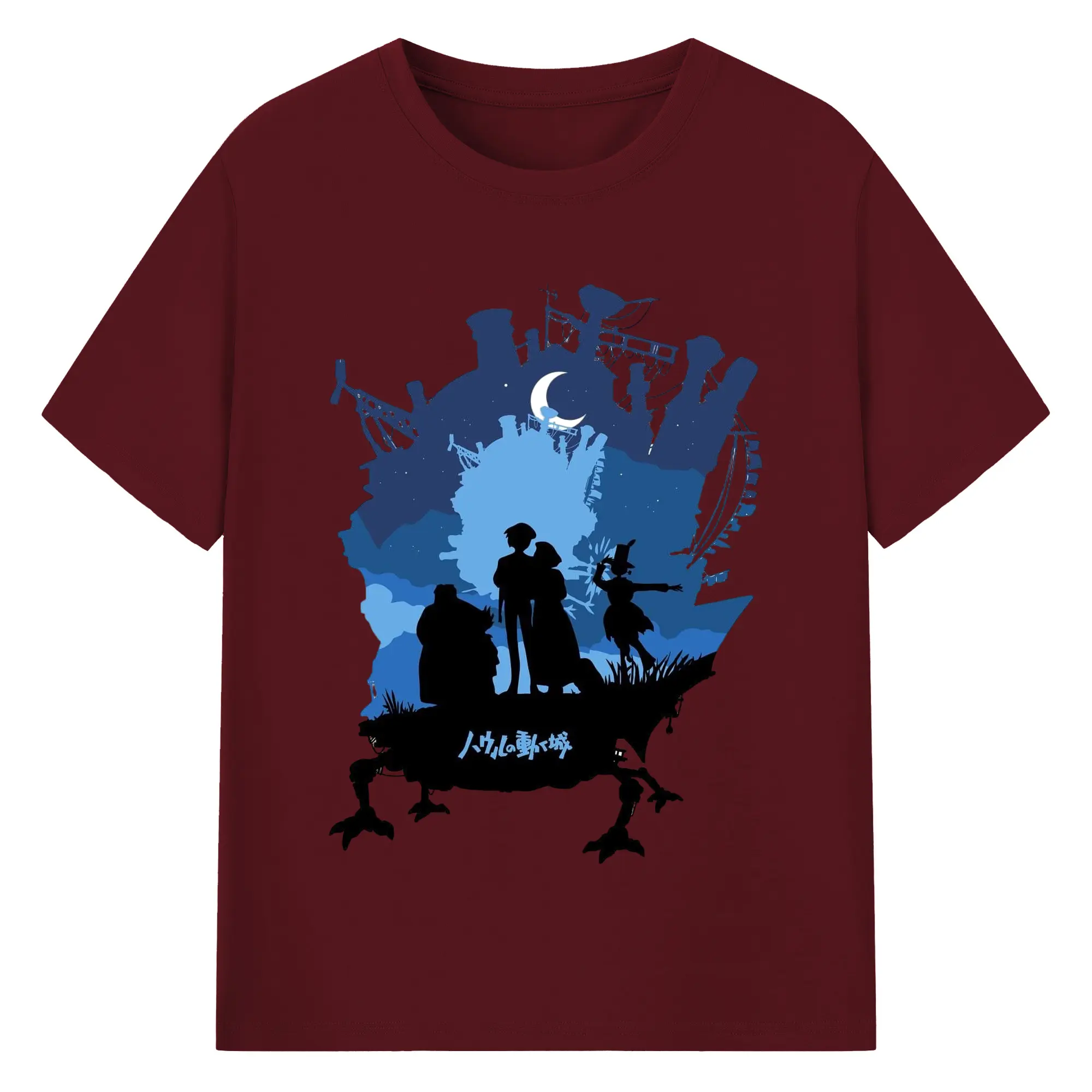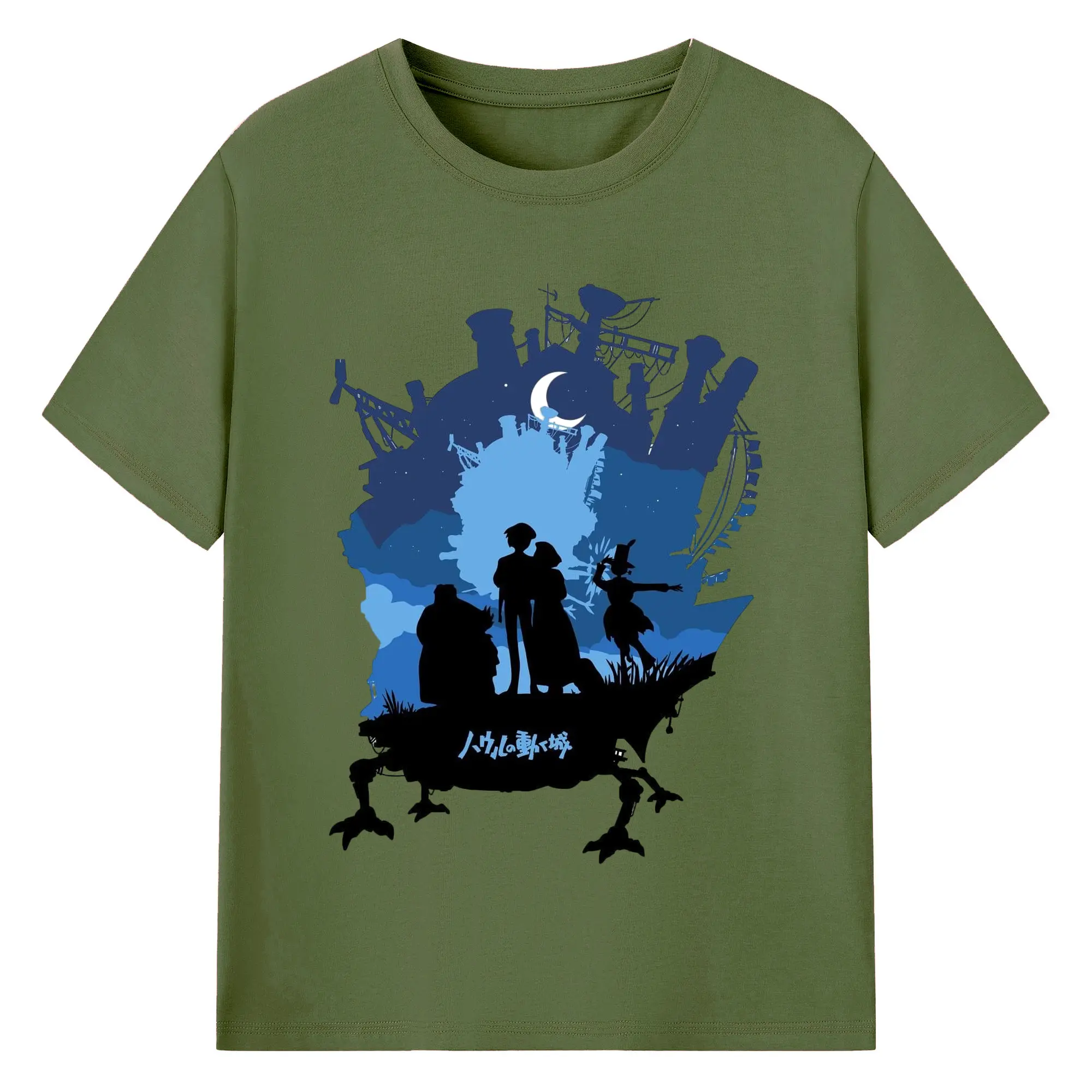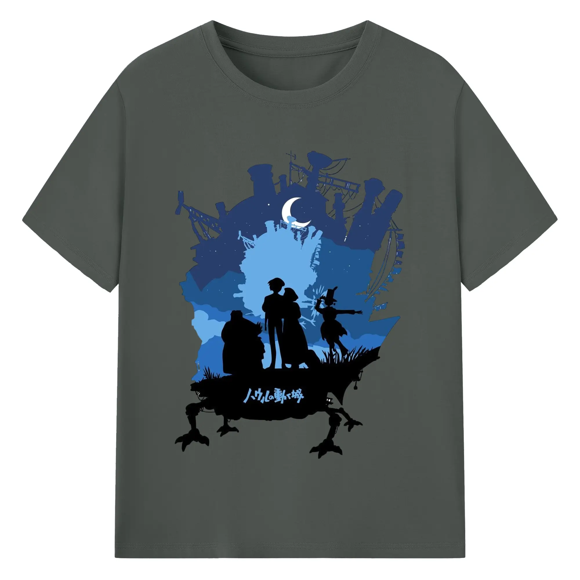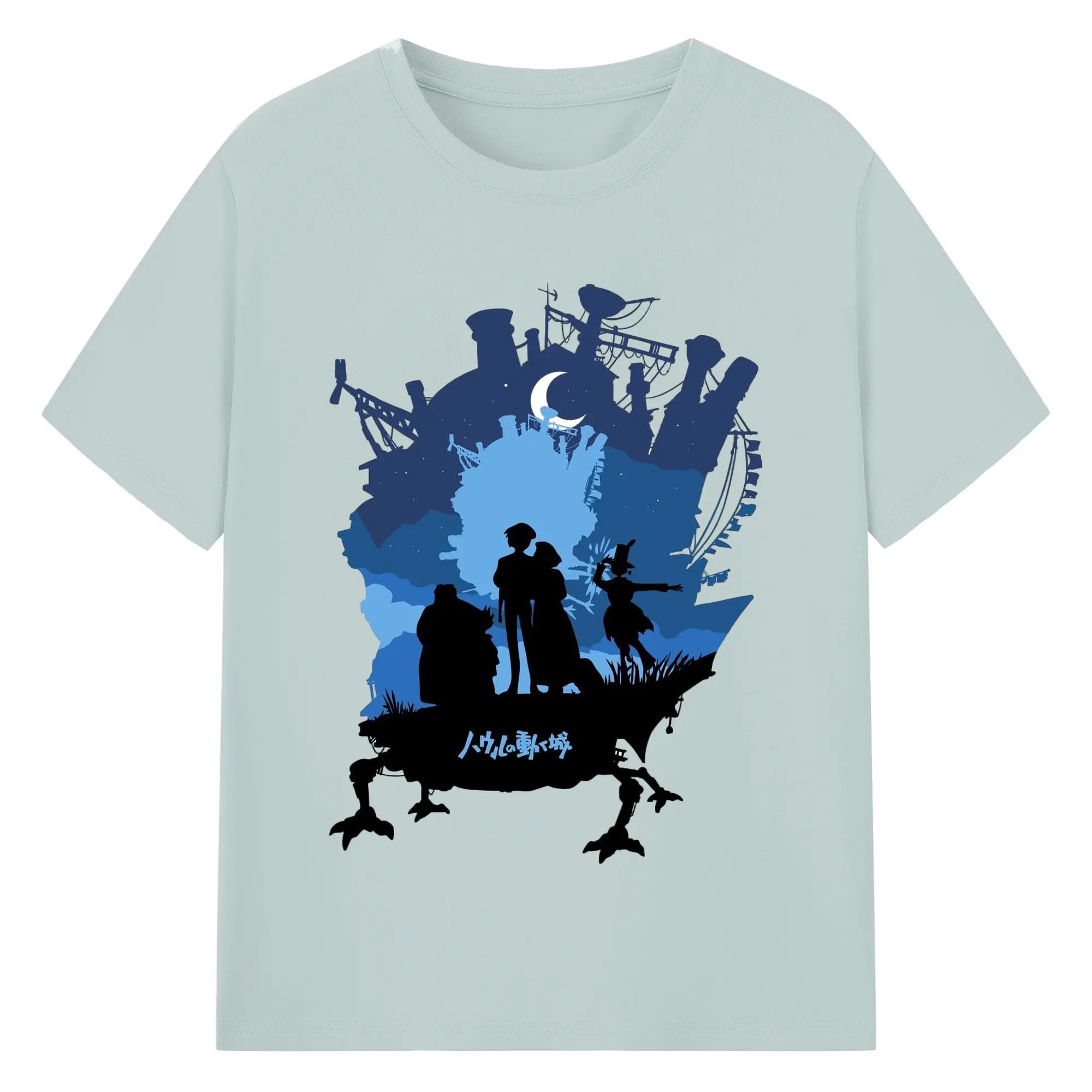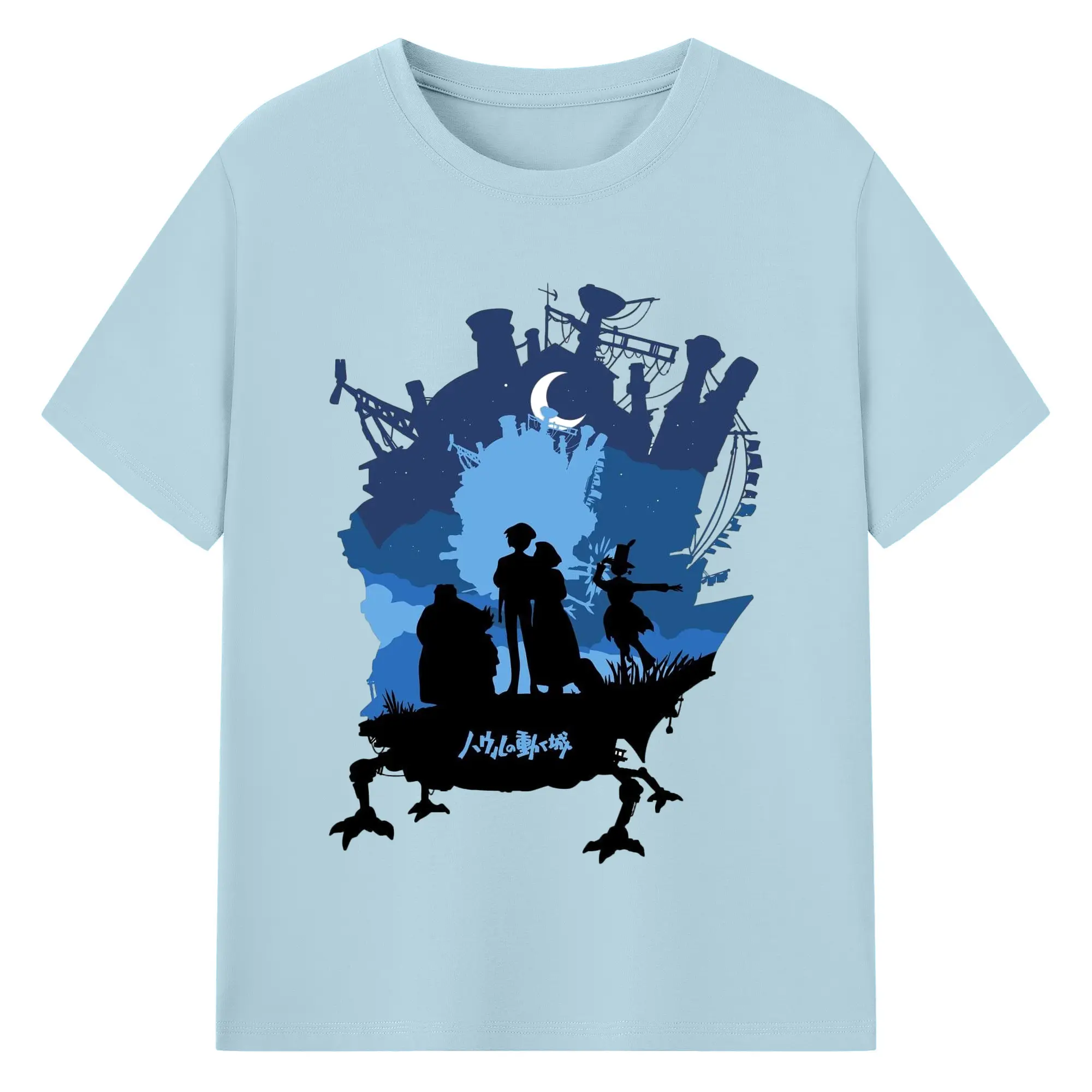 ハウルの動く城 ハウルとソフィー - 綿100% ヴィンテージ風 半袖Tシャツ ・ フロントプリント ・ 柔らか肌触り ・ 通気性 快適 ・ スポーツ カジュアル 外出用