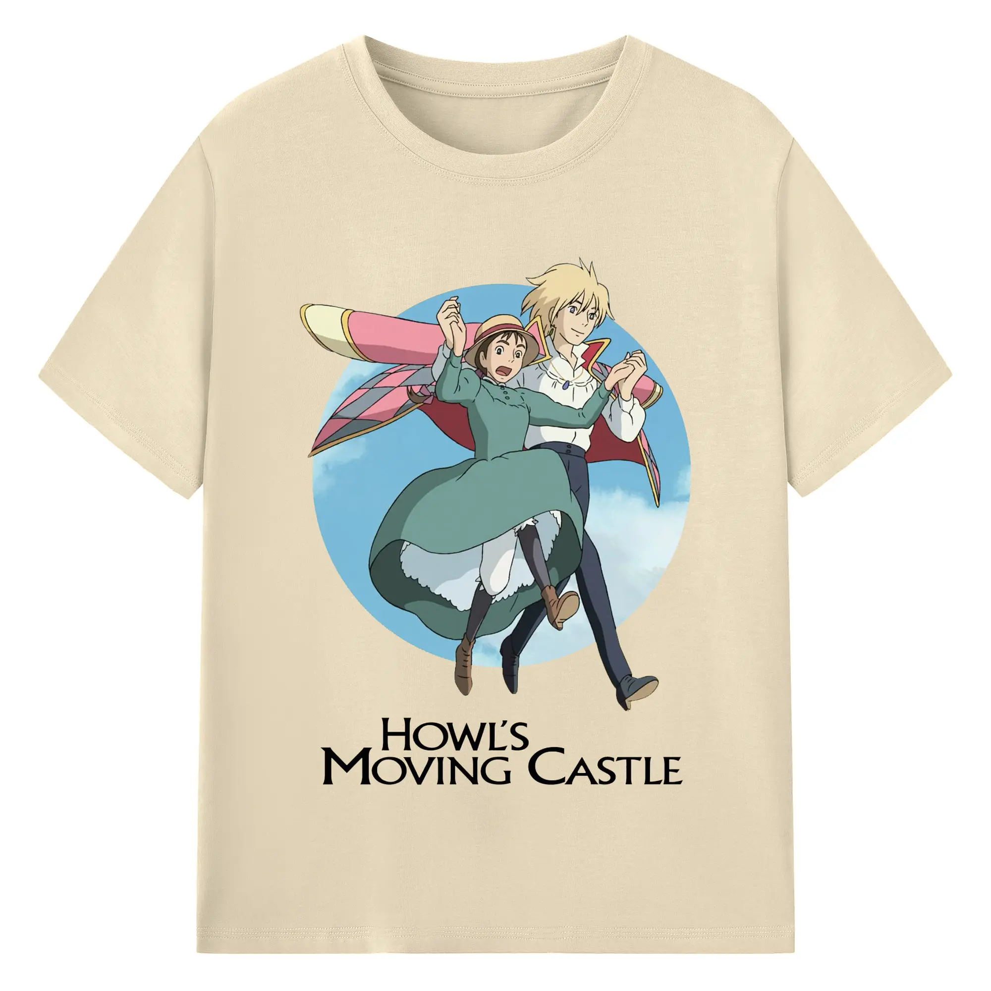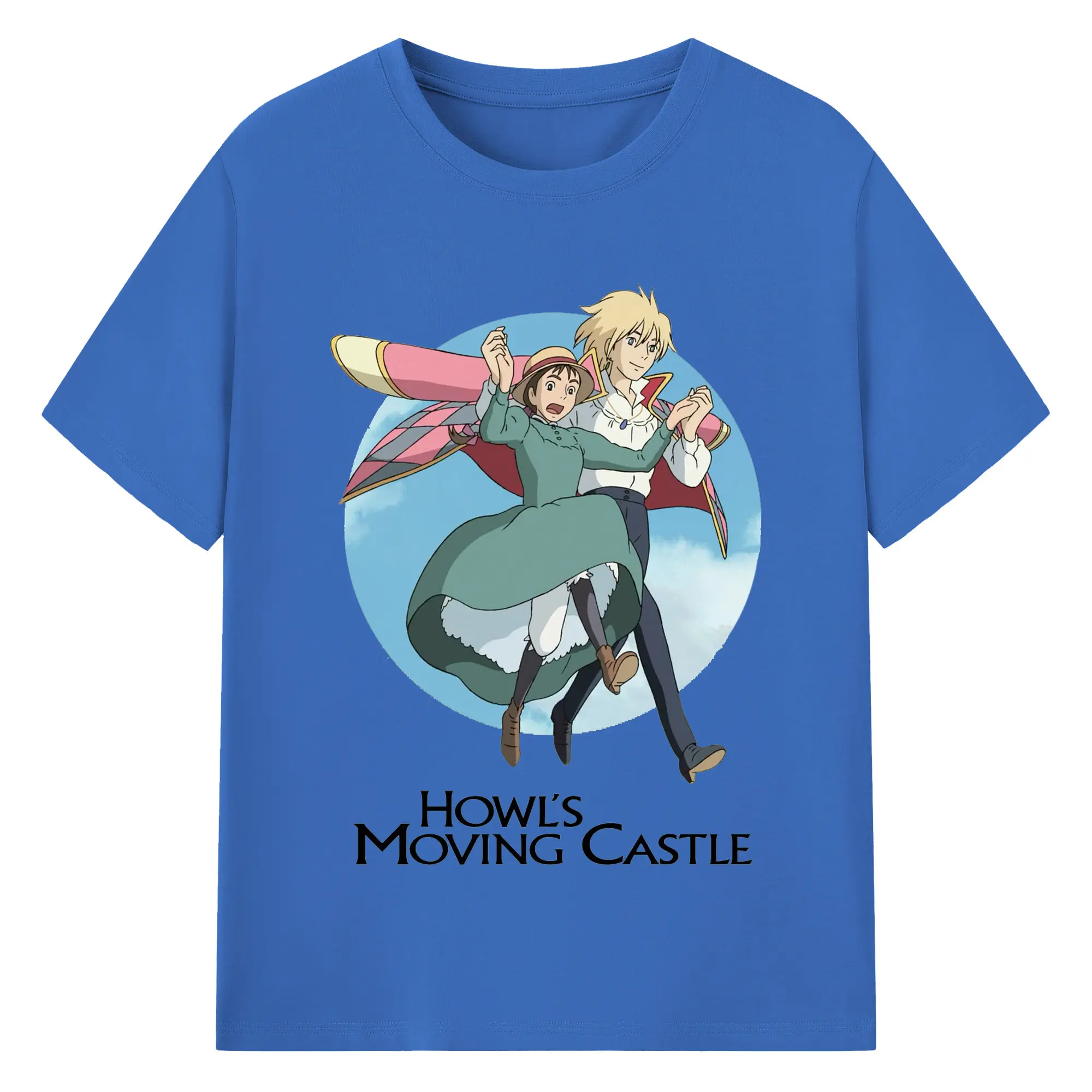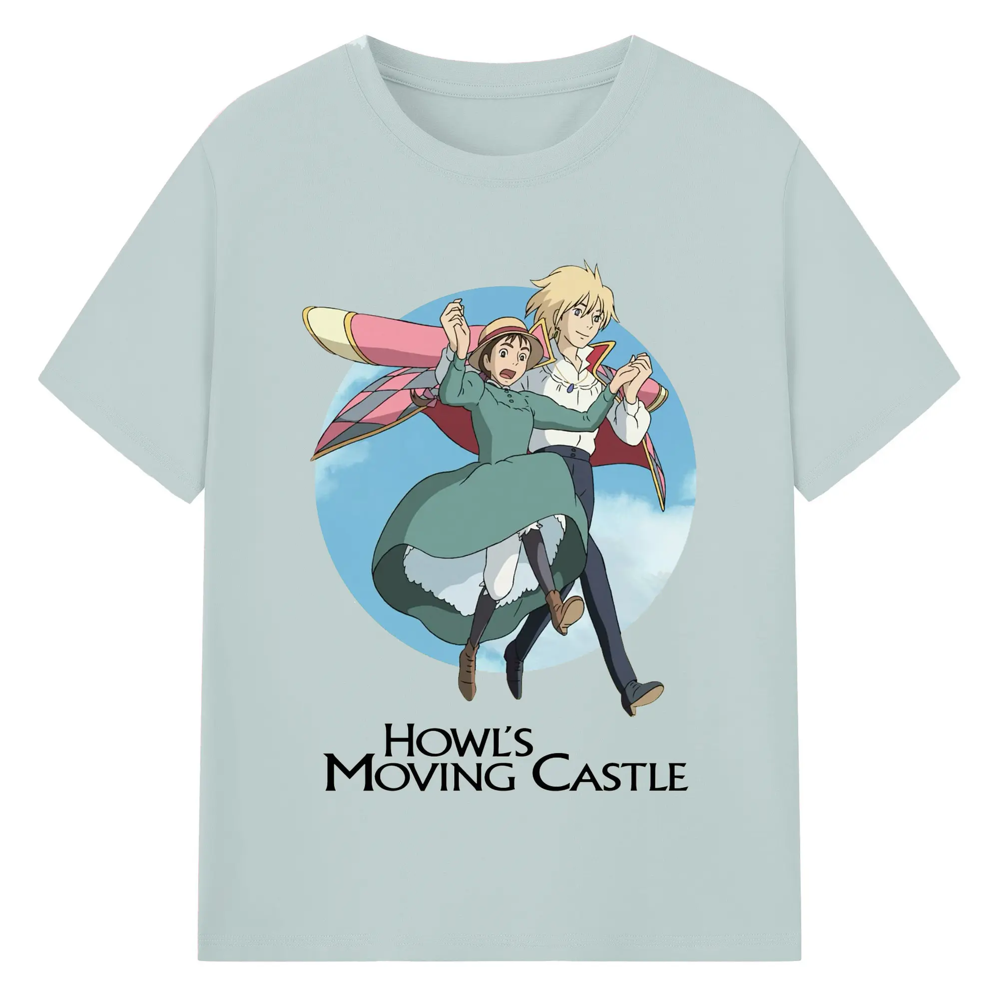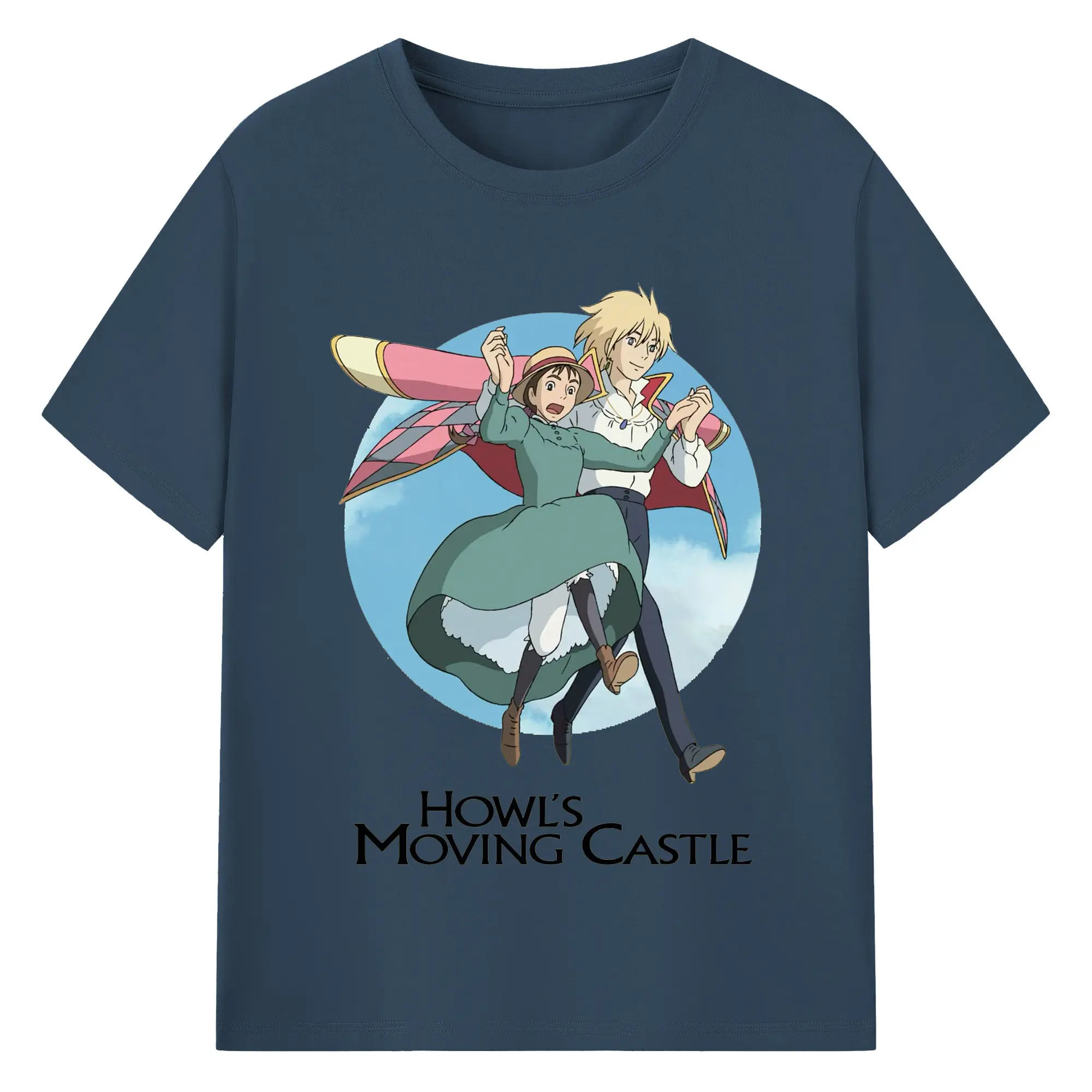 ハウルの動く城 ハウルとソフィー - 綿100% ヴィンテージ風 半袖Tシャツ ・ フロントプリント ・ 柔らか肌触り ・ 通気性 快適 ・ スポーツ カジュアル 外出用