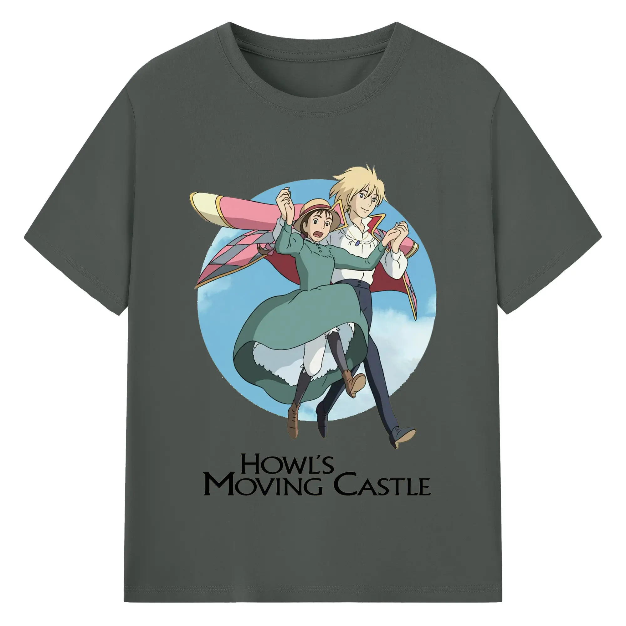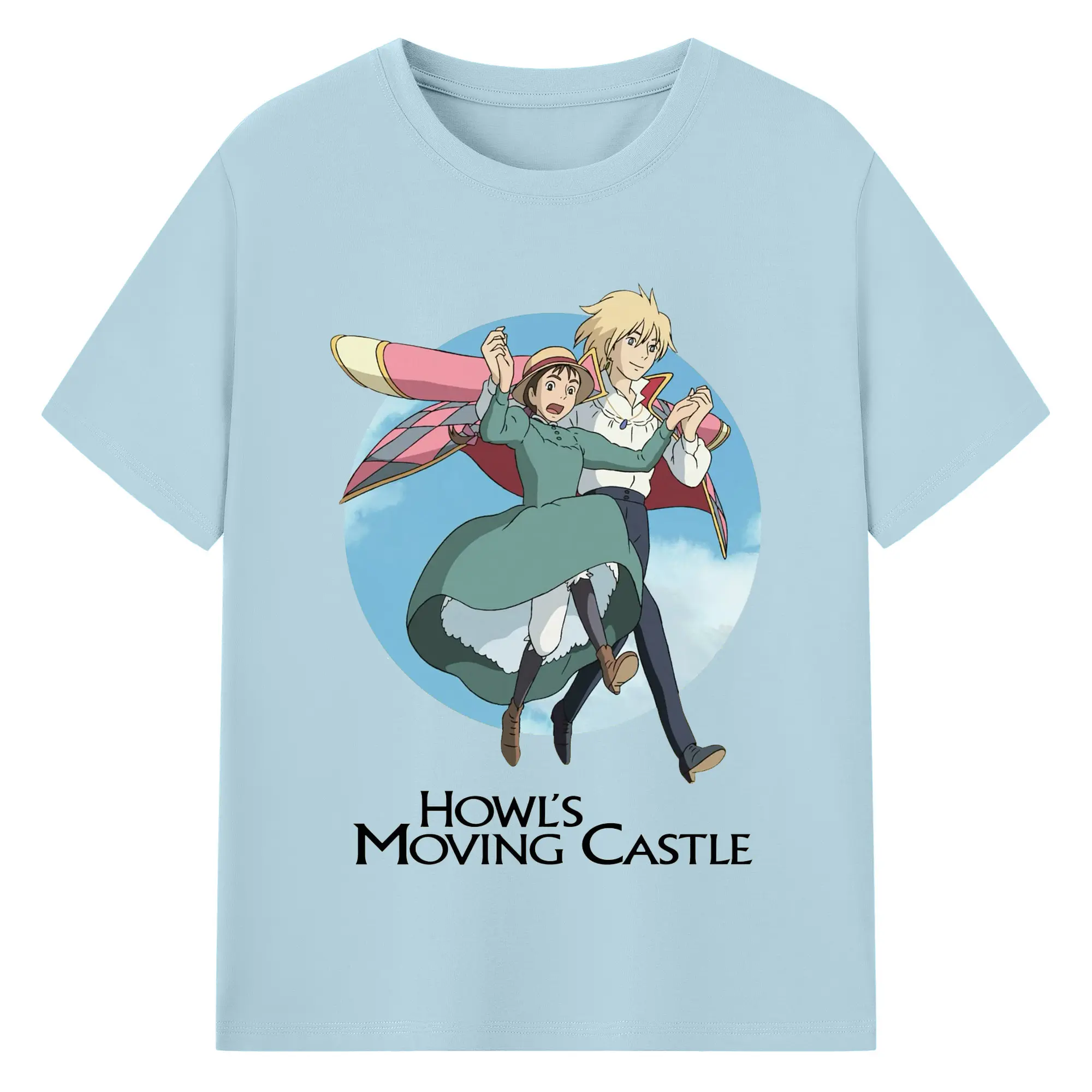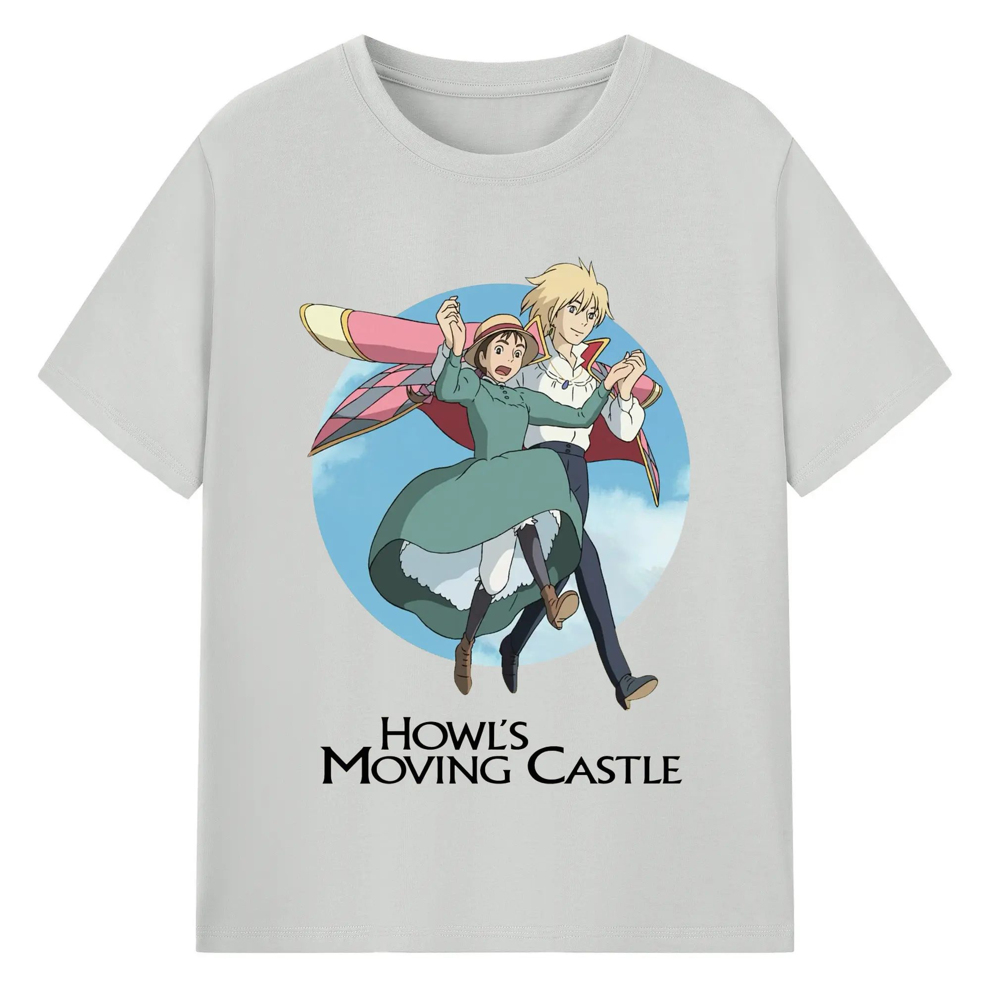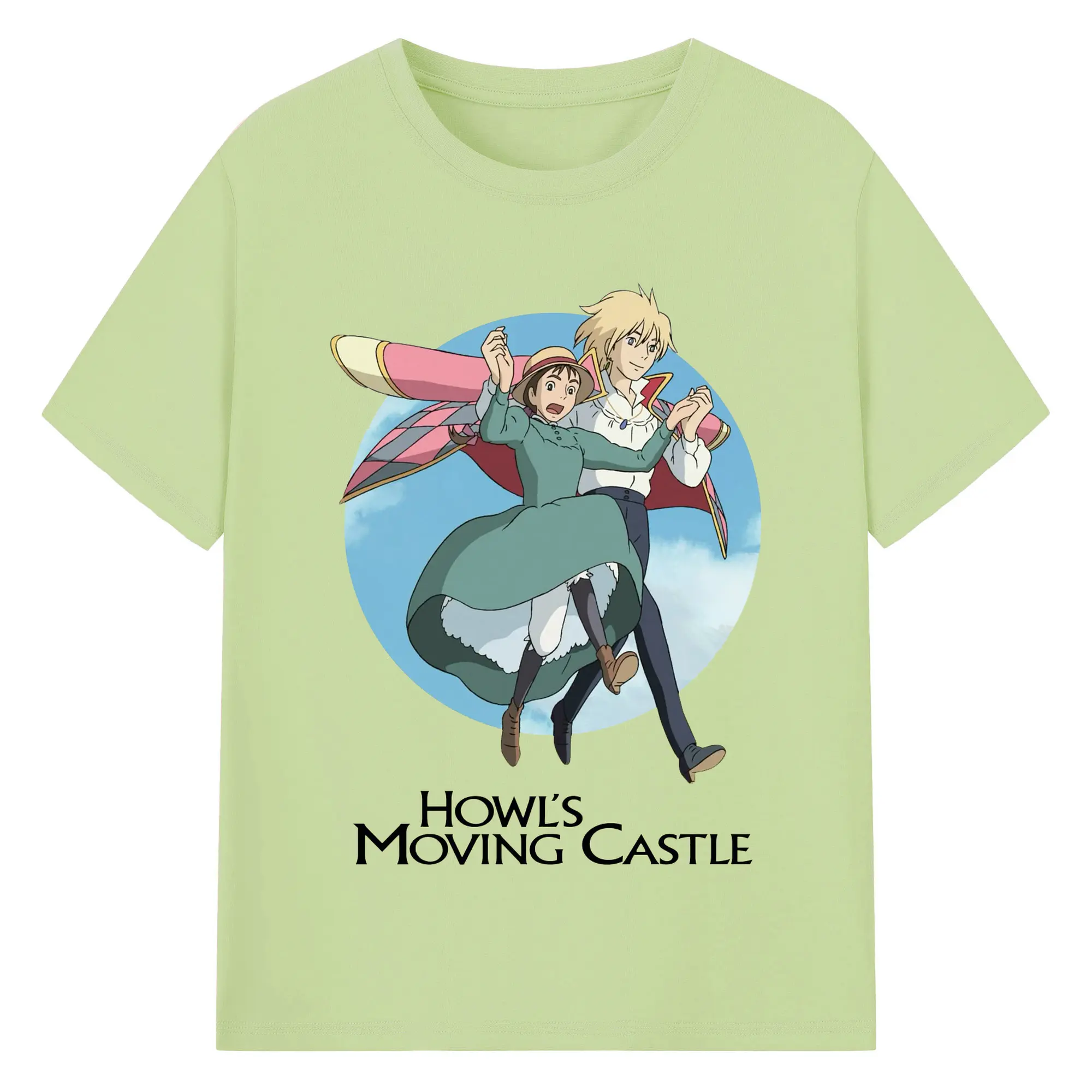 ハウルの動く城 ハウルとソフィー - 綿100% ヴィンテージ風 半袖Tシャツ ・ フロントプリント ・ 柔らか肌触り ・ 通気性 快適 ・ スポーツ カジュアル 外出用