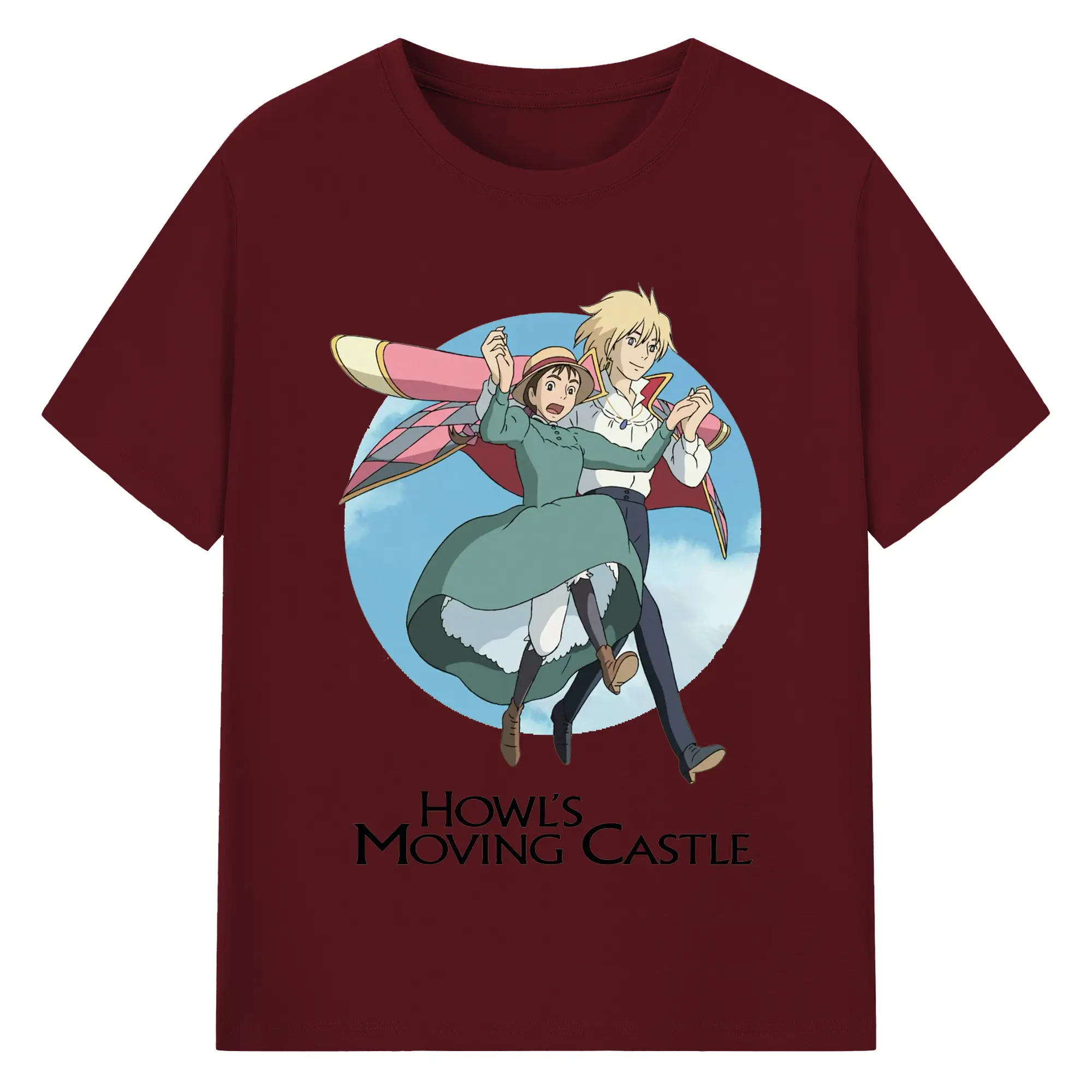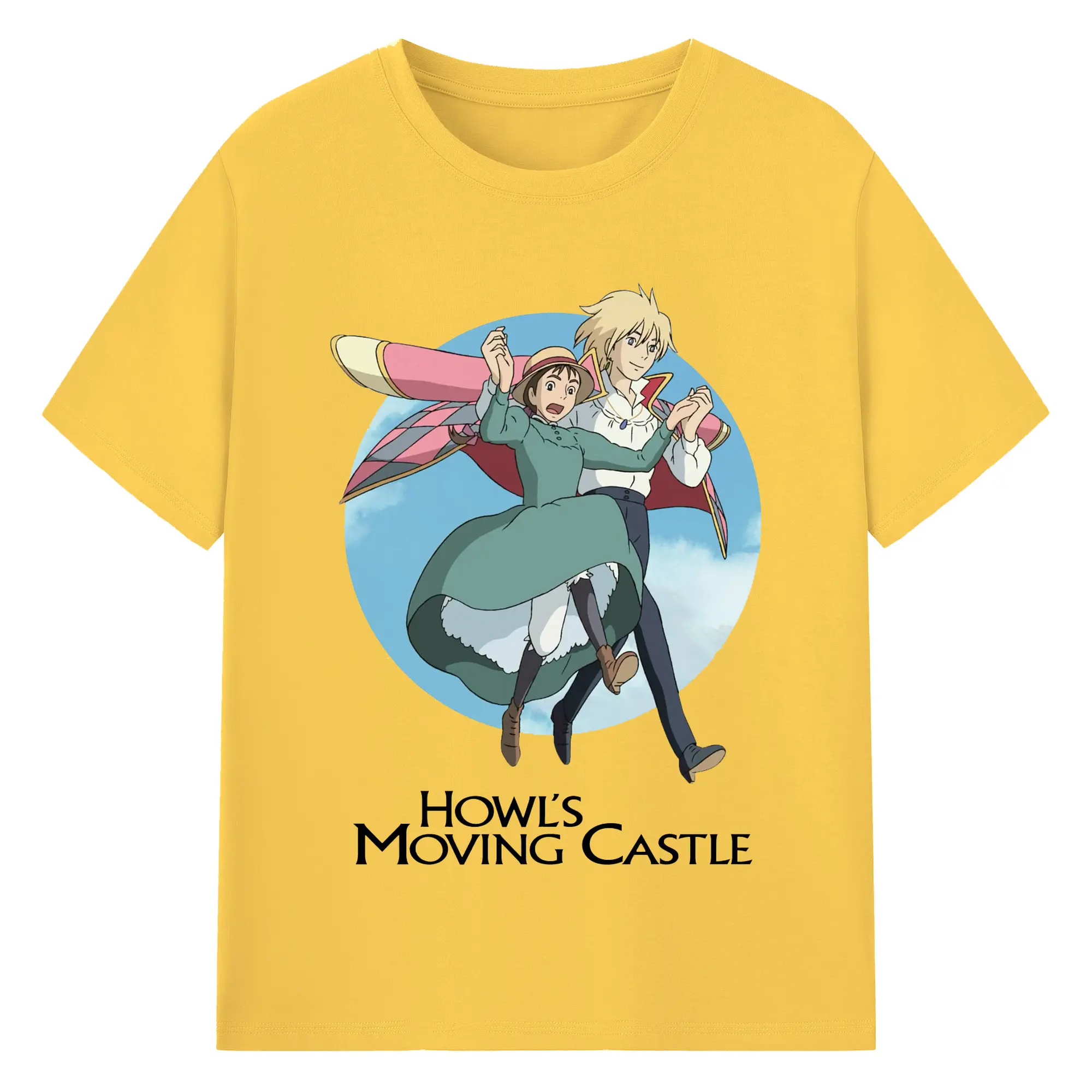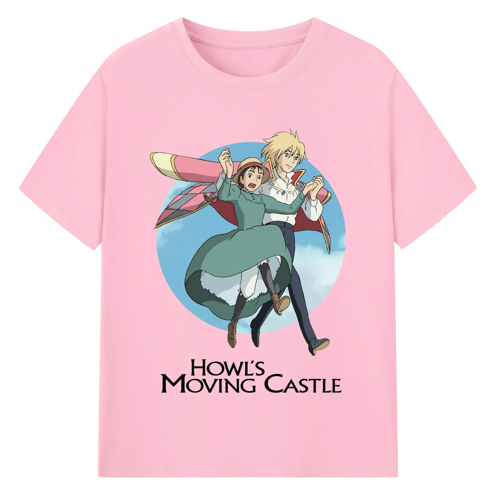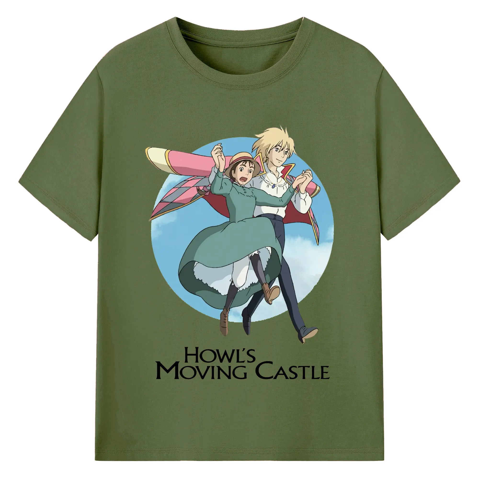 ハウルの動く城 ハウルとソフィー - 綿100% ヴィンテージ風 半袖Tシャツ ・ フロントプリント ・ 柔らか肌触り ・ 通気性 快適 ・ スポーツ カジュアル 外出用