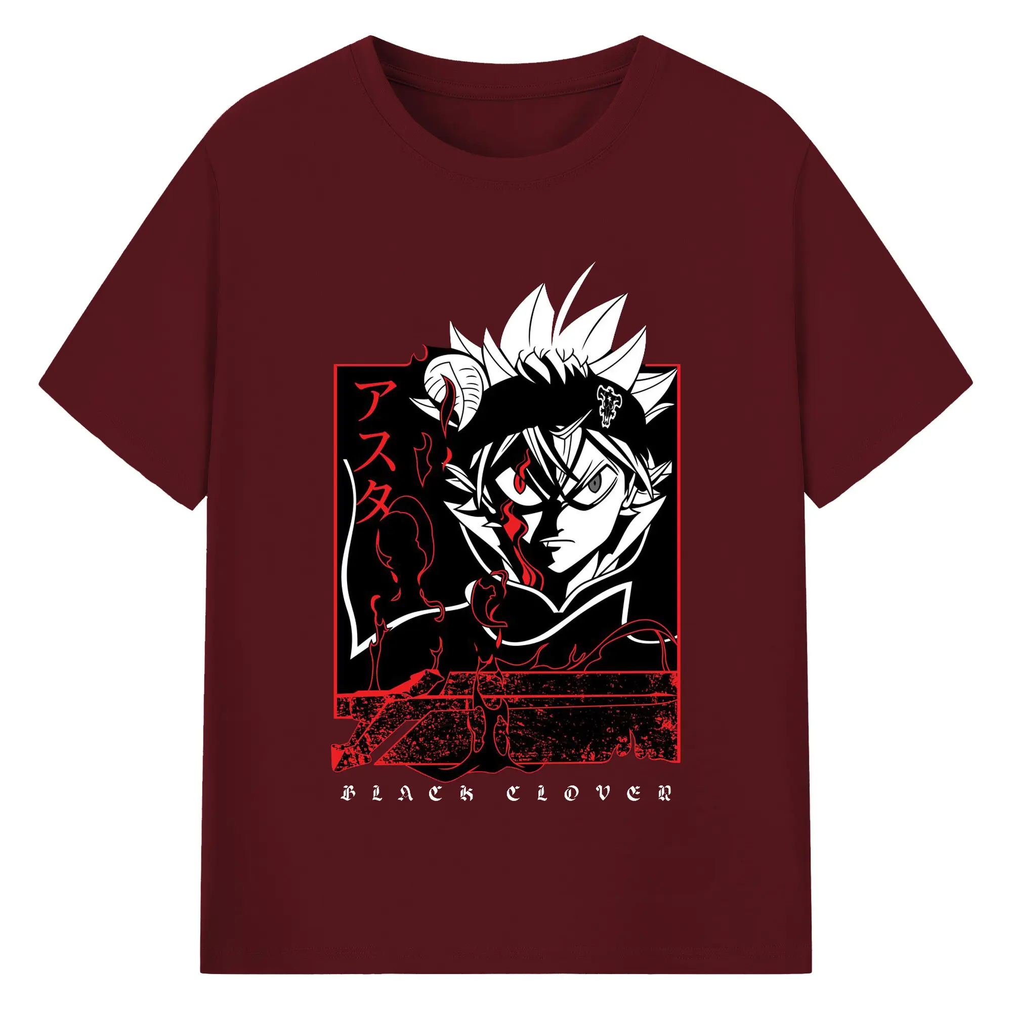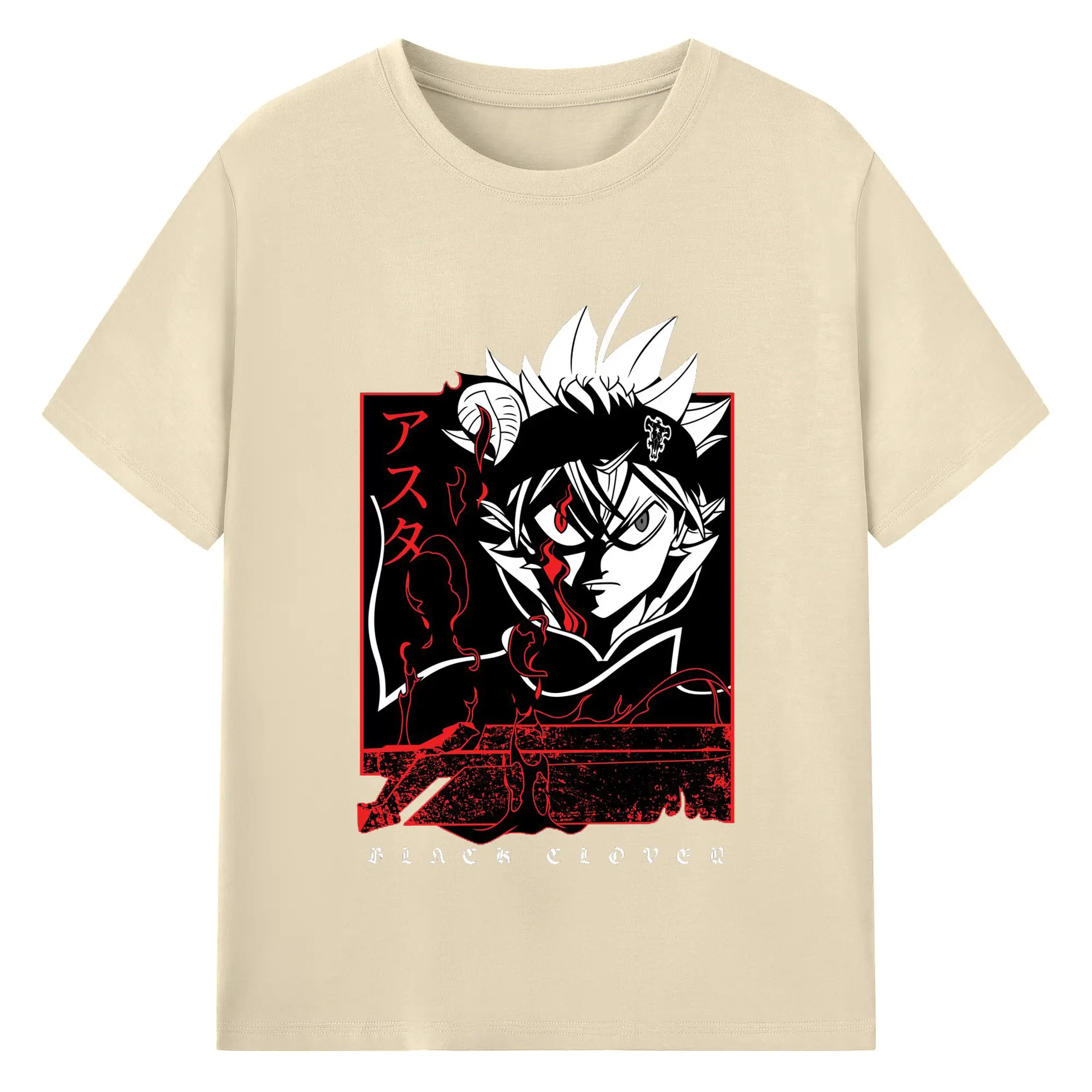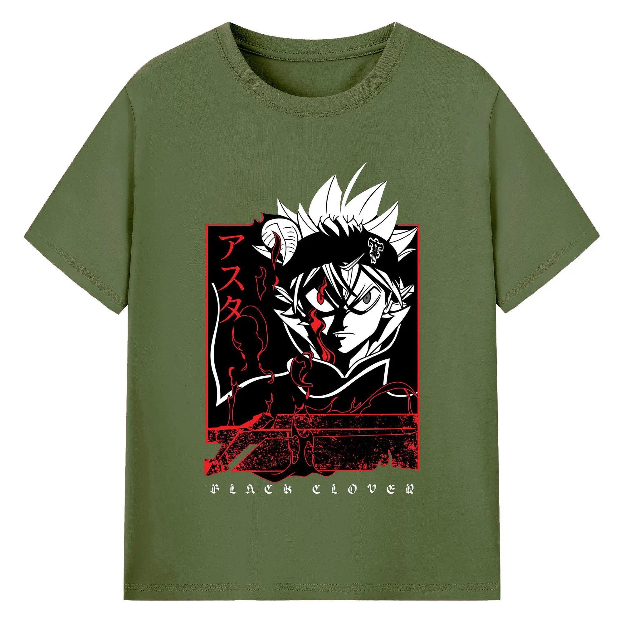 ブラッククローバー アスタ - 綿100% ヴィンテージ風 半袖Tシャツ ・ フロントプリント ・ 柔らか肌触り ・ 通気性 快適 ・ スポーツ カジュアル 外出用