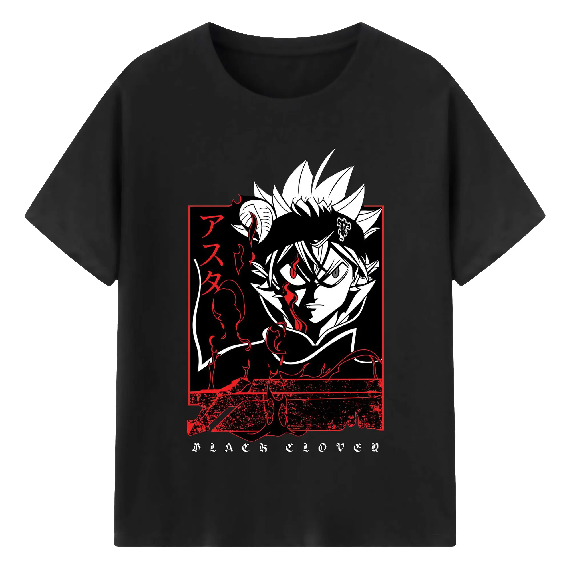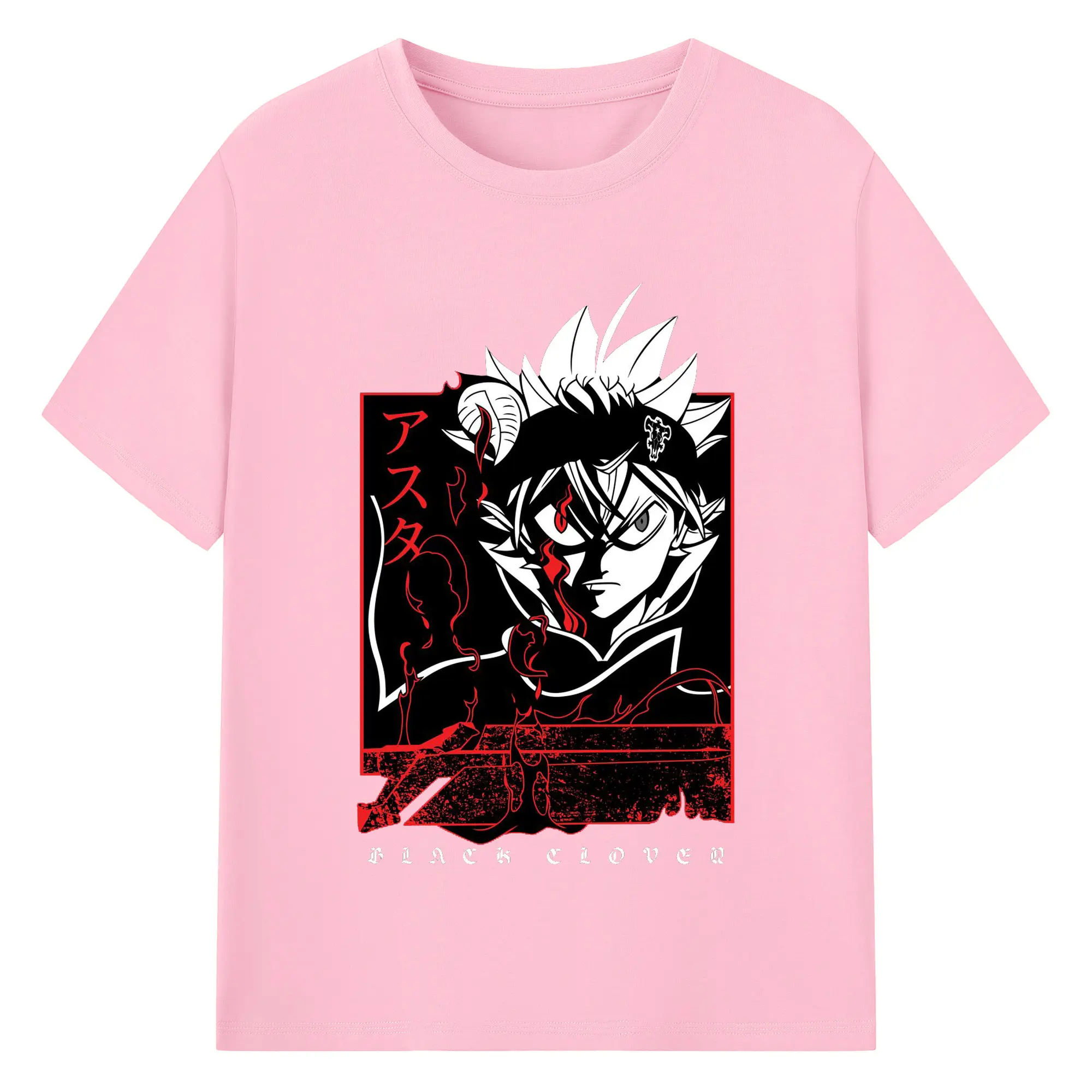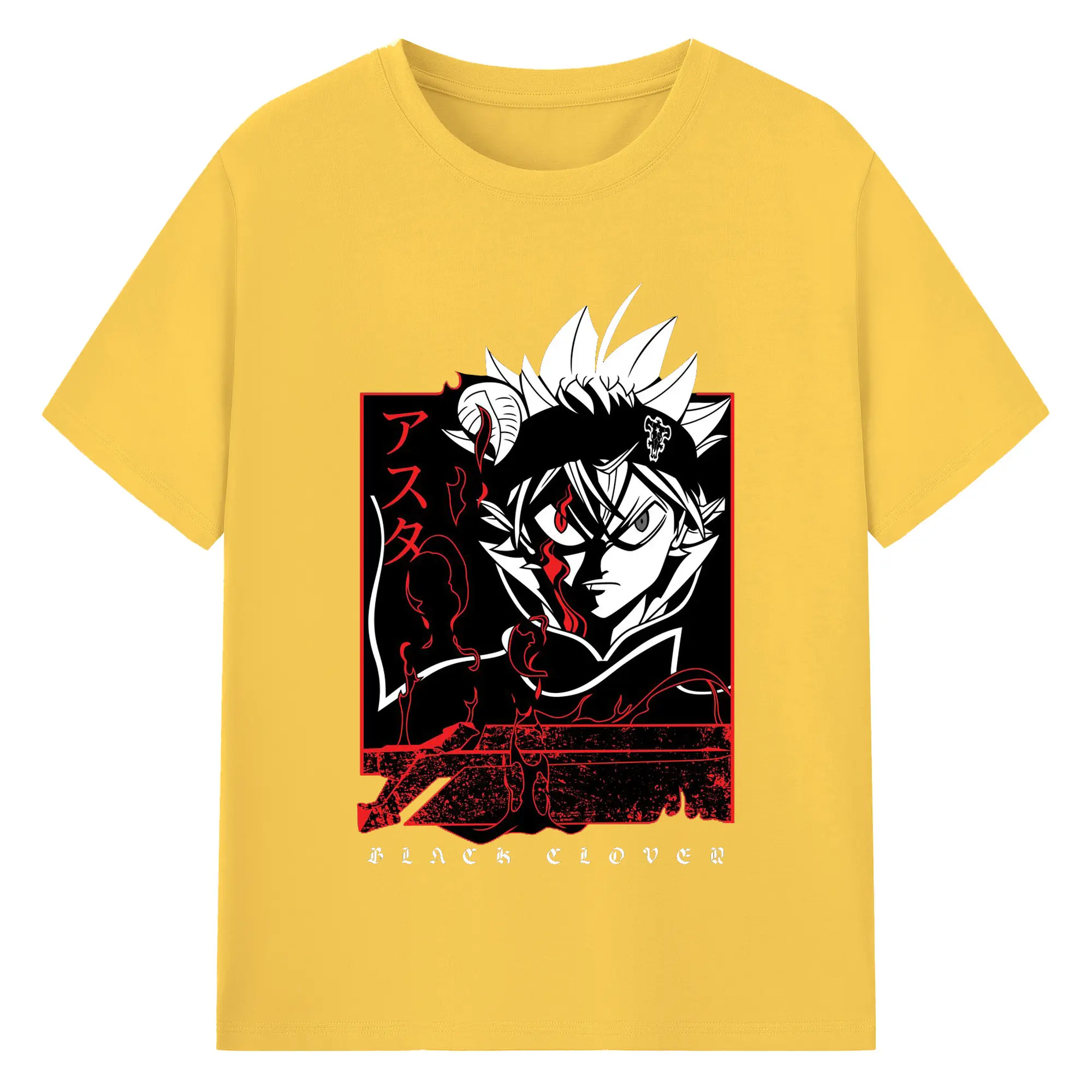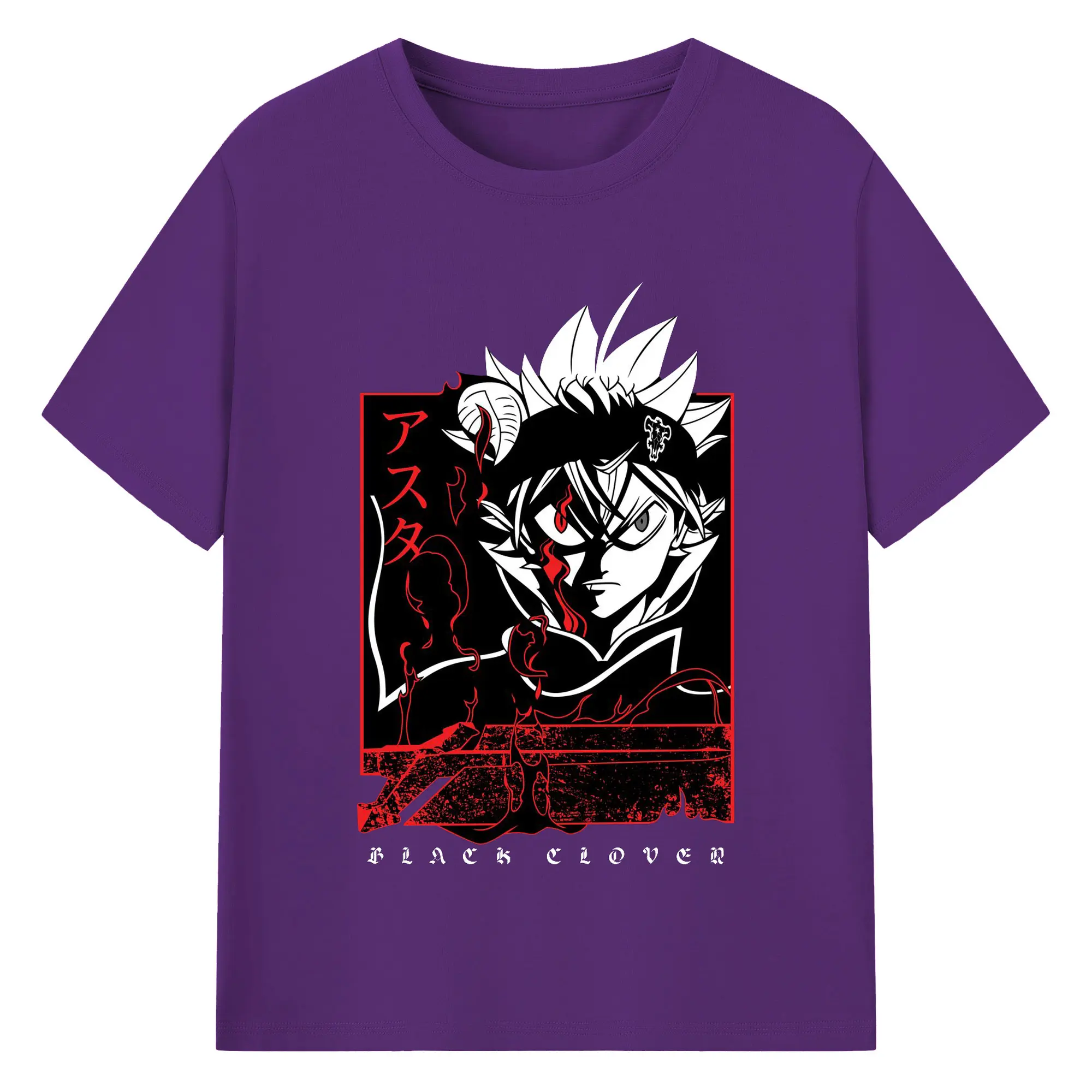 ブラッククローバー アスタ - 綿100% ヴィンテージ風 半袖Tシャツ ・ フロントプリント ・ 柔らか肌触り ・ 通気性 快適 ・ スポーツ カジュアル 外出用