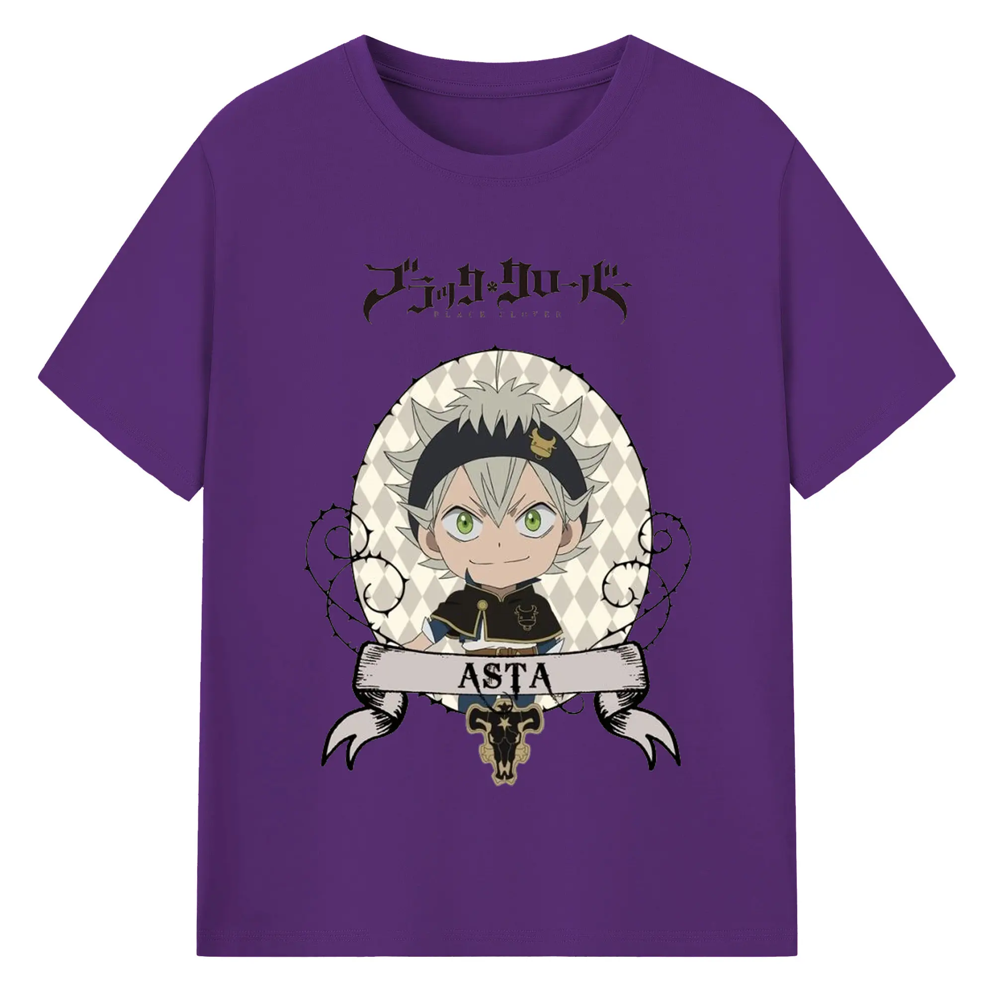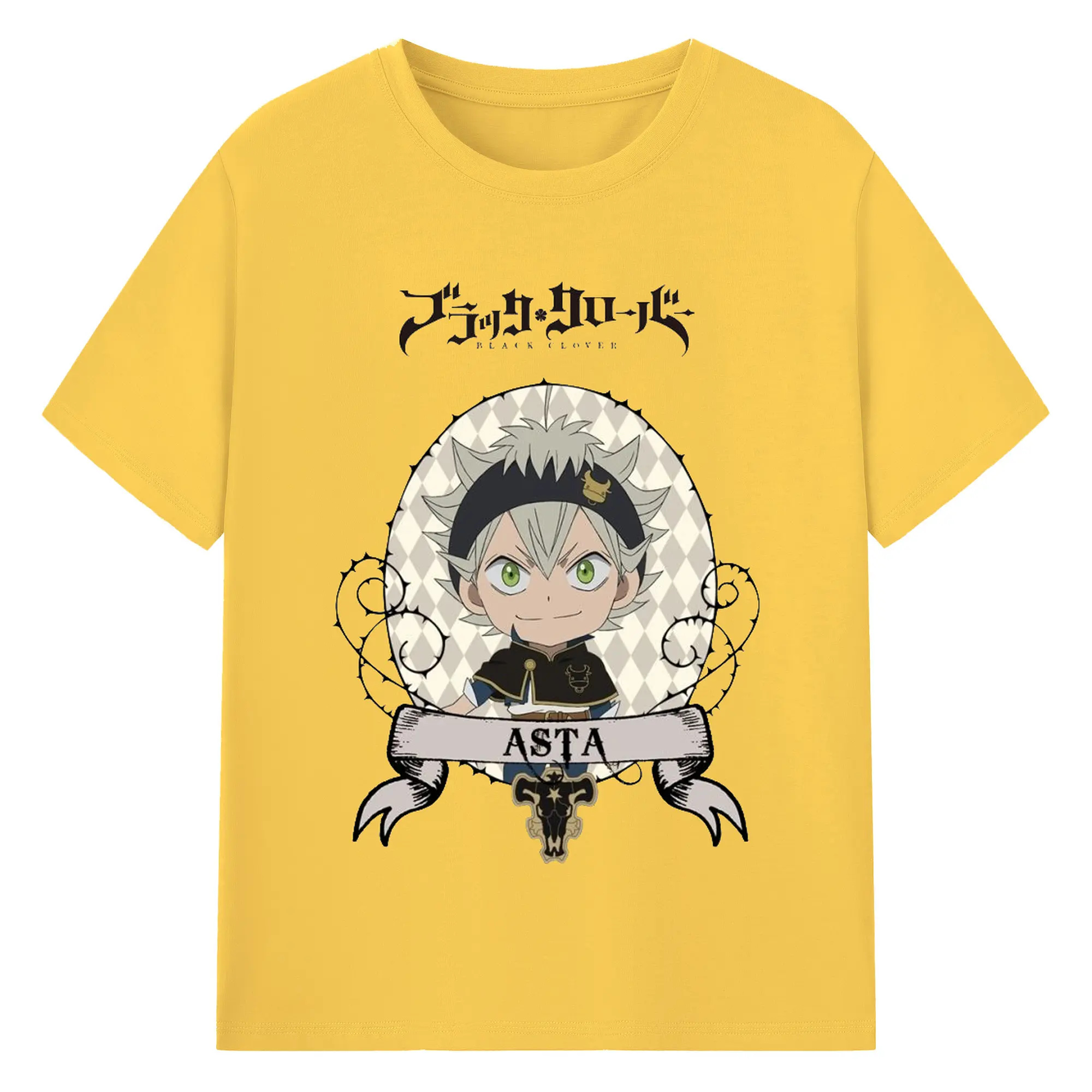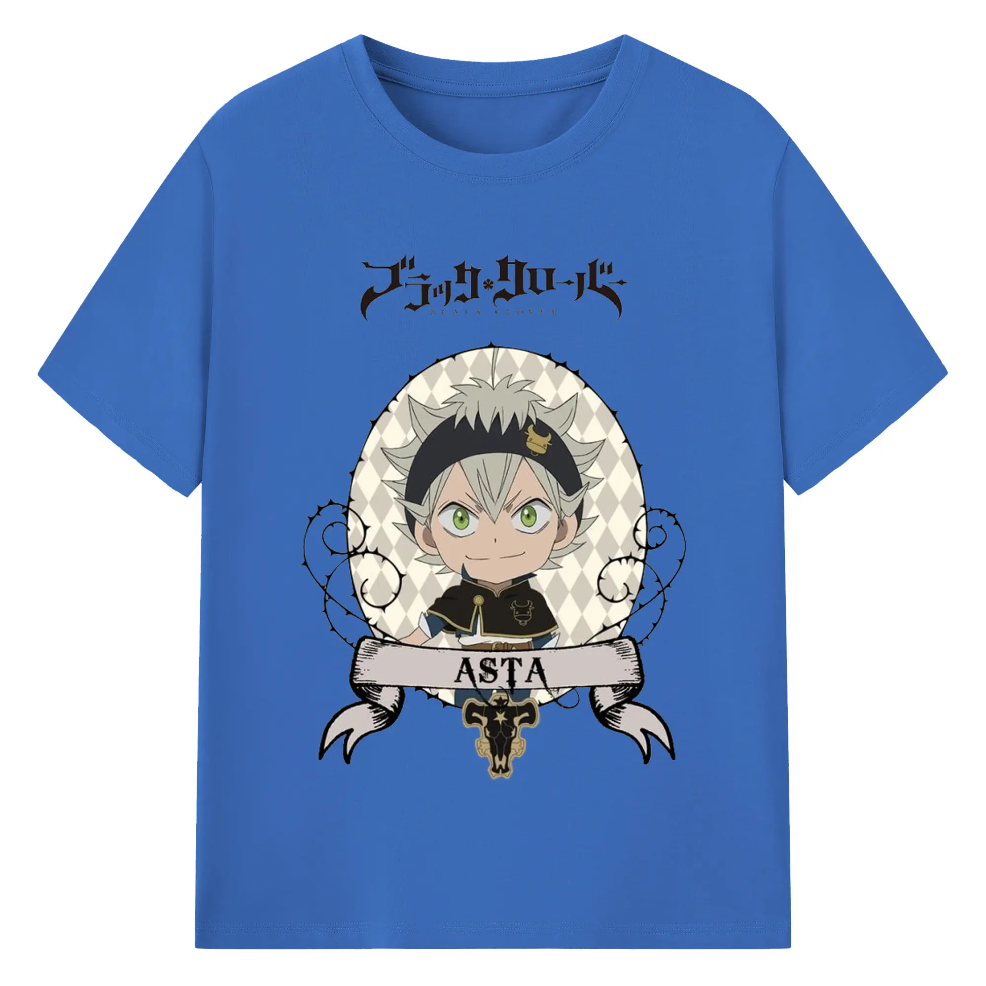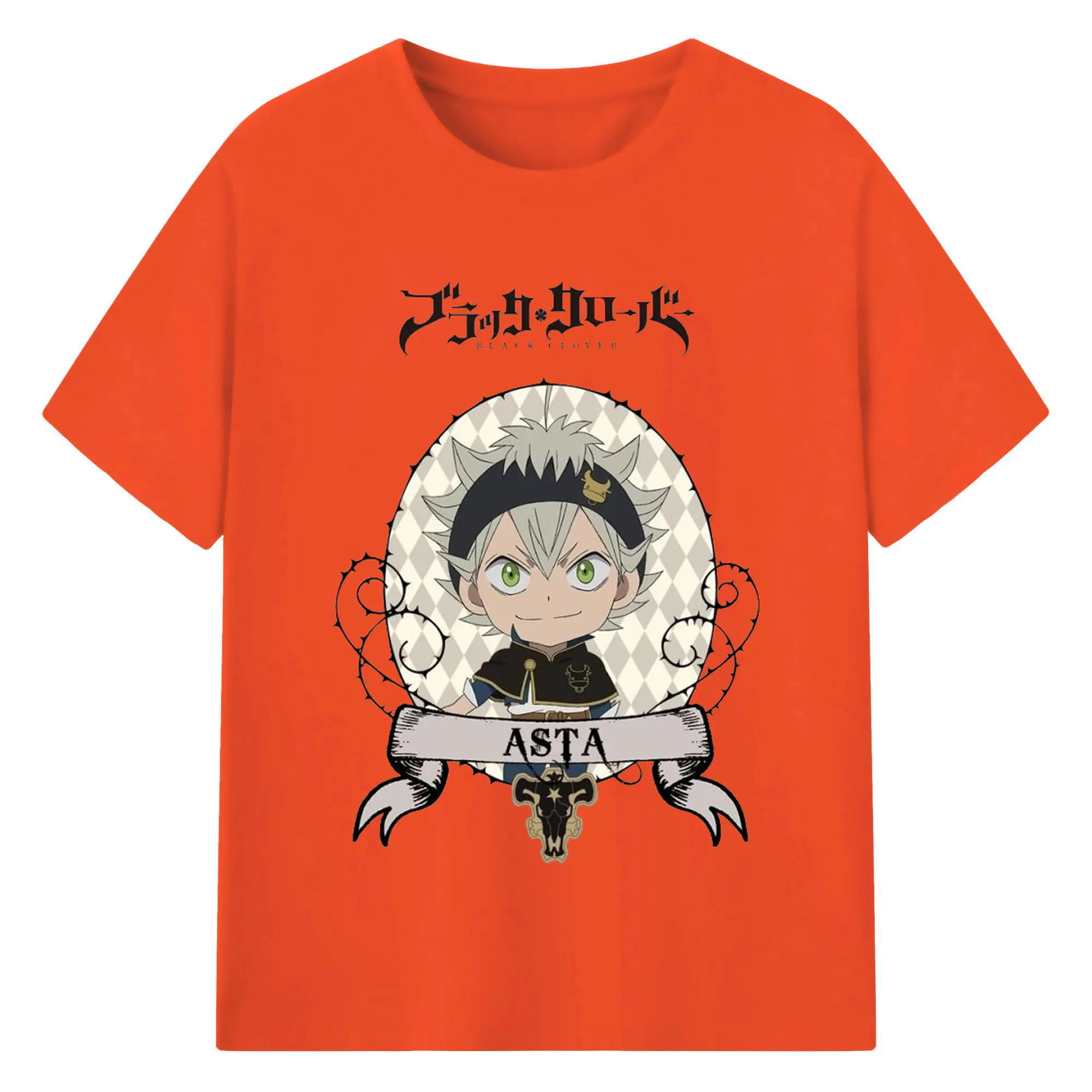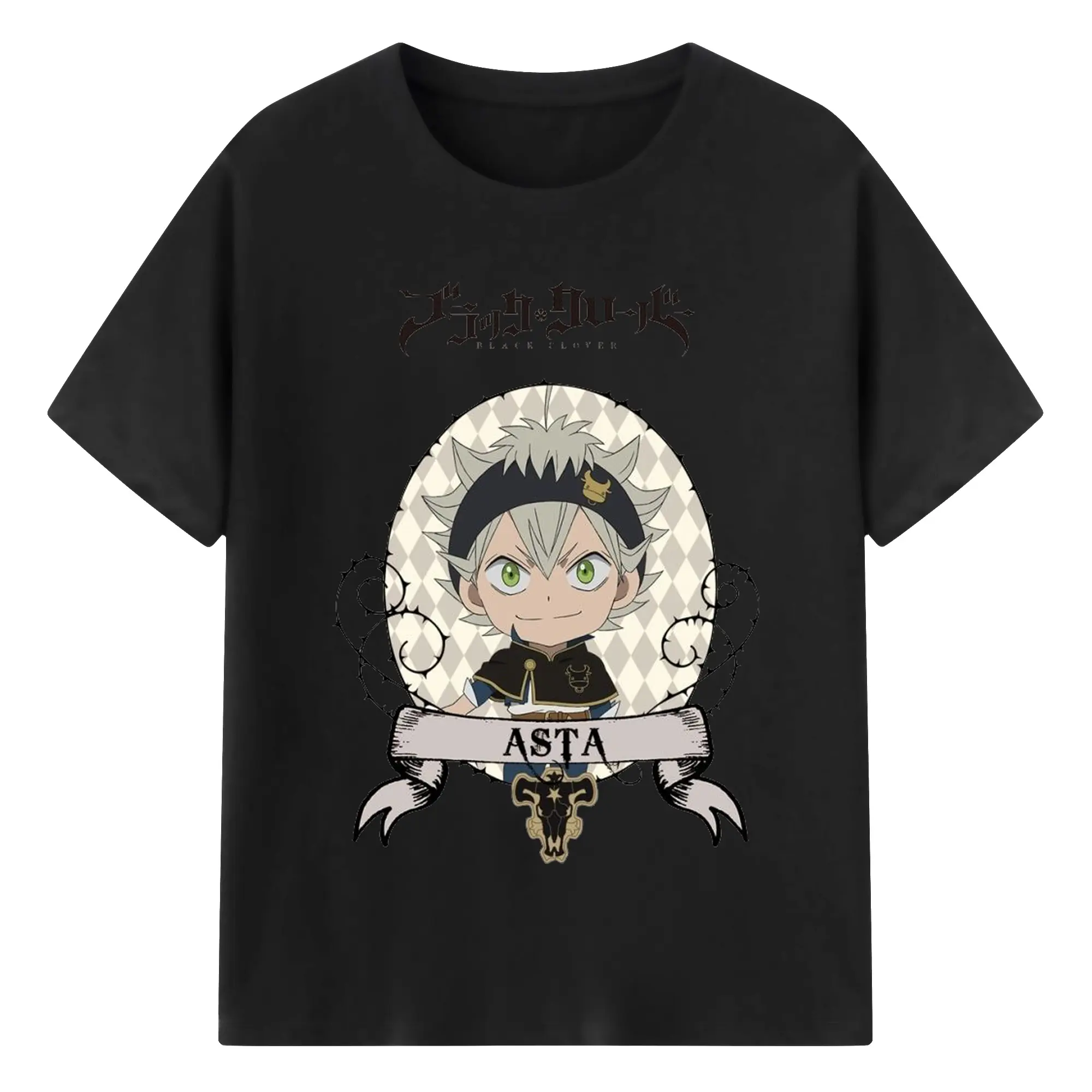 ブラッククローバー デフォルメキャラ - 綿100% ヴィンテージ風 半袖Tシャツ ・ フロントプリント ・ 柔らか肌触り ・ 通気性 快適 ・ スポーツ カジュアル 外出用